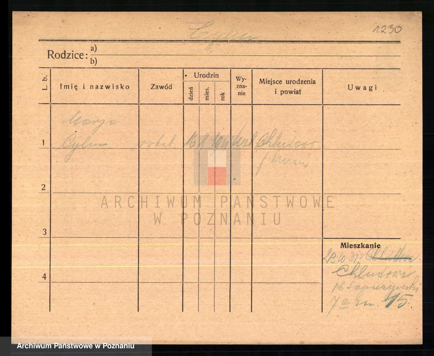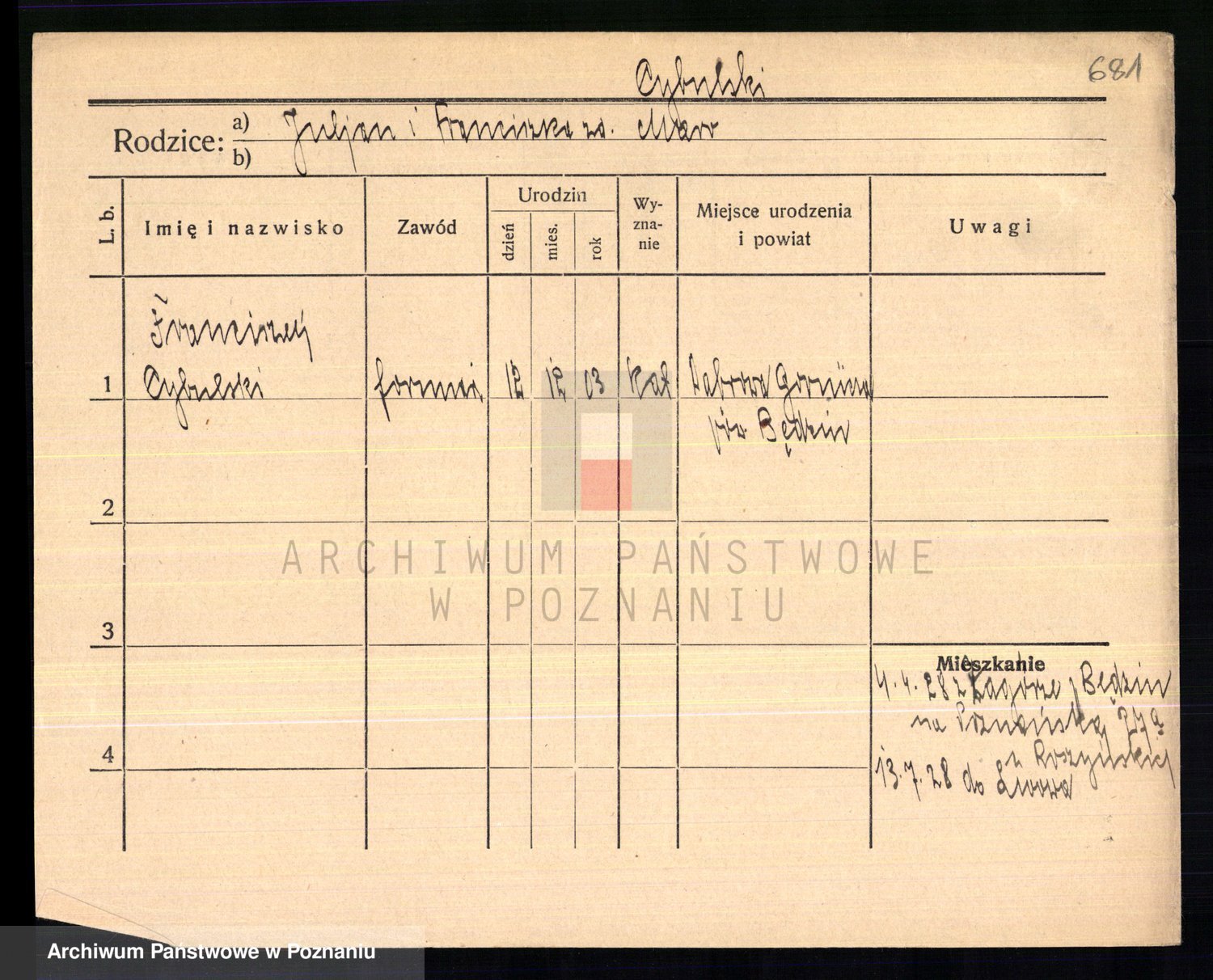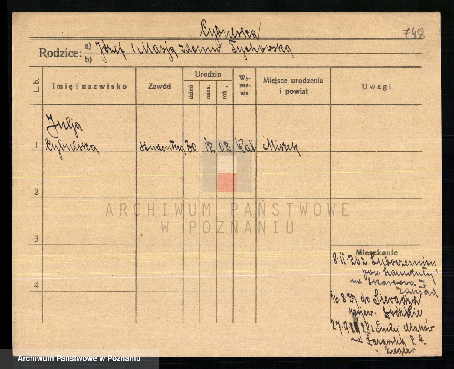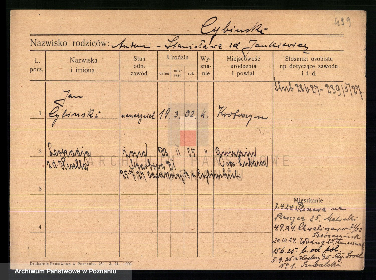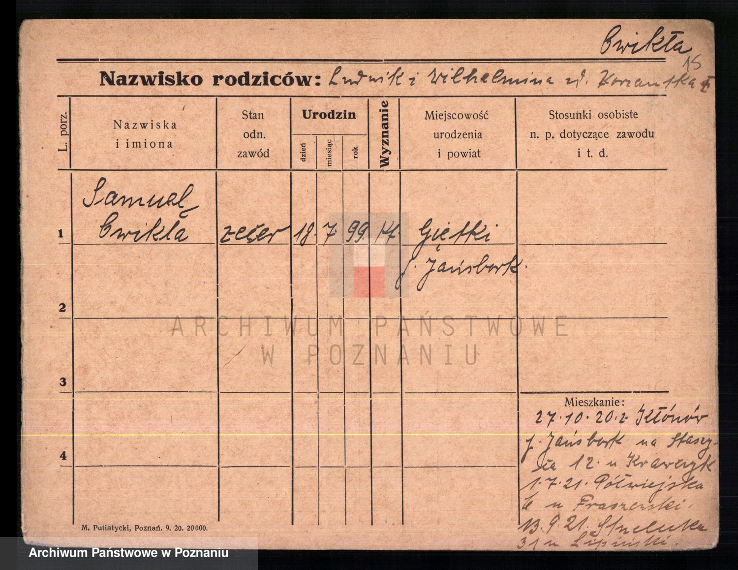 Cwikliński z.d. Przymuszińska, Marja