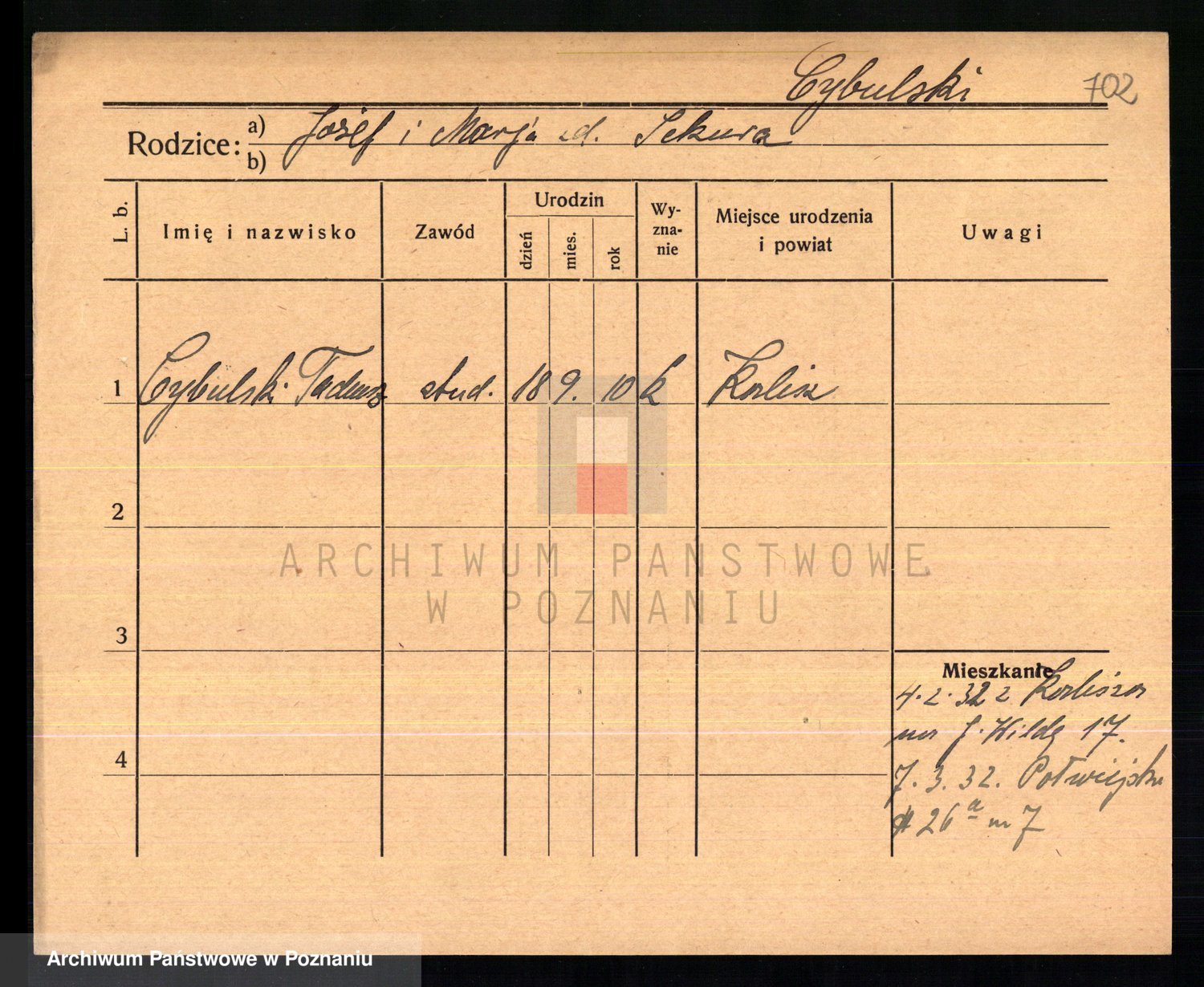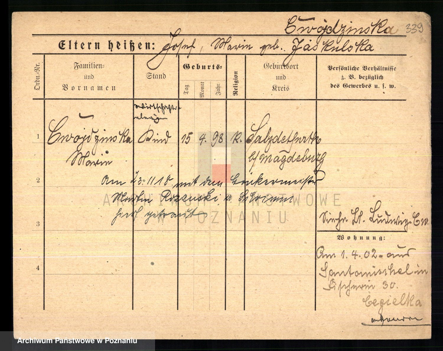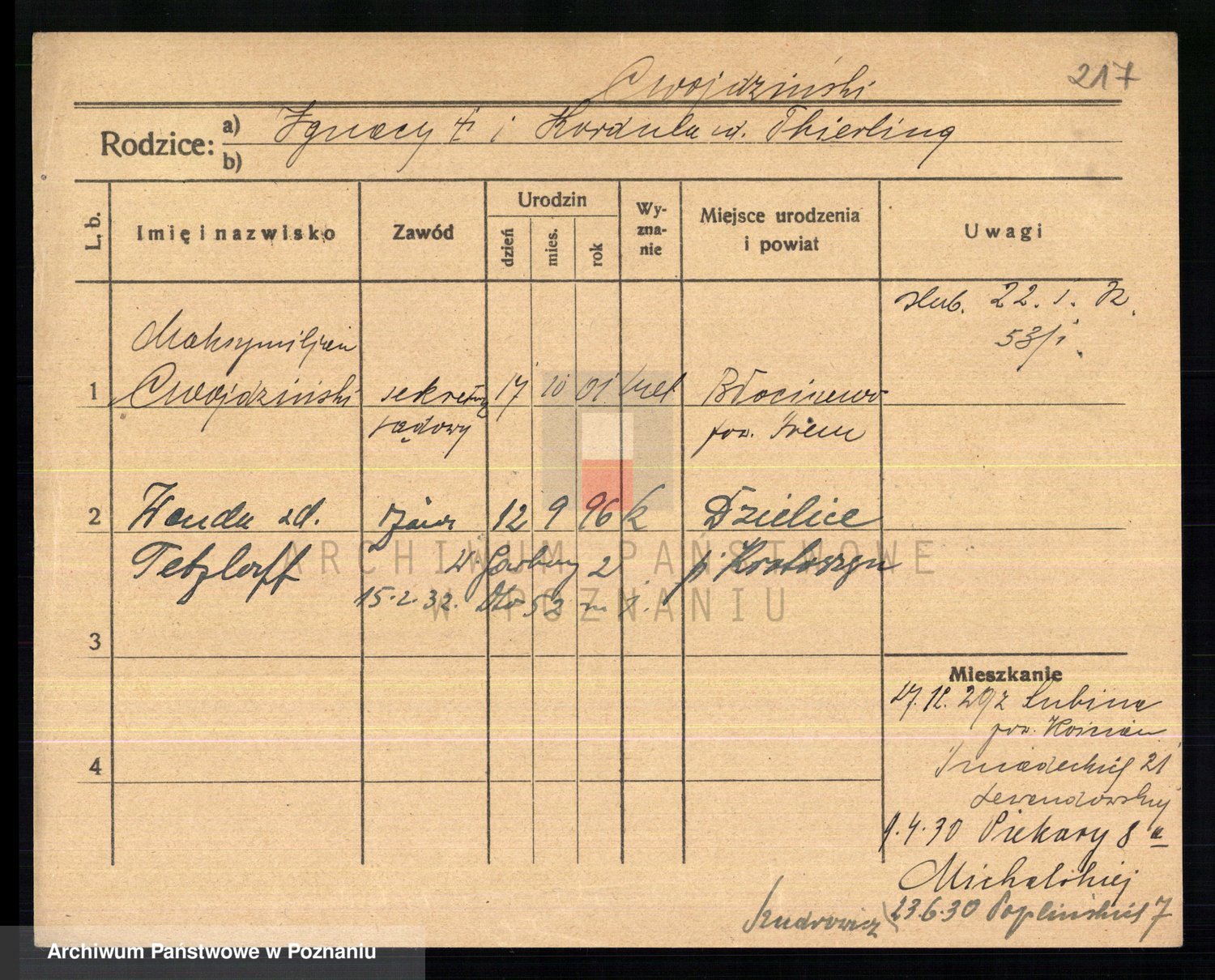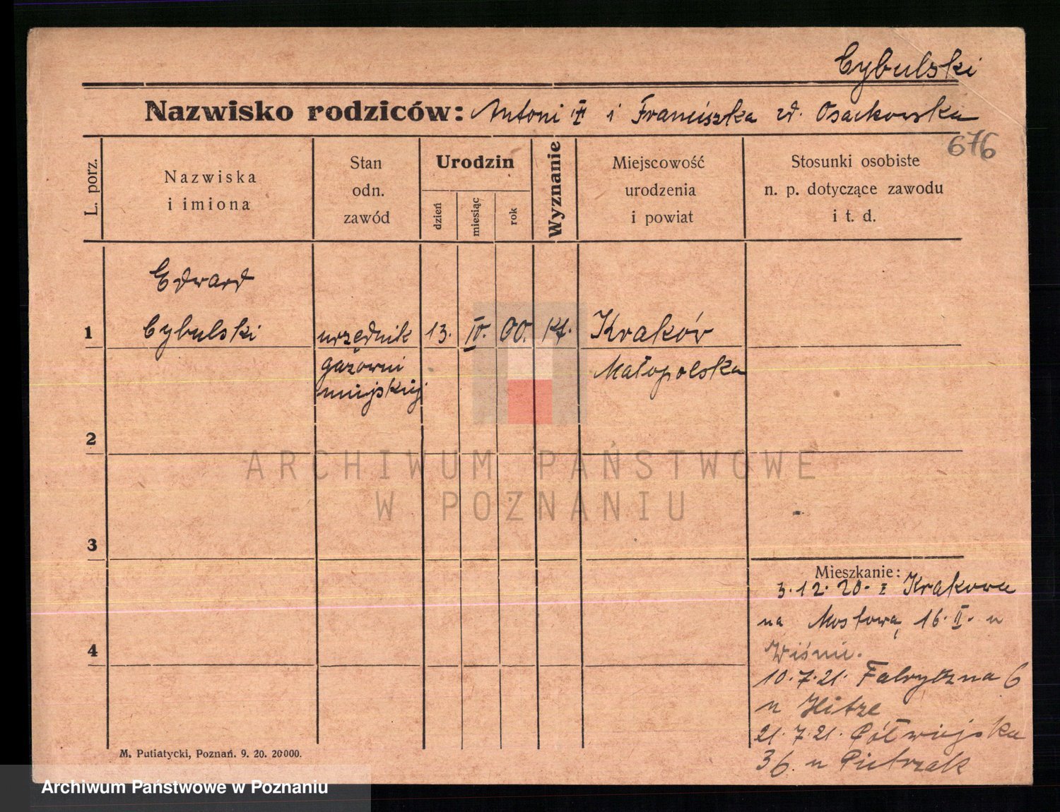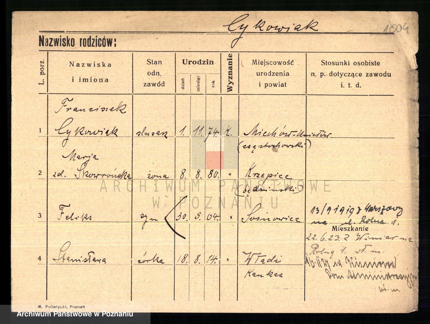 Cwikliński z.d. Przymuszińska, Marja