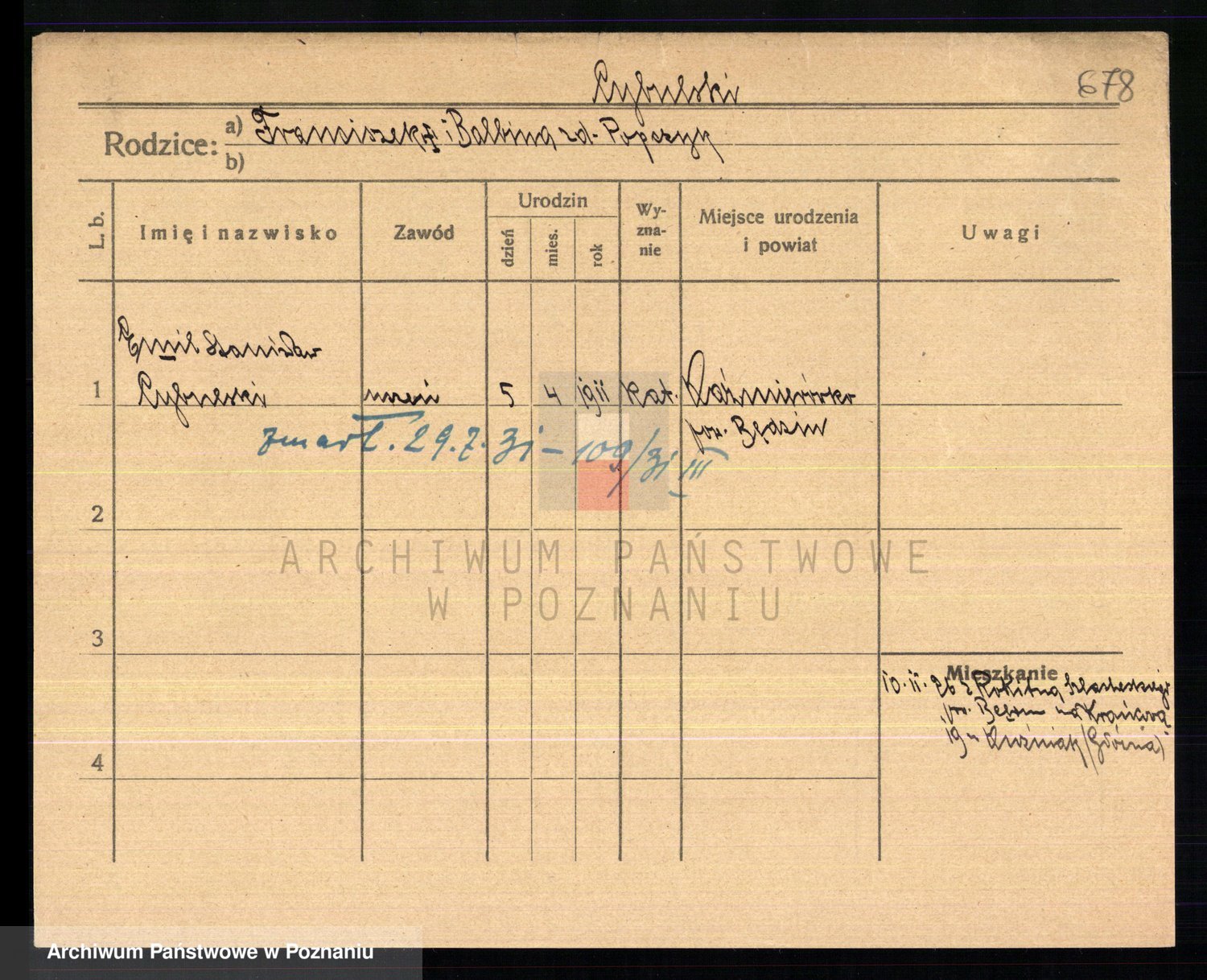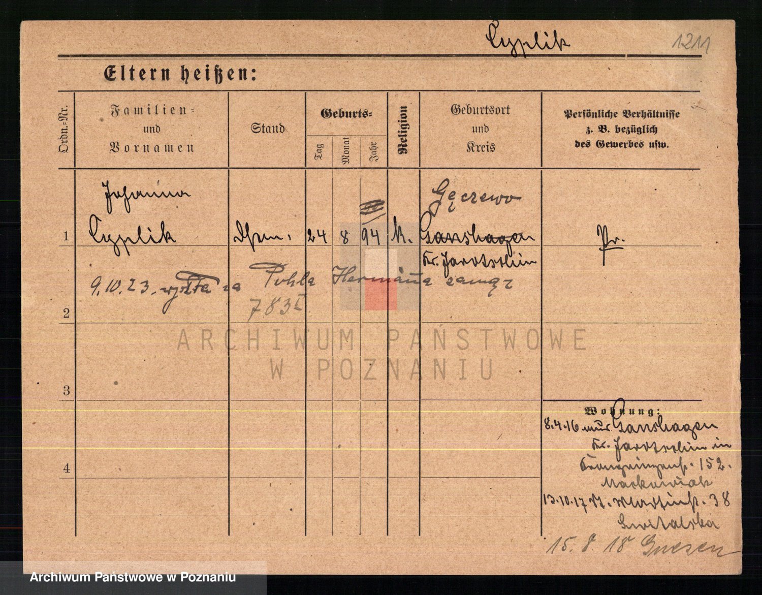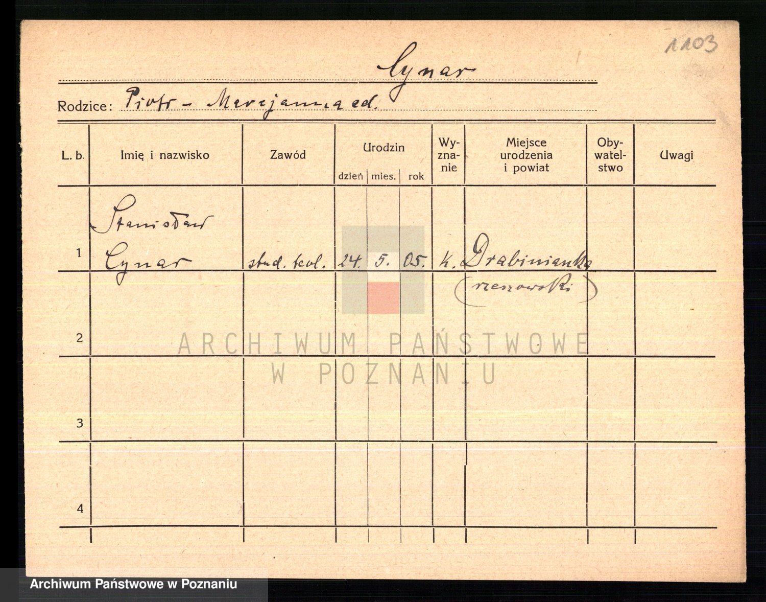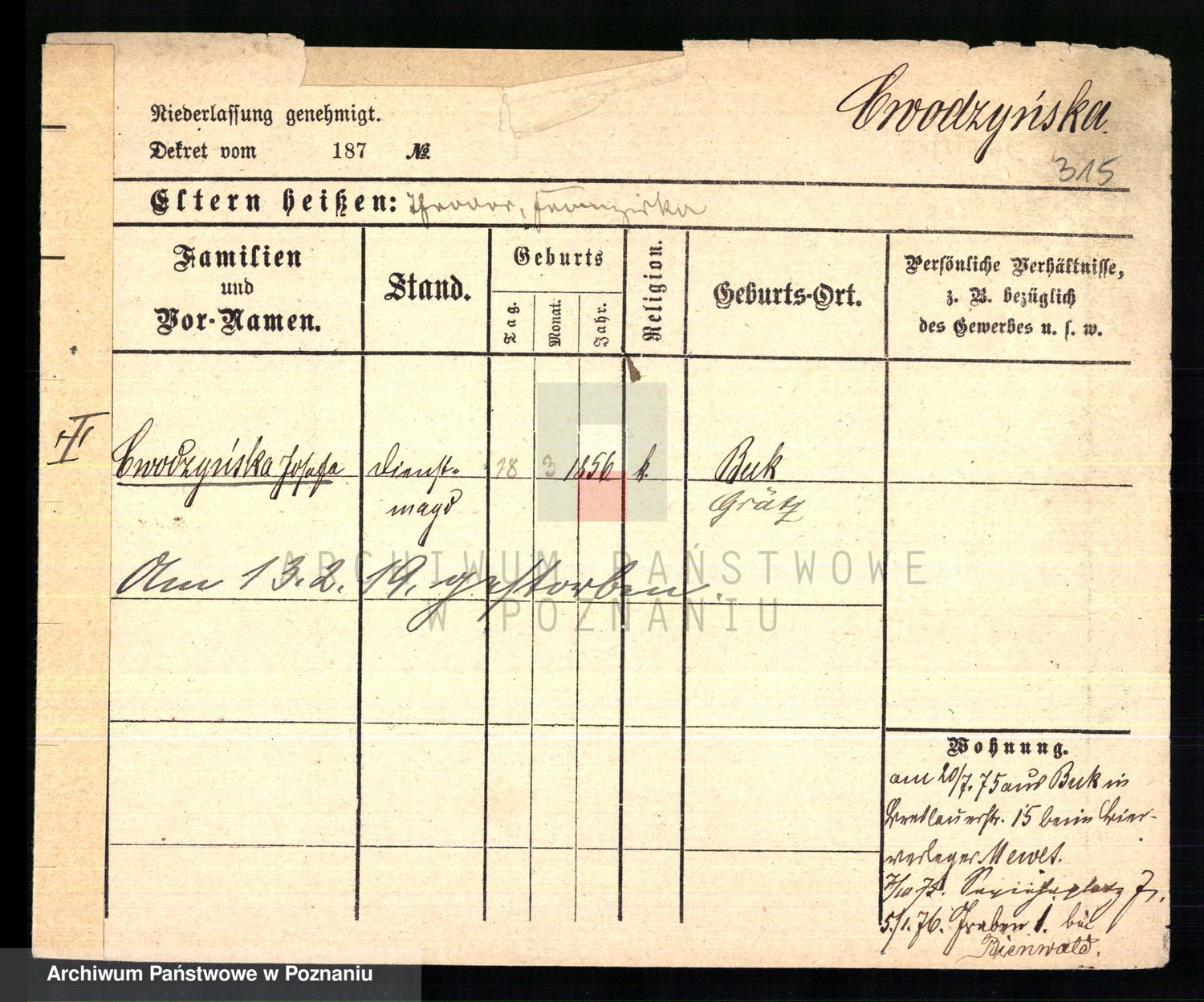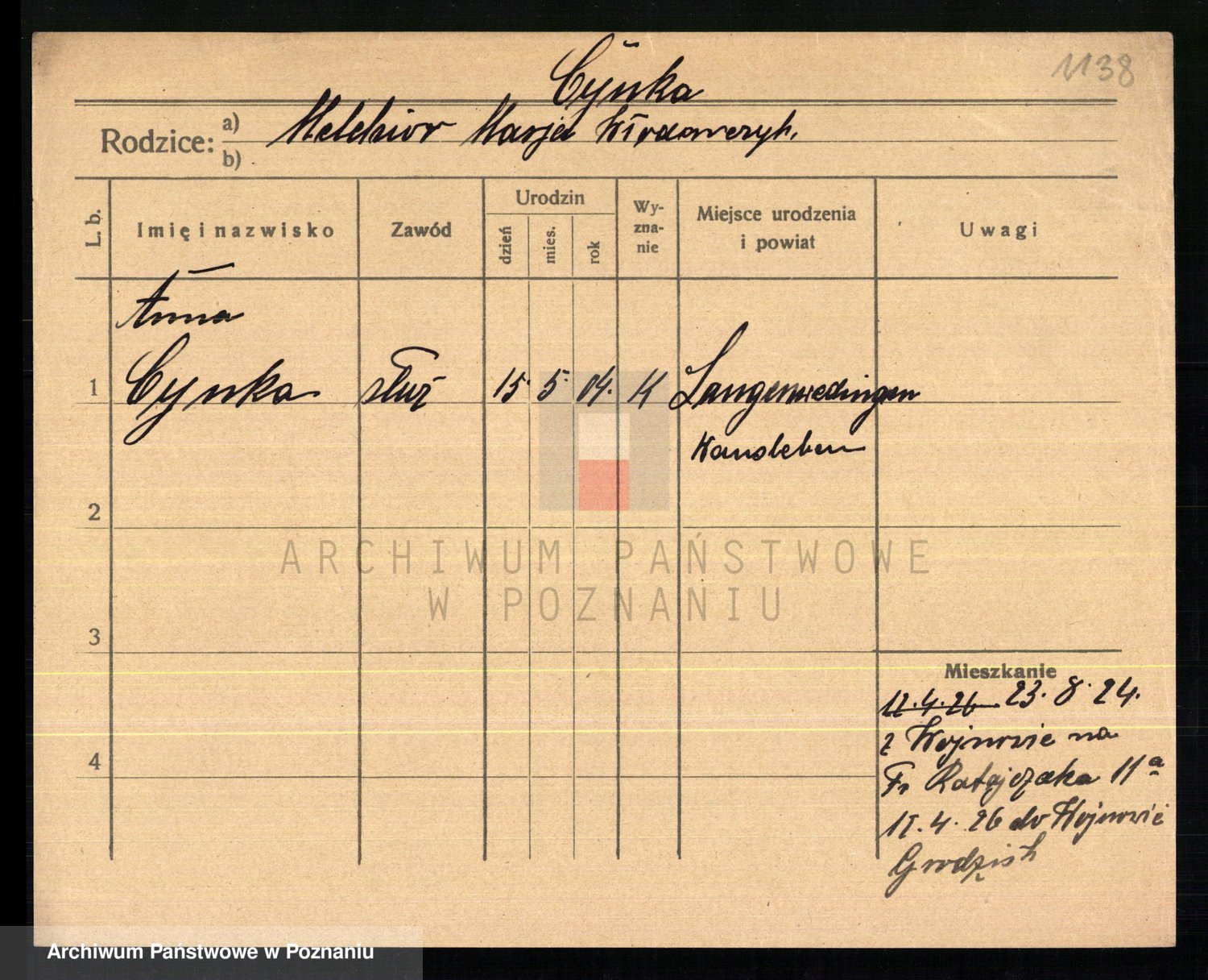 Cwikliński z.d. Przymuszińska, Marja