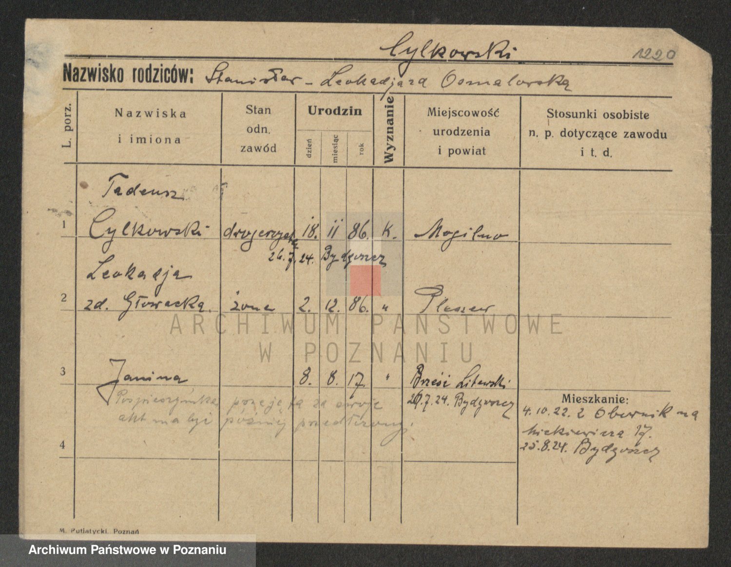 Cÿlkowski z.d. Osmalowska, Leokadia