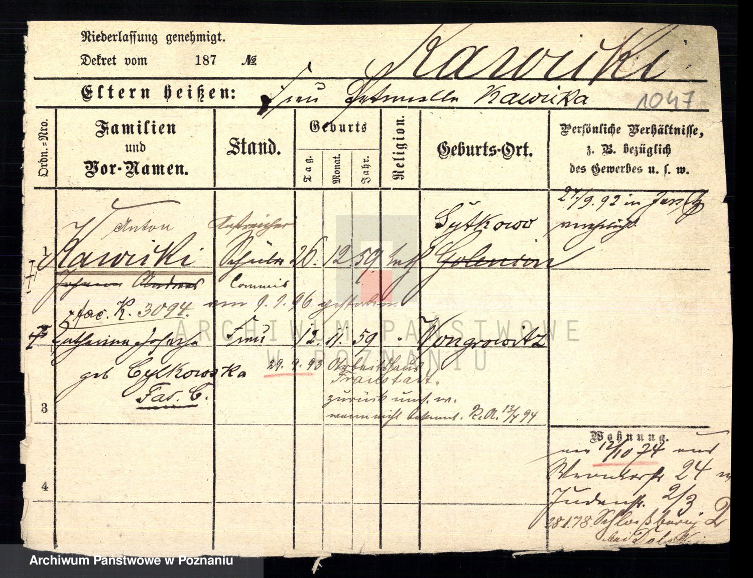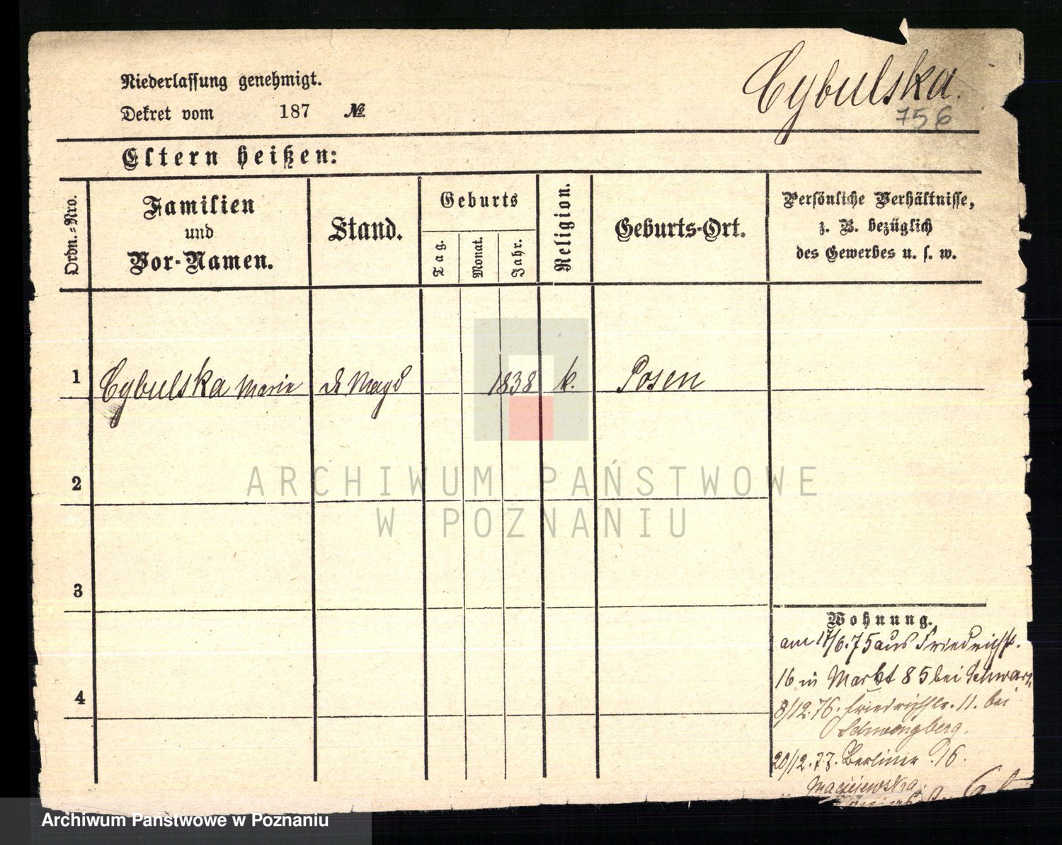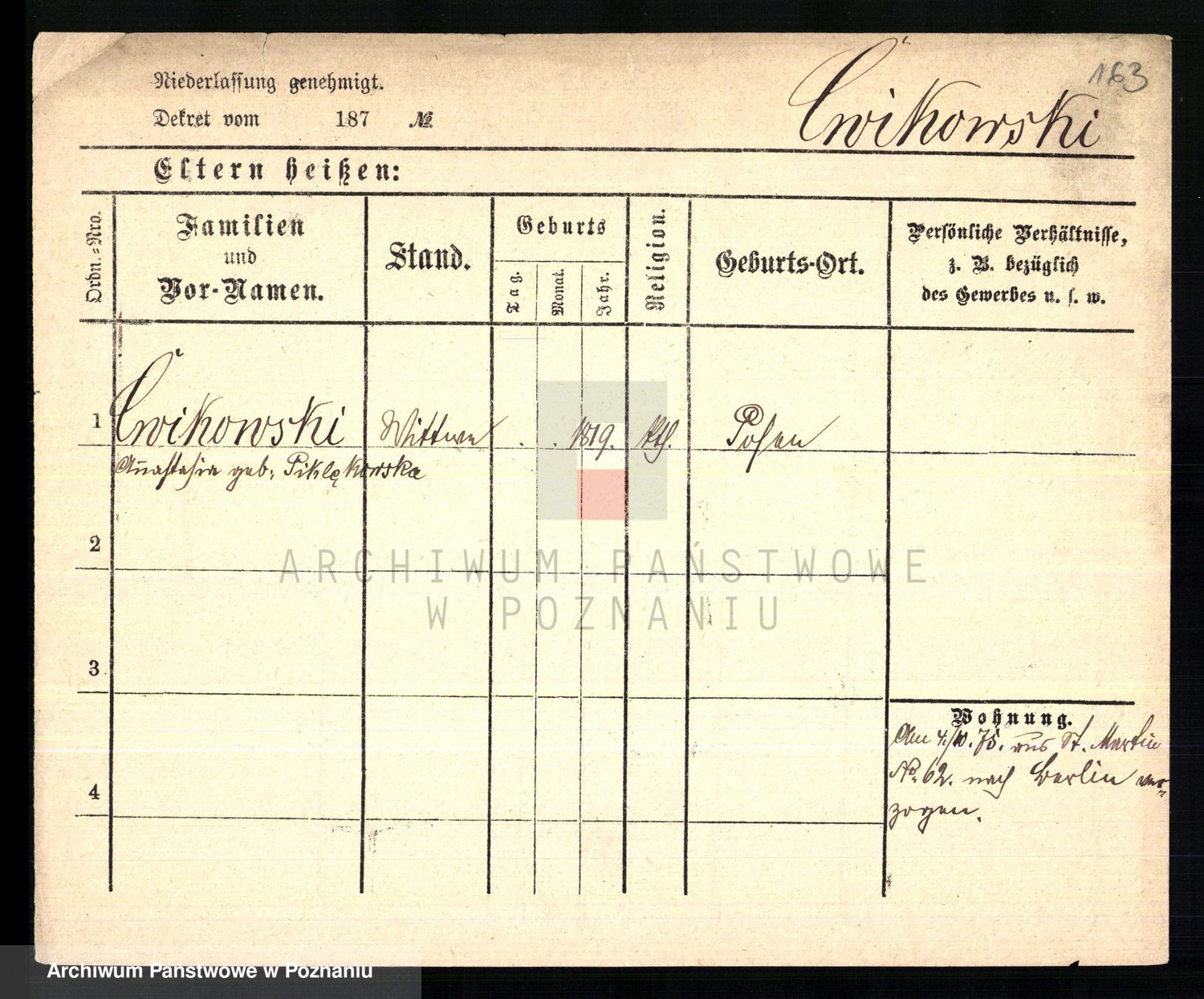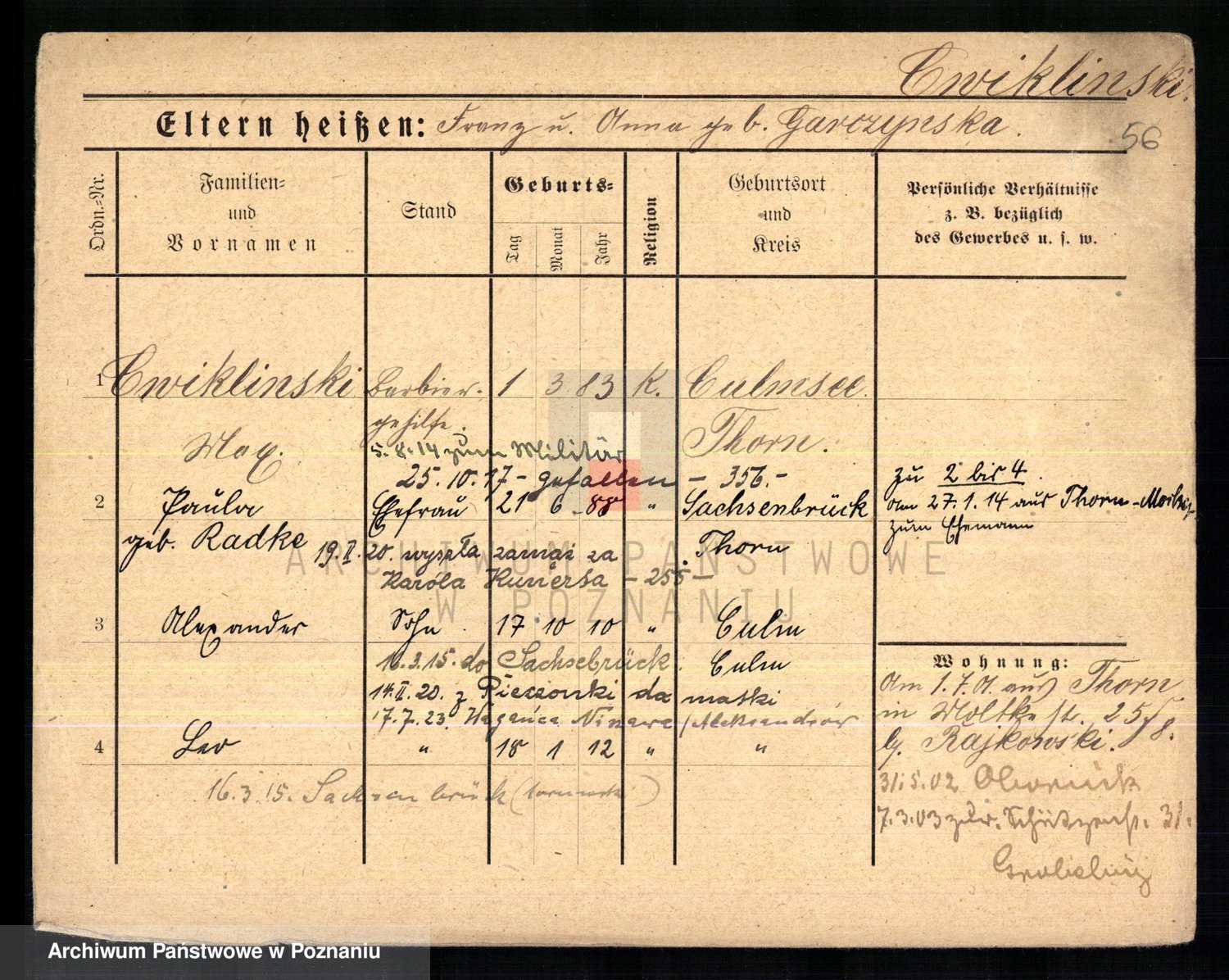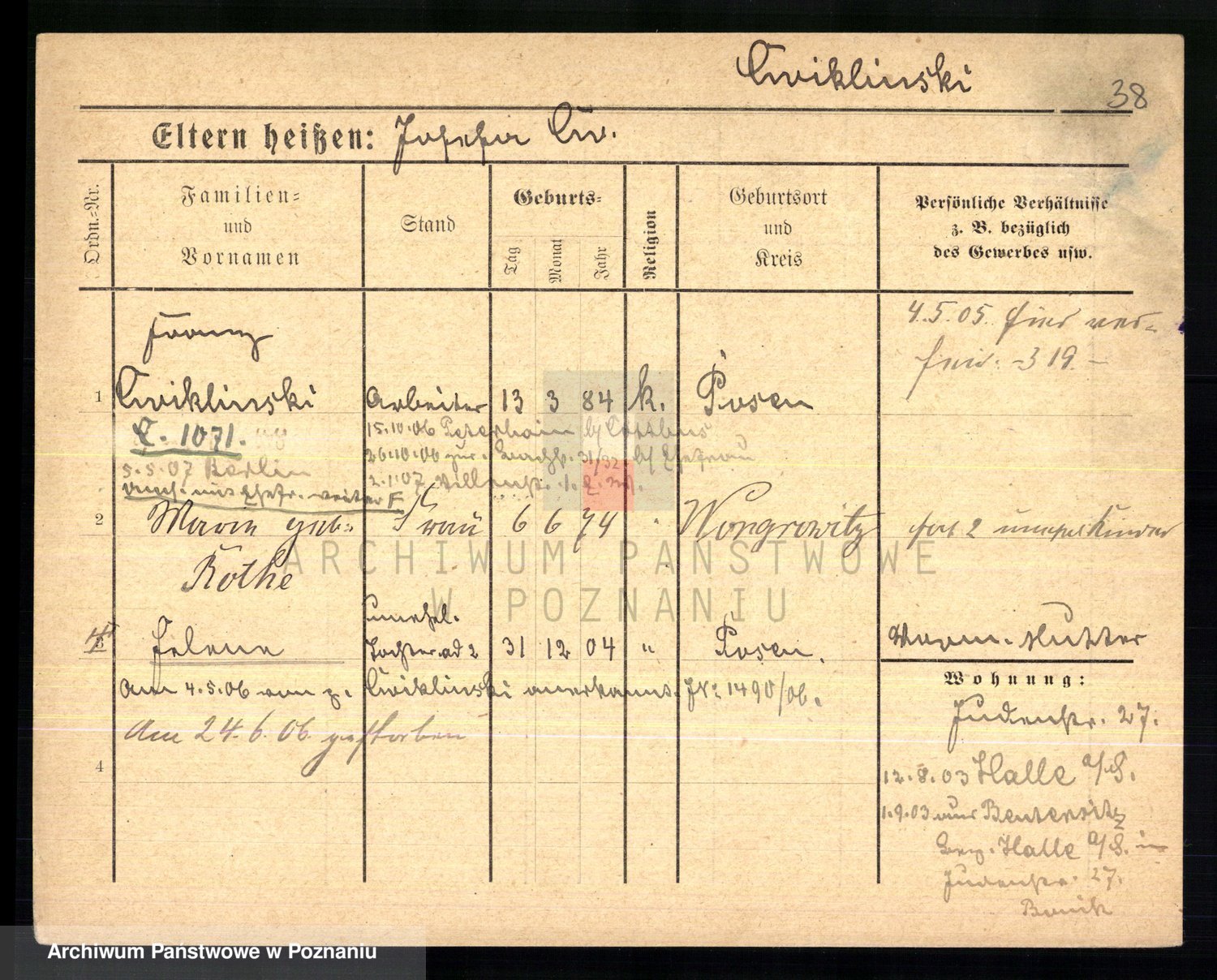 Ćwiklinski z.d. Rothe, Marie