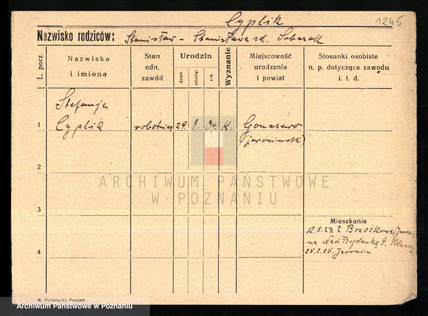 Cyplik z.d. Sosnowska, Marja