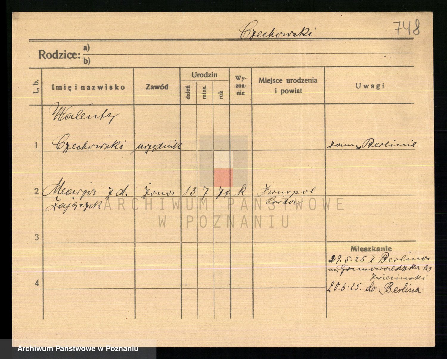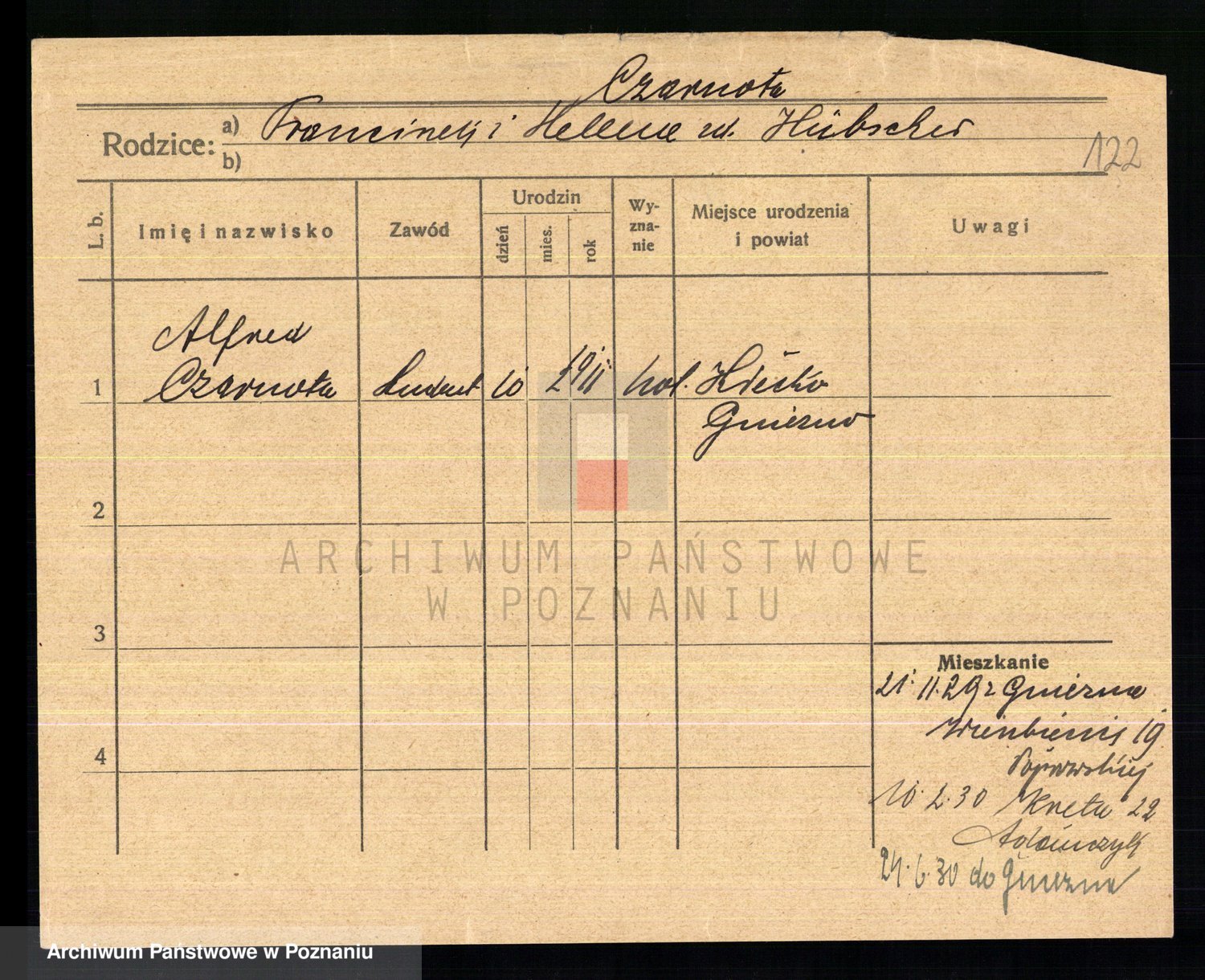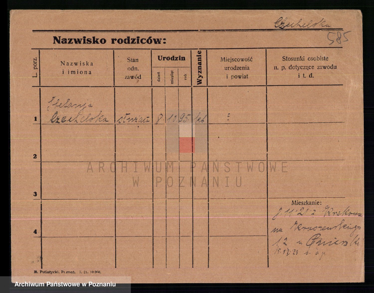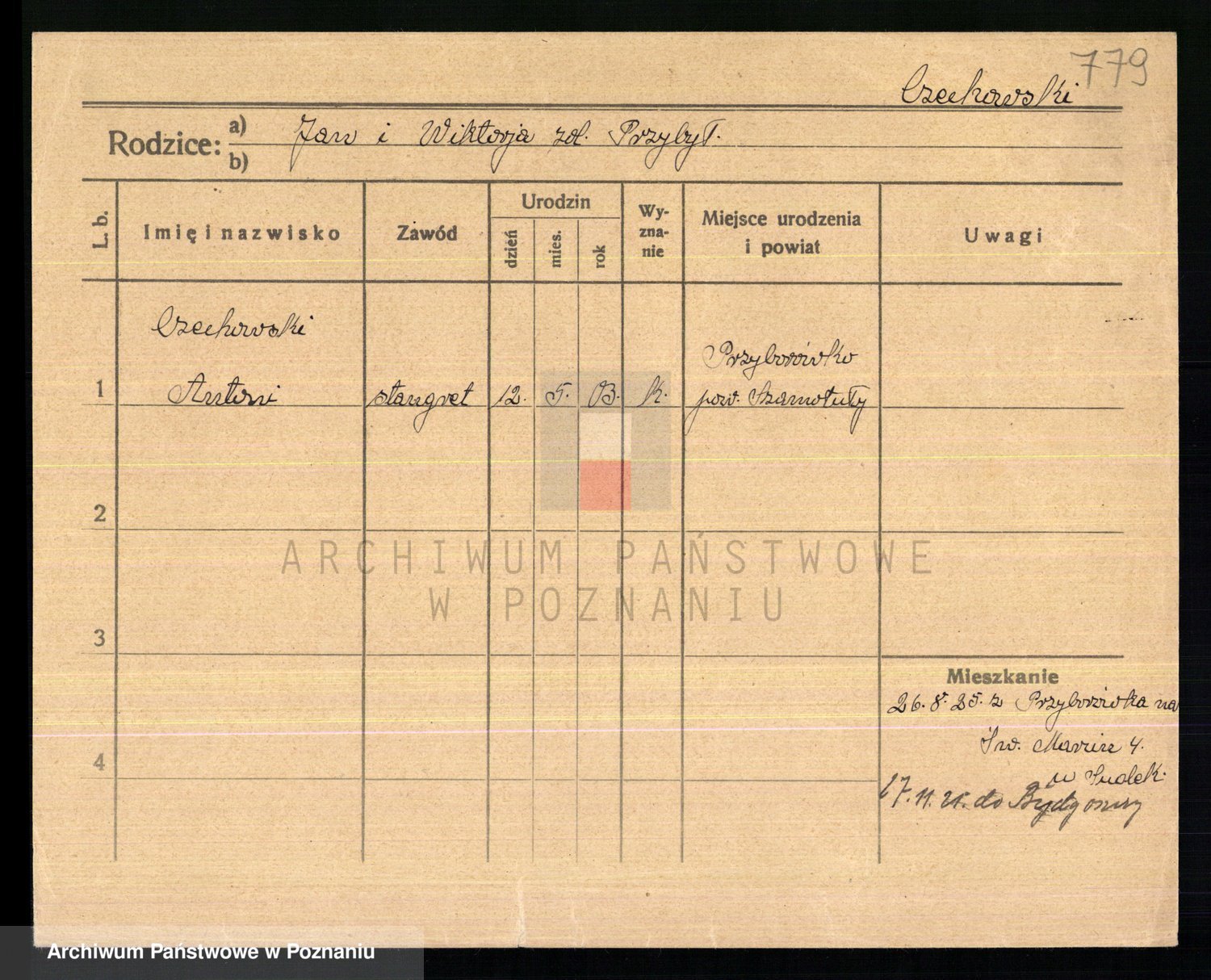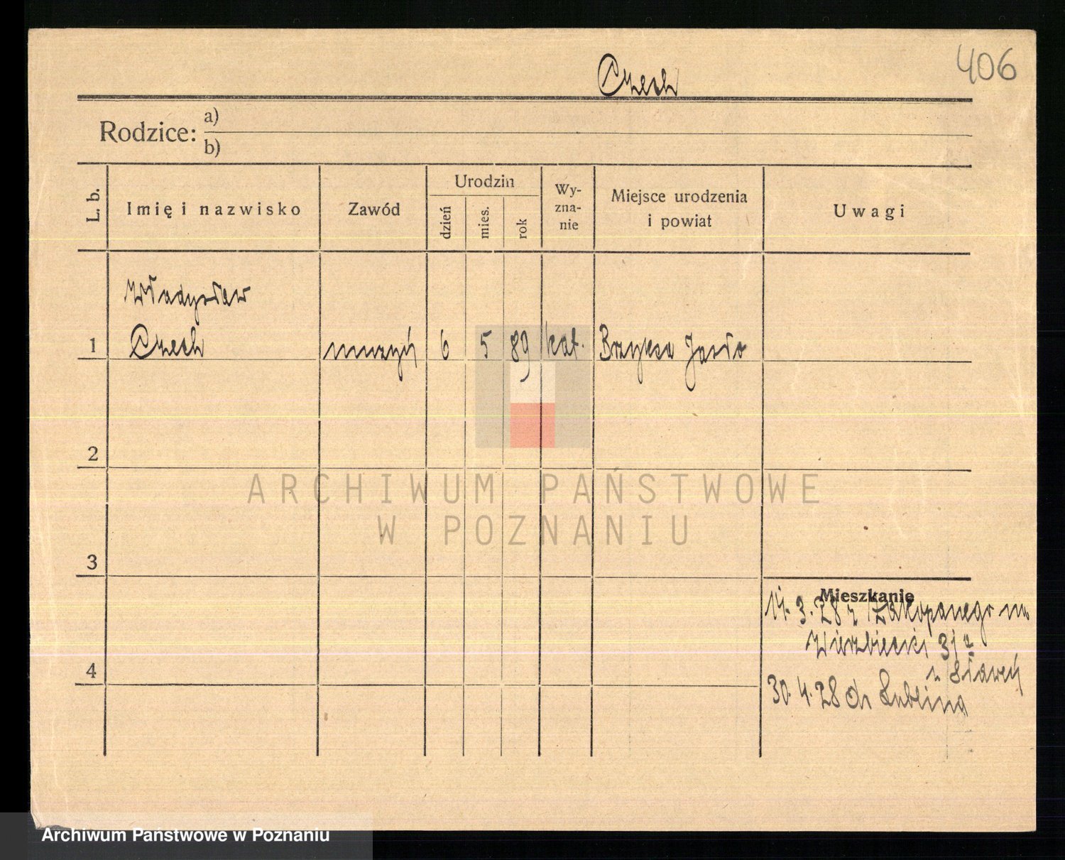 Podgląd karty osobowej dostępny jest po kliknięciu na nazwisko lub ikonkę karty. Można dokonywać powiększenia (ikony na górze) lub przechodzić między kolejnymi skanami (strzałki po bokach).