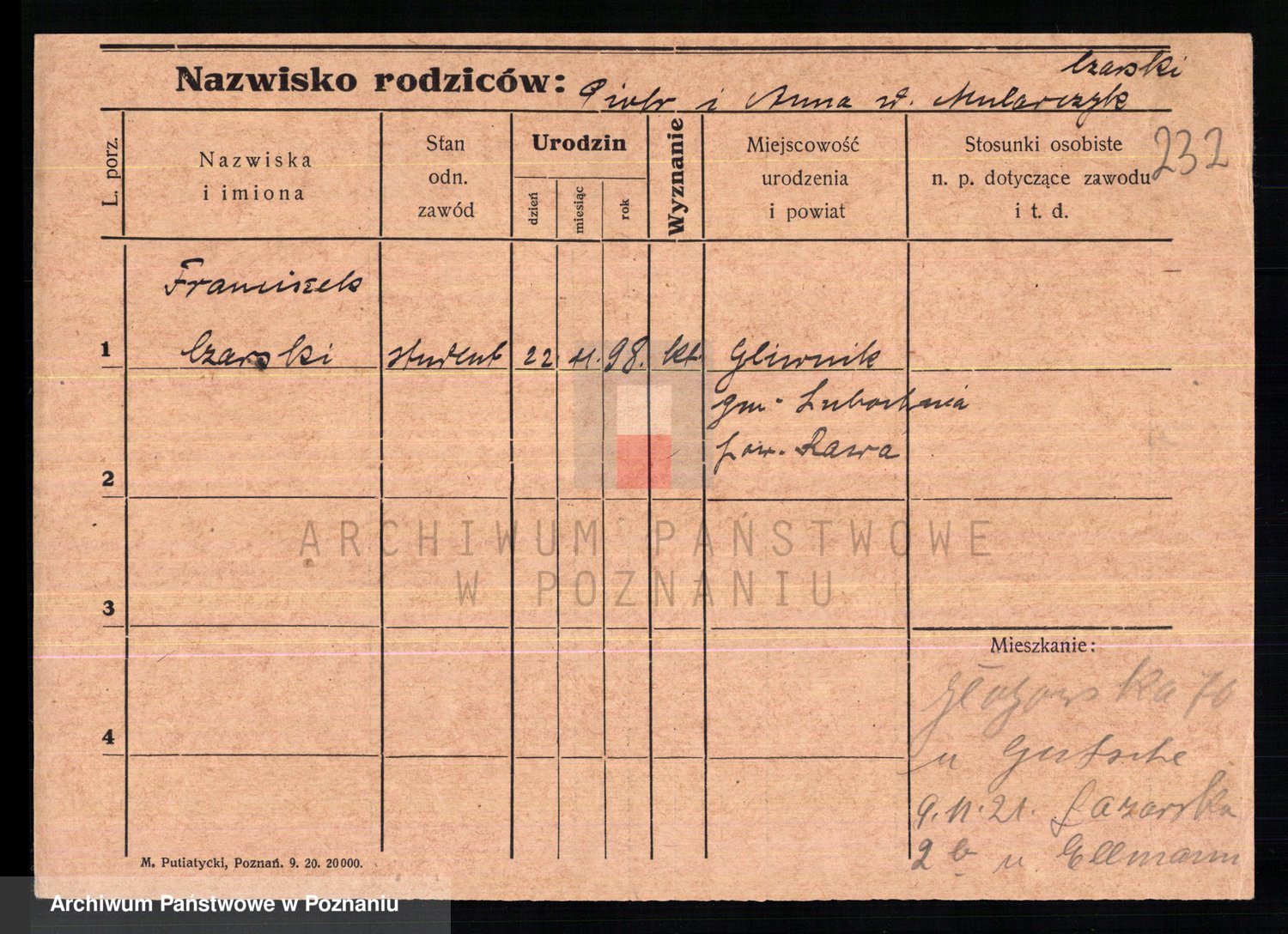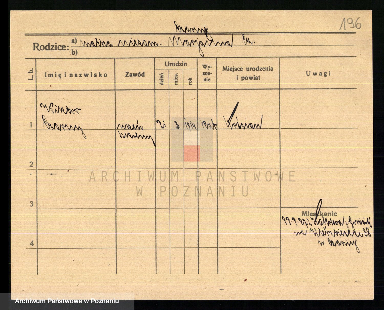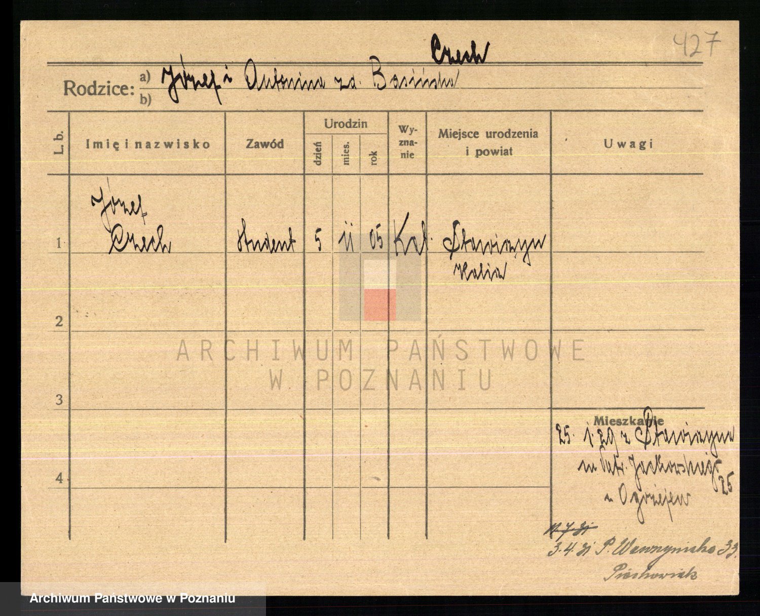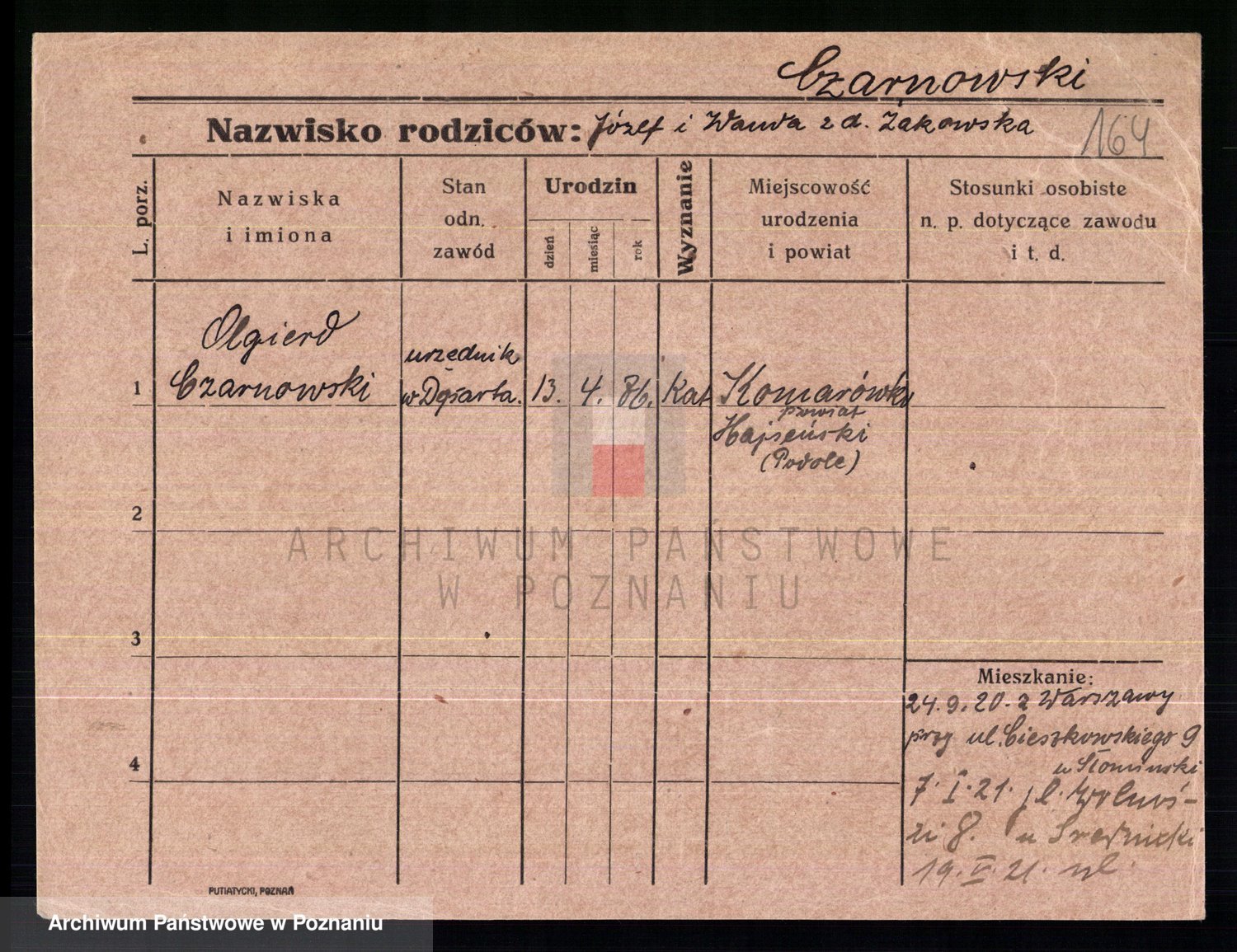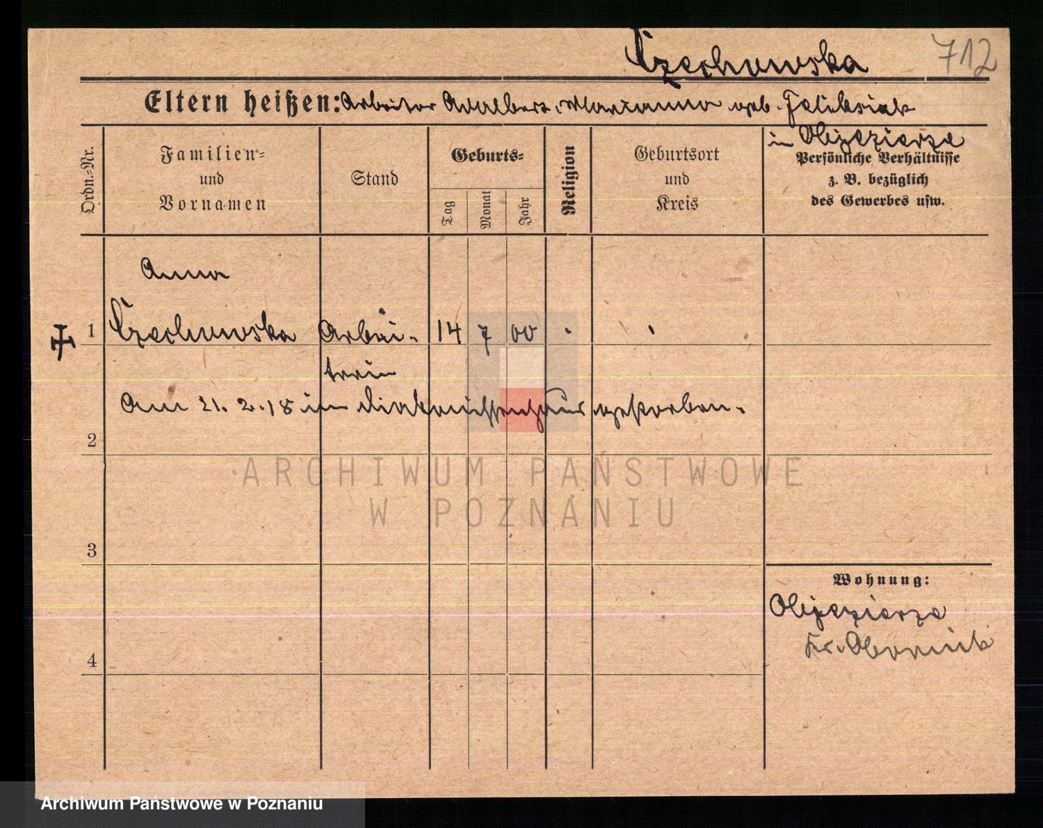 Podgląd karty osobowej dostępny jest po kliknięciu na nazwisko lub ikonkę karty. Można dokonywać powiększenia (ikony na górze) lub przechodzić między kolejnymi skanami (strzałki po bokach).
