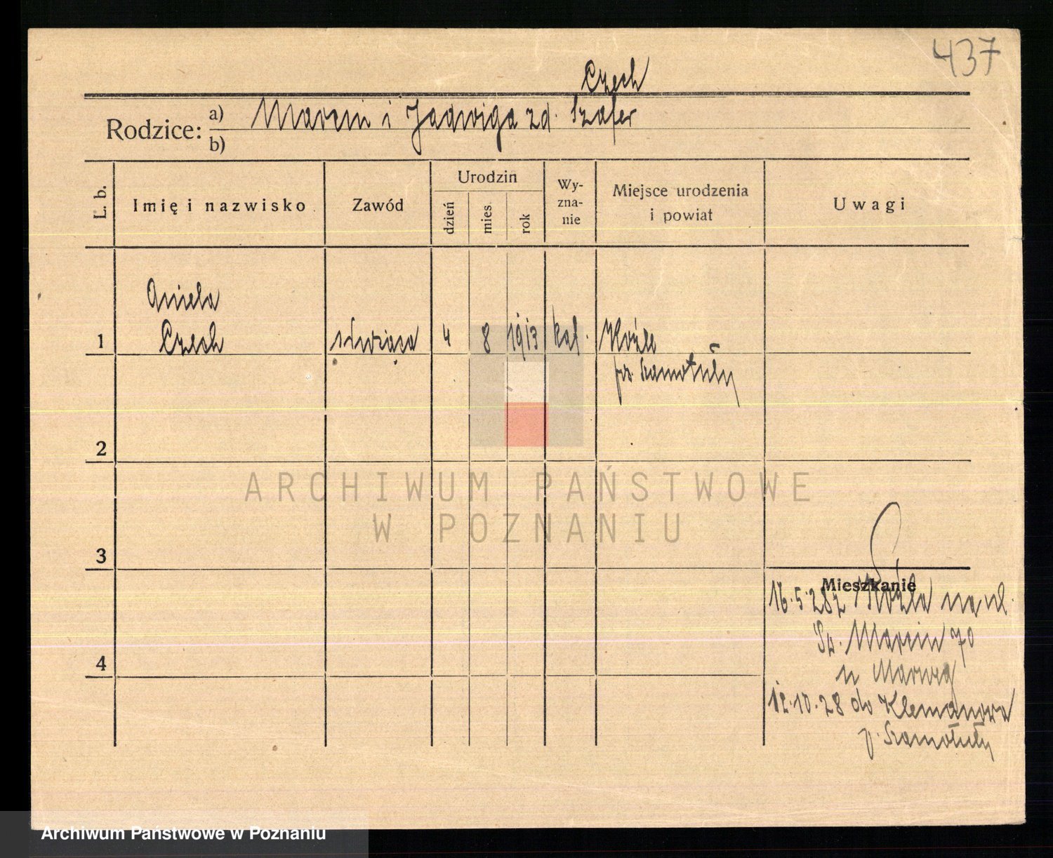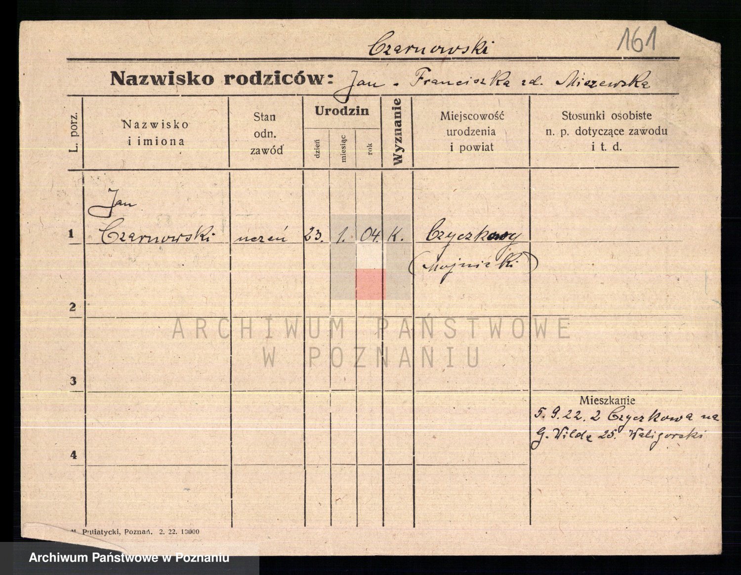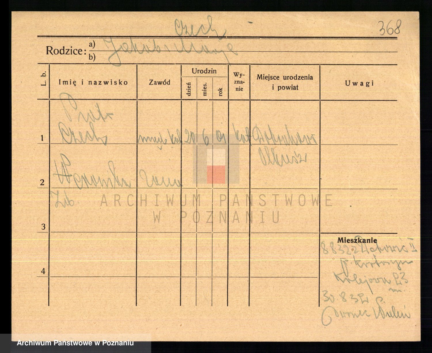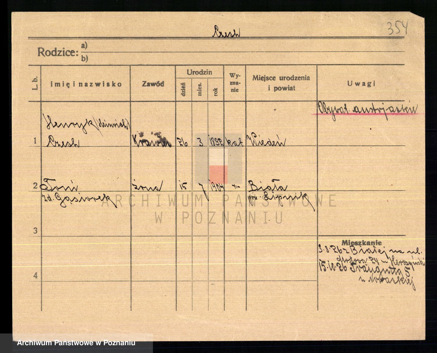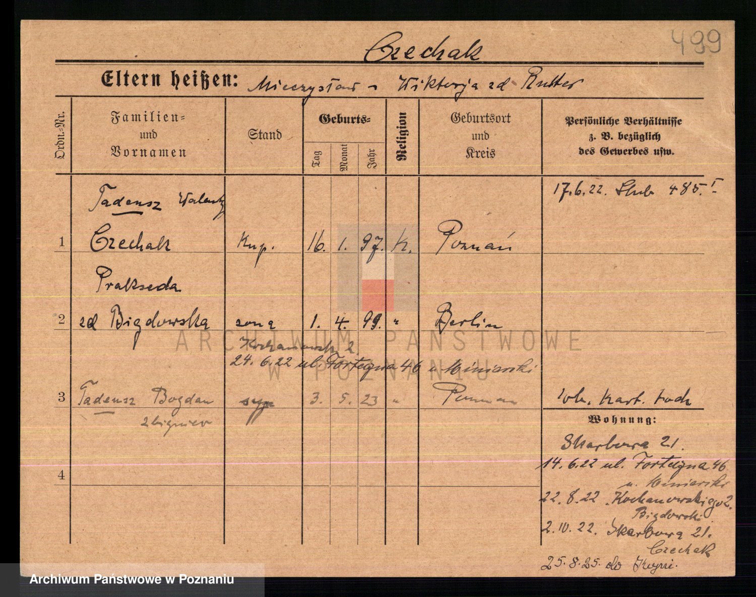 Podgląd karty osobowej dostępny jest po kliknięciu na nazwisko lub ikonkę karty. Można dokonywać powiększenia (ikony na górze) lub przechodzić między kolejnymi skanami (strzałki po bokach).