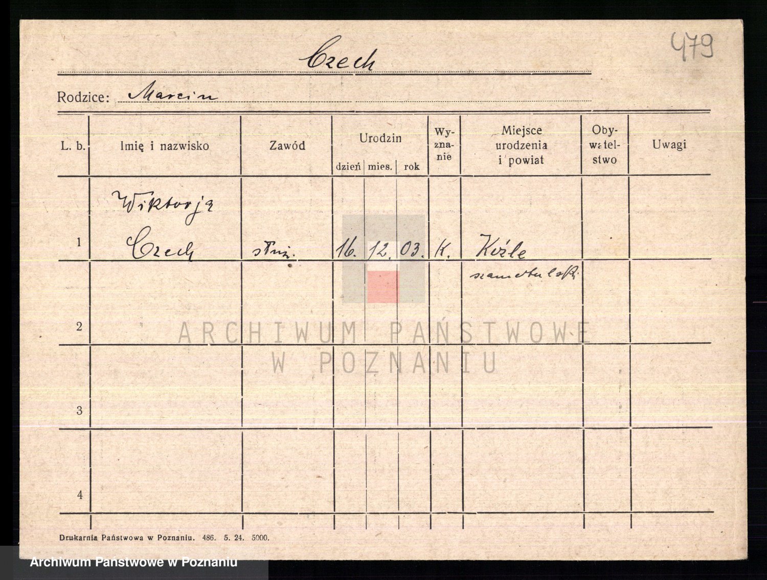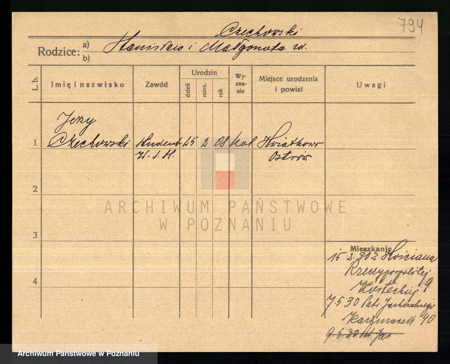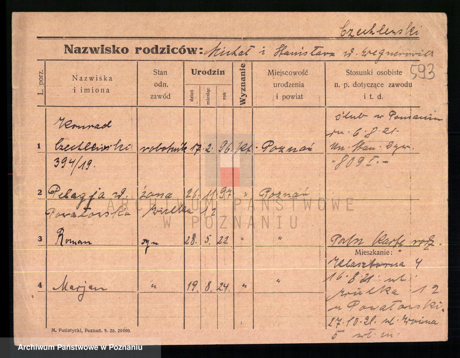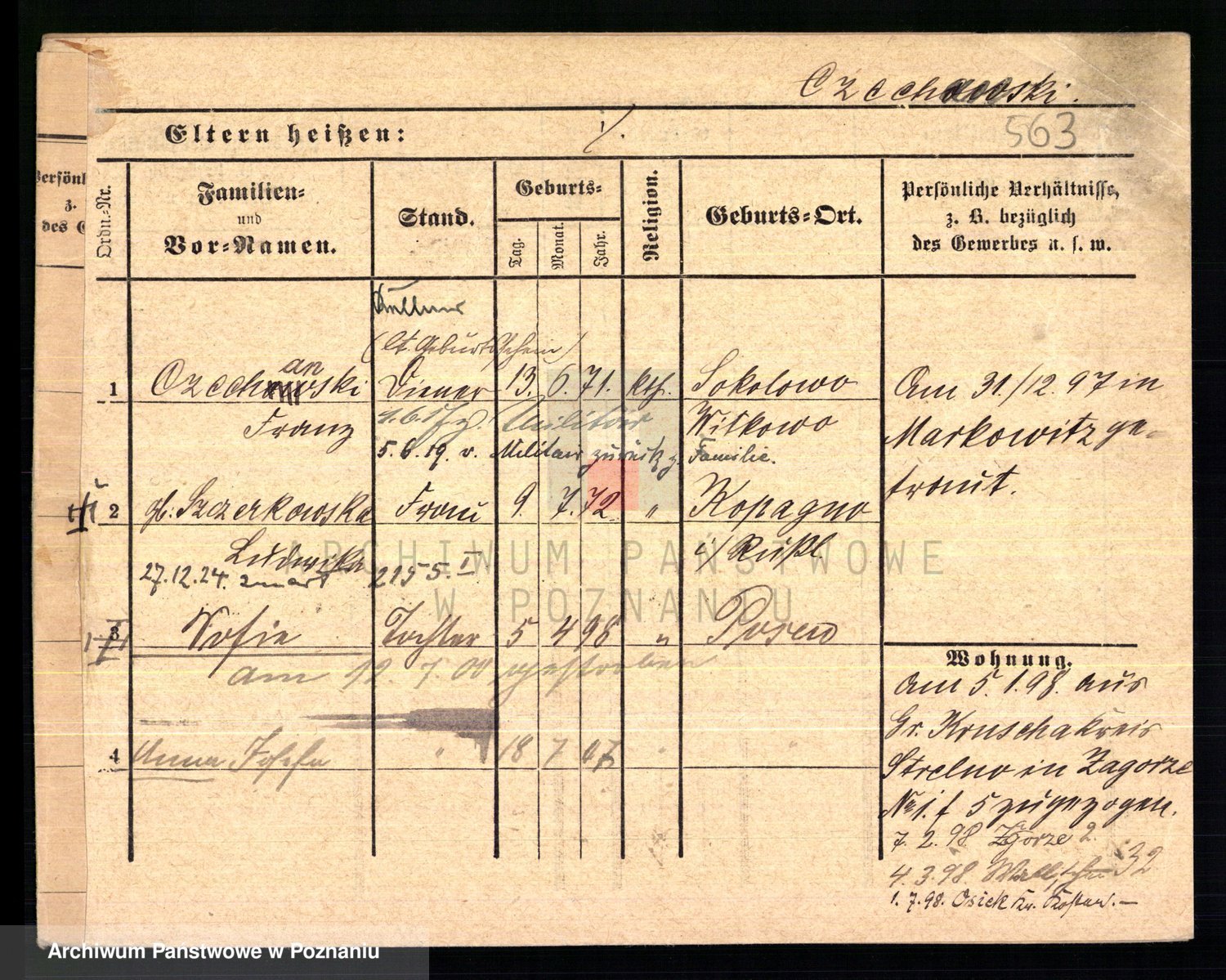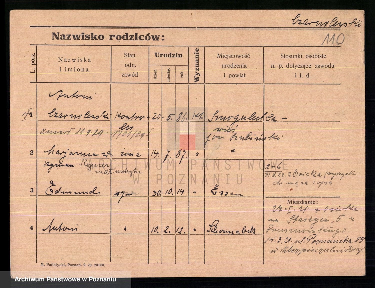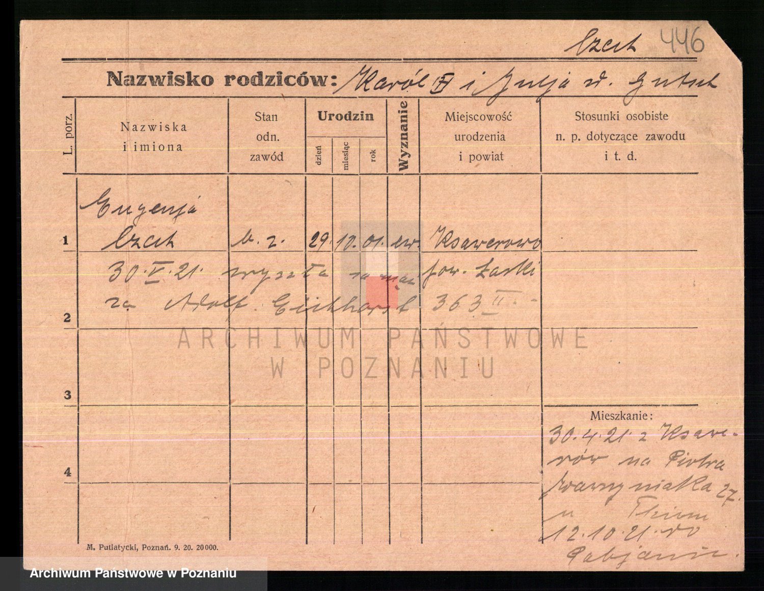 Podgląd karty osobowej dostępny jest po kliknięciu na nazwisko lub ikonkę karty. Można dokonywać powiększenia (ikony na górze) lub przechodzić między kolejnymi skanami (strzałki po bokach).