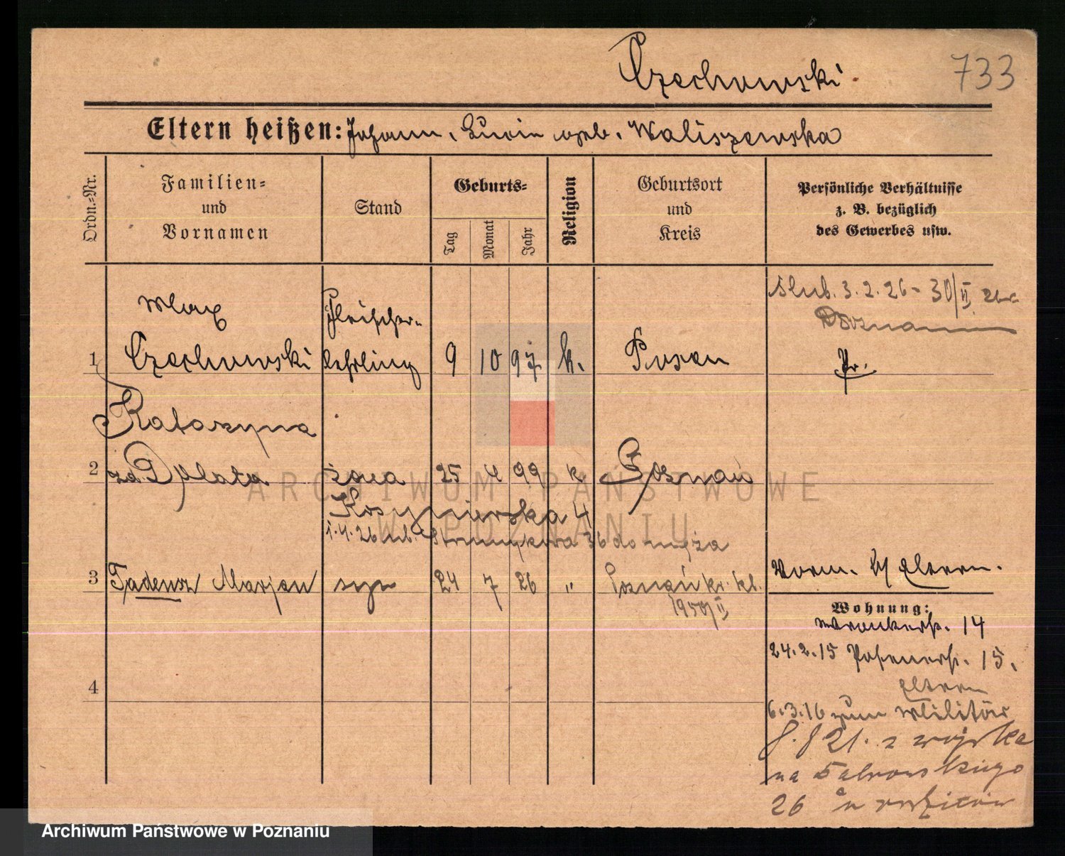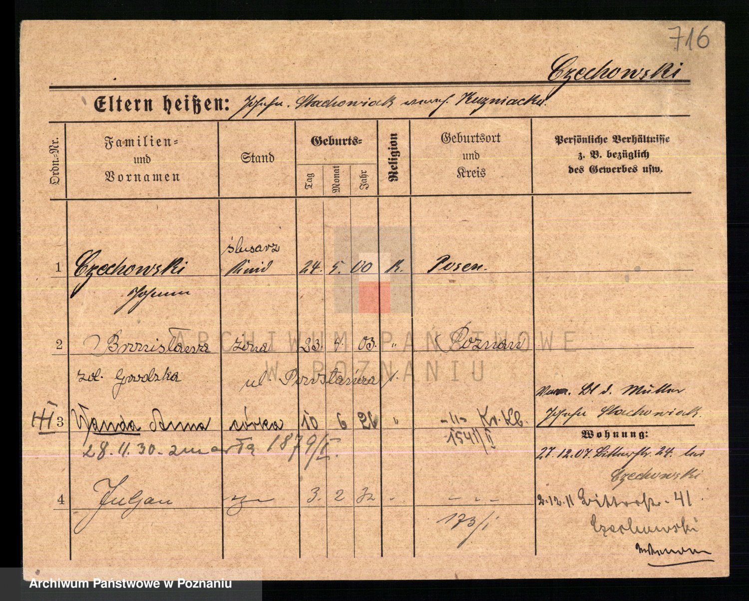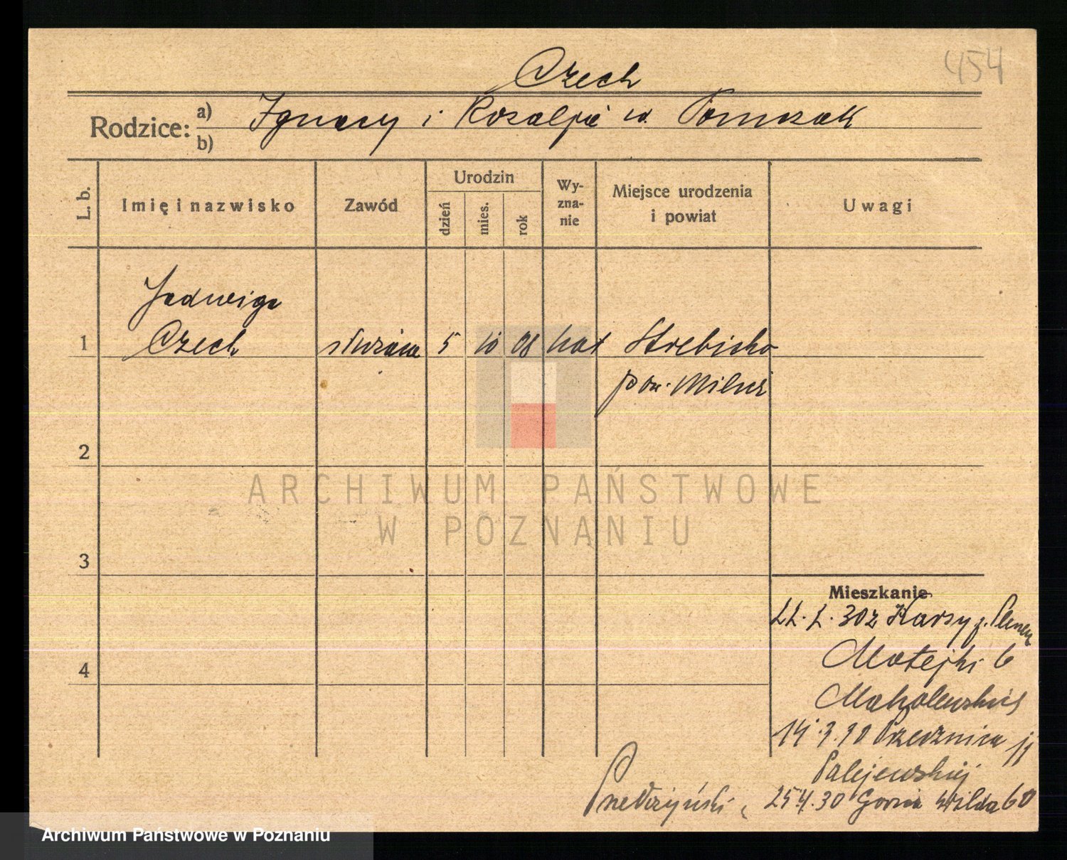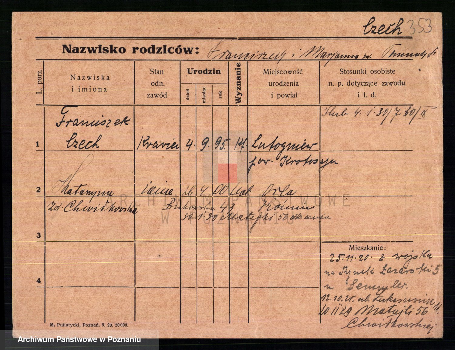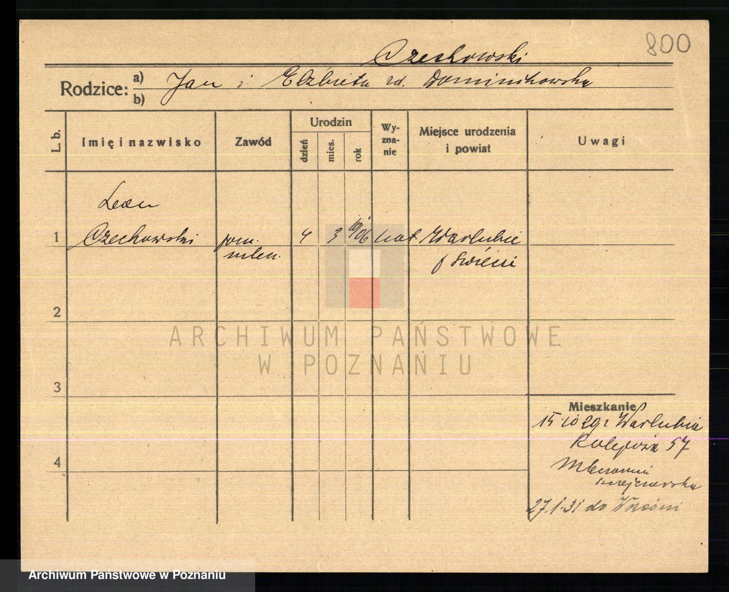 Podgląd karty osobowej dostępny jest po kliknięciu na nazwisko lub ikonkę karty. Można dokonywać powiększenia (ikony na górze) lub przechodzić między kolejnymi skanami (strzałki po bokach).