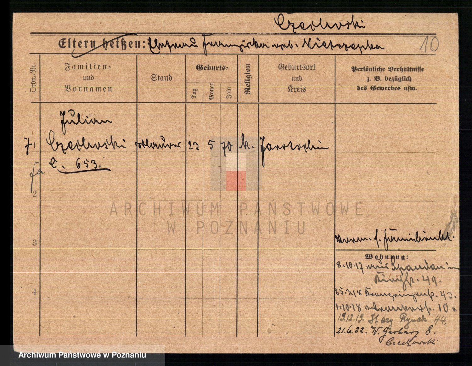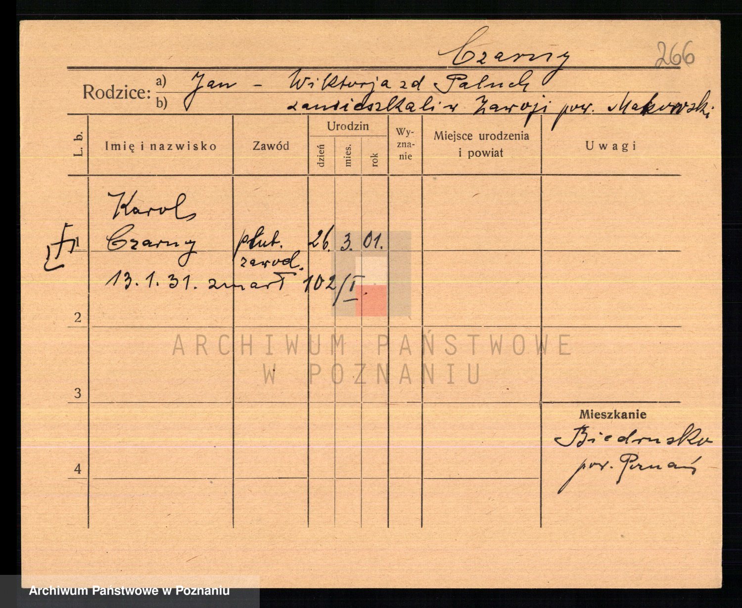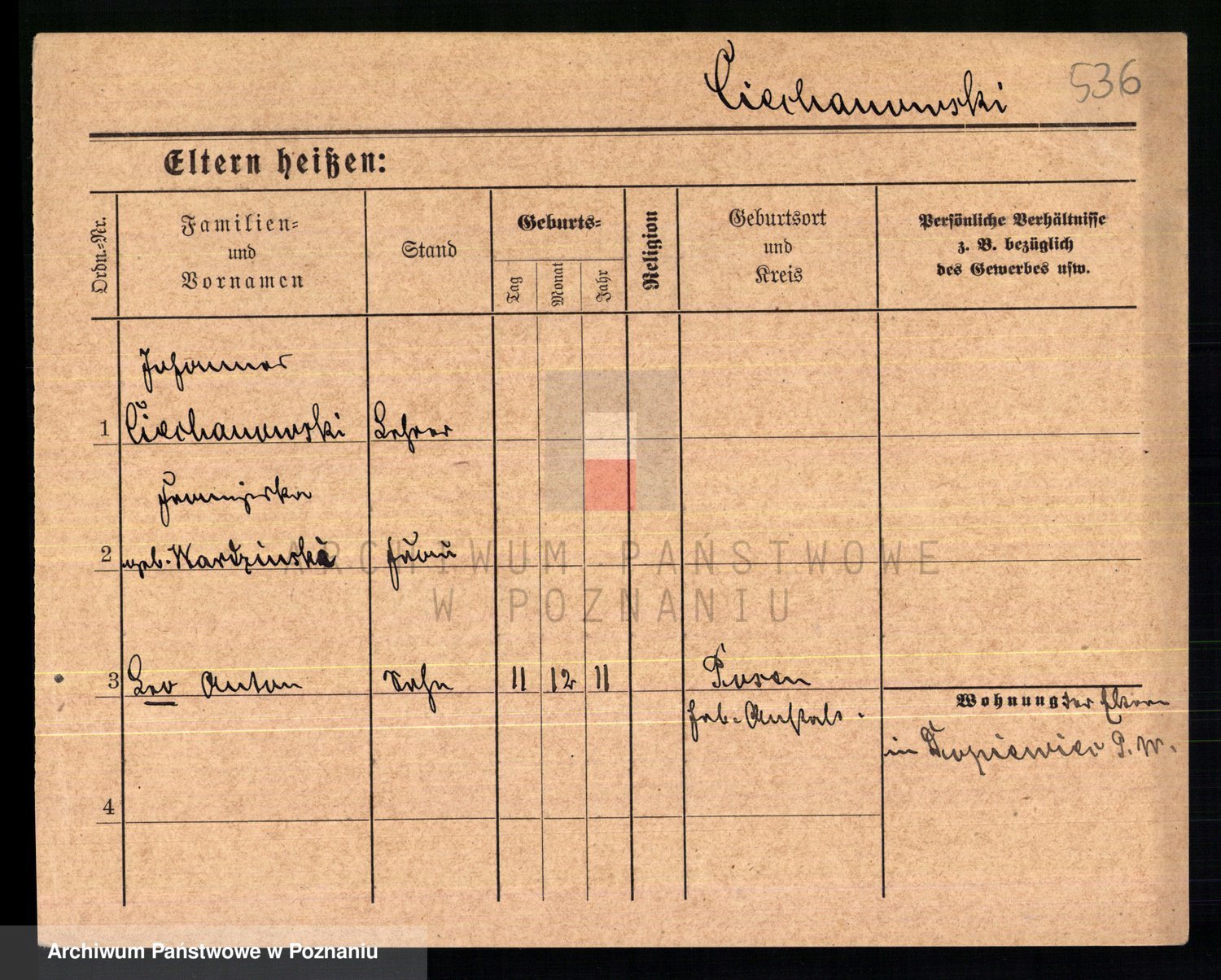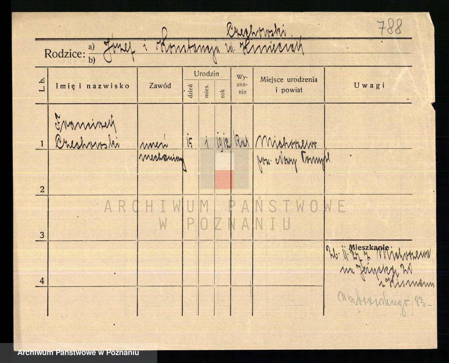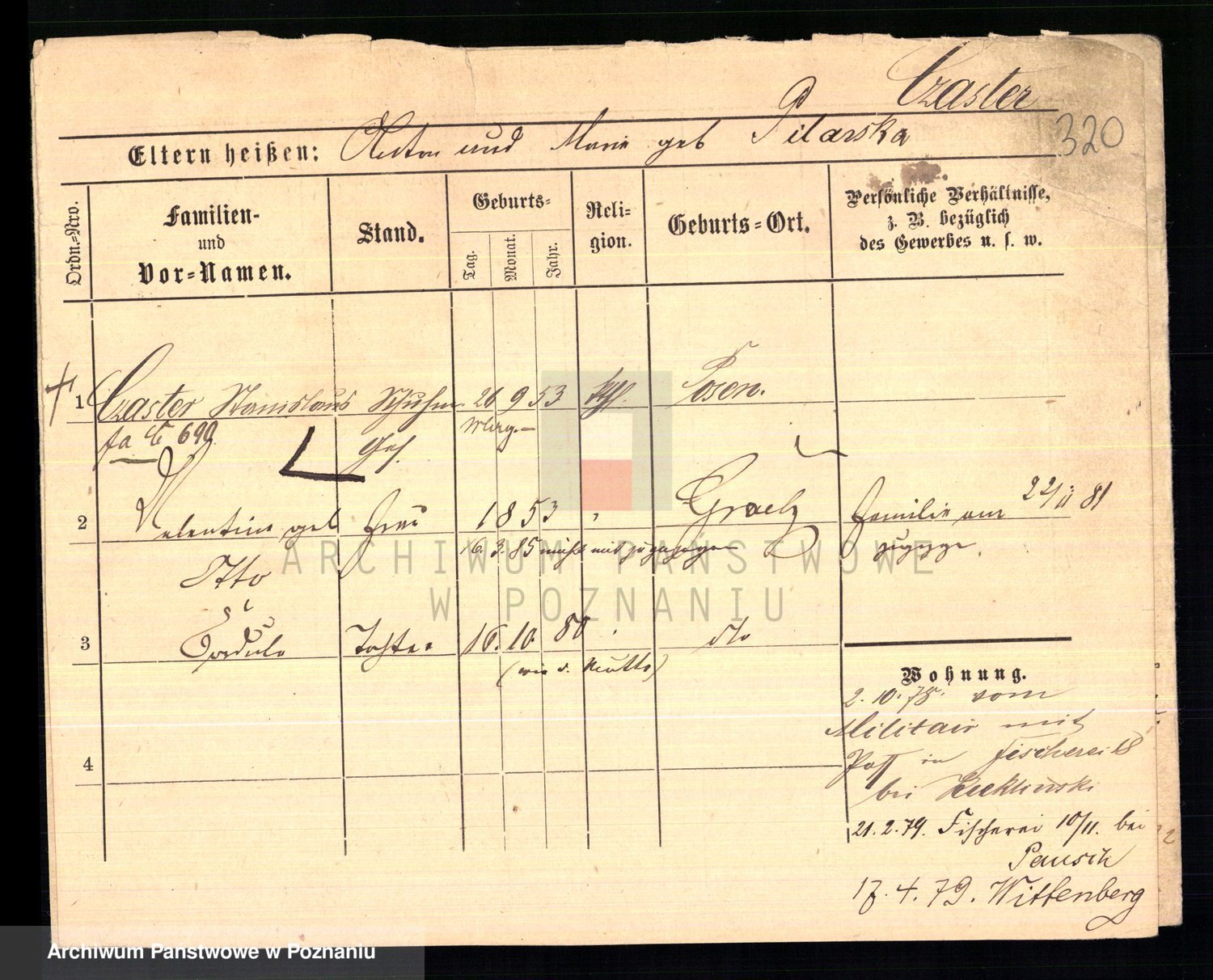 Podgląd karty osobowej dostępny jest po kliknięciu na nazwisko lub ikonkę karty. Można dokonywać powiększenia (ikony na górze) lub przechodzić między kolejnymi skanami (strzałki po bokach).