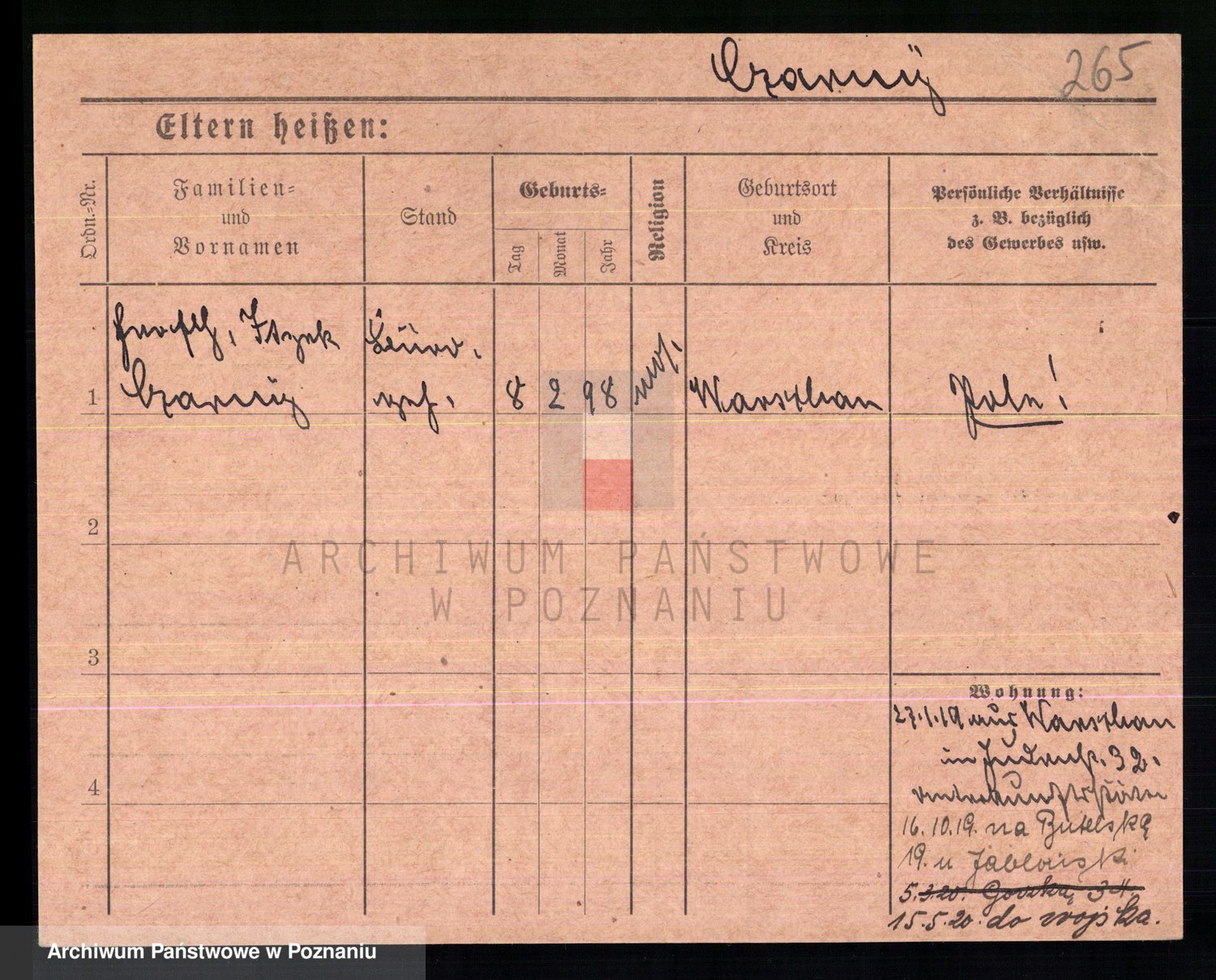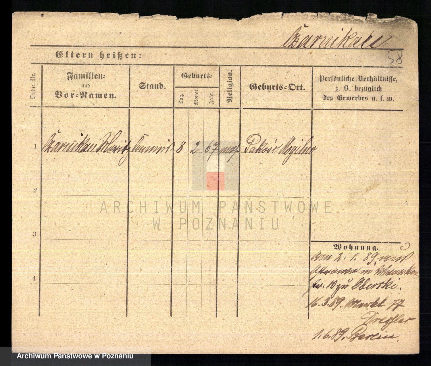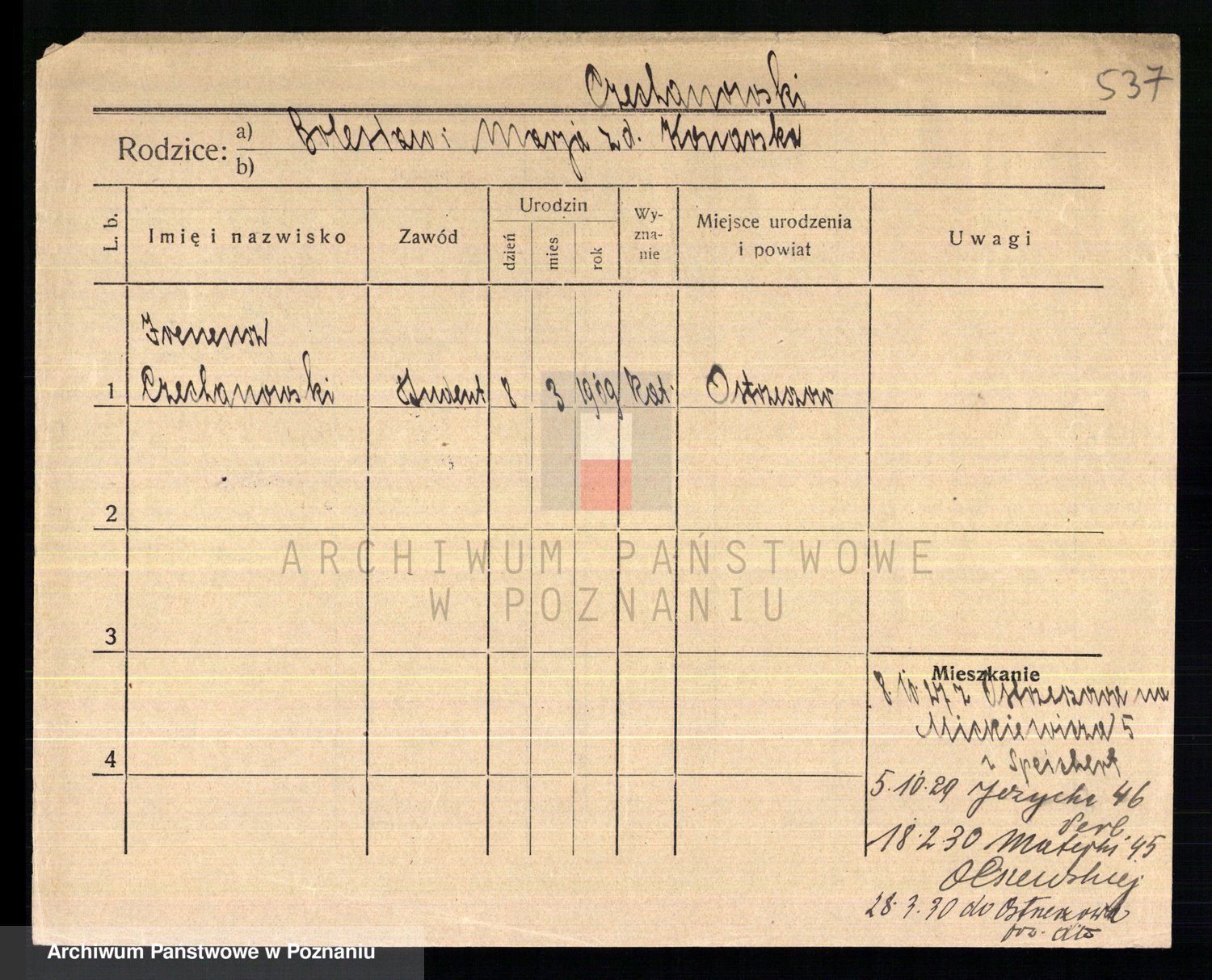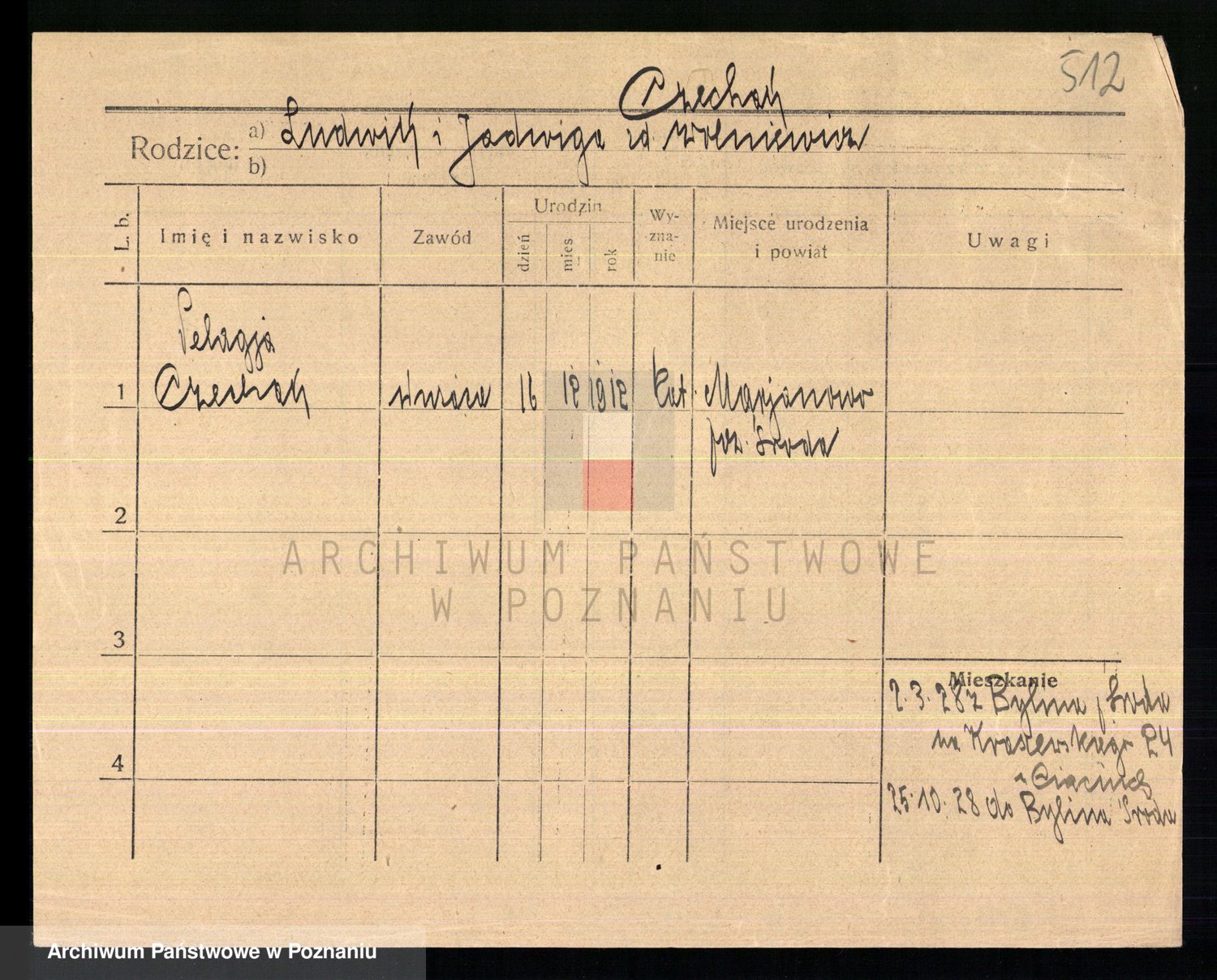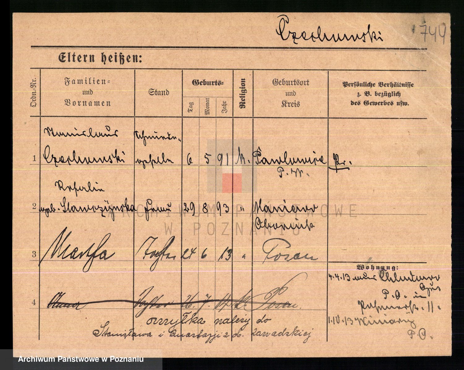 Podgląd karty osobowej dostępny jest po kliknięciu na nazwisko lub ikonkę karty. Można dokonywać powiększenia (ikony na górze) lub przechodzić między kolejnymi skanami (strzałki po bokach).