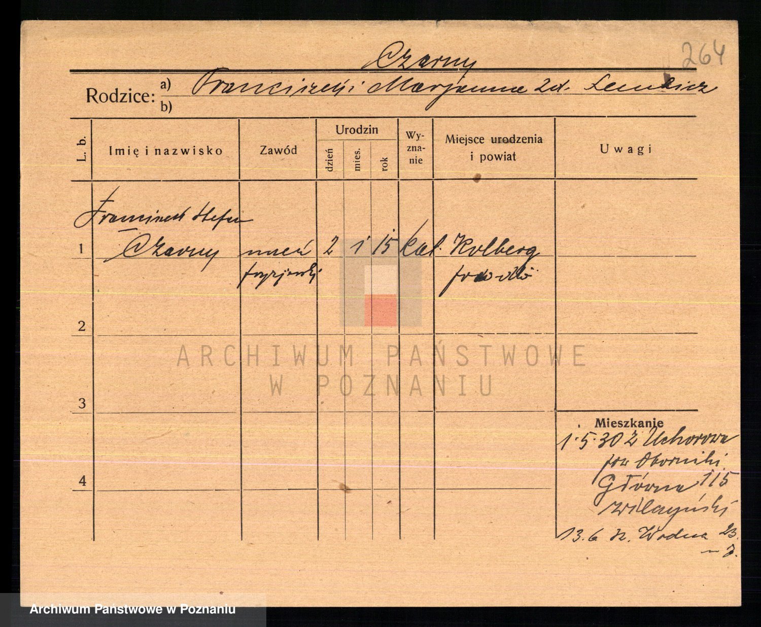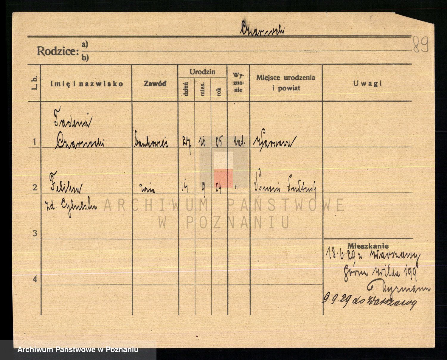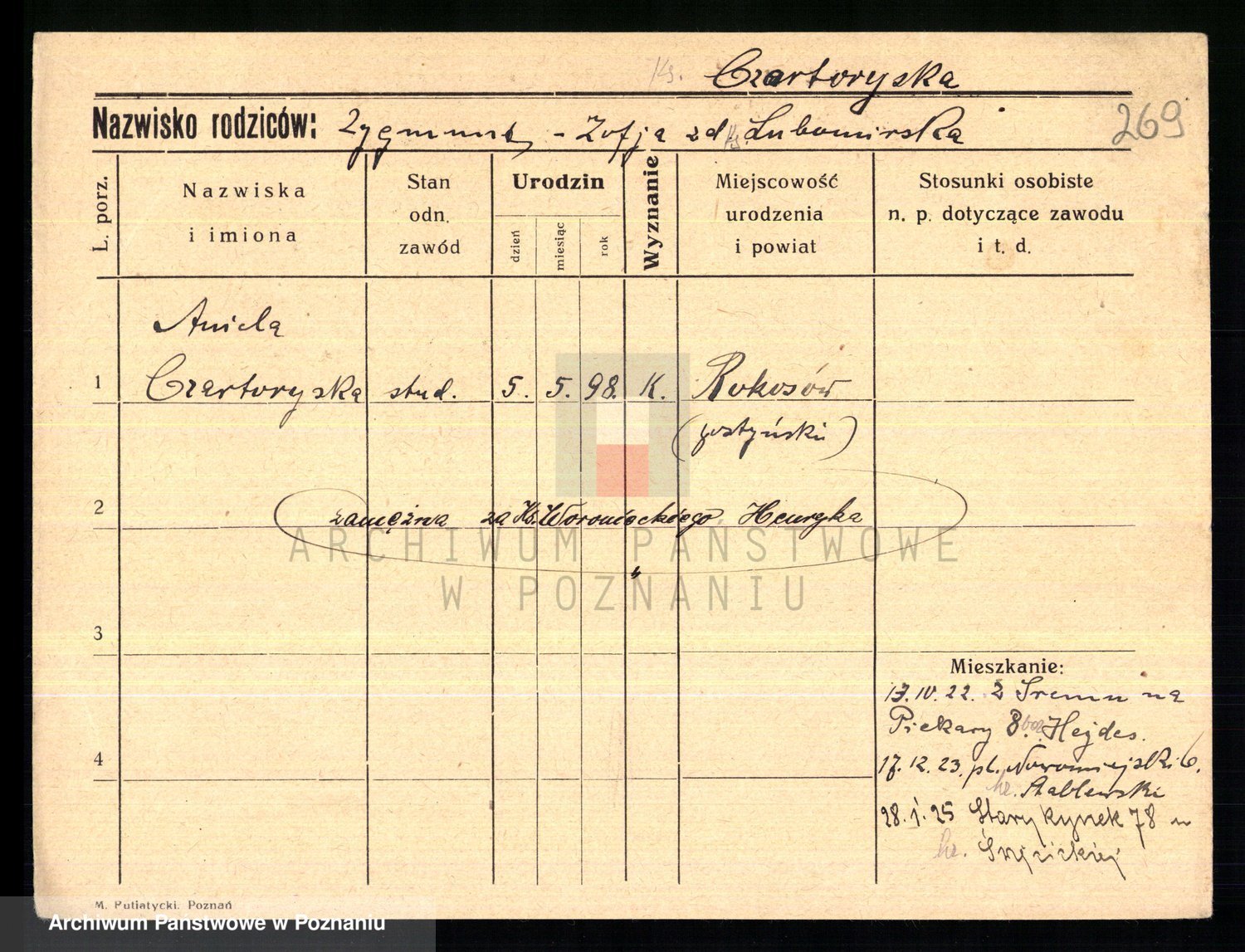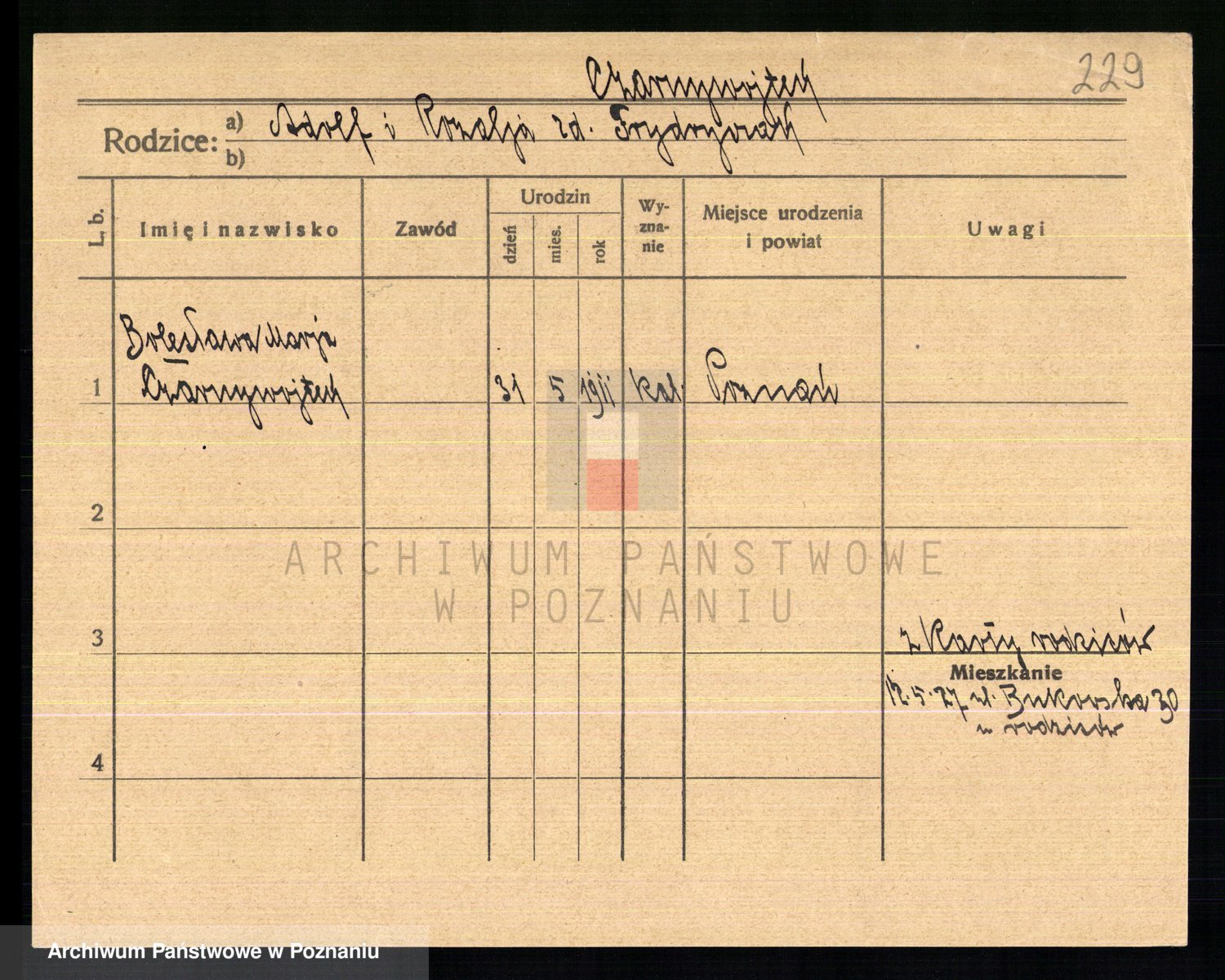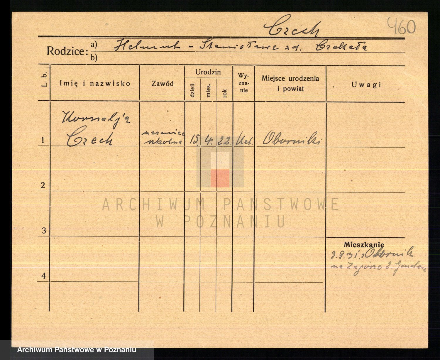 Podgląd karty osobowej dostępny jest po kliknięciu na nazwisko lub ikonkę karty. Można dokonywać powiększenia (ikony na górze) lub przechodzić między kolejnymi skanami (strzałki po bokach).