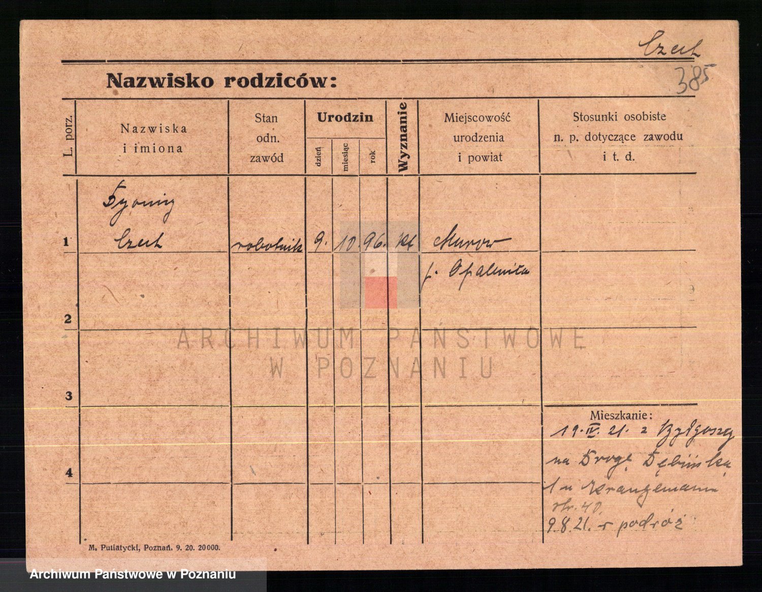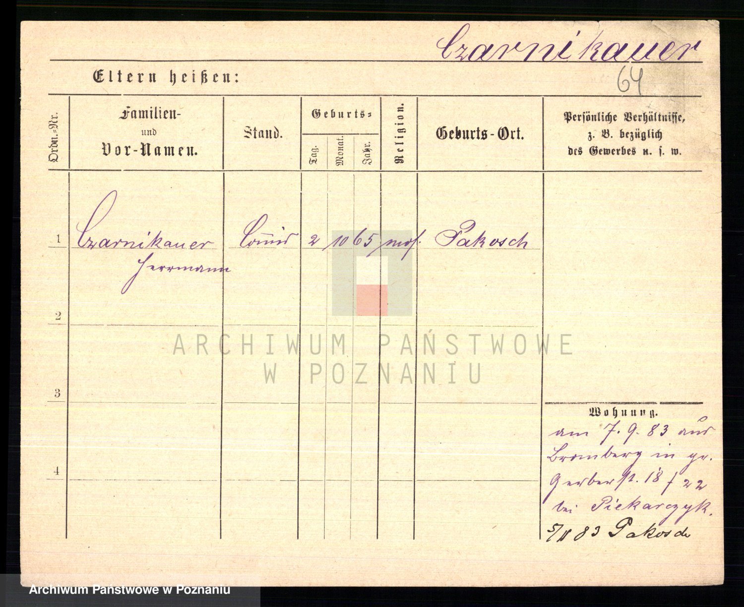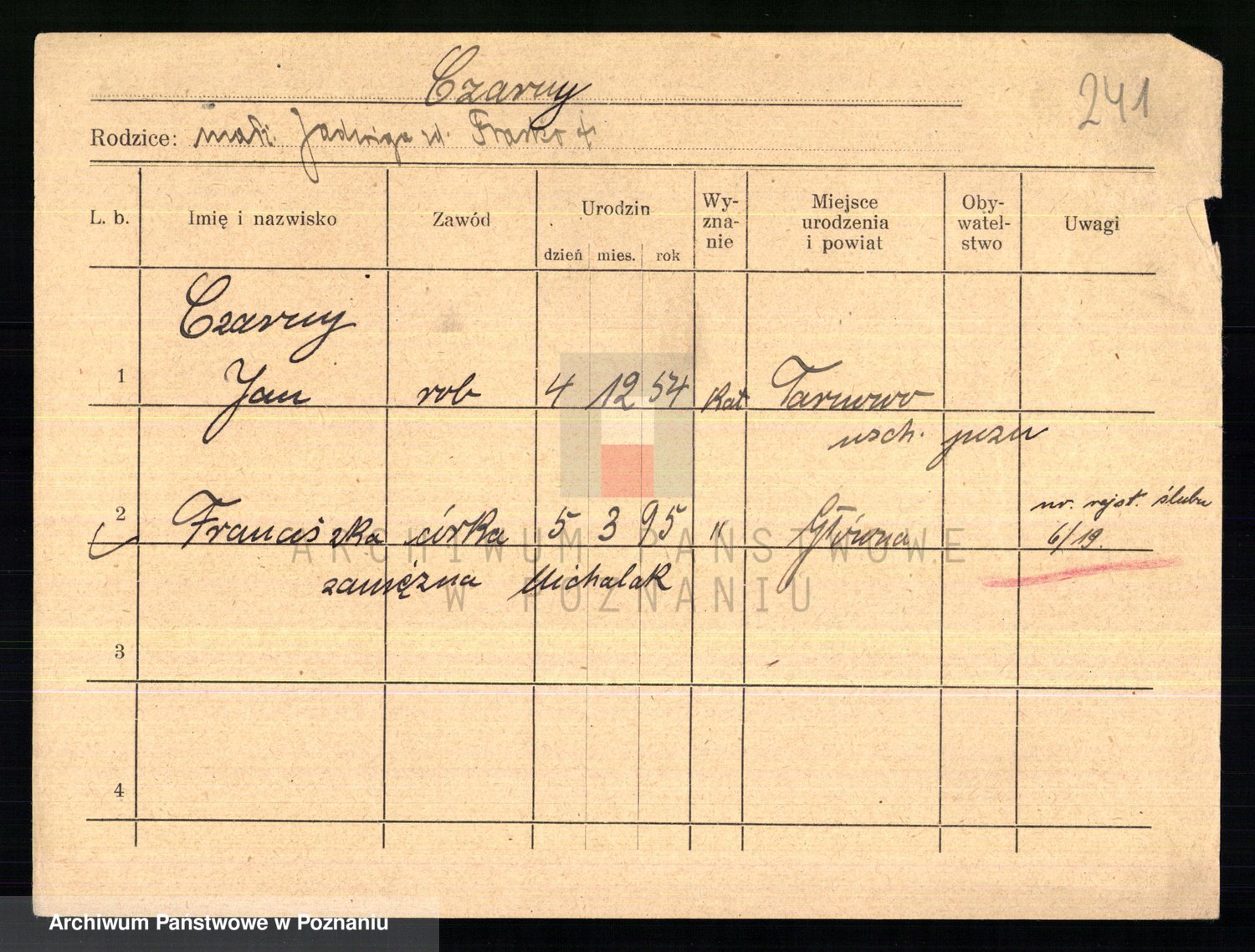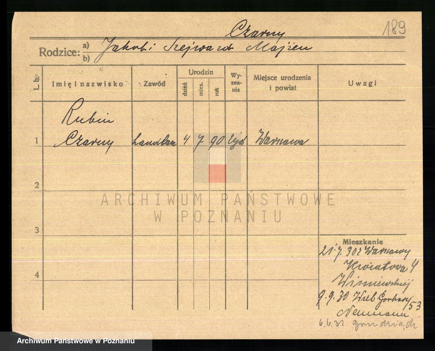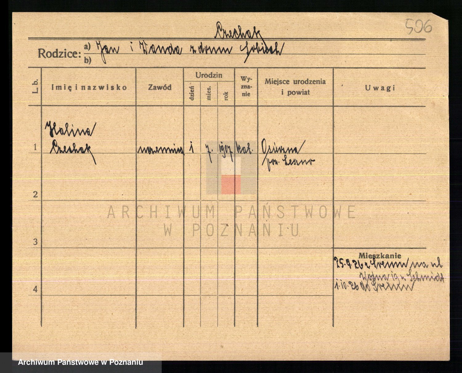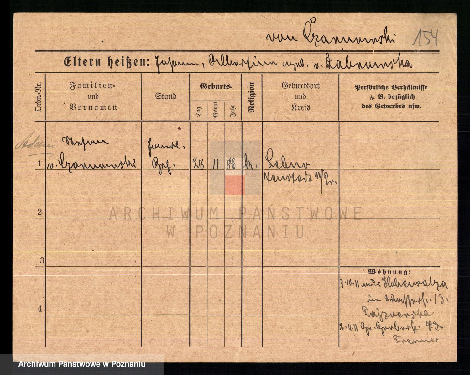 Podgląd karty osobowej dostępny jest po kliknięciu na nazwisko lub ikonkę karty. Można dokonywać powiększenia (ikony na górze) lub przechodzić między kolejnymi skanami (strzałki po bokach).