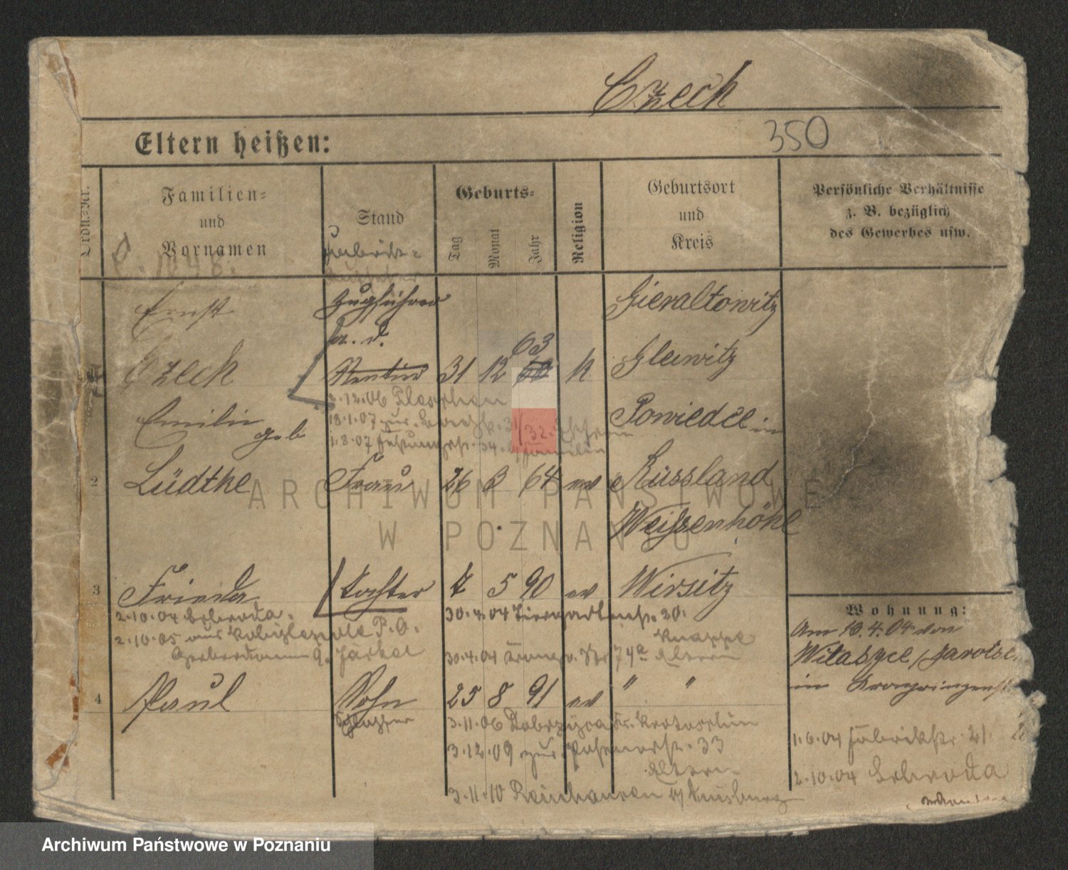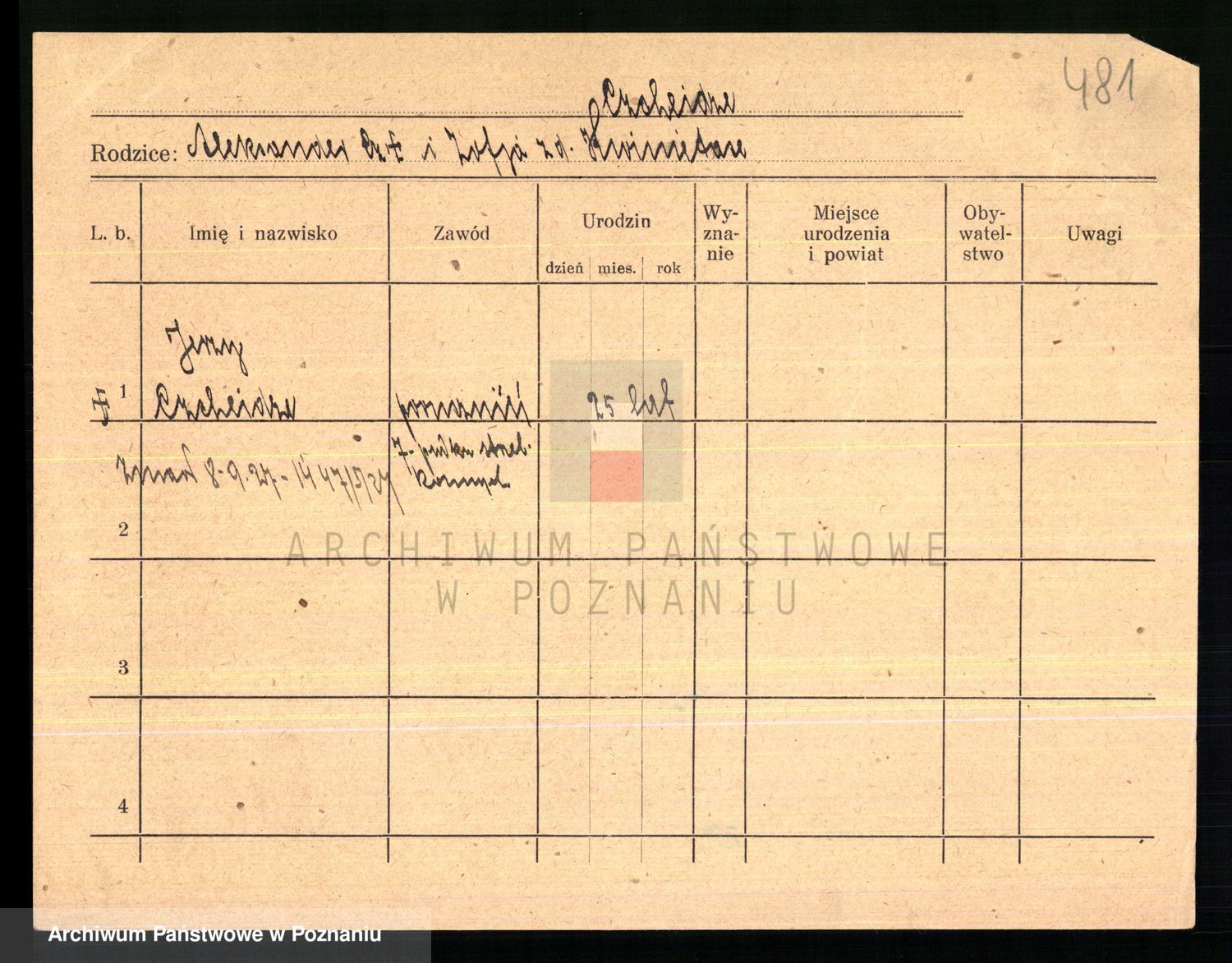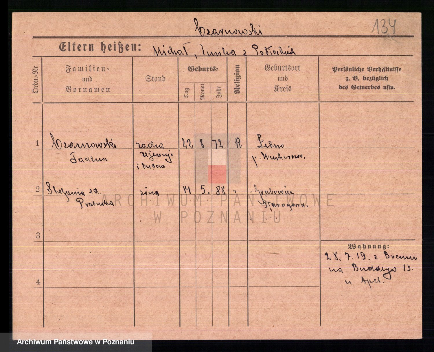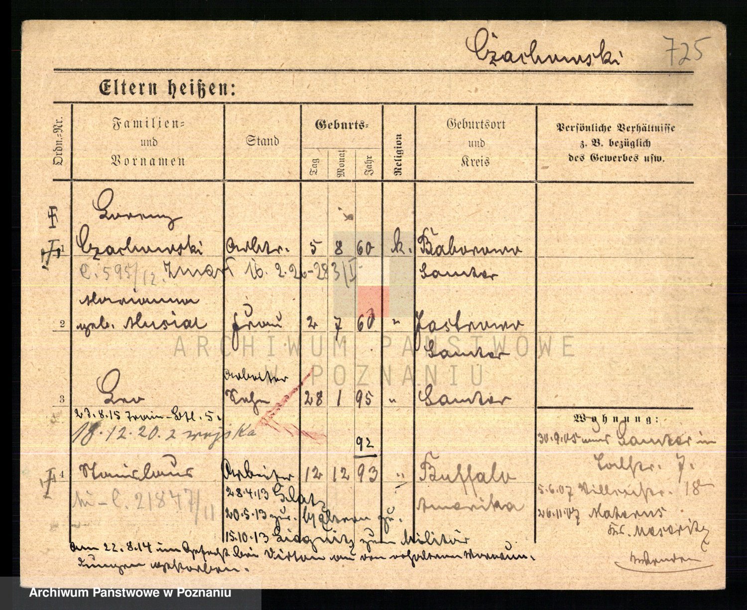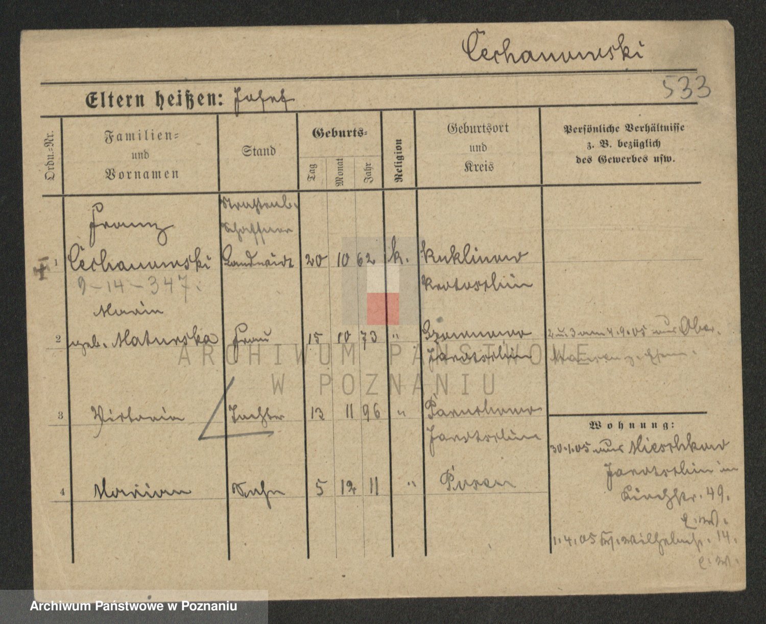 Podgląd karty osobowej dostępny jest po kliknięciu na nazwisko lub ikonkę karty. Można dokonywać powiększenia (ikony na górze) lub przechodzić między kolejnymi skanami (strzałki po bokach).
