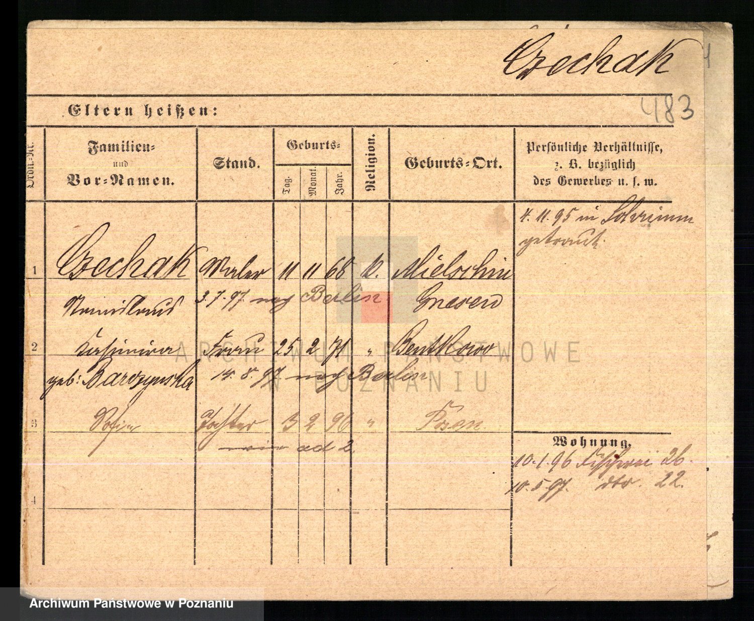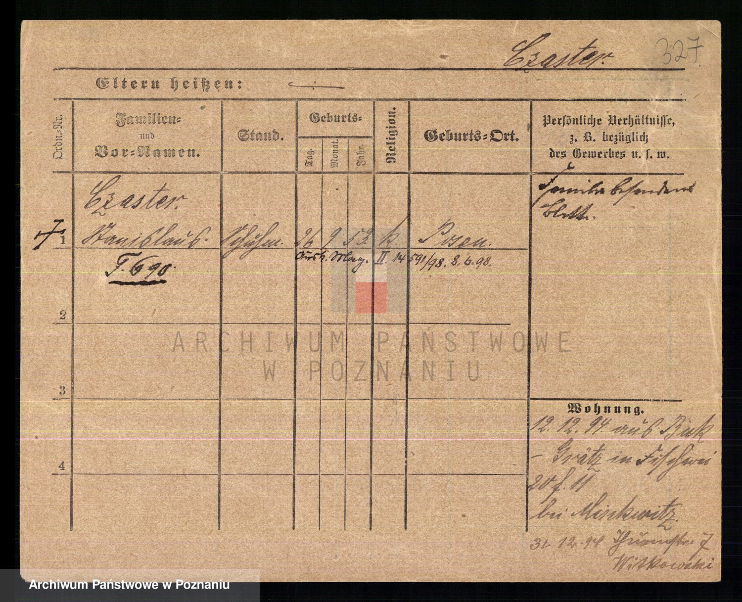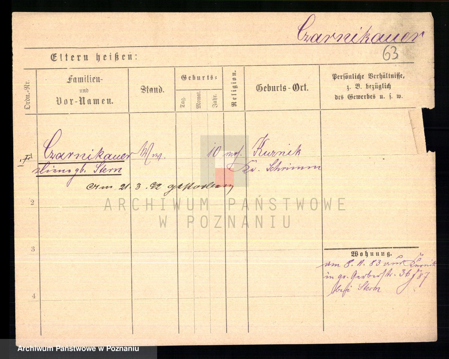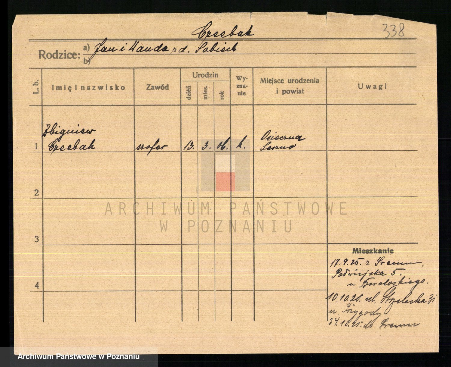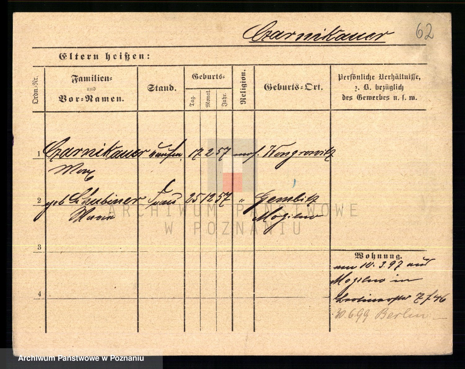 Podgląd karty osobowej dostępny jest po kliknięciu na nazwisko lub ikonkę karty. Można dokonywać powiększenia (ikony na górze) lub przechodzić między kolejnymi skanami (strzałki po bokach).