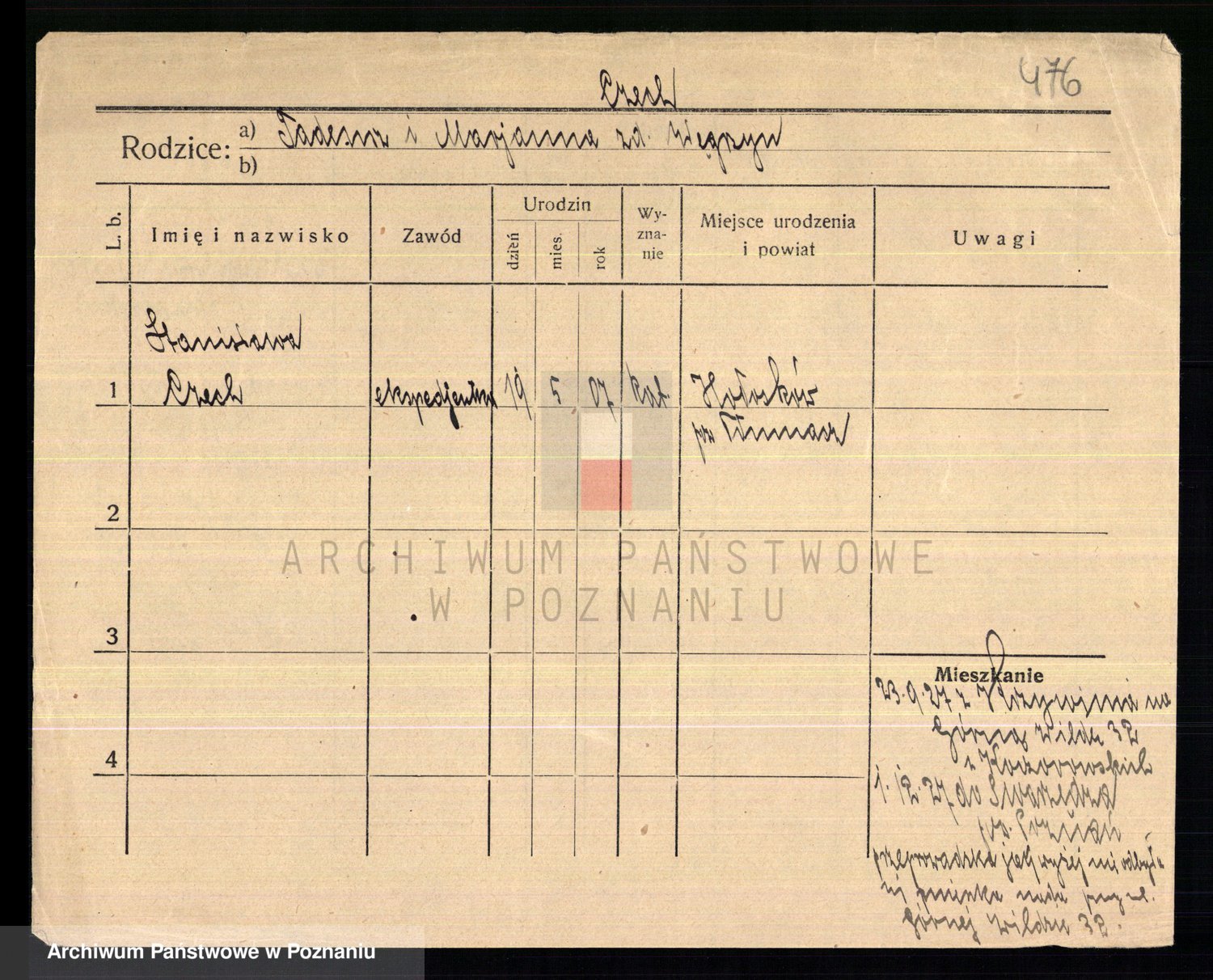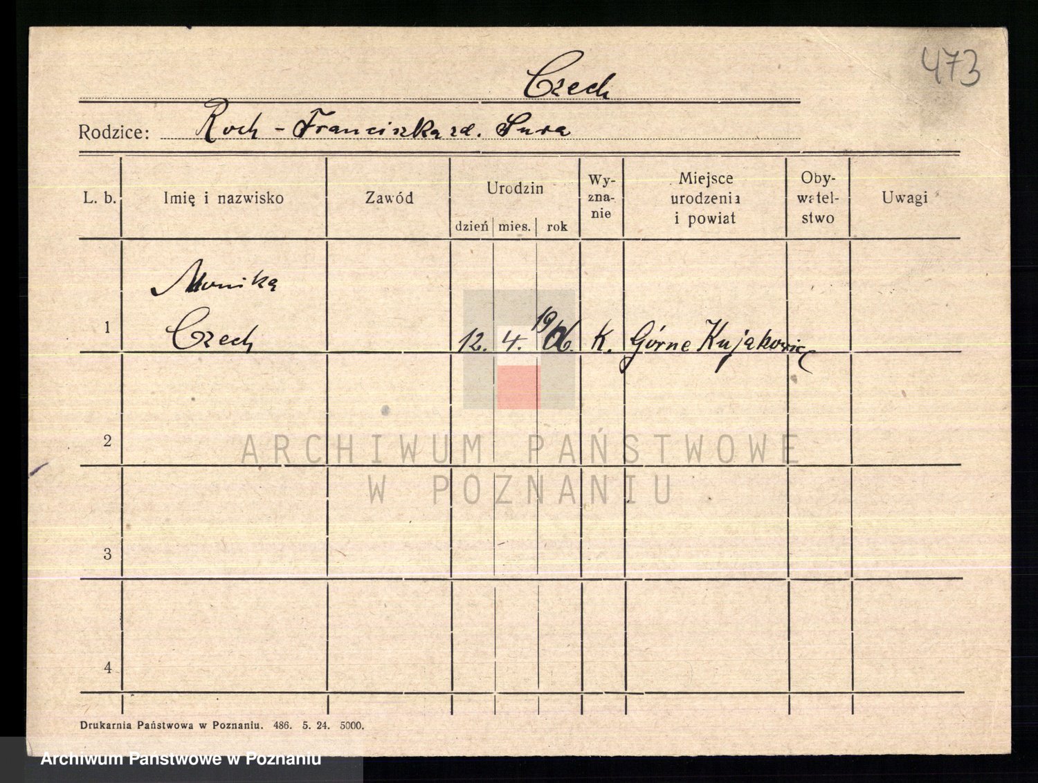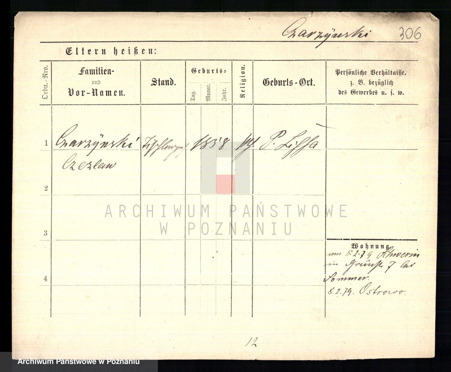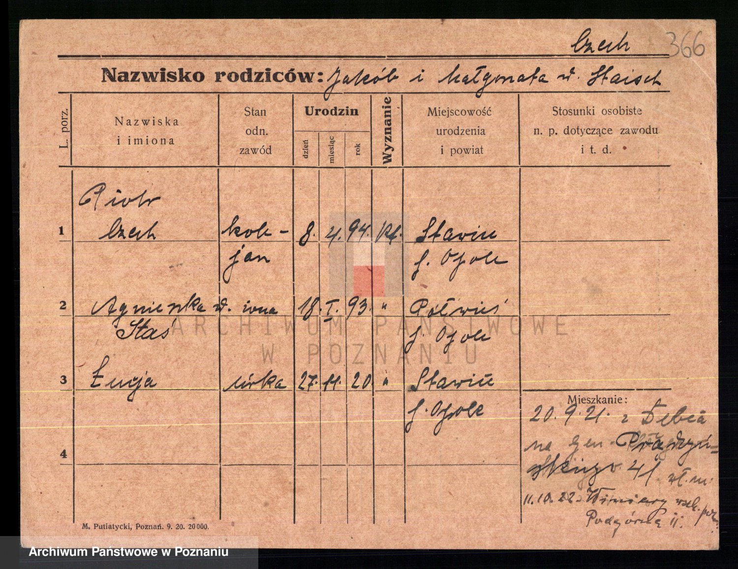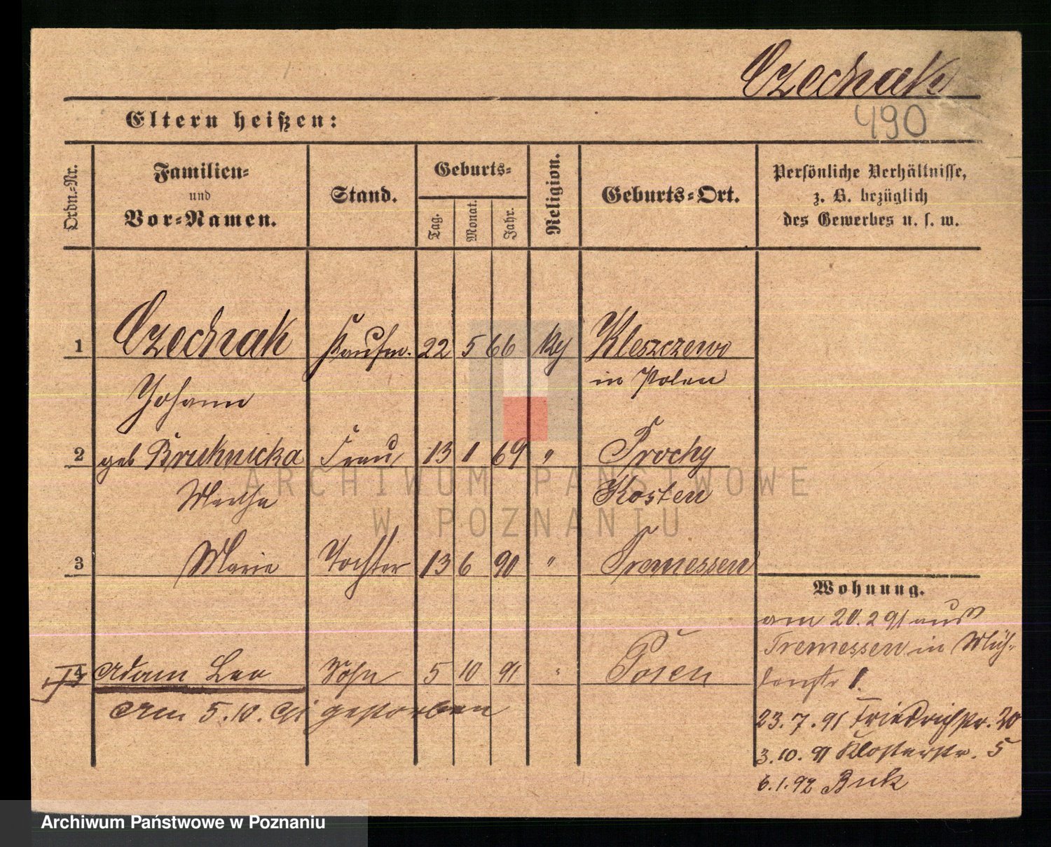 Podgląd karty osobowej dostępny jest po kliknięciu na nazwisko lub ikonkę karty. Można dokonywać powiększenia (ikony na górze) lub przechodzić między kolejnymi skanami (strzałki po bokach).