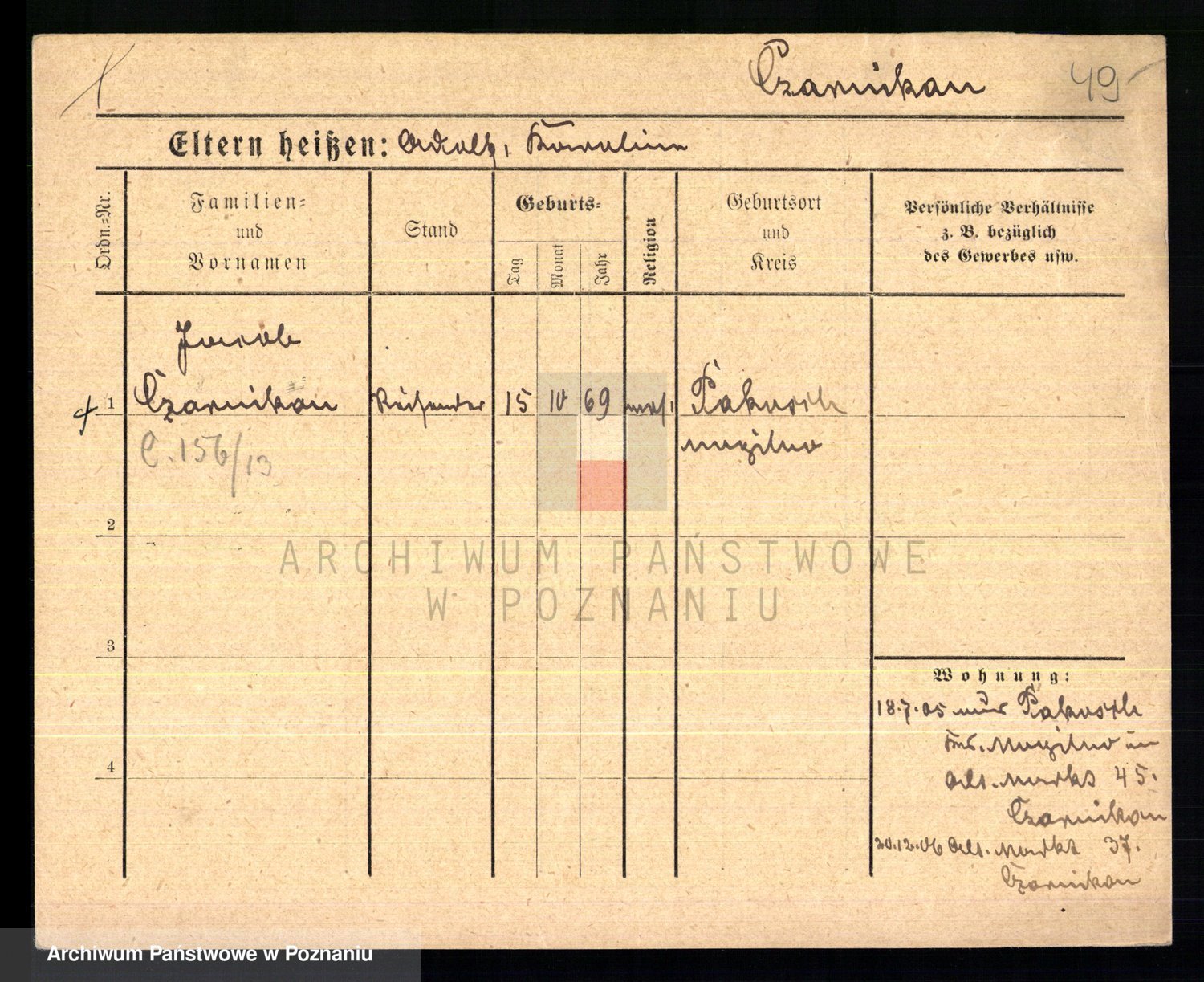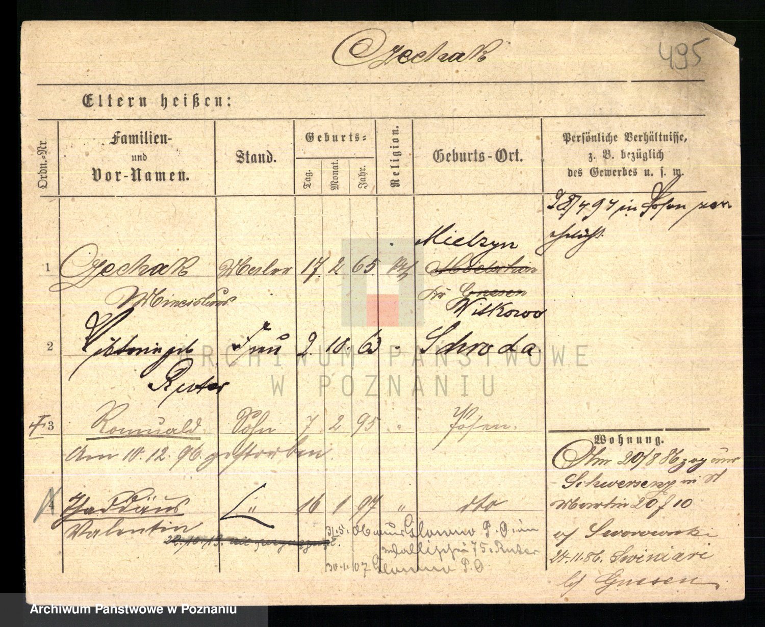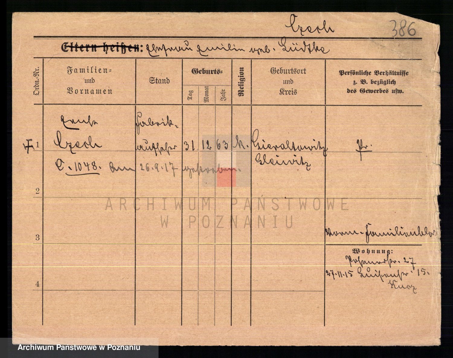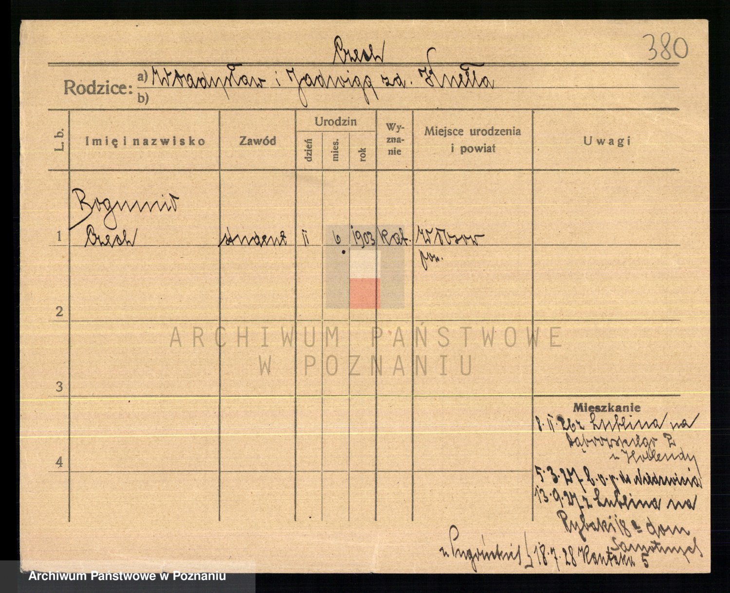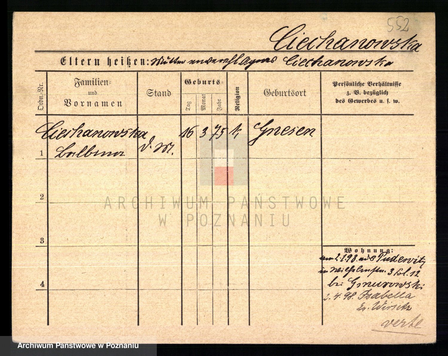 Podgląd karty osobowej dostępny jest po kliknięciu na nazwisko lub ikonkę karty. Można dokonywać powiększenia (ikony na górze) lub przechodzić między kolejnymi skanami (strzałki po bokach).