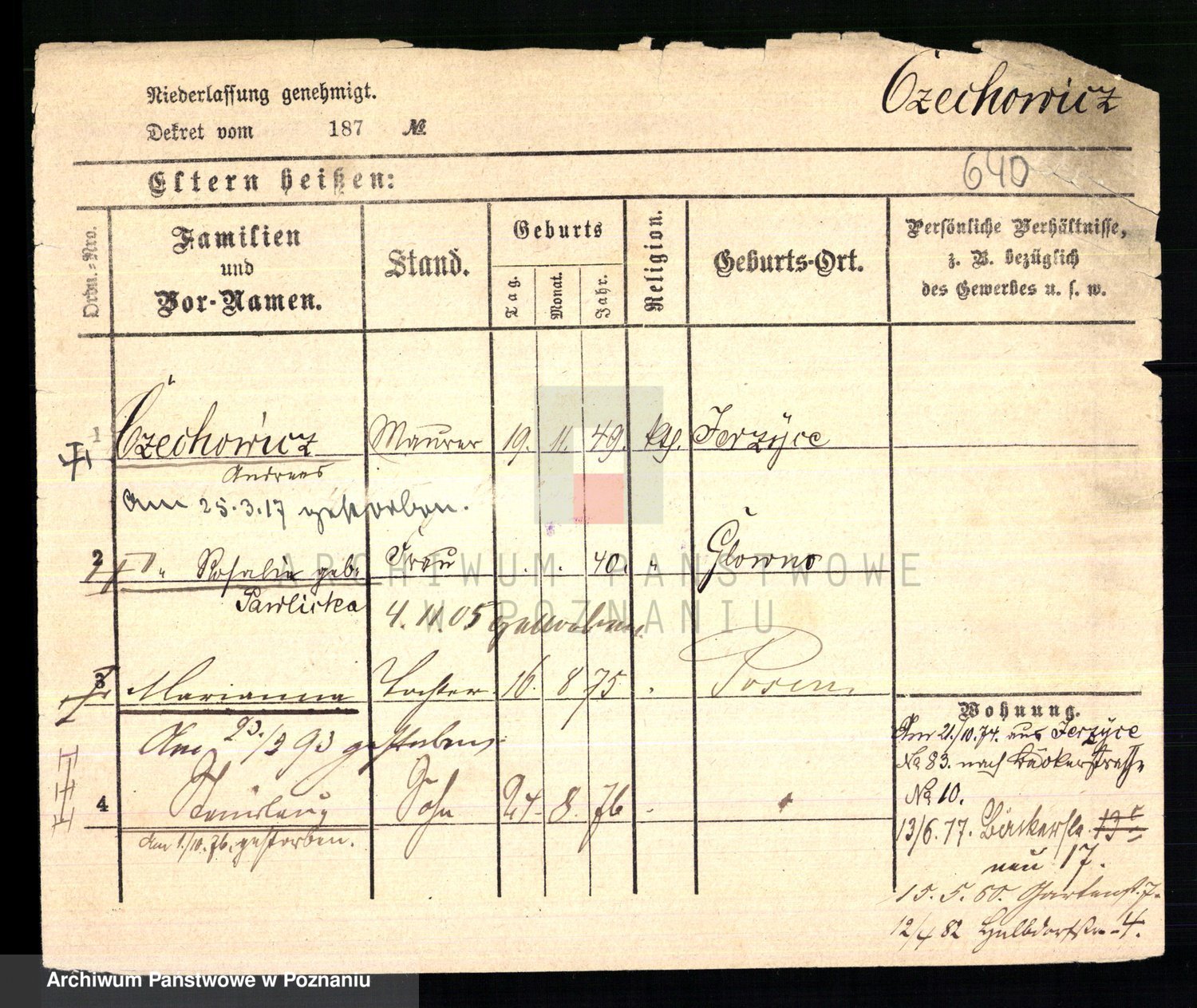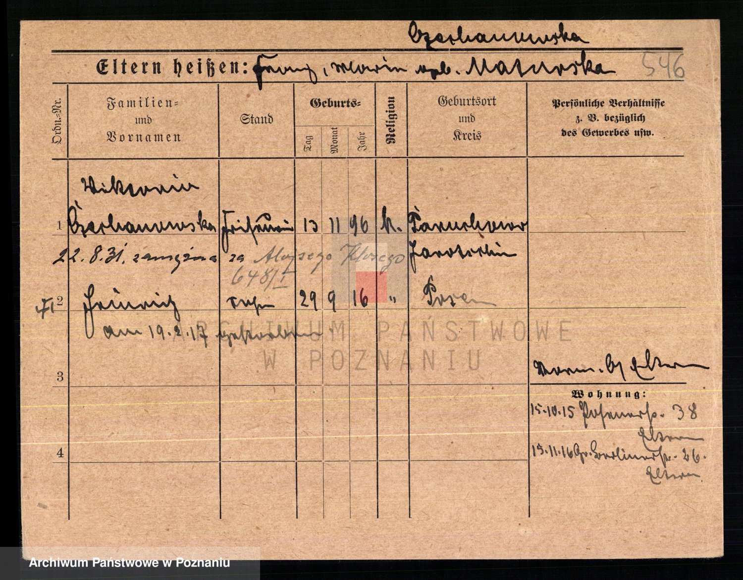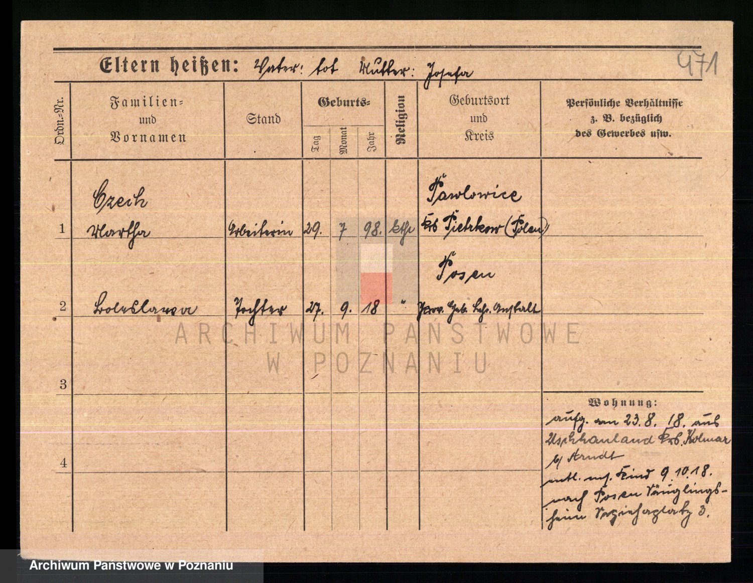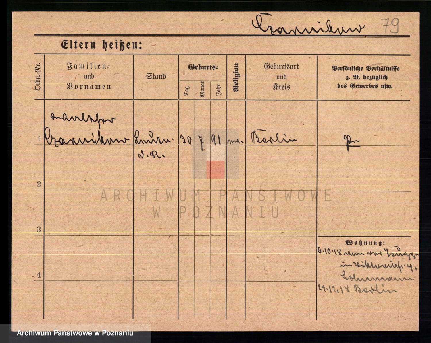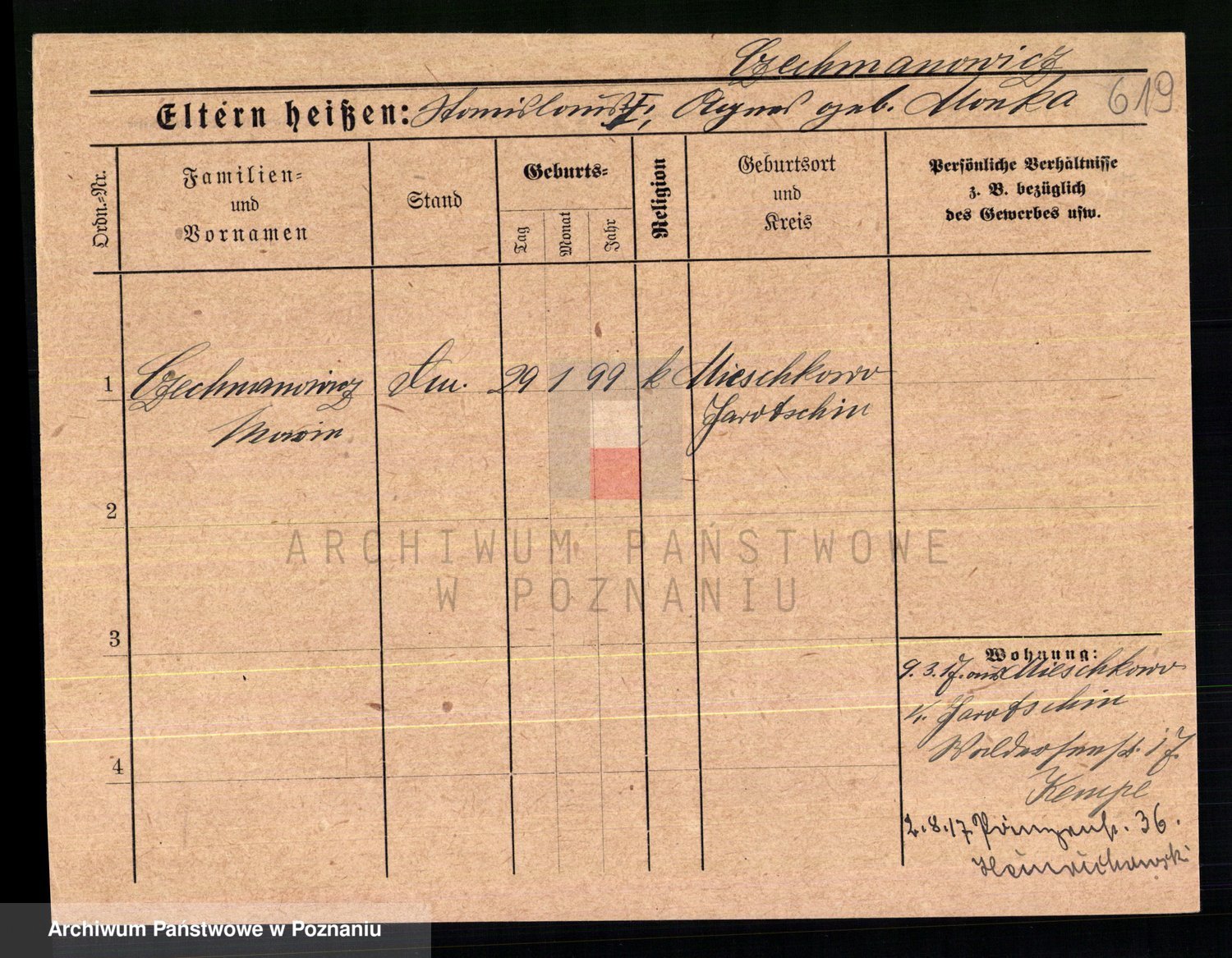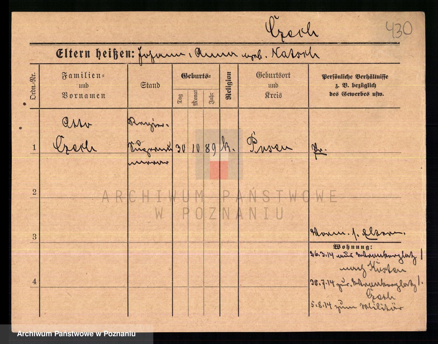 Podgląd karty osobowej dostępny jest po kliknięciu na nazwisko lub ikonkę karty. Można dokonywać powiększenia (ikony na górze) lub przechodzić między kolejnymi skanami (strzałki po bokach).