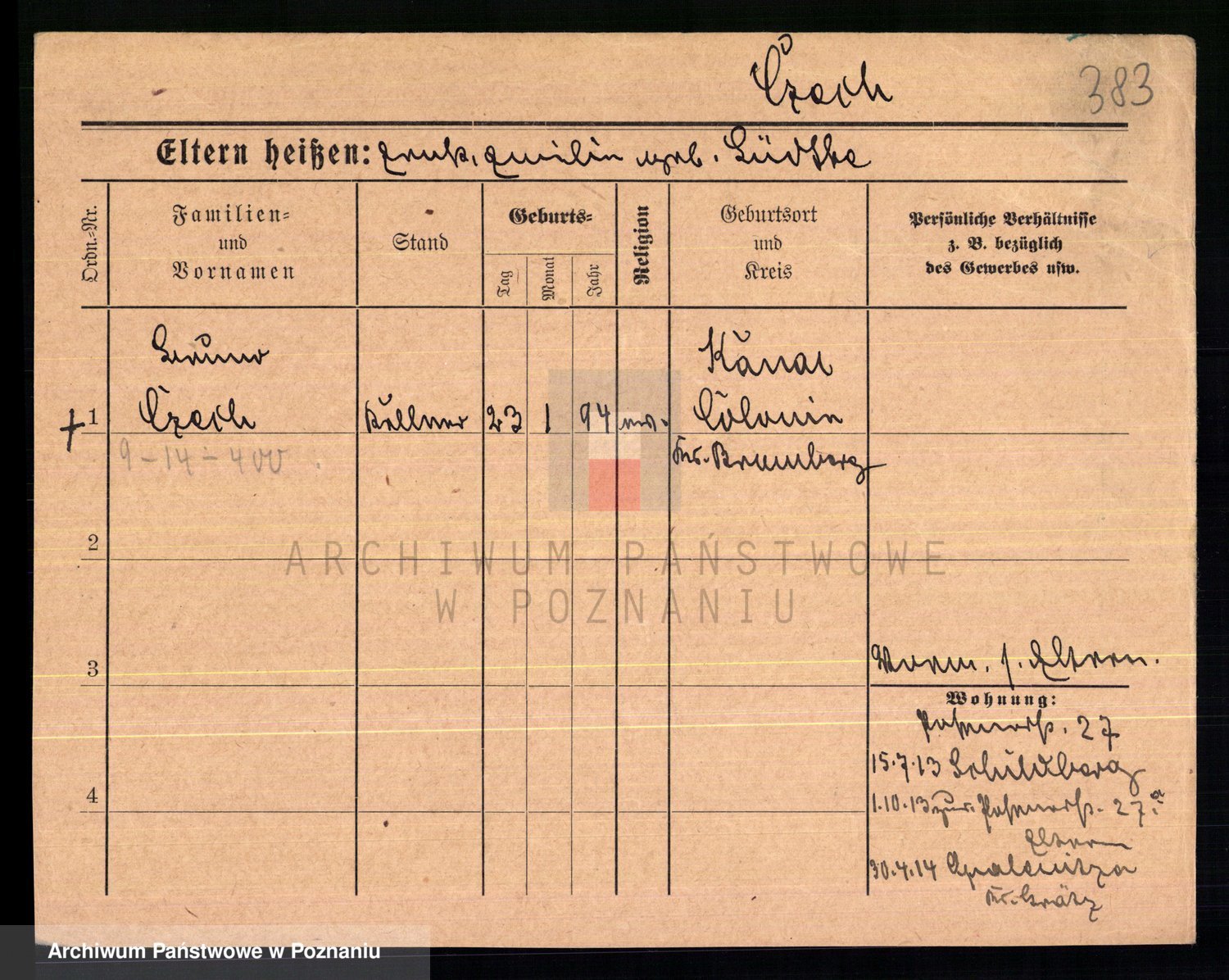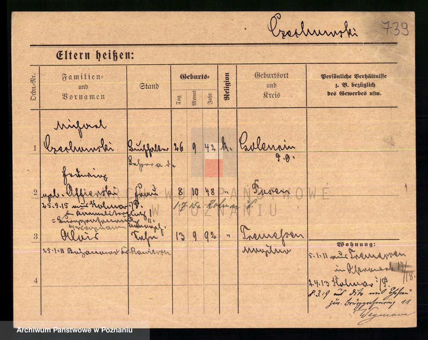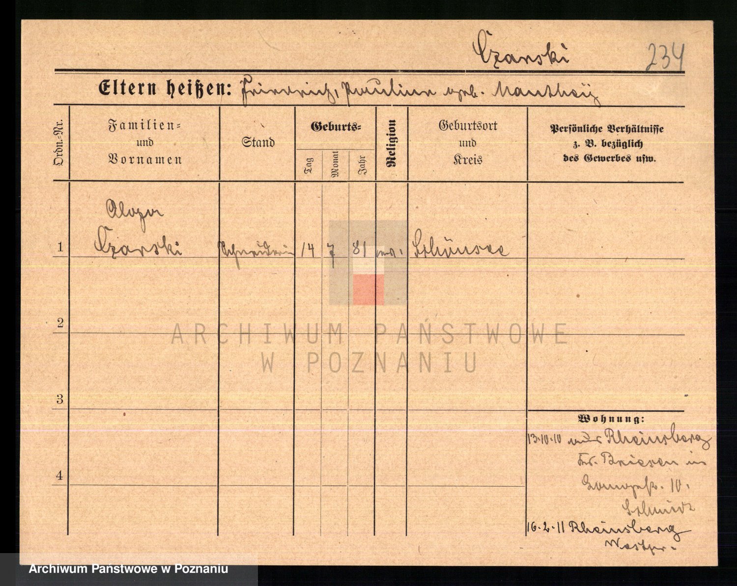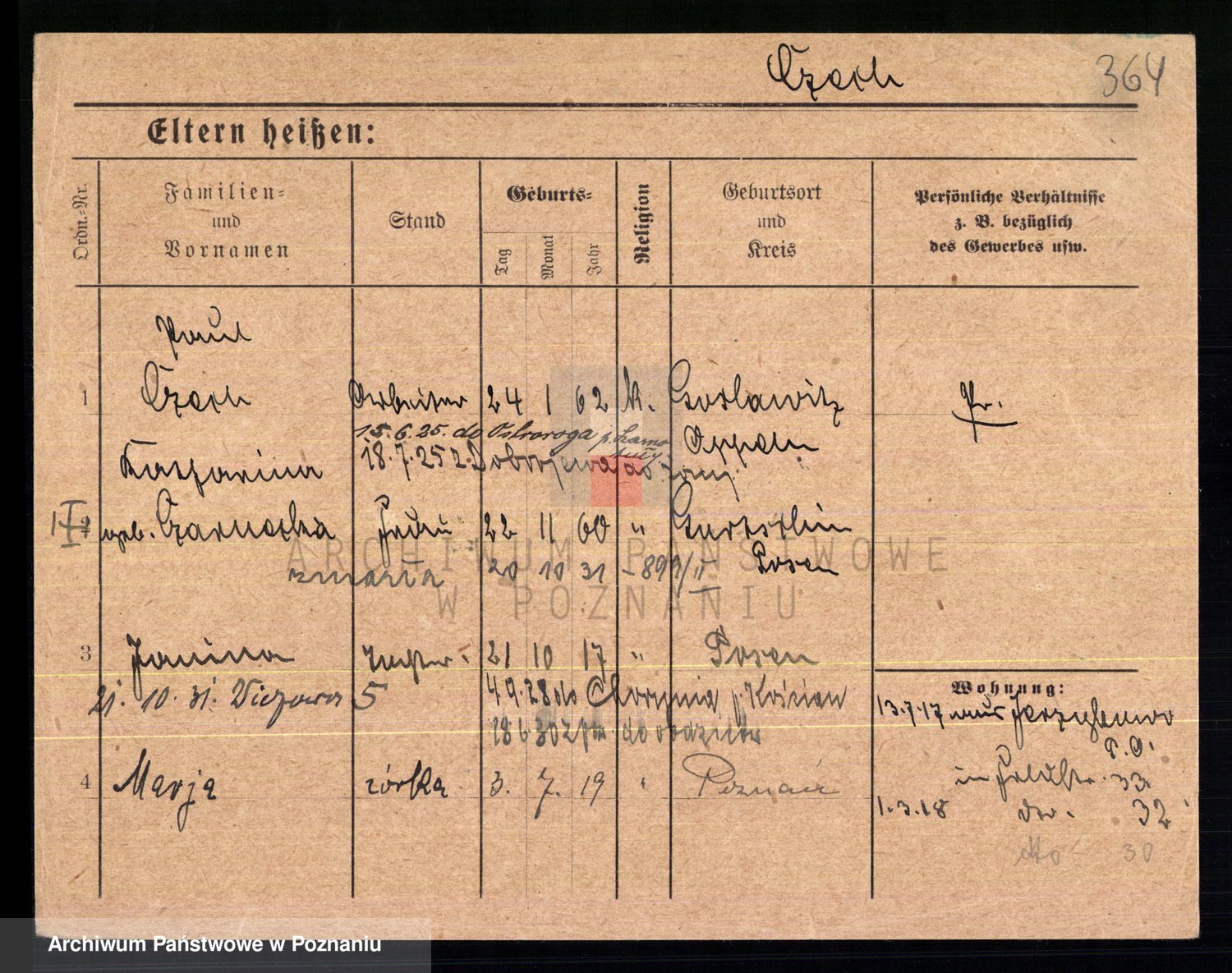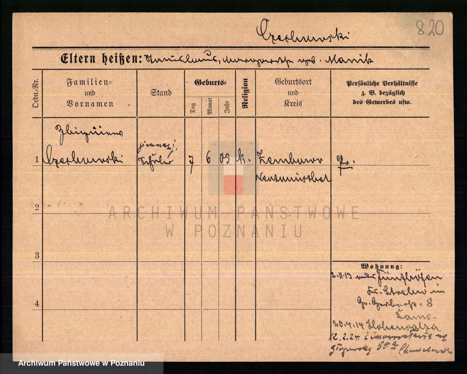 Podgląd karty osobowej dostępny jest po kliknięciu na nazwisko lub ikonkę karty. Można dokonywać powiększenia (ikony na górze) lub przechodzić między kolejnymi skanami (strzałki po bokach).