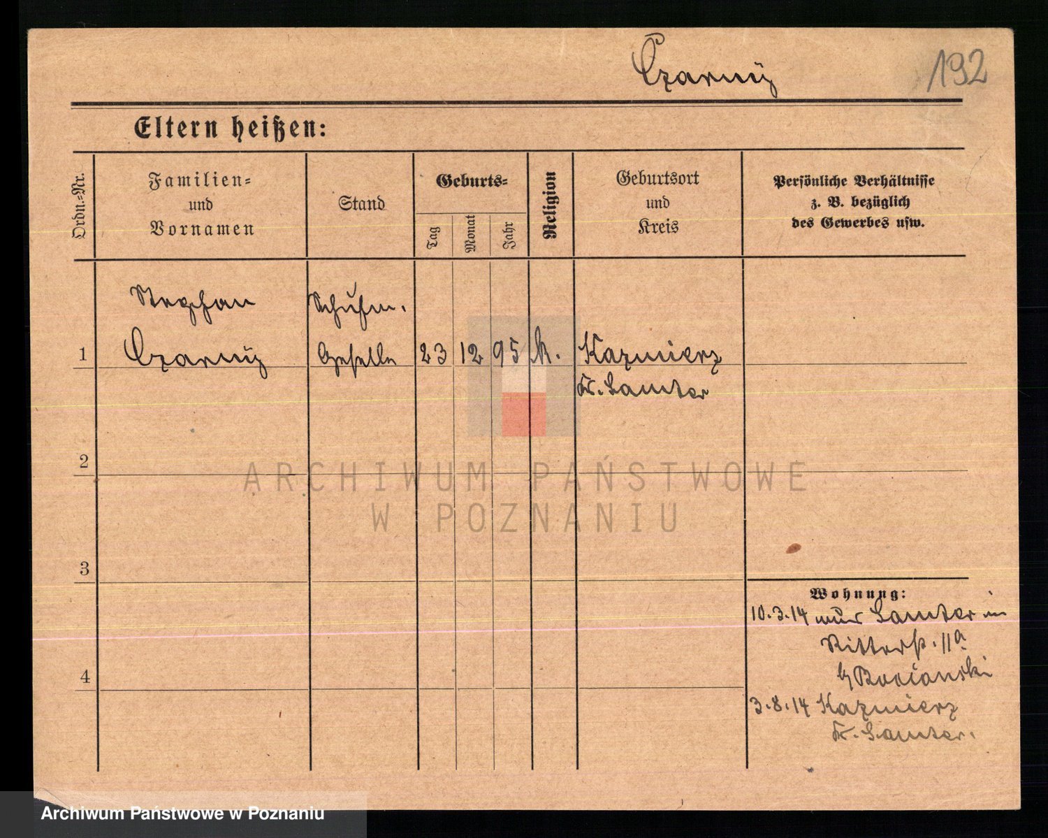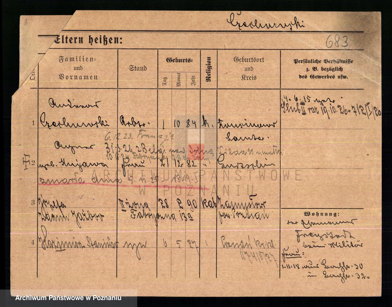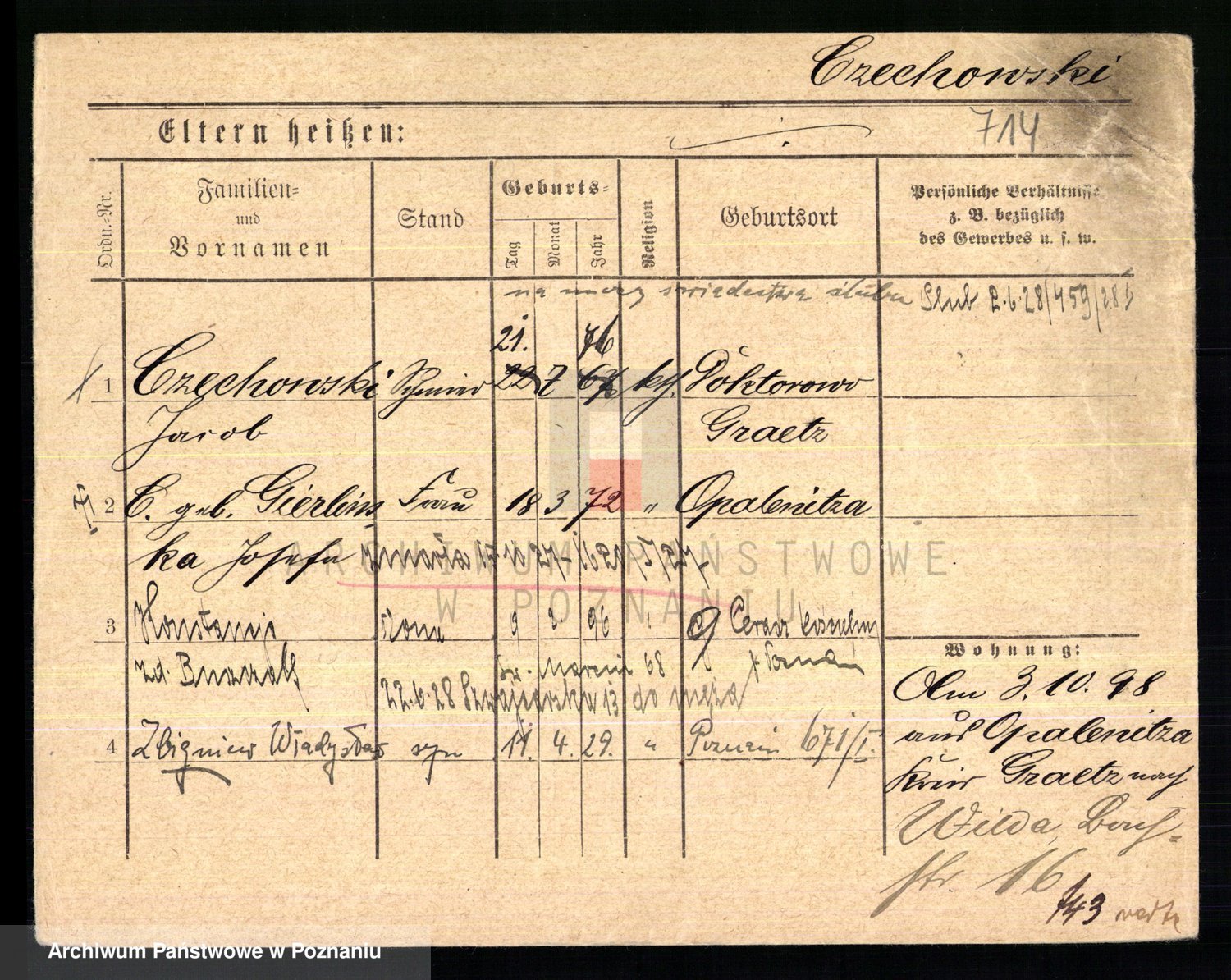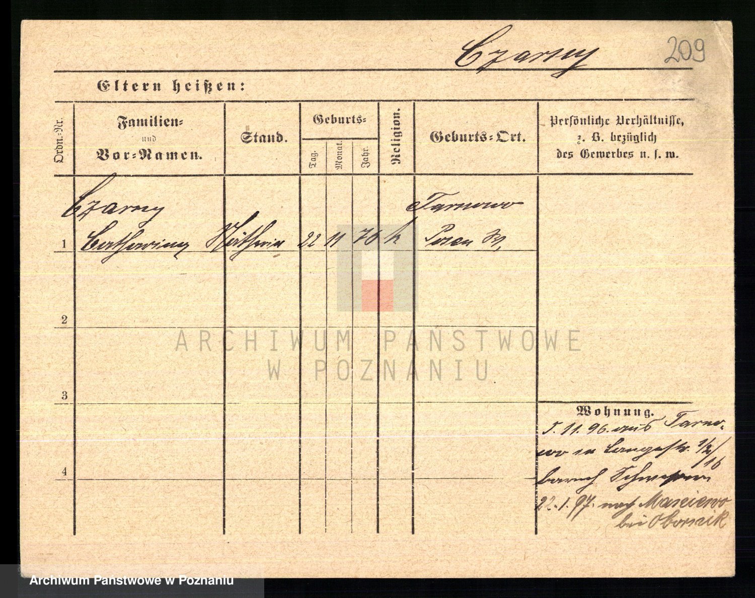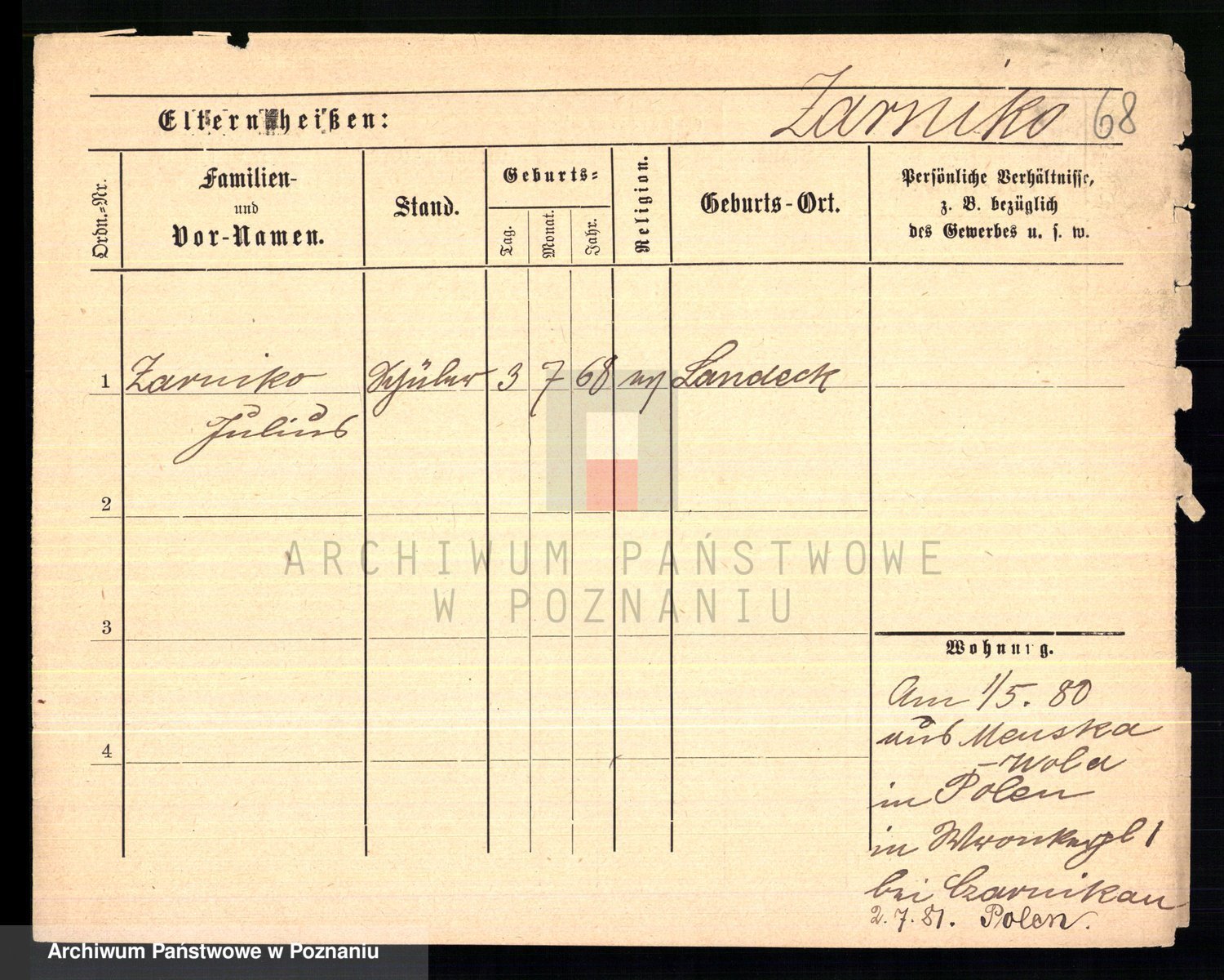 Podgląd karty osobowej dostępny jest po kliknięciu na nazwisko lub ikonkę karty. Można dokonywać powiększenia (ikony na górze) lub przechodzić między kolejnymi skanami (strzałki po bokach).