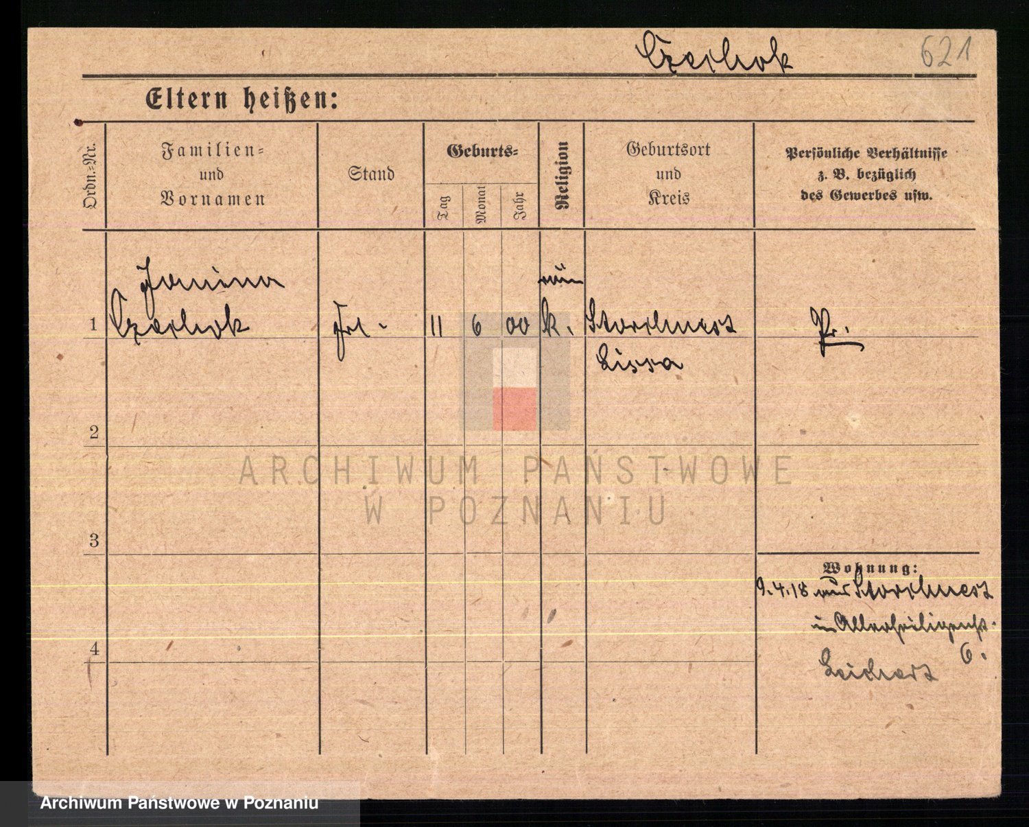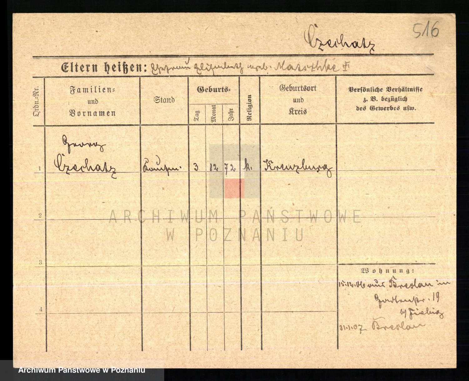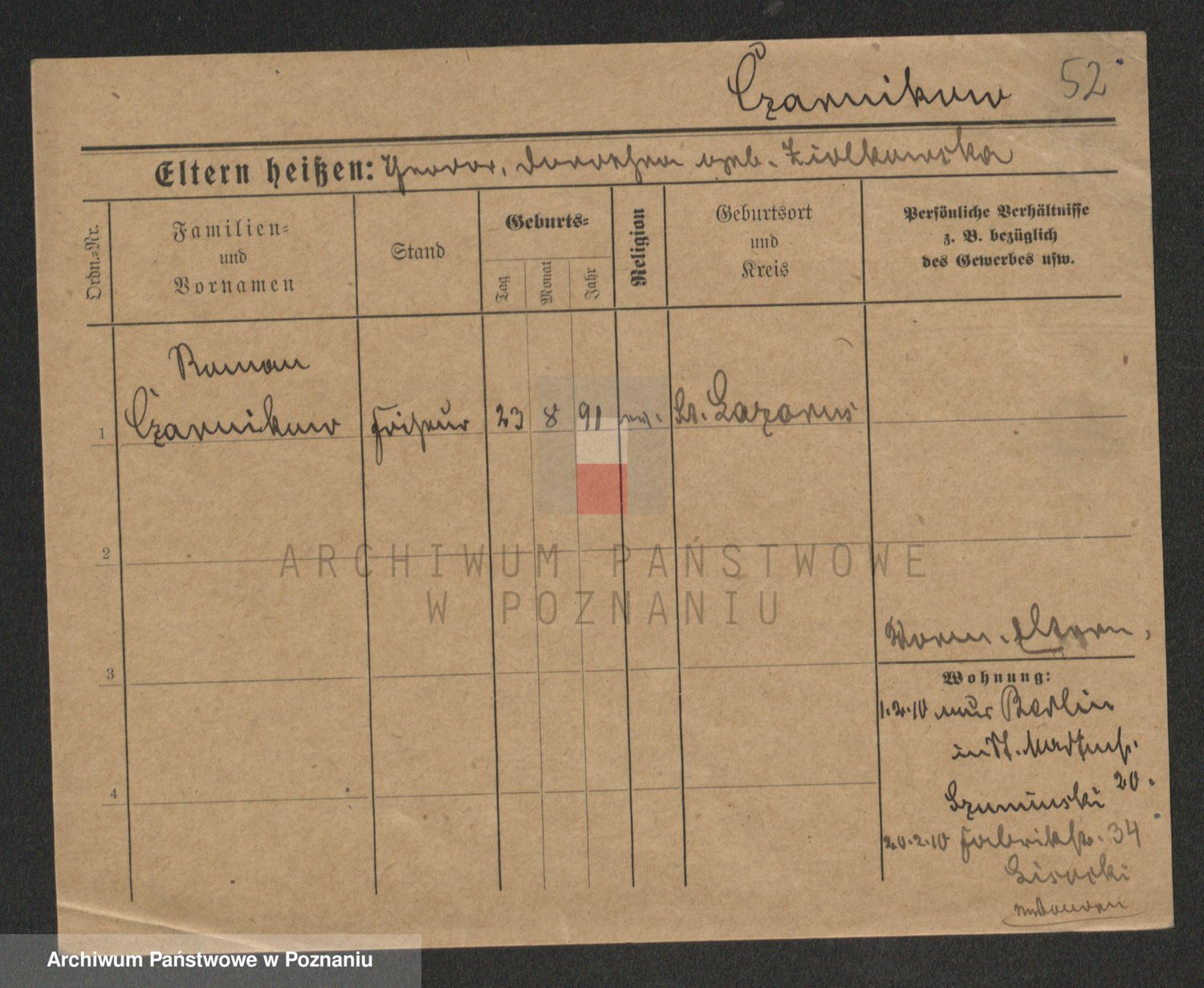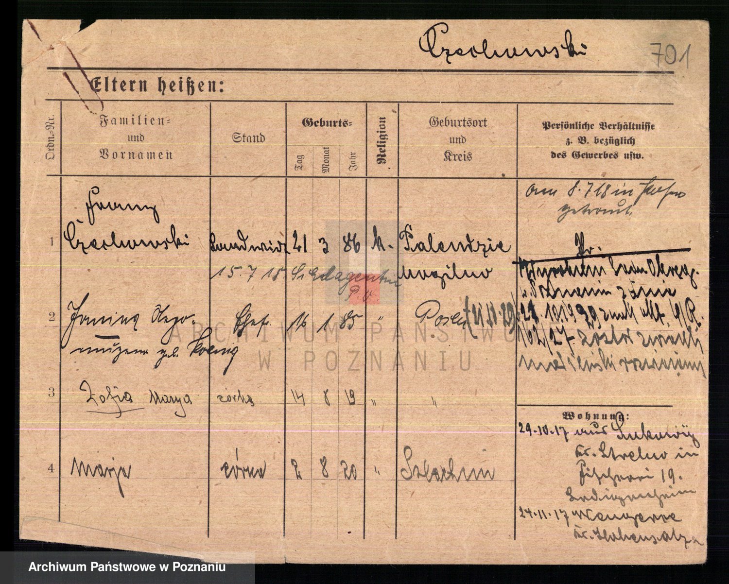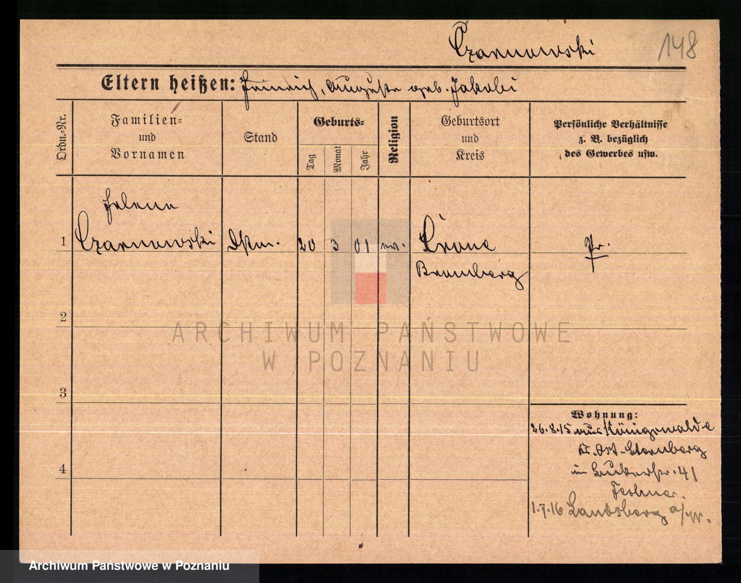 Podgląd karty osobowej dostępny jest po kliknięciu na nazwisko lub ikonkę karty. Można dokonywać powiększenia (ikony na górze) lub przechodzić między kolejnymi skanami (strzałki po bokach).
