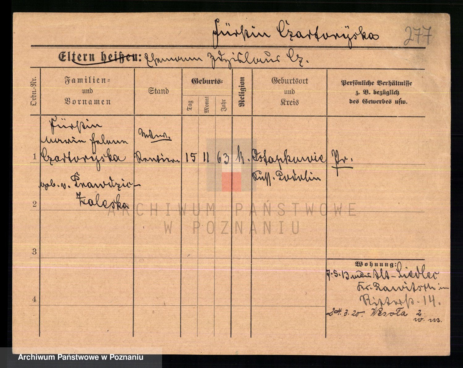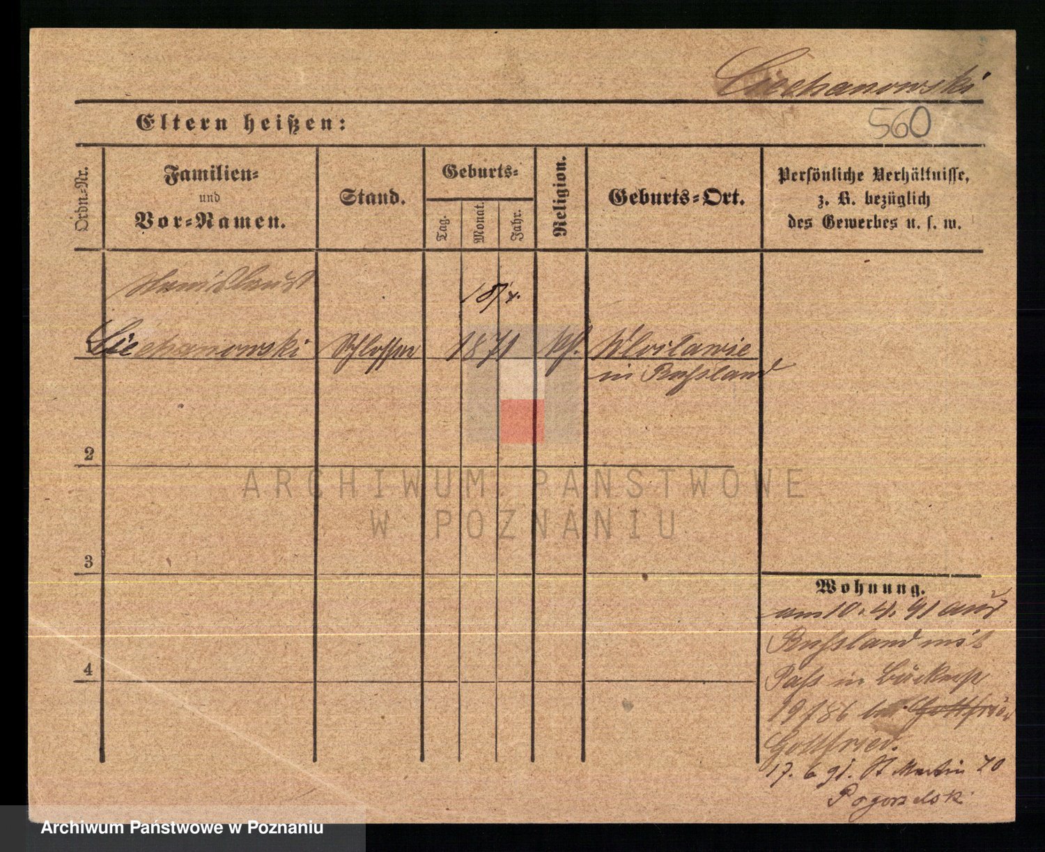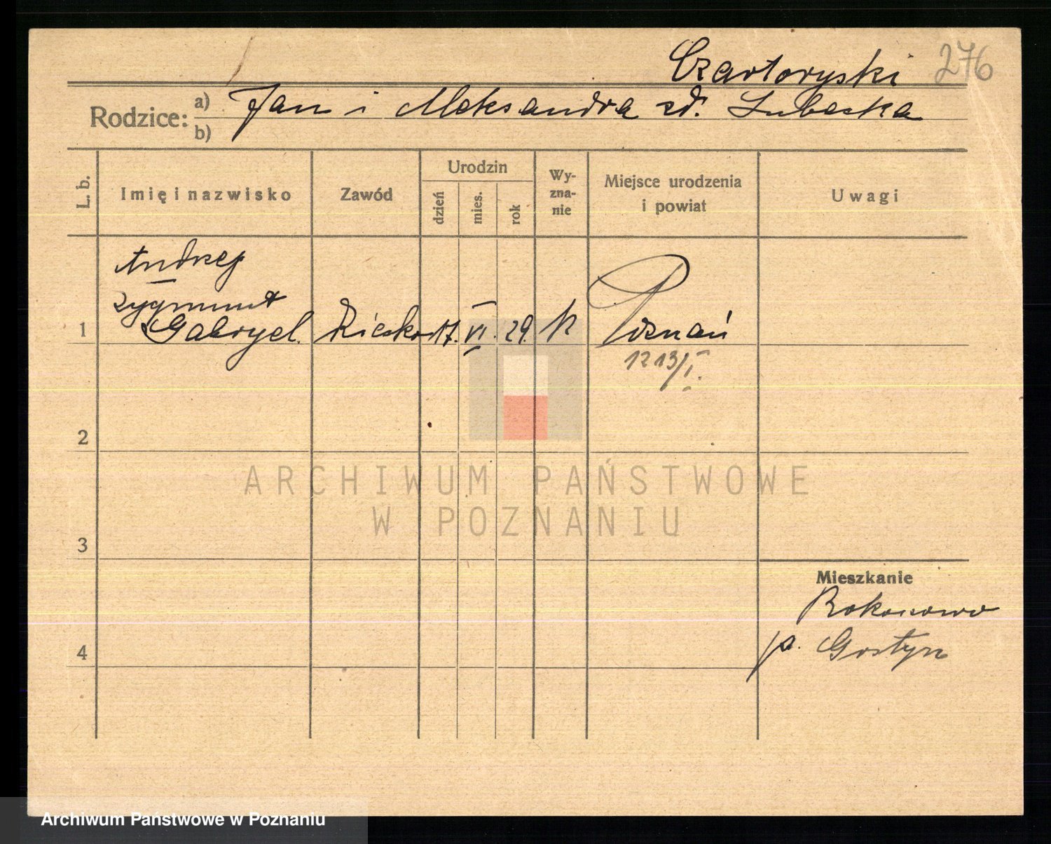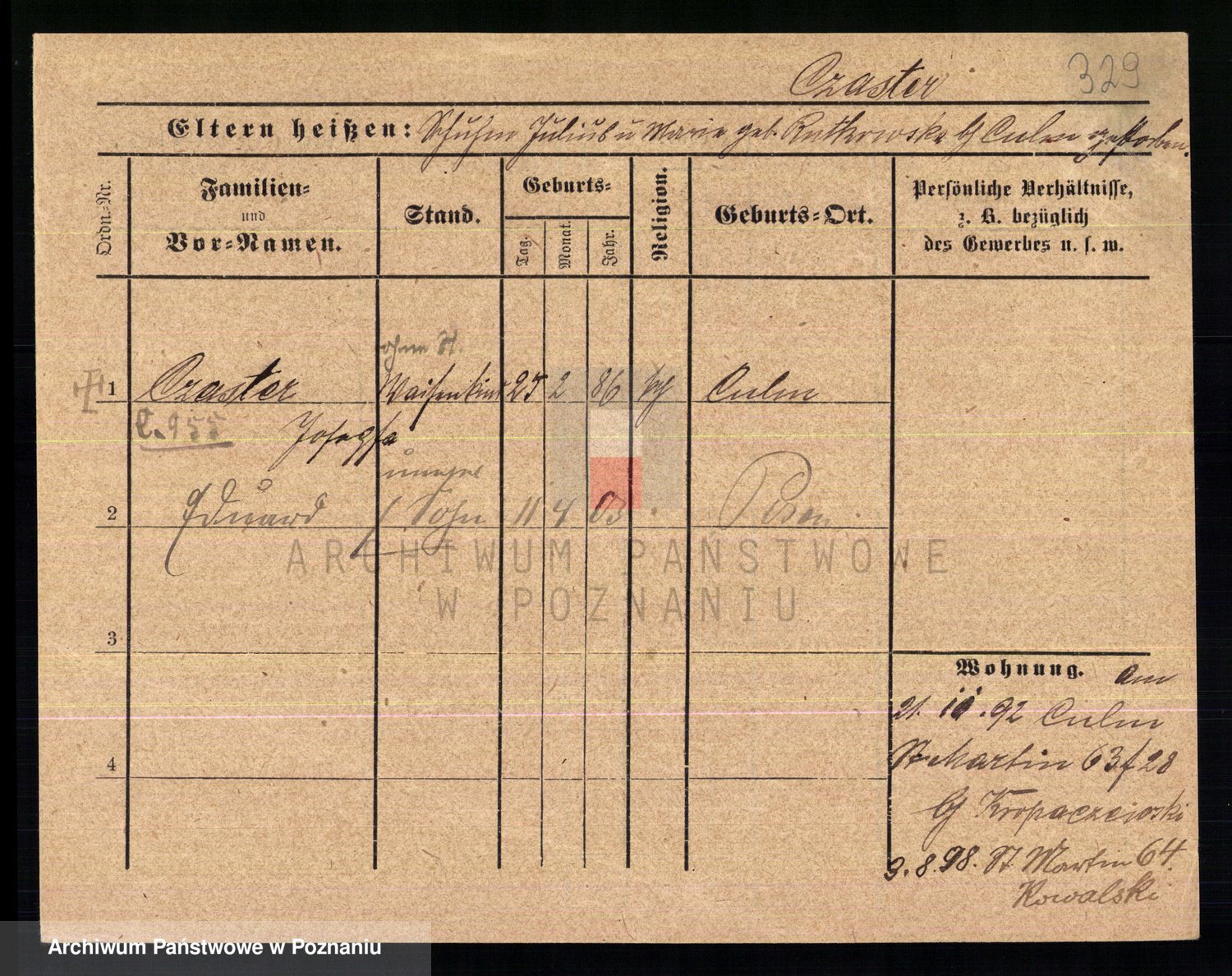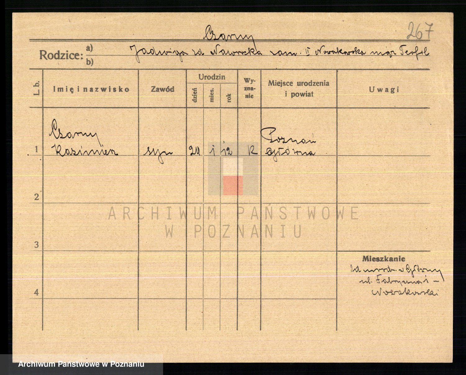 Podgląd karty osobowej dostępny jest po kliknięciu na nazwisko lub ikonkę karty. Można dokonywać powiększenia (ikony na górze) lub przechodzić między kolejnymi skanami (strzałki po bokach).