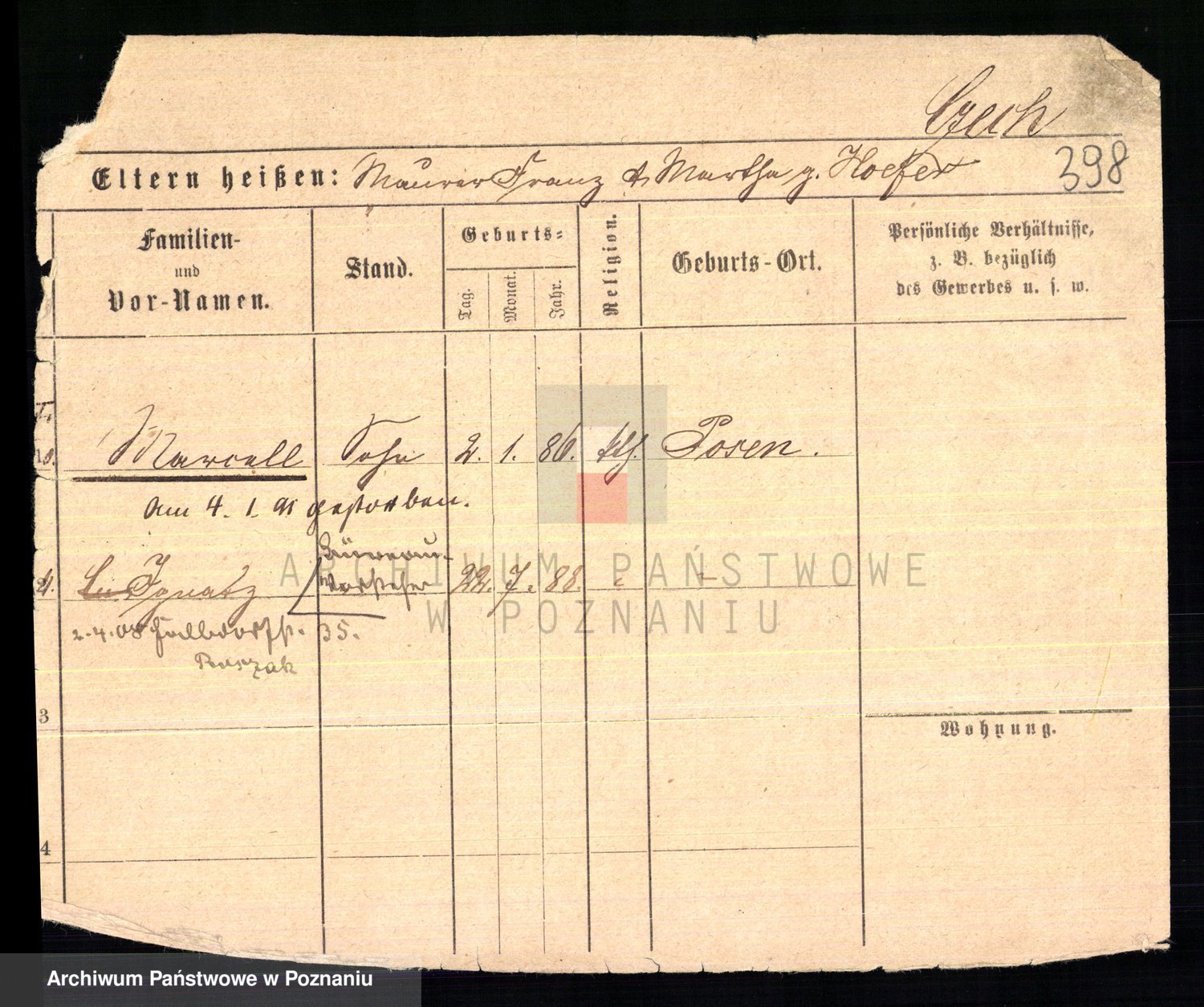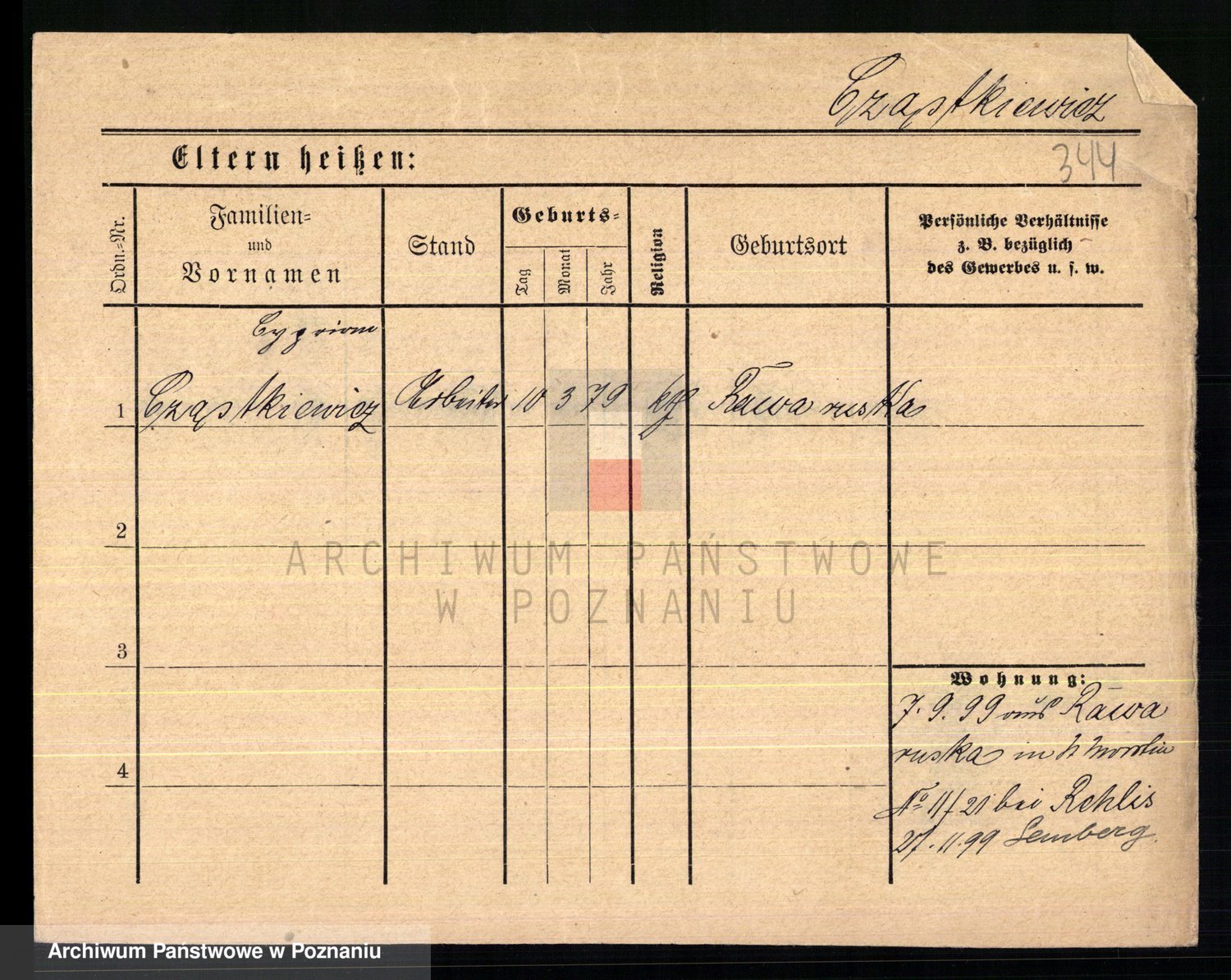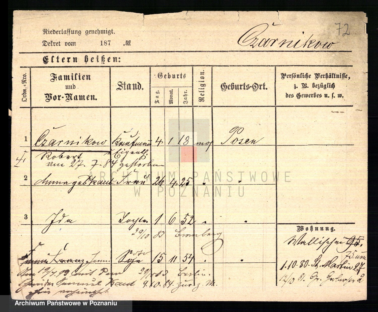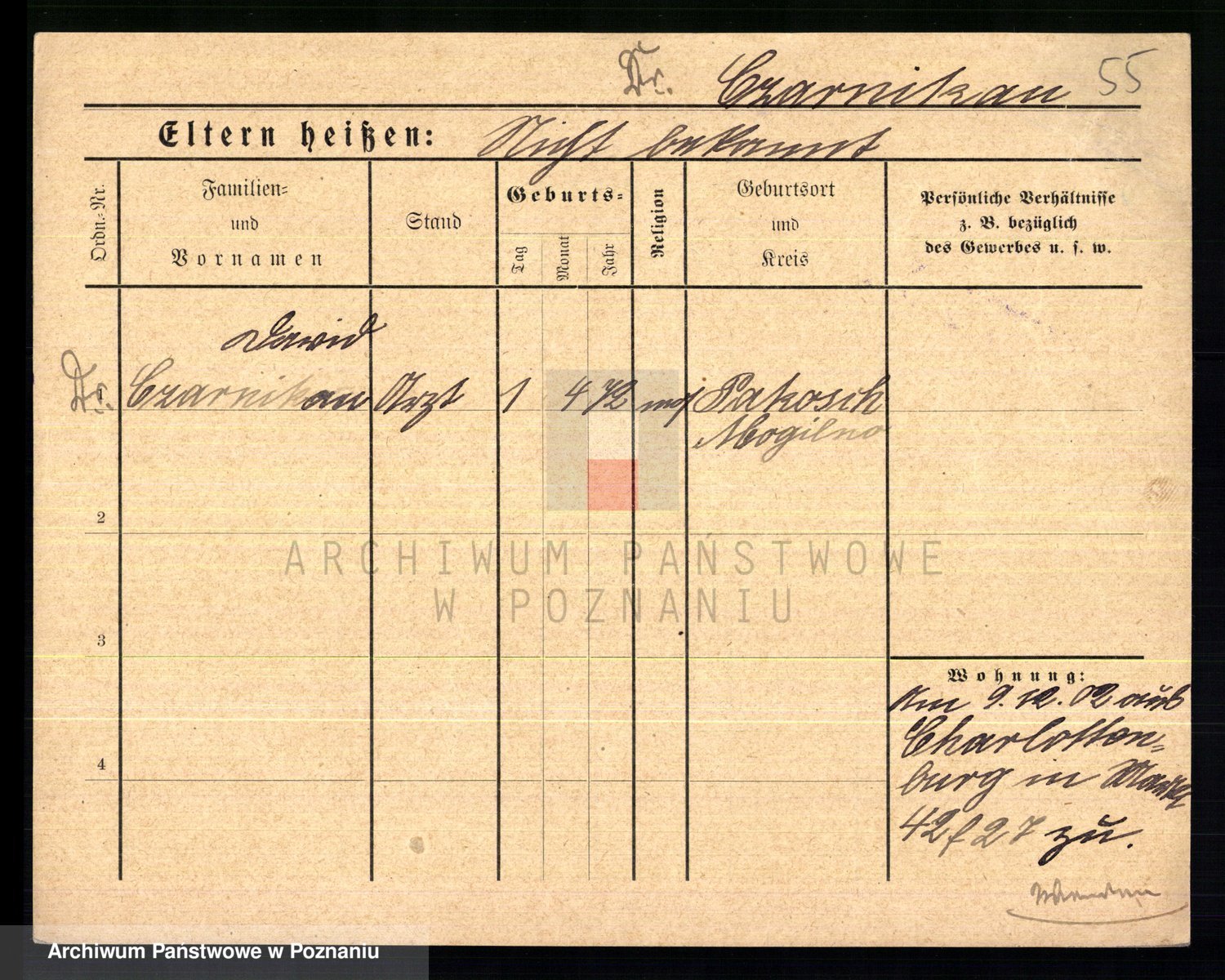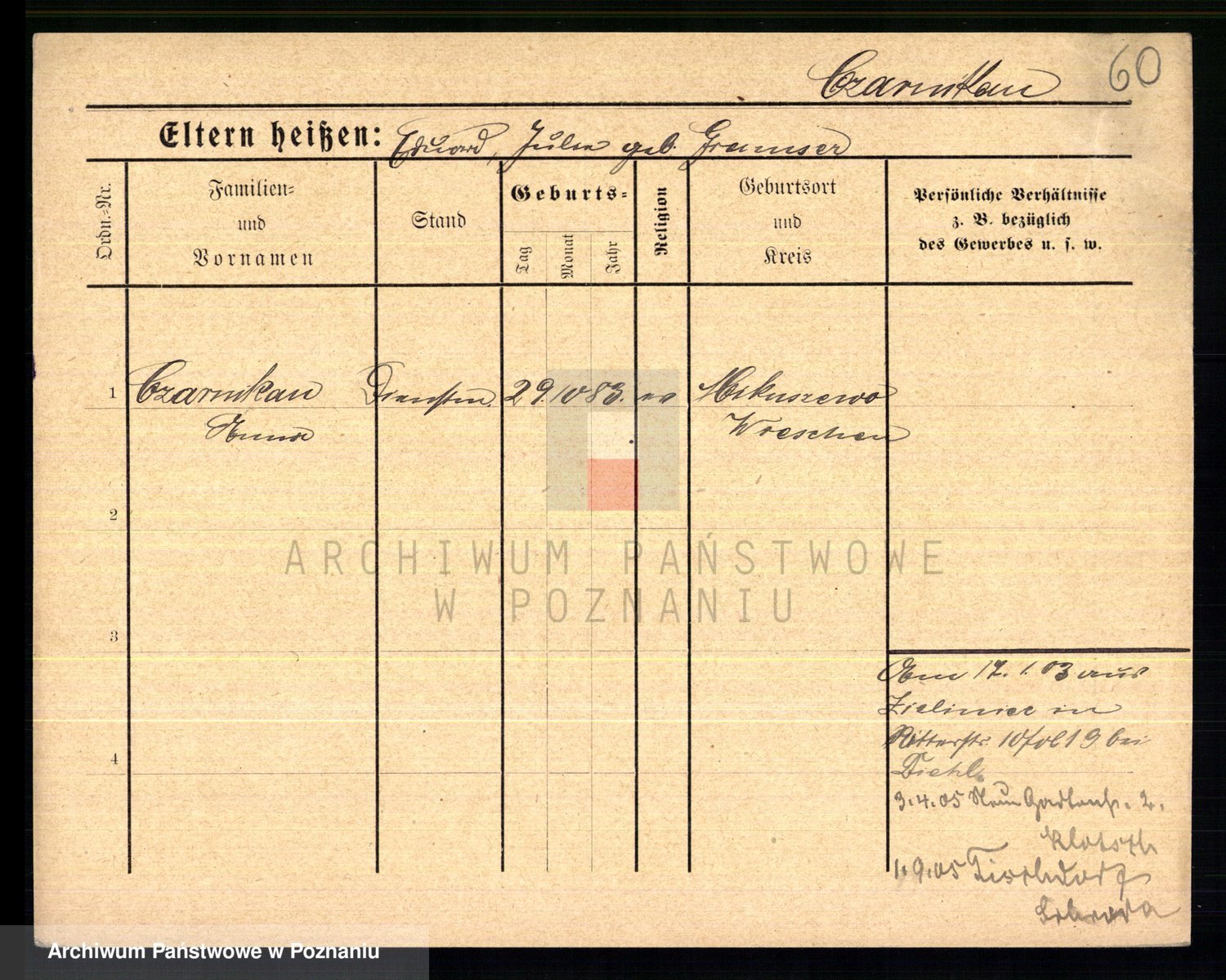 Podgląd karty osobowej dostępny jest po kliknięciu na nazwisko lub ikonkę karty. Można dokonywać powiększenia (ikony na górze) lub przechodzić między kolejnymi skanami (strzałki po bokach).