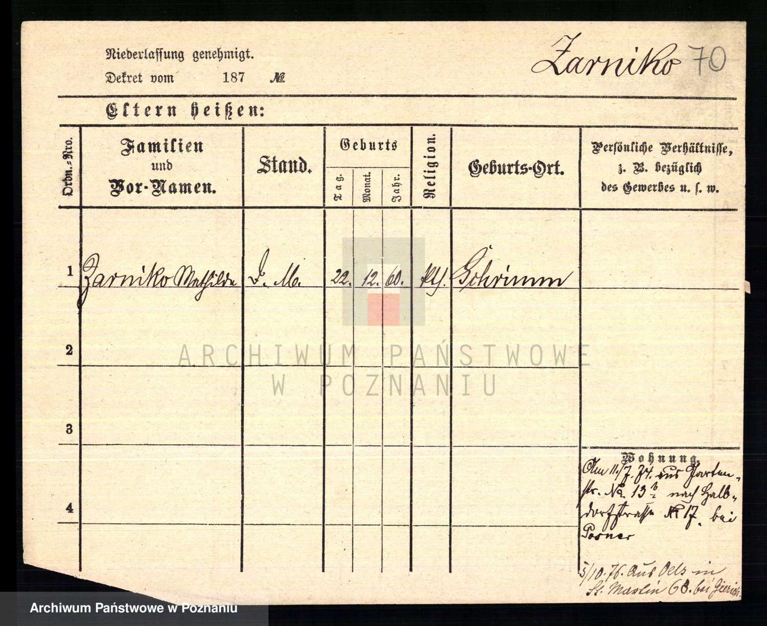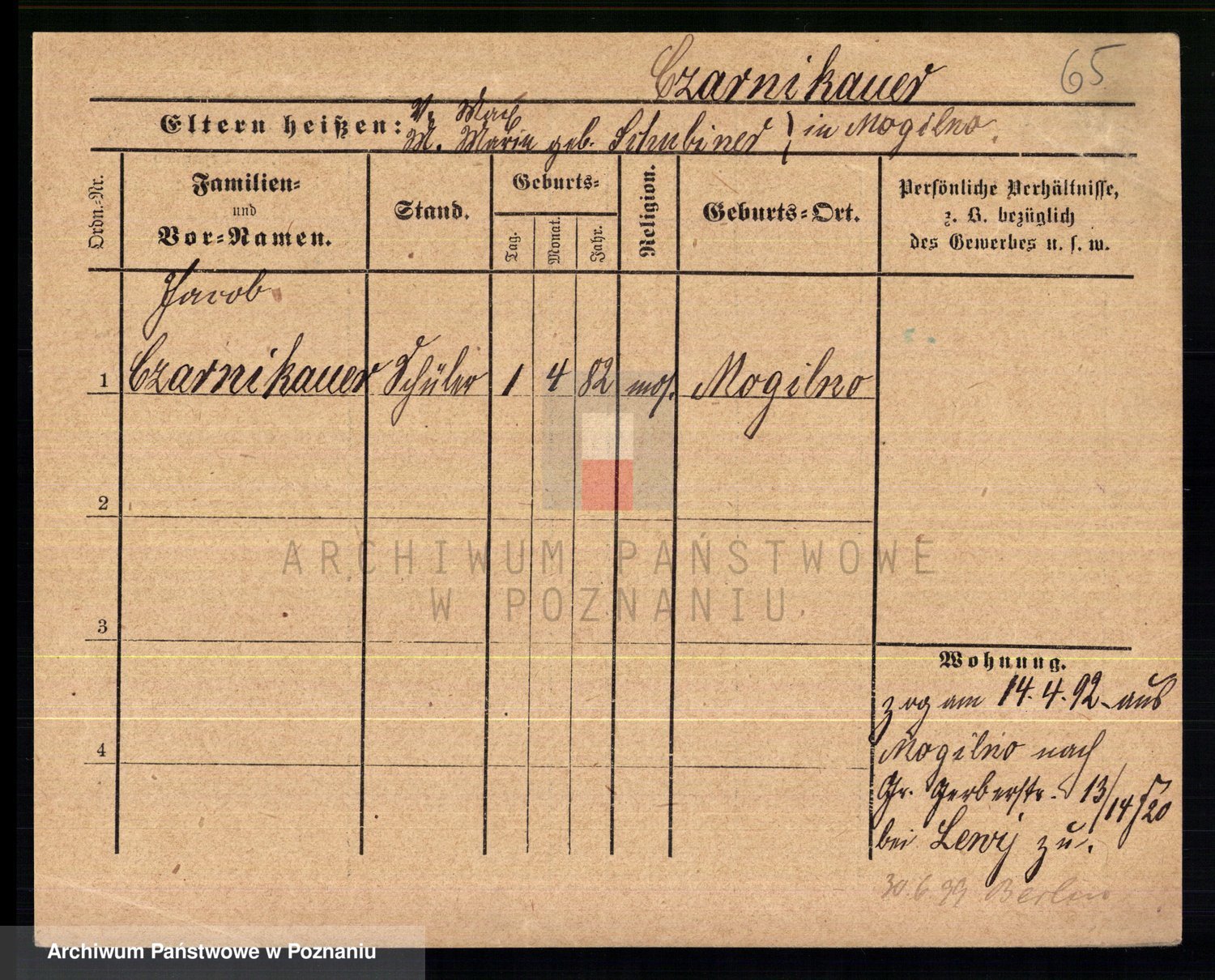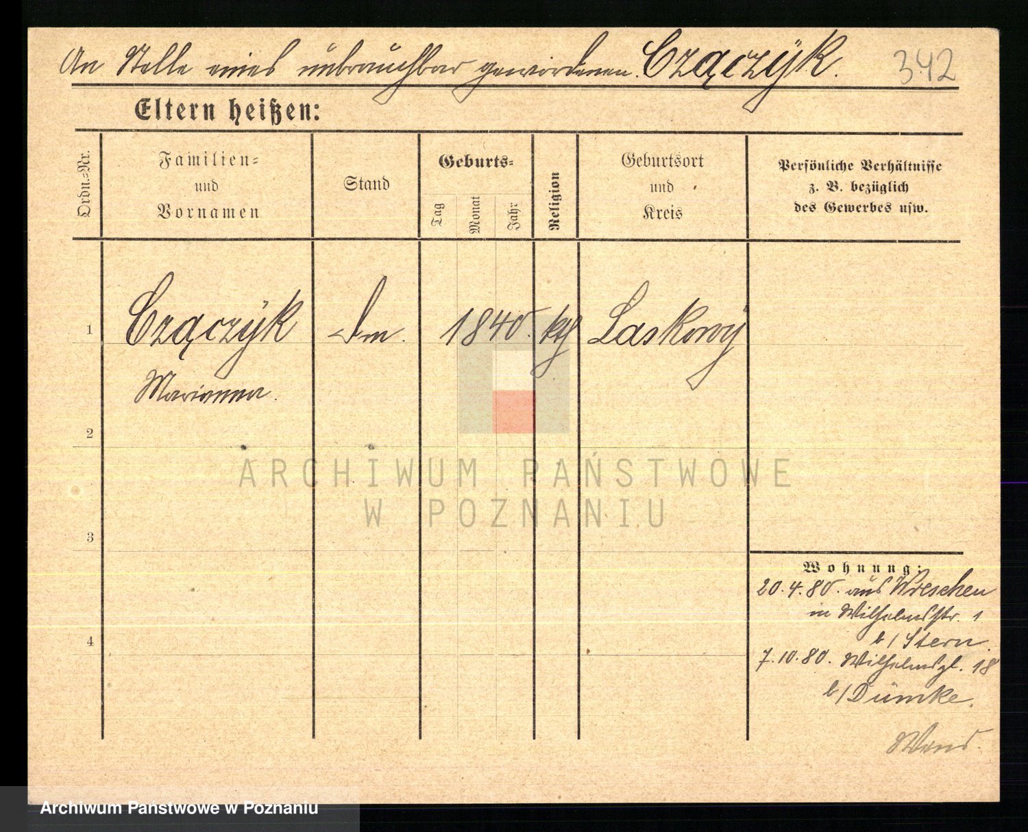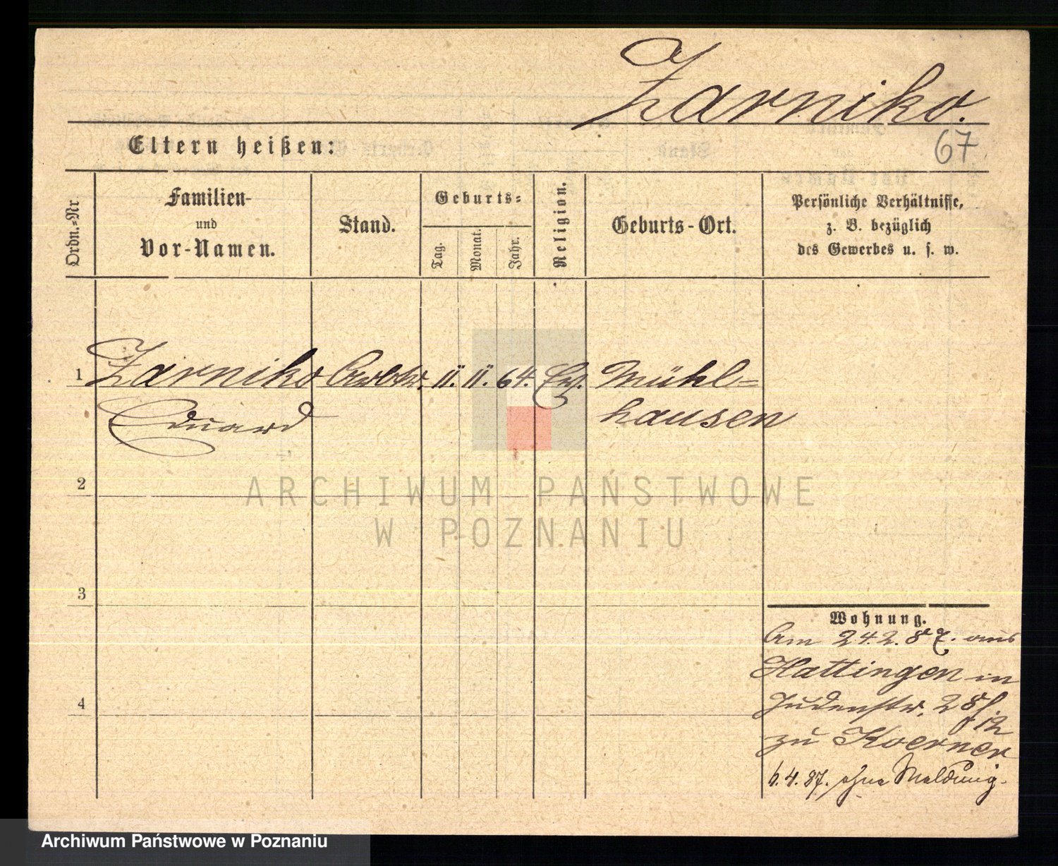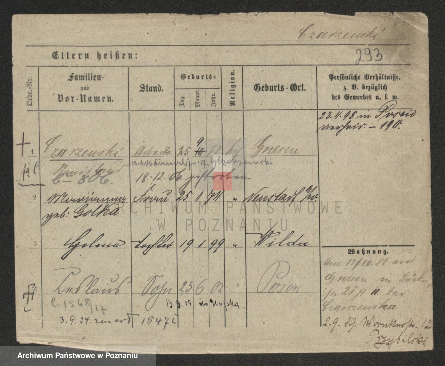 Podgląd karty osobowej dostępny jest po kliknięciu na nazwisko lub ikonkę karty. Można dokonywać powiększenia (ikony na górze) lub przechodzić między kolejnymi skanami (strzałki po bokach).