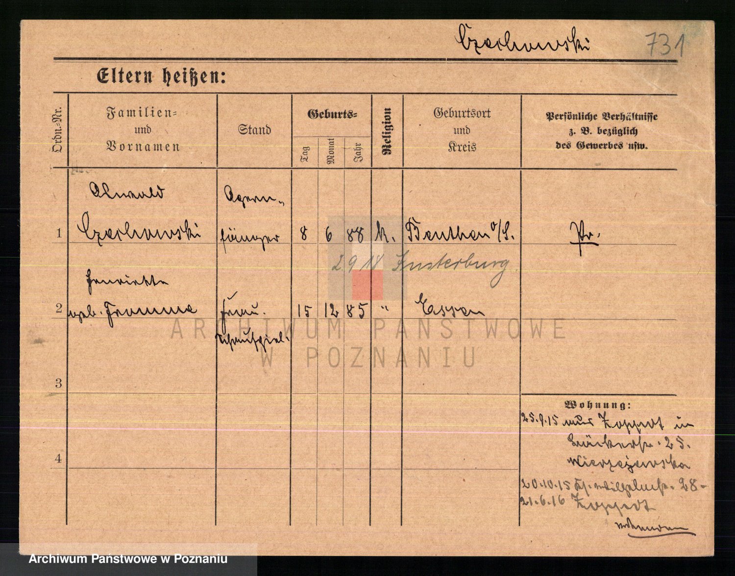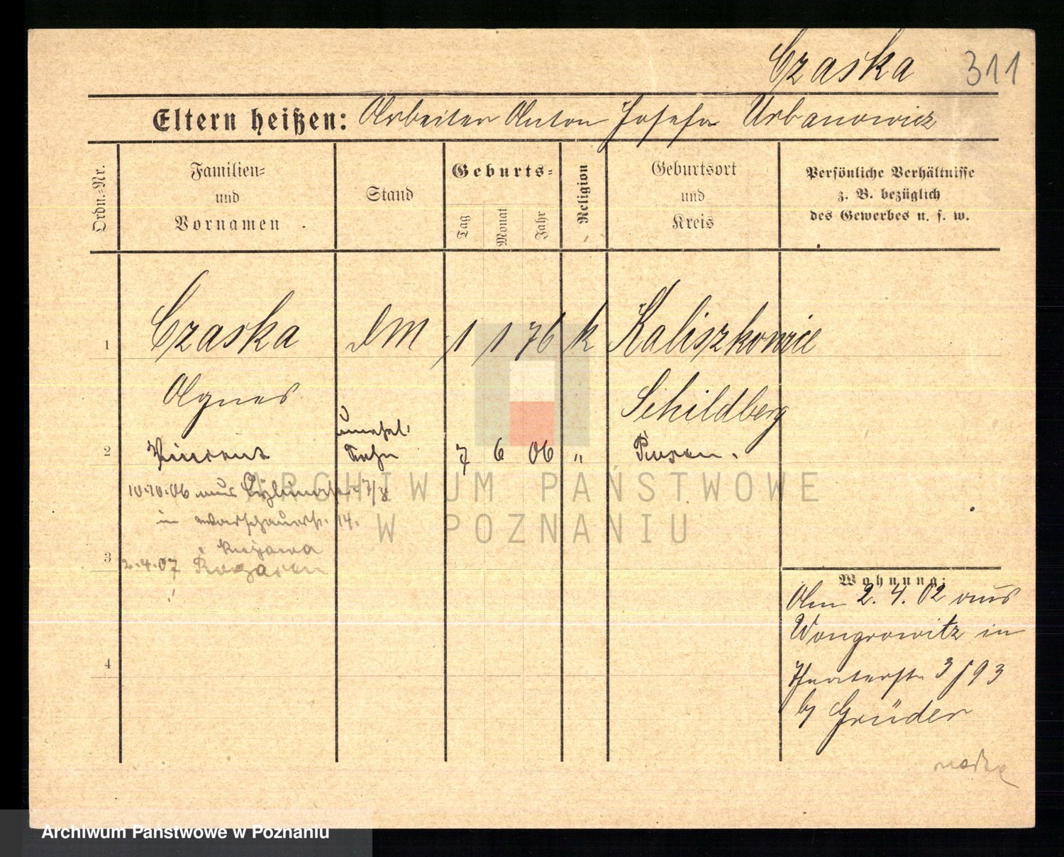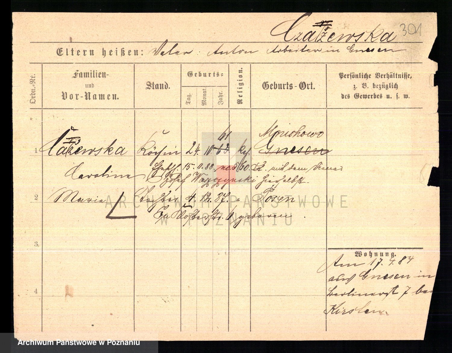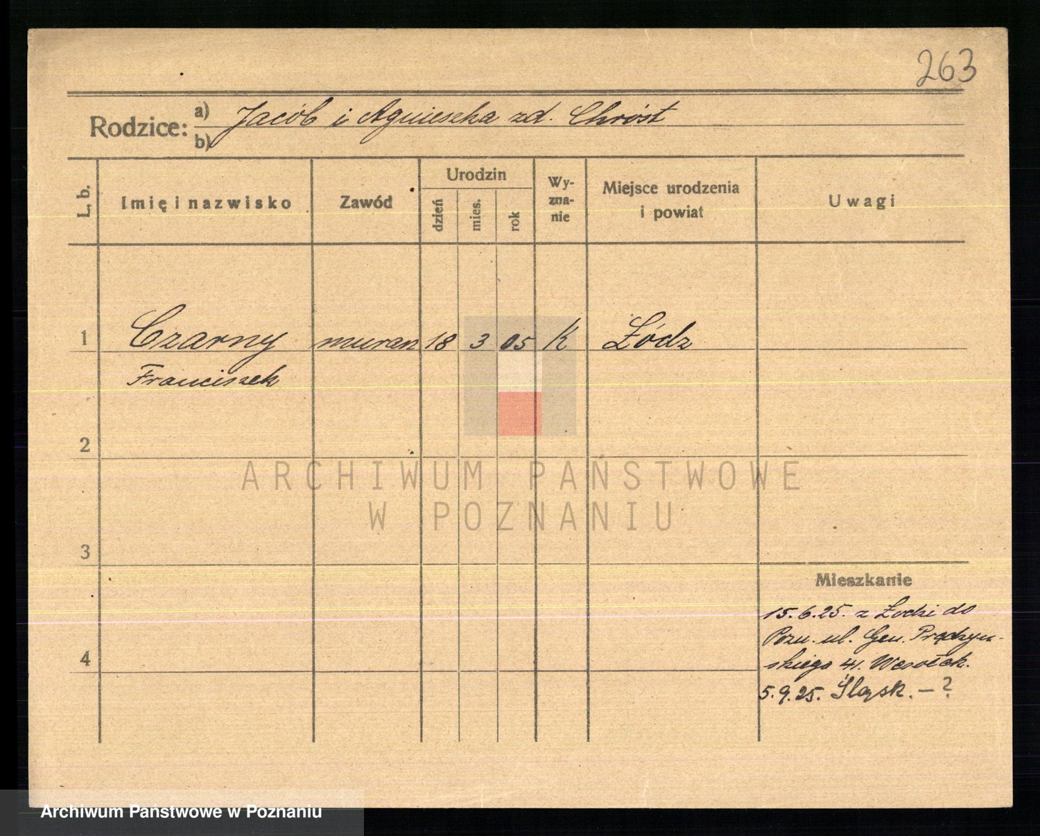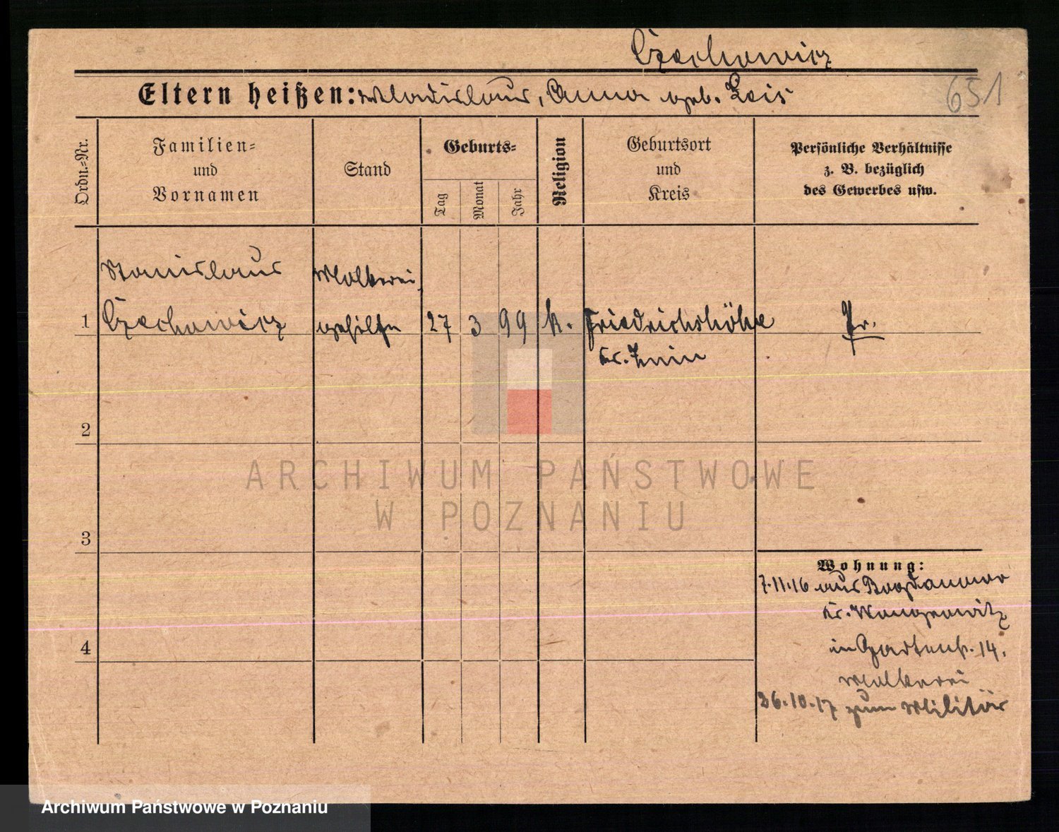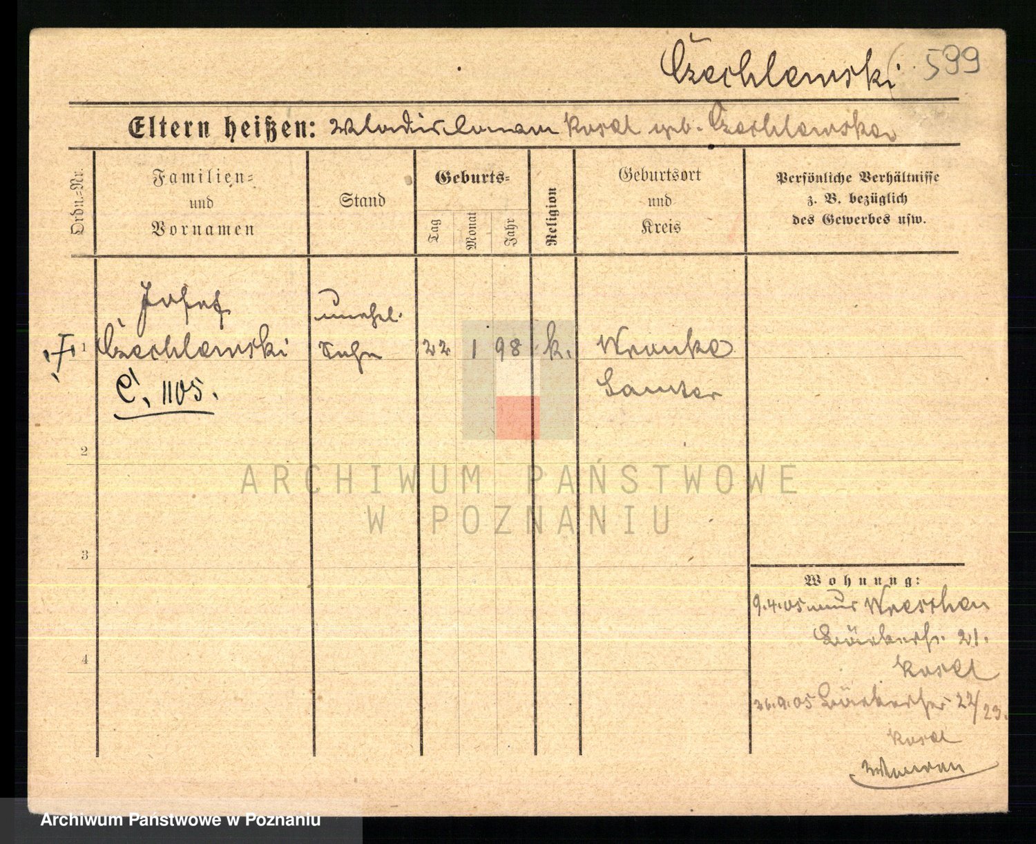 Podgląd karty osobowej dostępny jest po kliknięciu na nazwisko lub ikonkę karty. Można dokonywać powiększenia (ikony na górze) lub przechodzić między kolejnymi skanami (strzałki po bokach).