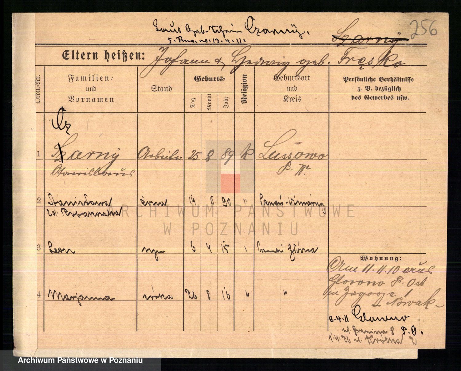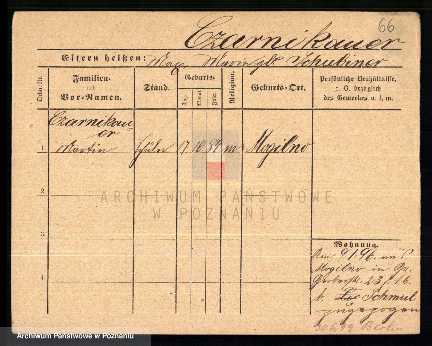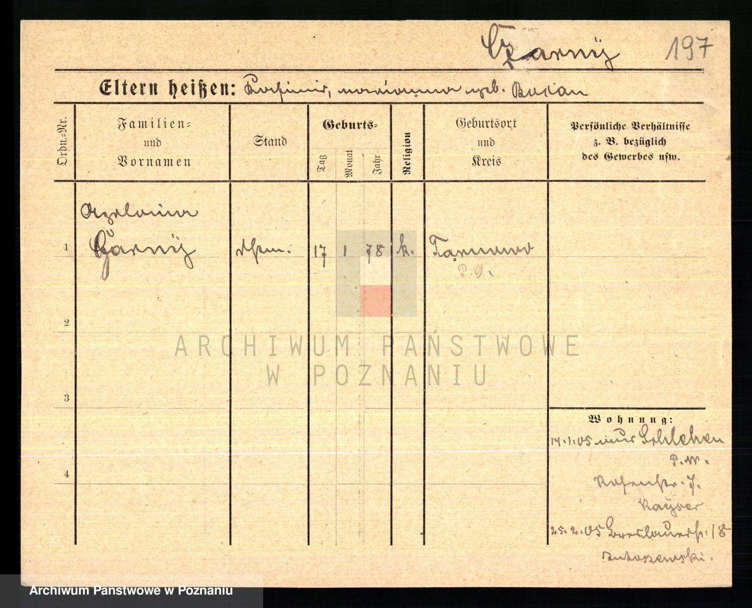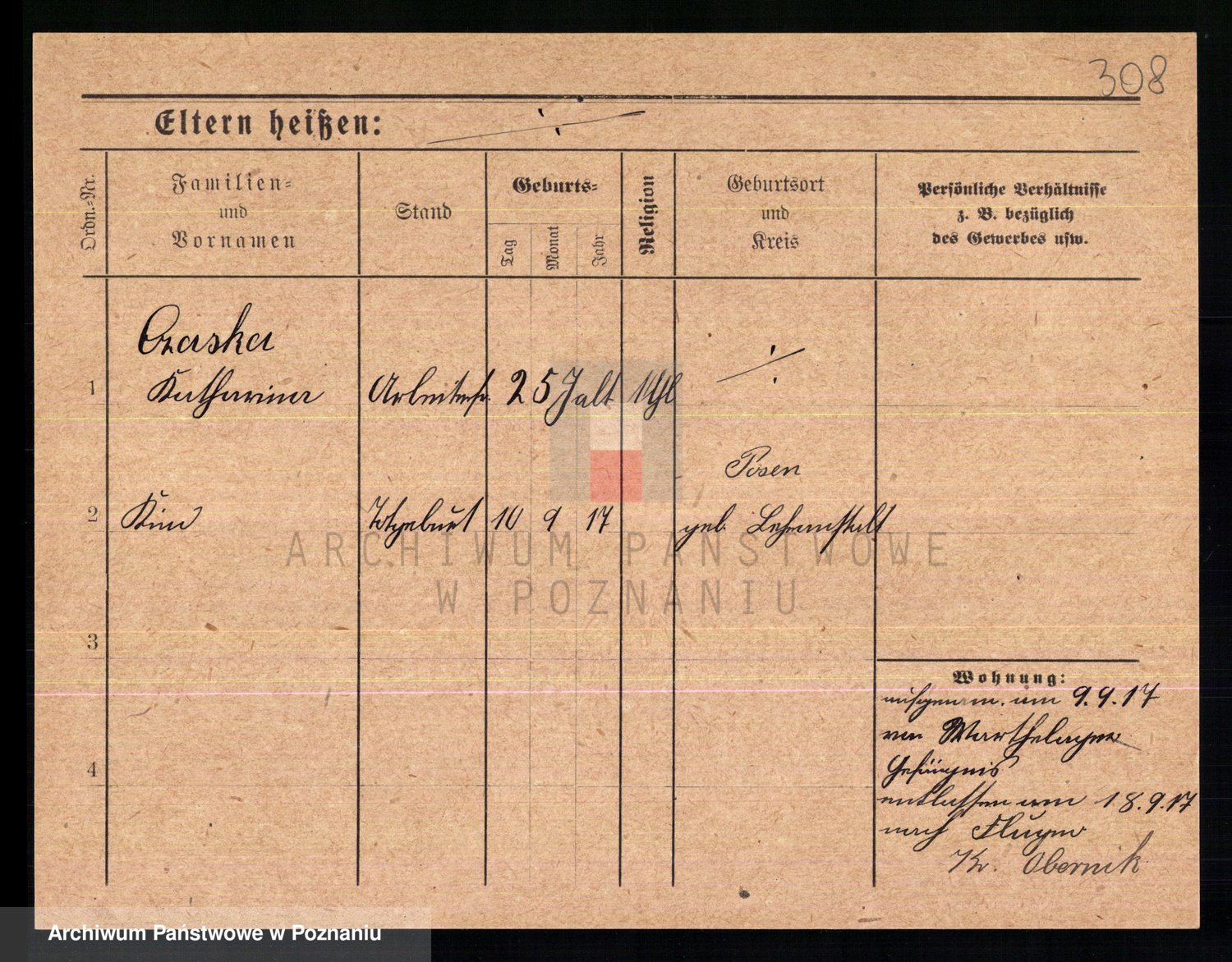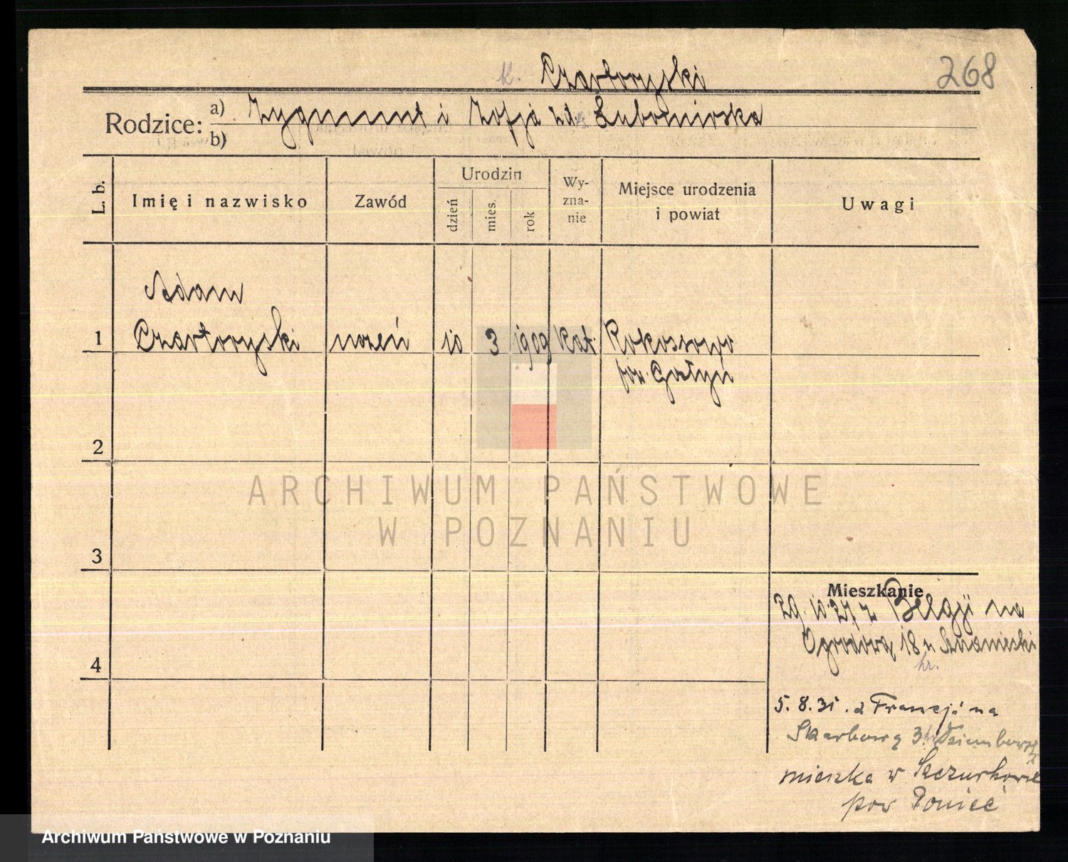 Podgląd karty osobowej dostępny jest po kliknięciu na nazwisko lub ikonkę karty. Można dokonywać powiększenia (ikony na górze) lub przechodzić między kolejnymi skanami (strzałki po bokach).