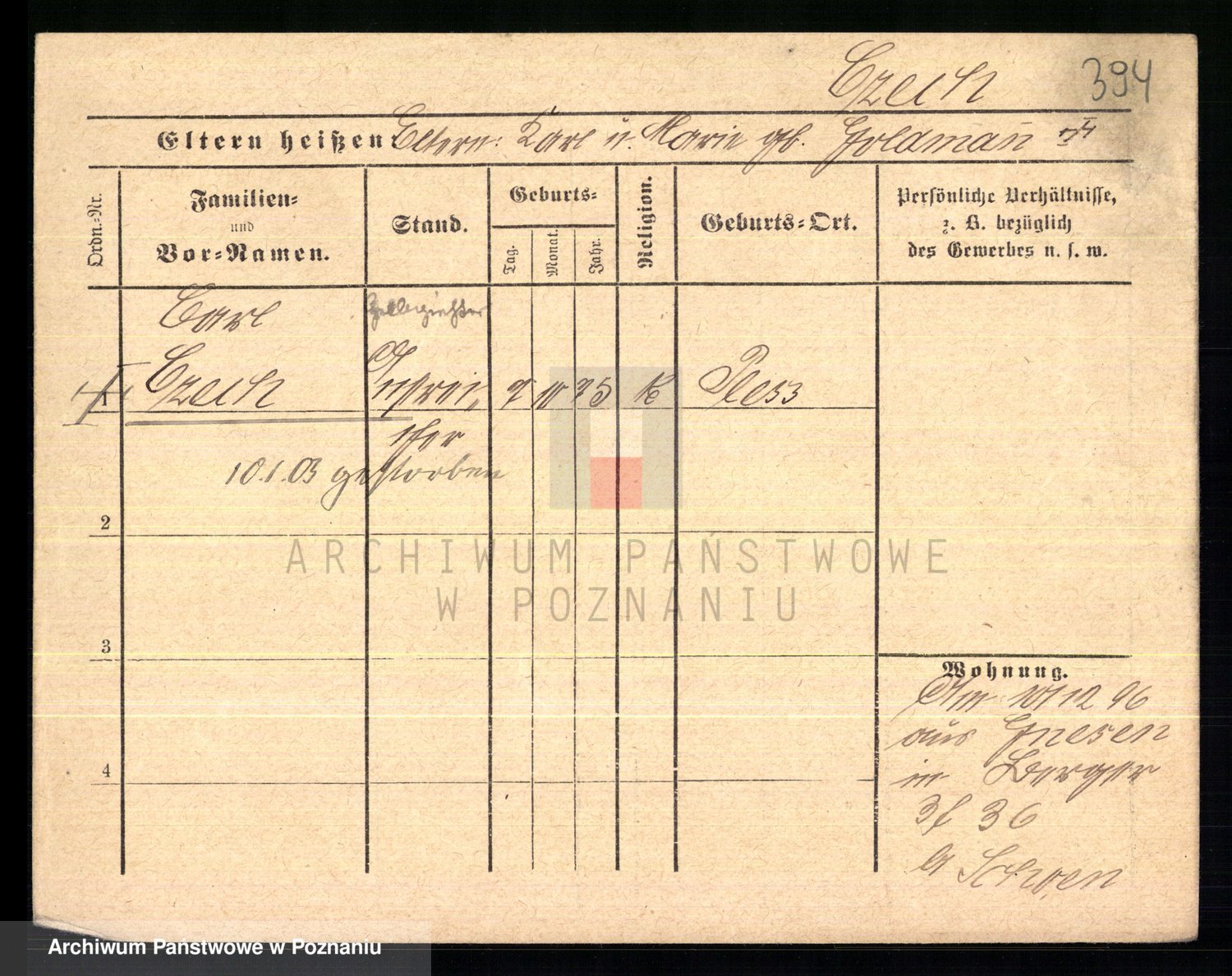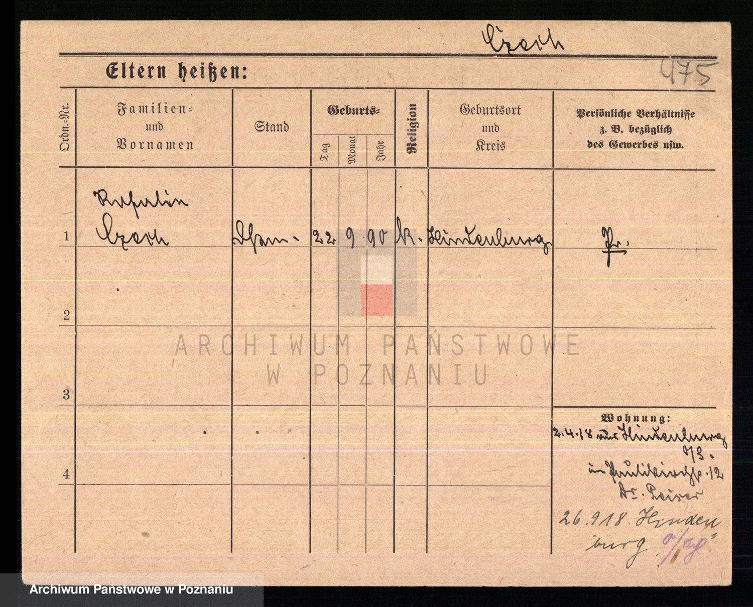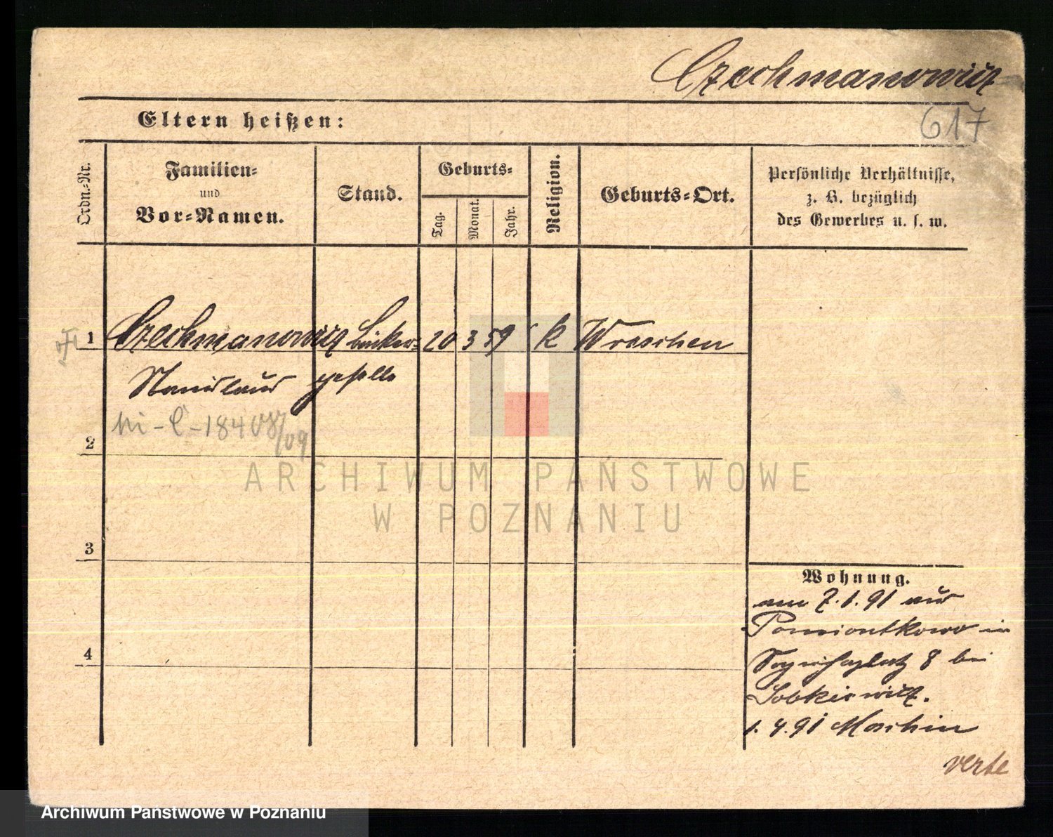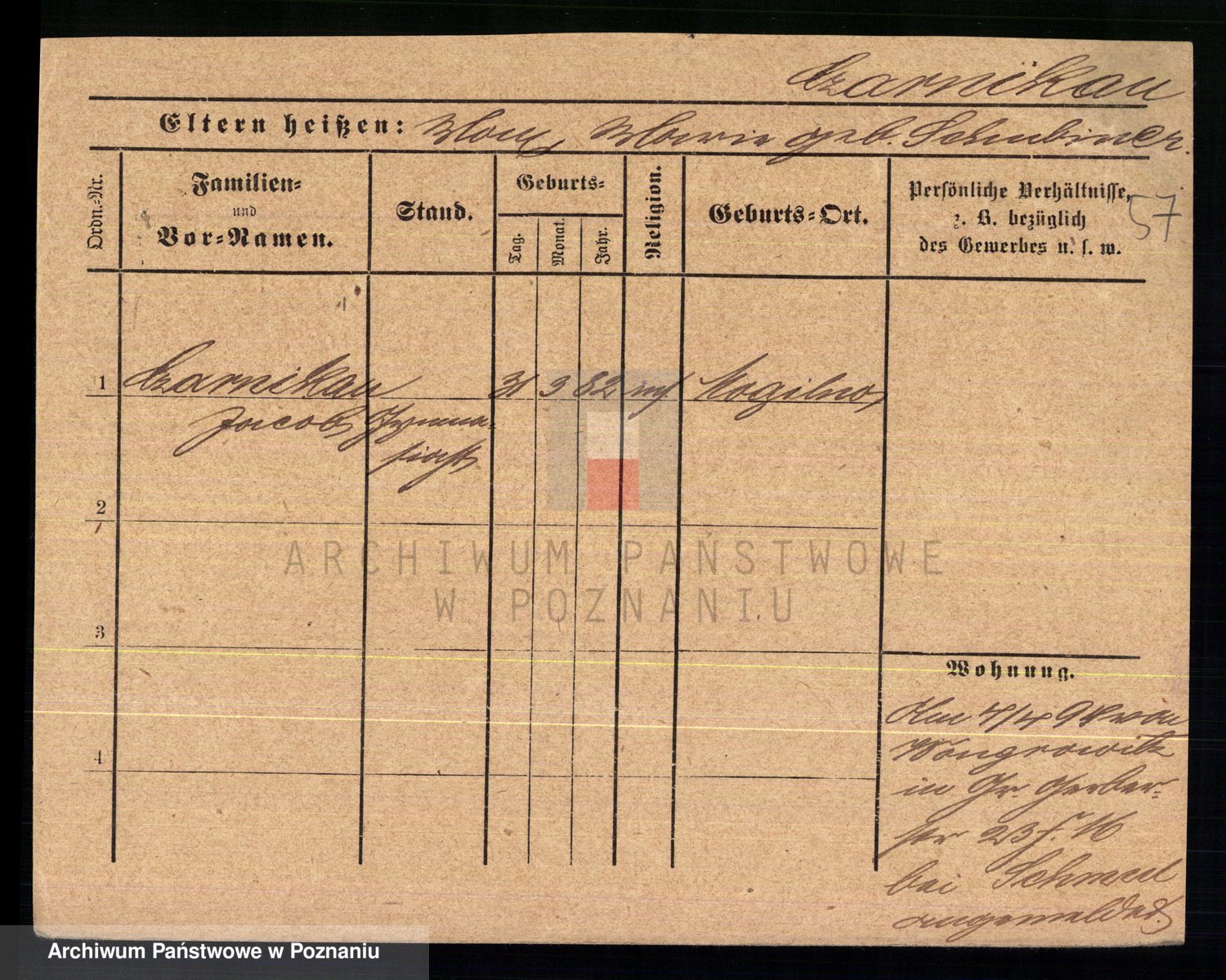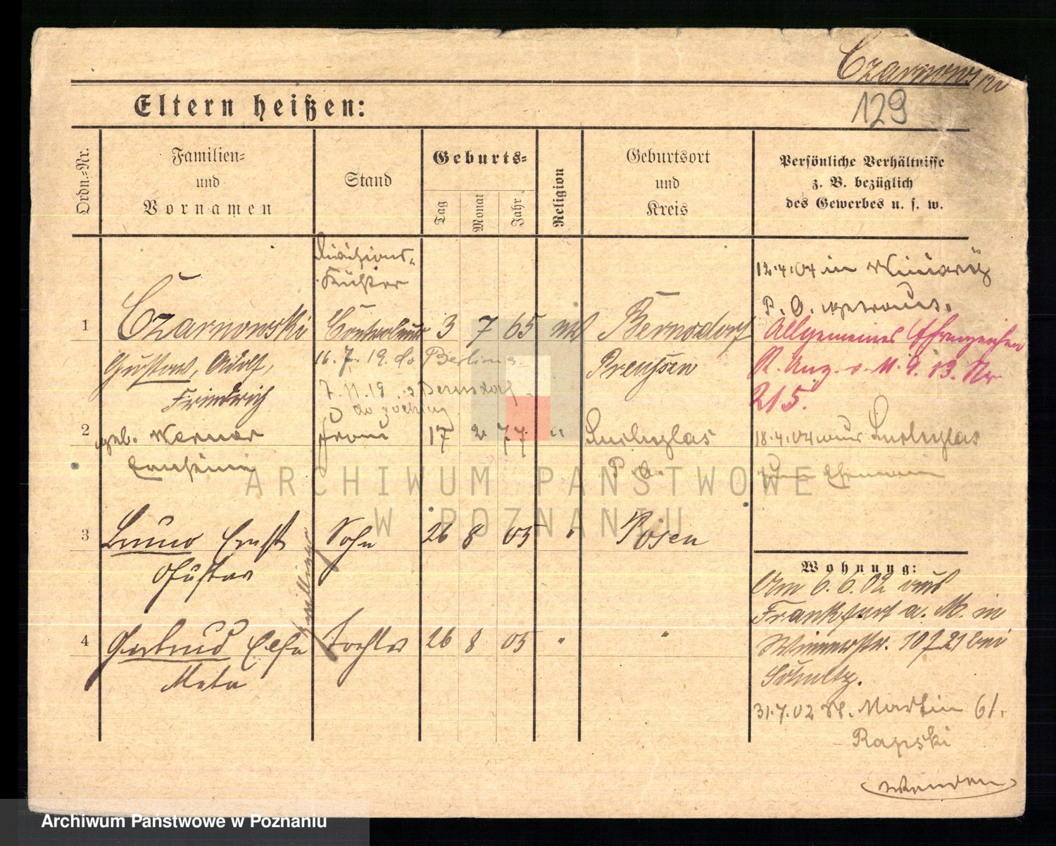 Podgląd karty osobowej dostępny jest po kliknięciu na nazwisko lub ikonkę karty. Można dokonywać powiększenia (ikony na górze) lub przechodzić między kolejnymi skanami (strzałki po bokach).