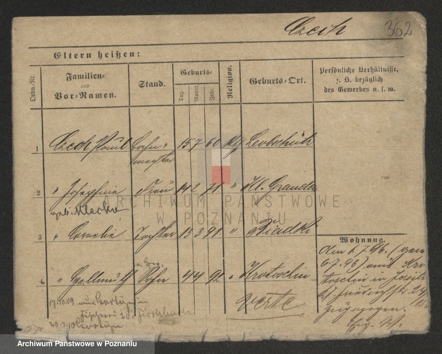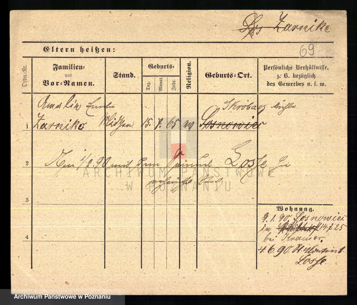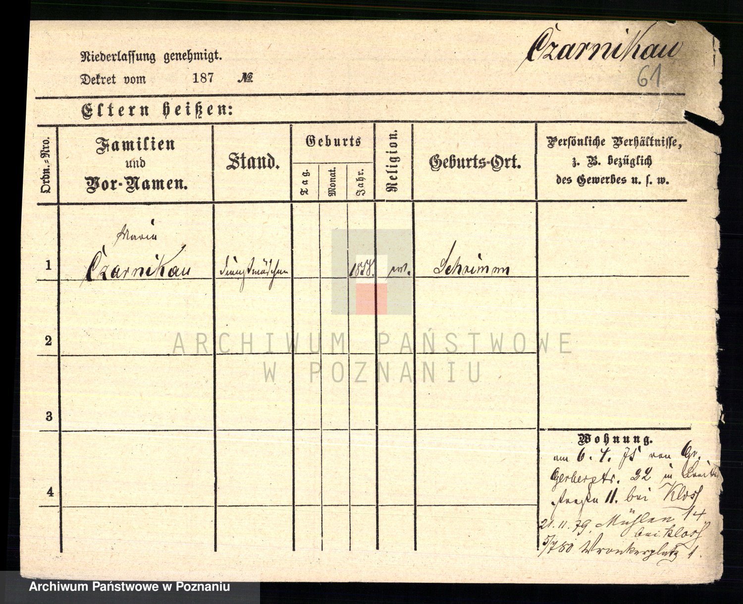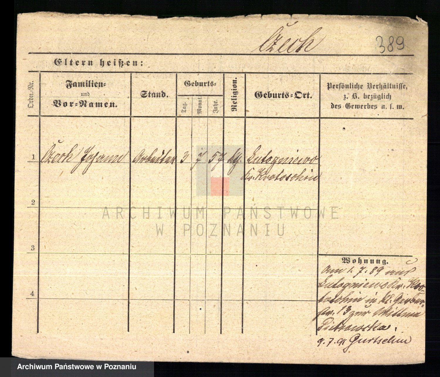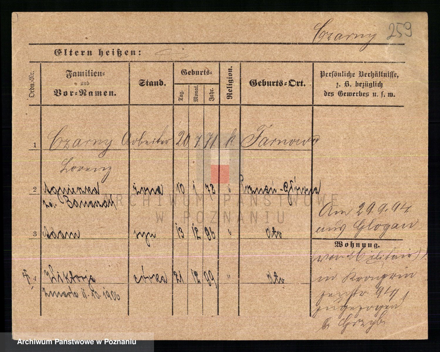 Podgląd karty osobowej dostępny jest po kliknięciu na nazwisko lub ikonkę karty. Można dokonywać powiększenia (ikony na górze) lub przechodzić między kolejnymi skanami (strzałki po bokach).