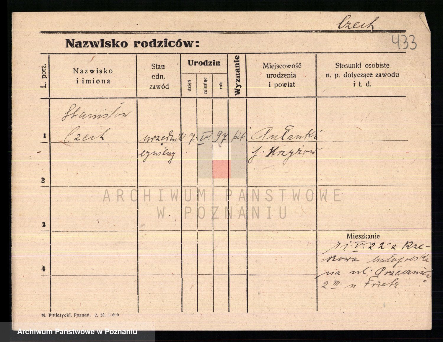 Czechoski alias Czech, Stanislaus