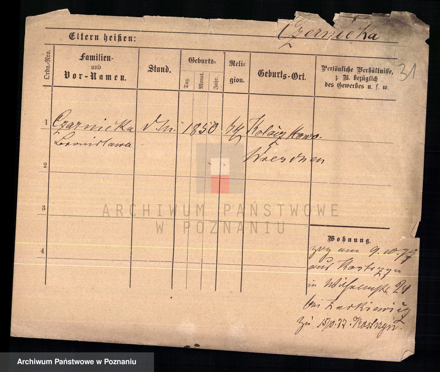 Czarniecka z d. Hübner, Zofja