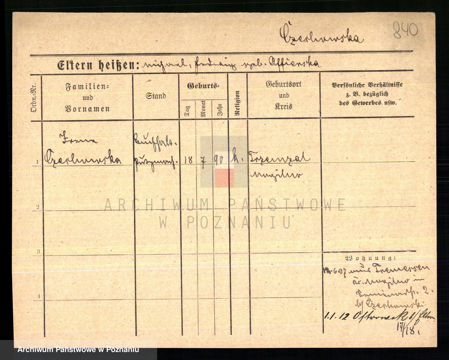 Czechoski alias Czech z d. Nietrzepka, Franziska