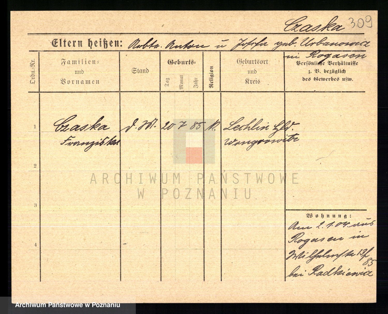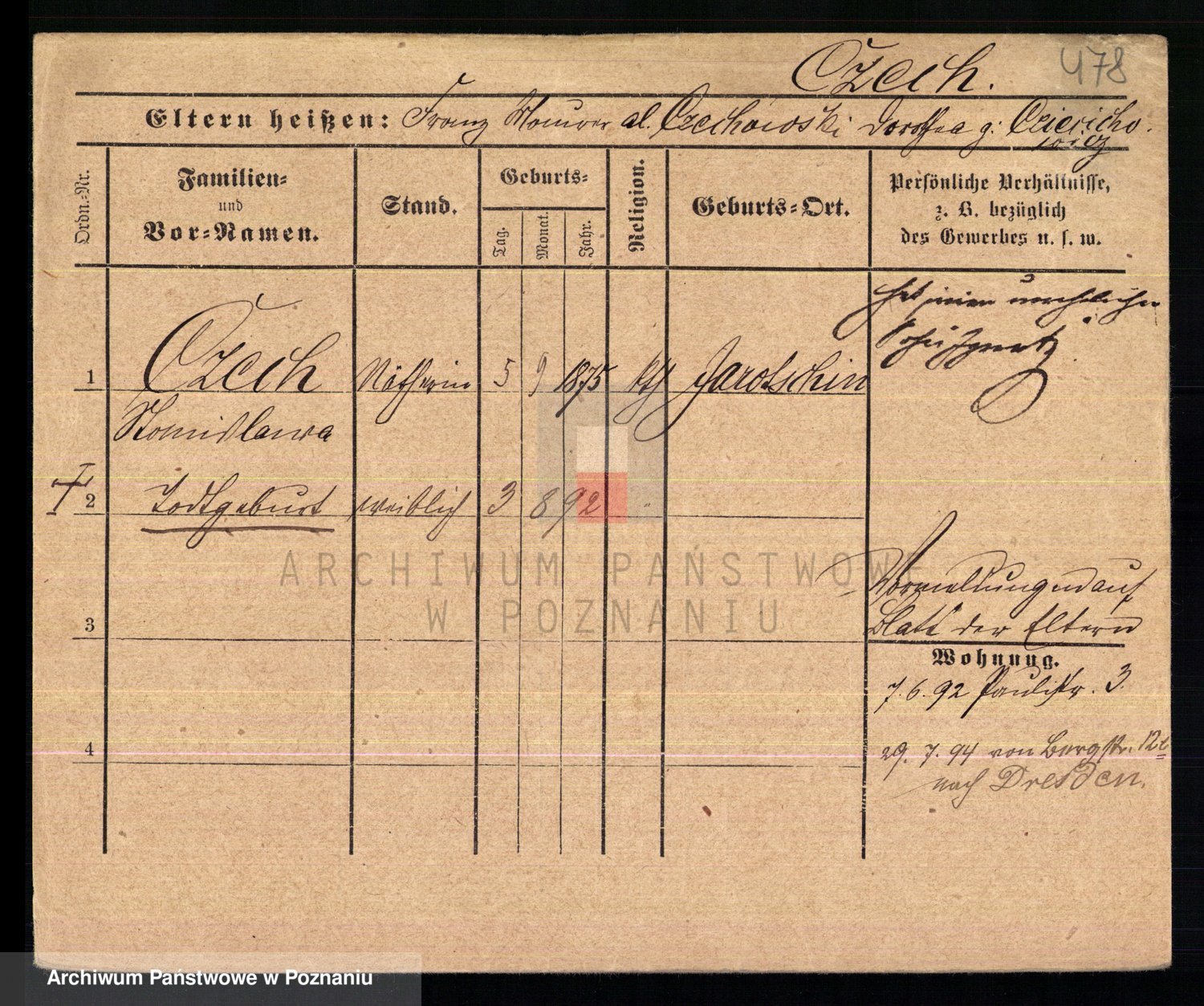 Czechoski z d. Roszak, Cäcilie