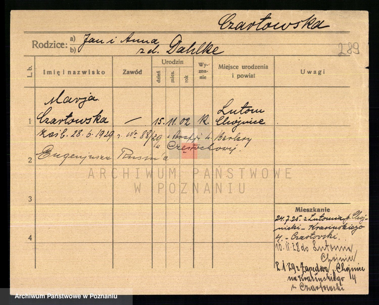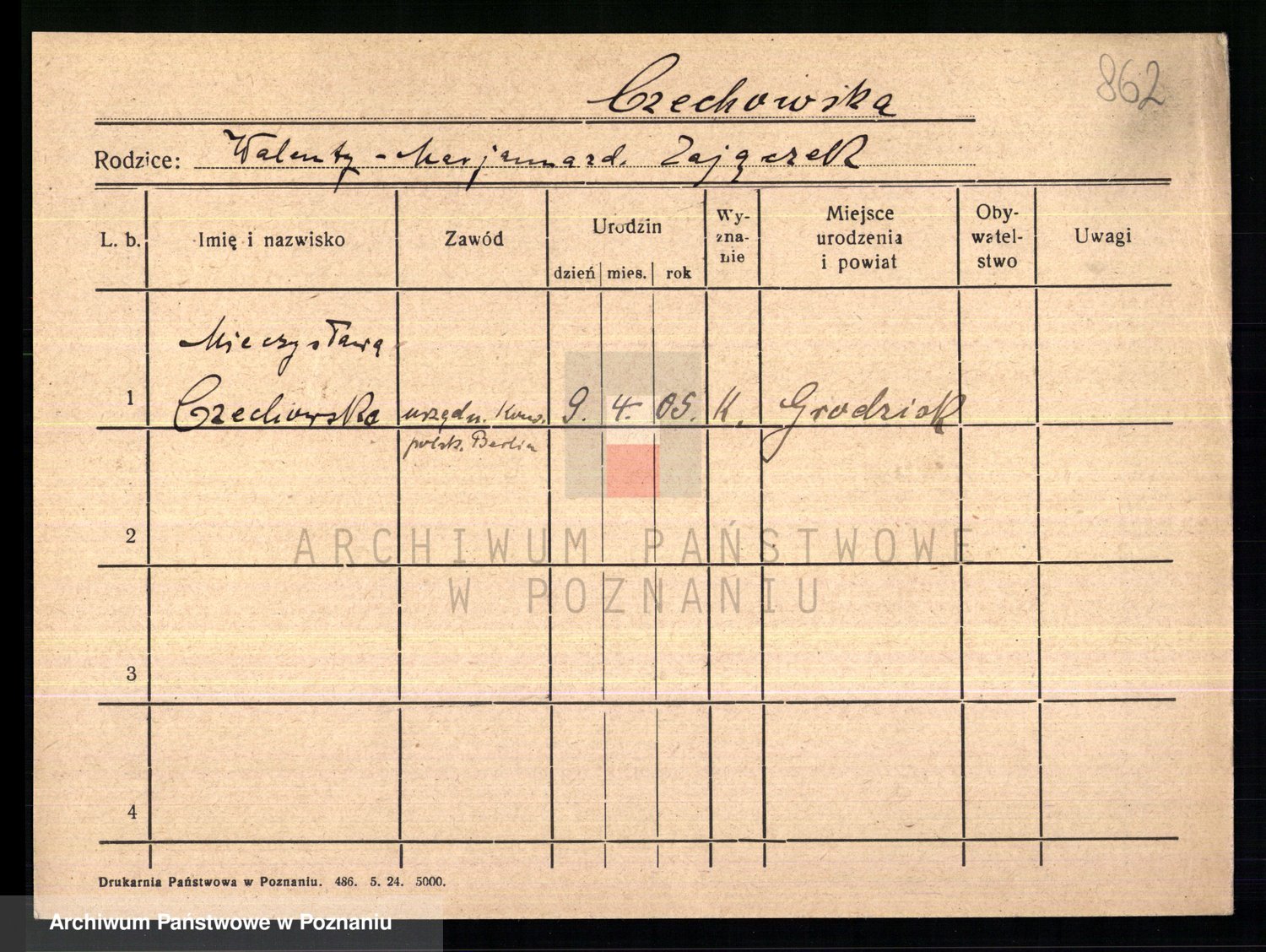 Czechoski z d. Grzymska, Valentine