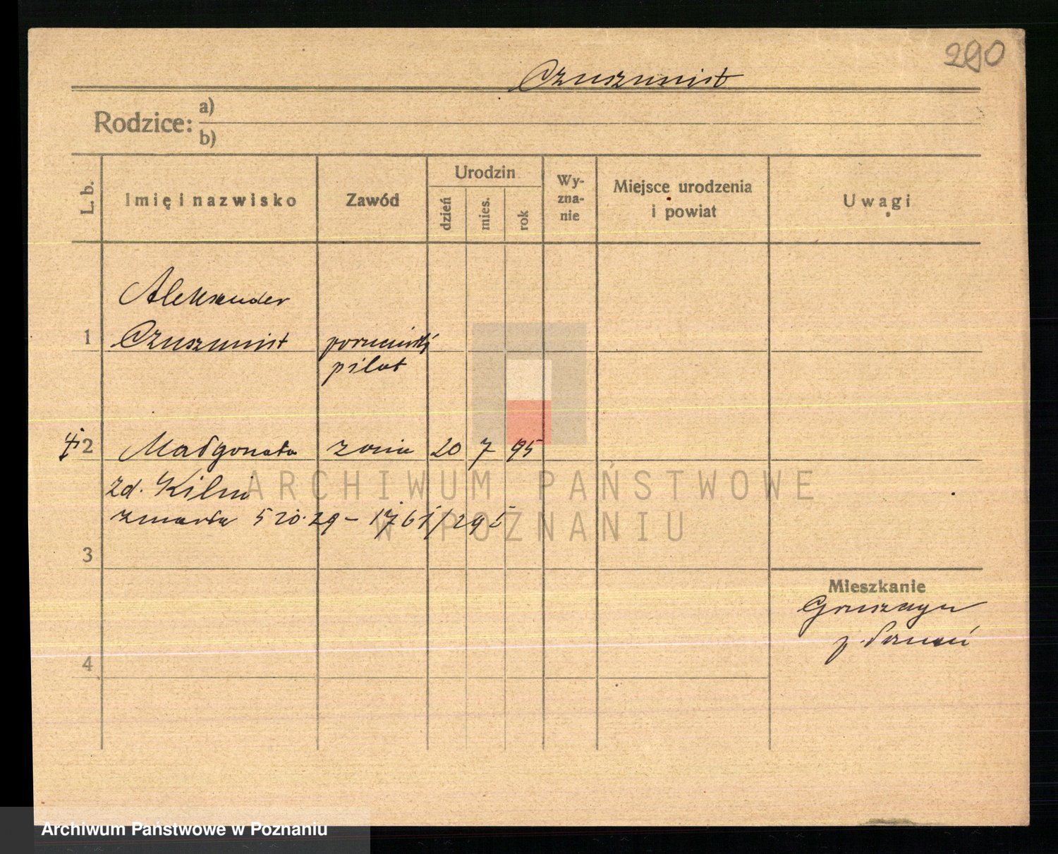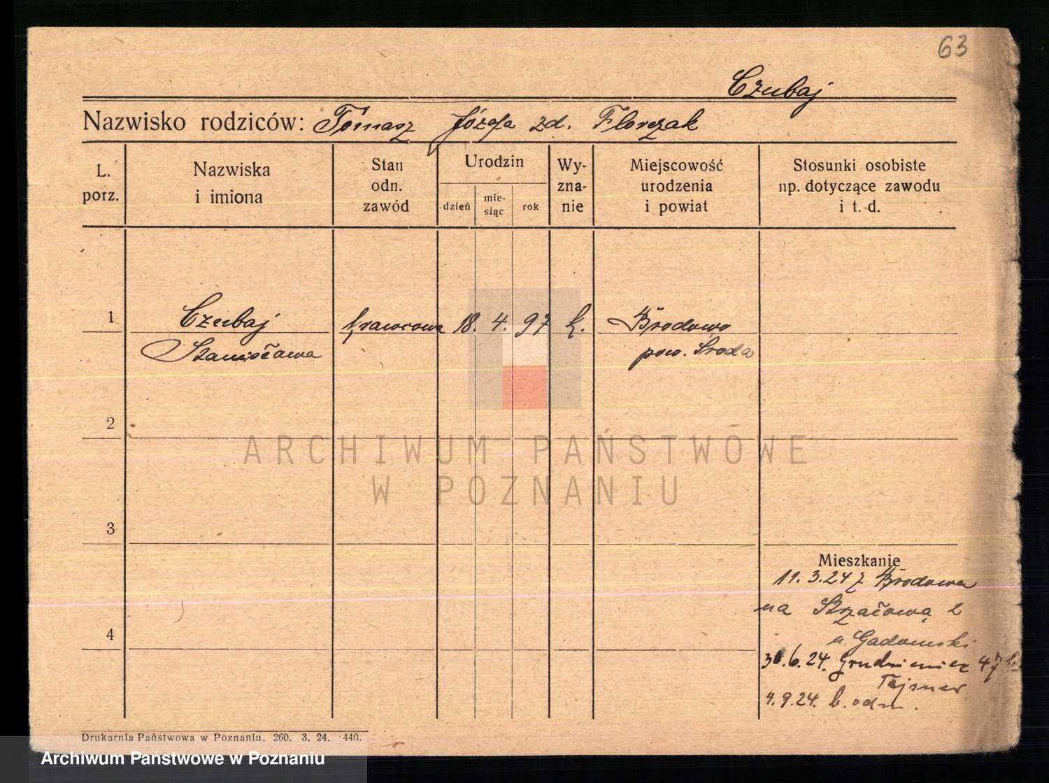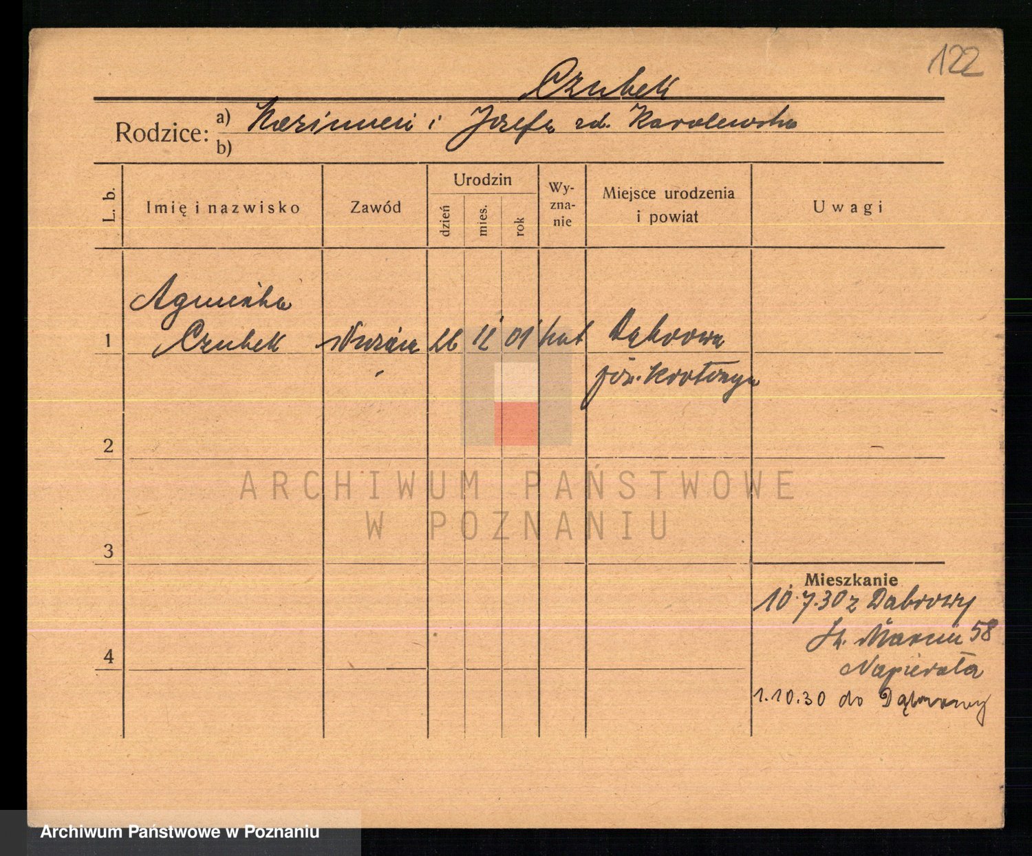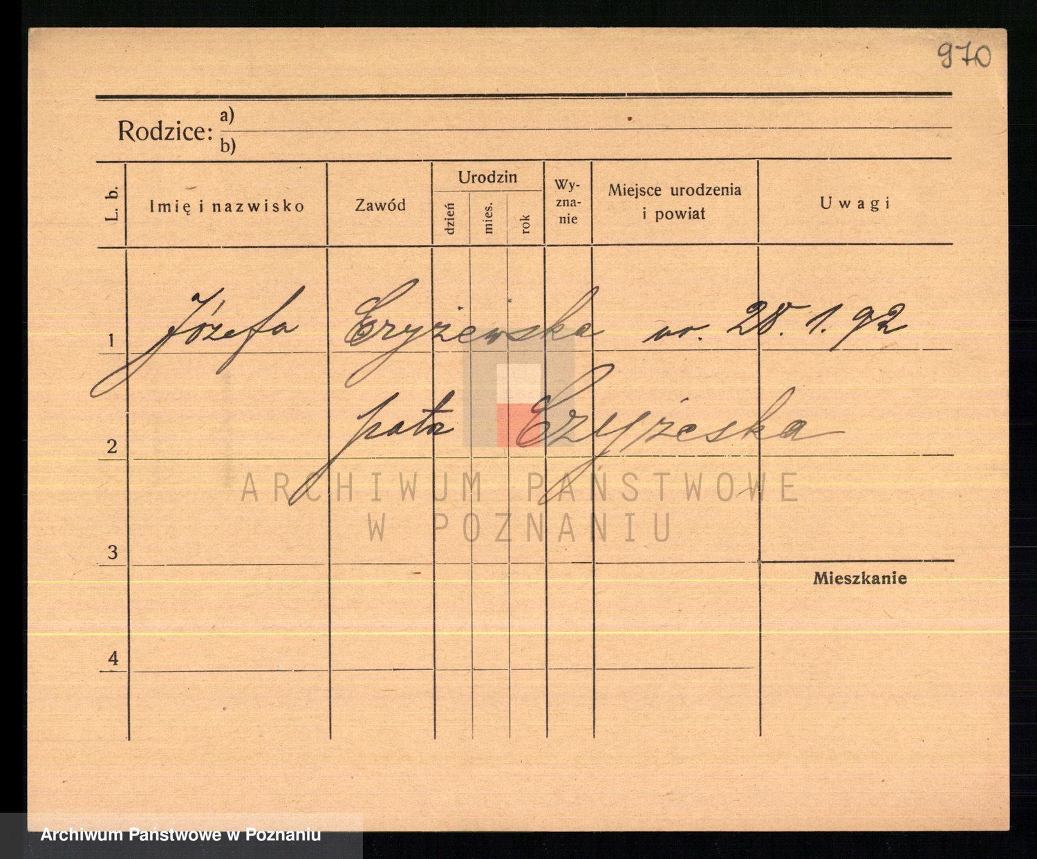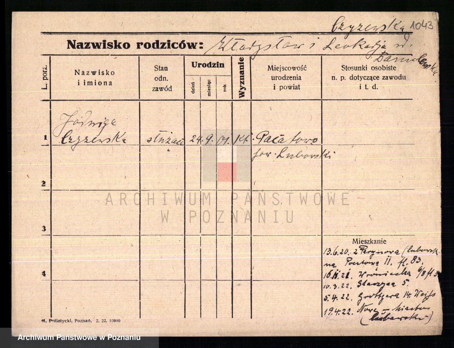 Podgląd karty osobowej dostępny jest po kliknięciu na nazwisko lub ikonkę karty. Można dokonywać powiększenia (ikony na górze) lub przechodzić między kolejnymi skanami (strzałki po bokach).