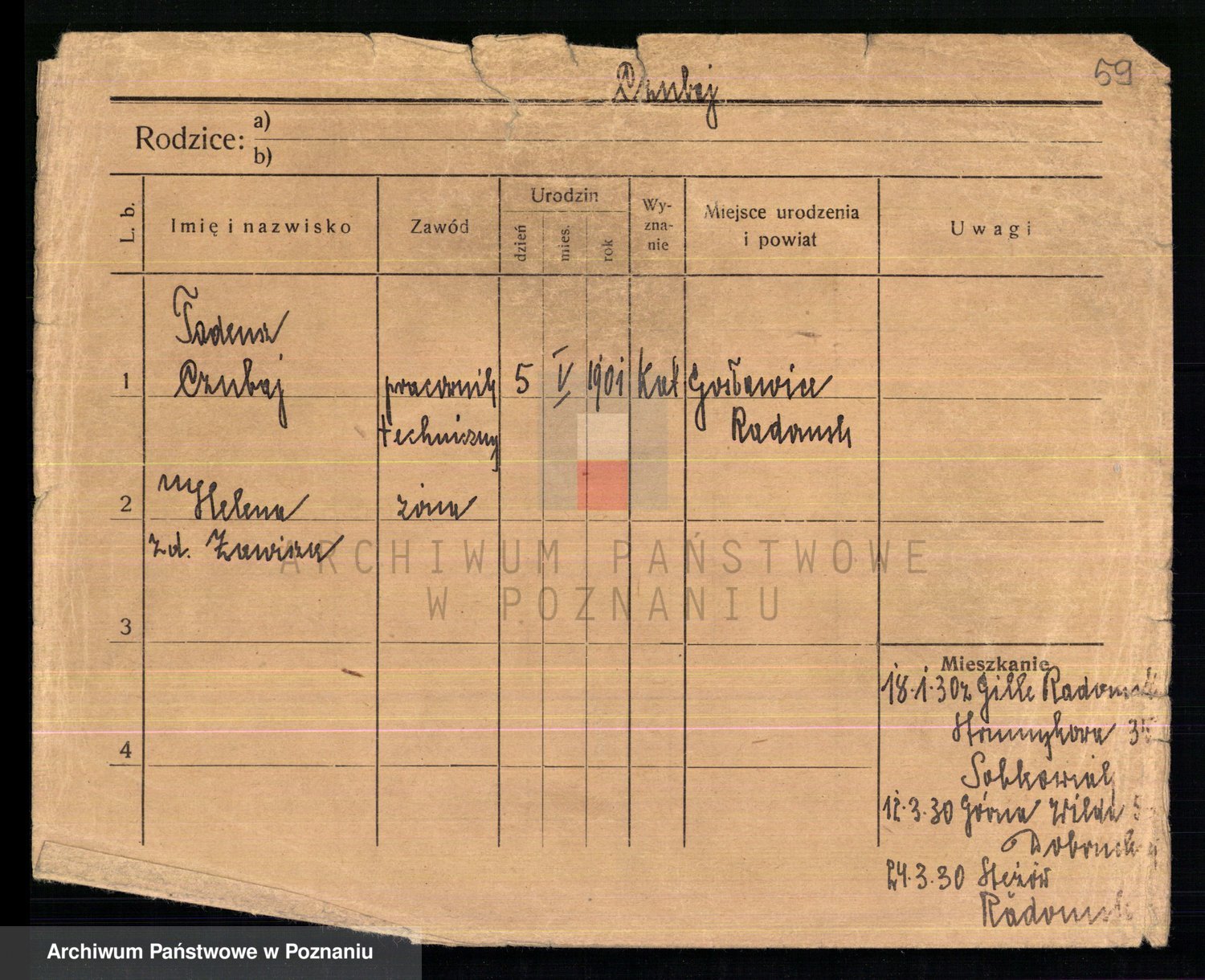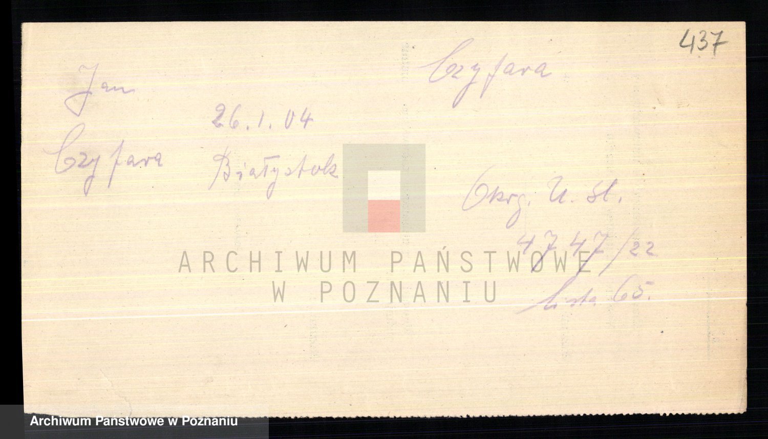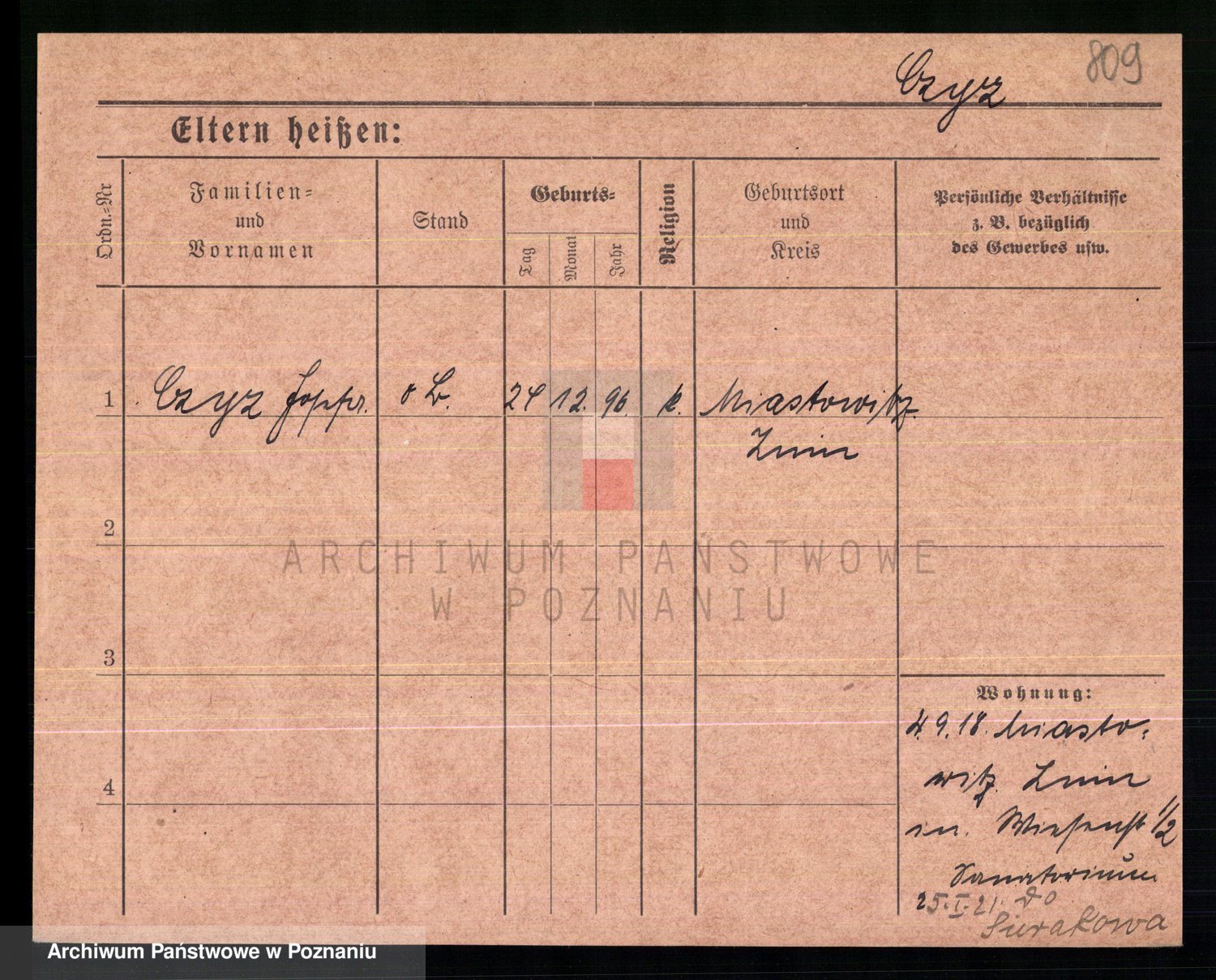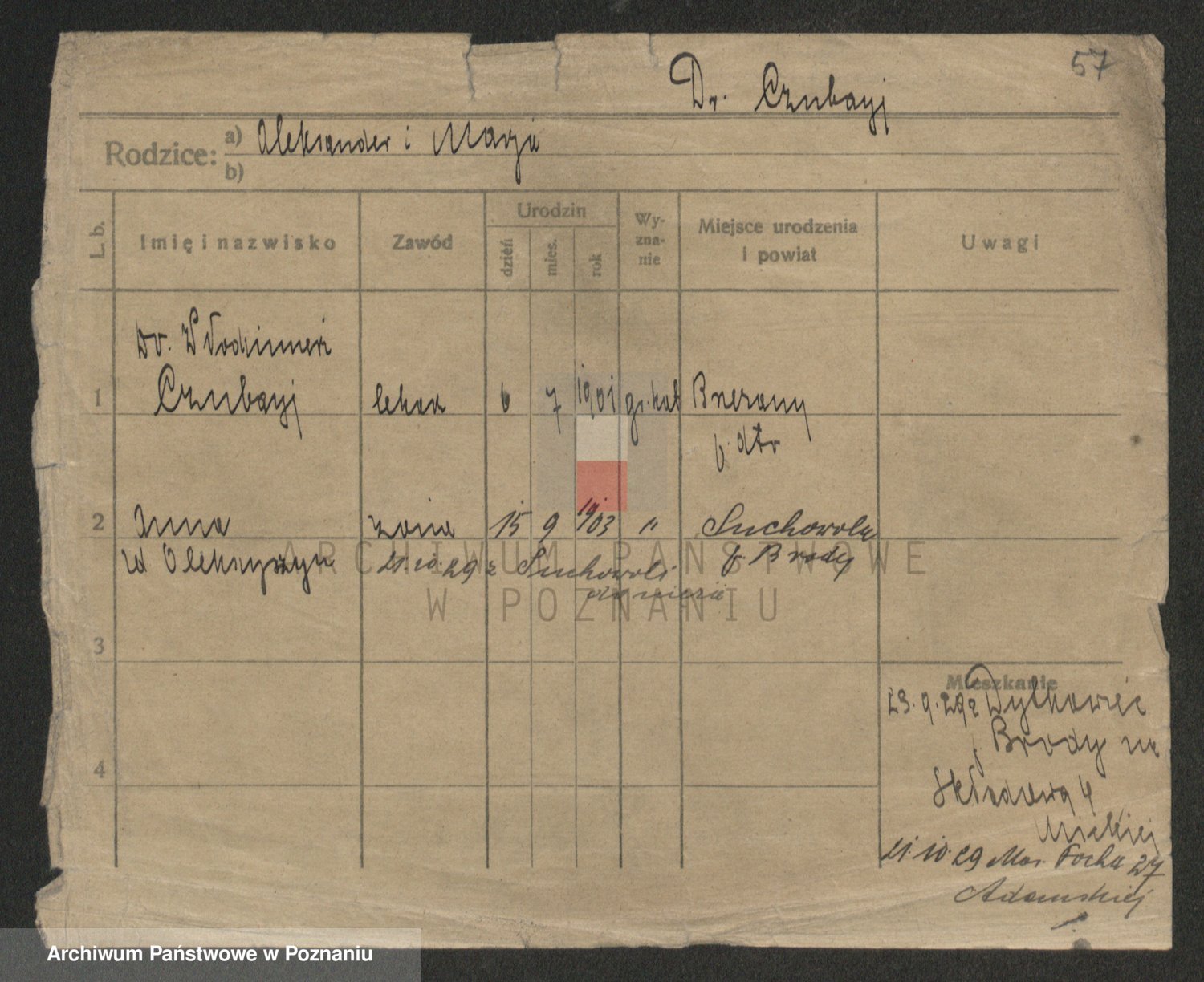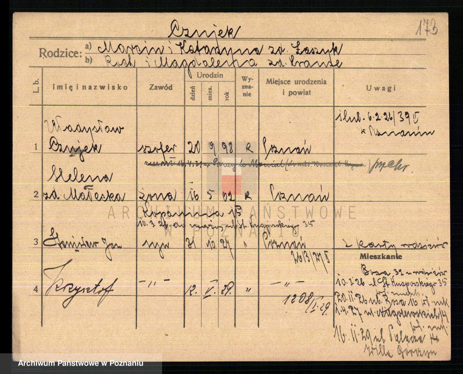 Podgląd karty osobowej dostępny jest po kliknięciu na nazwisko lub ikonkę karty. Można dokonywać powiększenia (ikony na górze) lub przechodzić między kolejnymi skanami (strzałki po bokach).