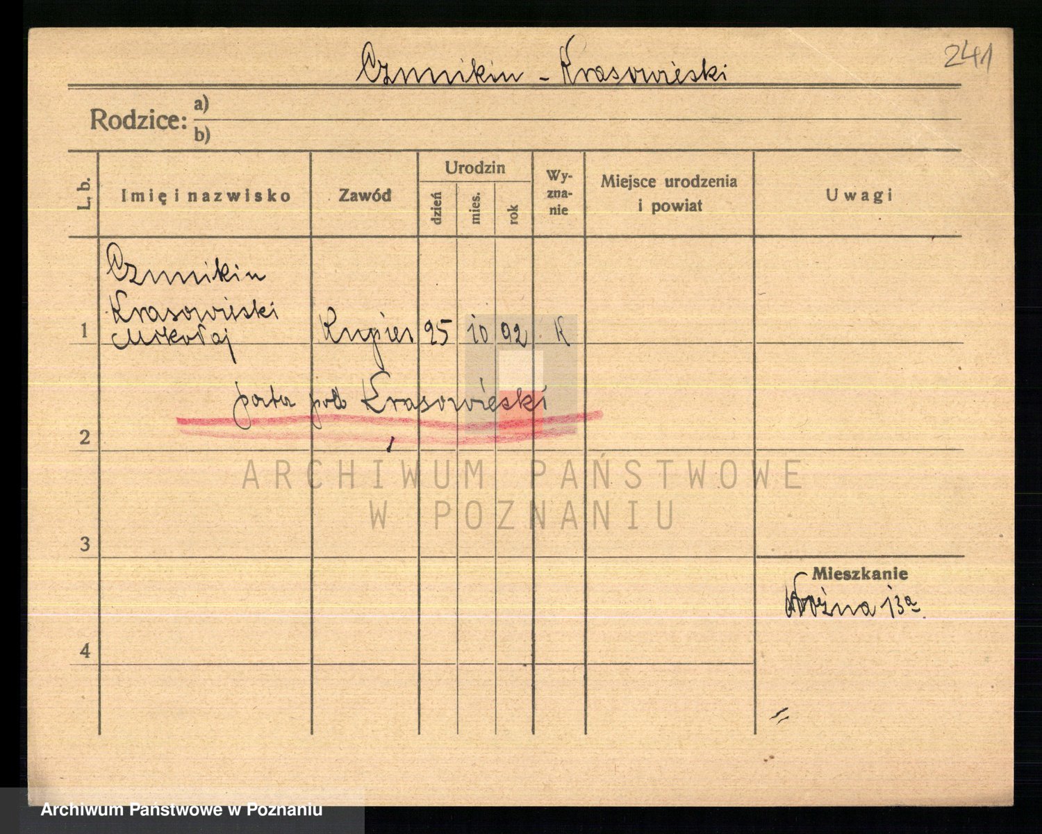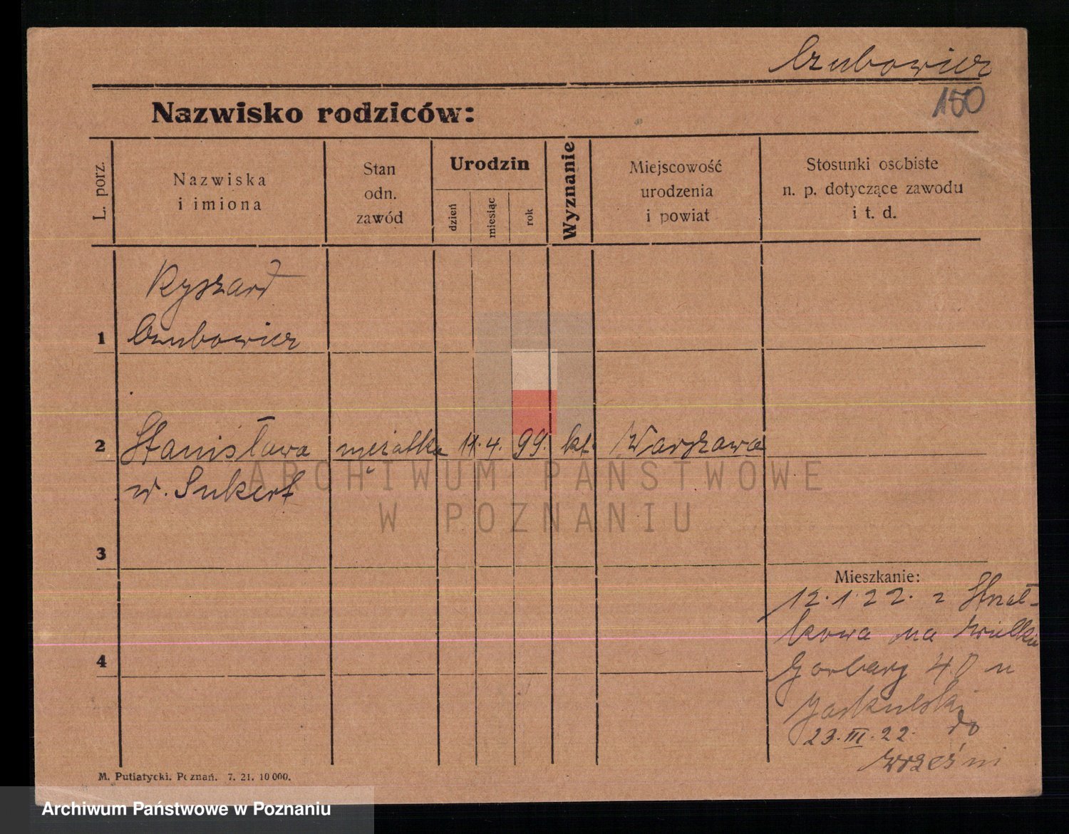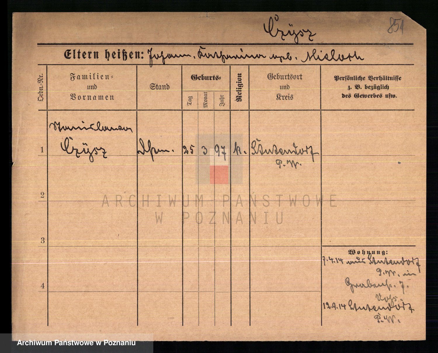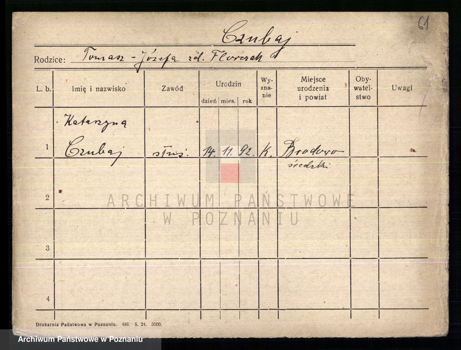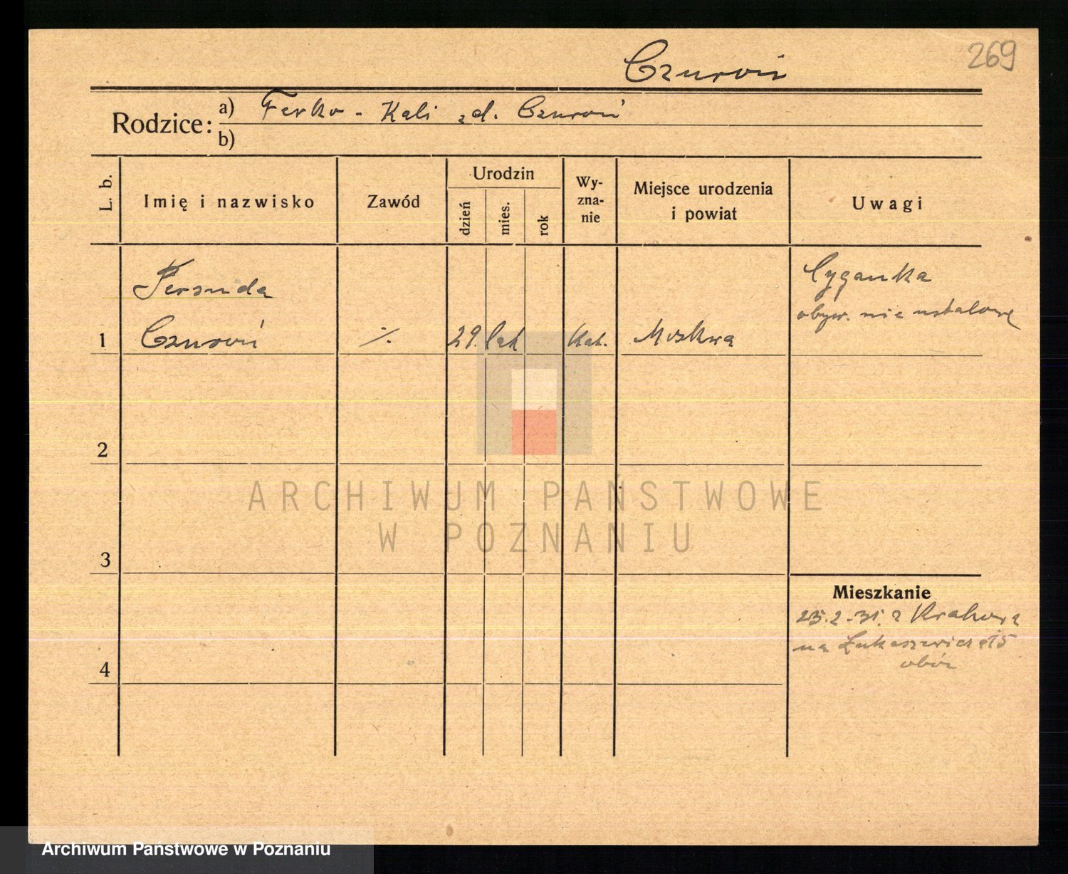 Podgląd karty osobowej dostępny jest po kliknięciu na nazwisko lub ikonkę karty. Można dokonywać powiększenia (ikony na górze) lub przechodzić między kolejnymi skanami (strzałki po bokach).