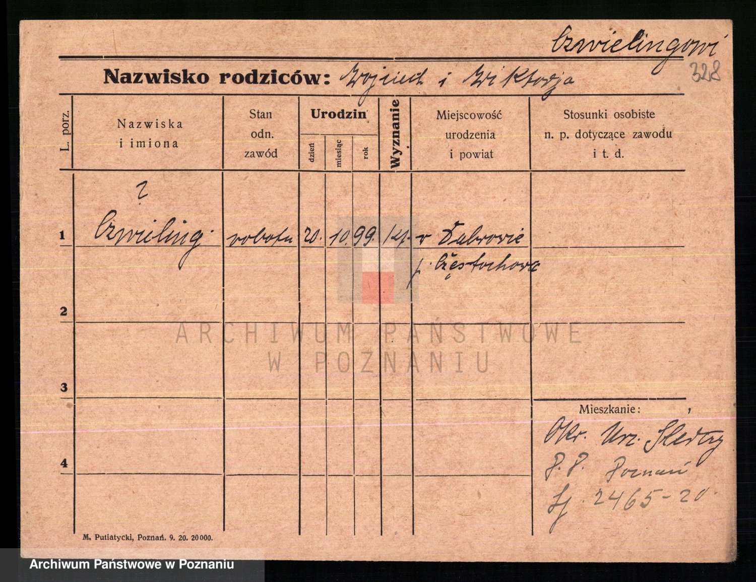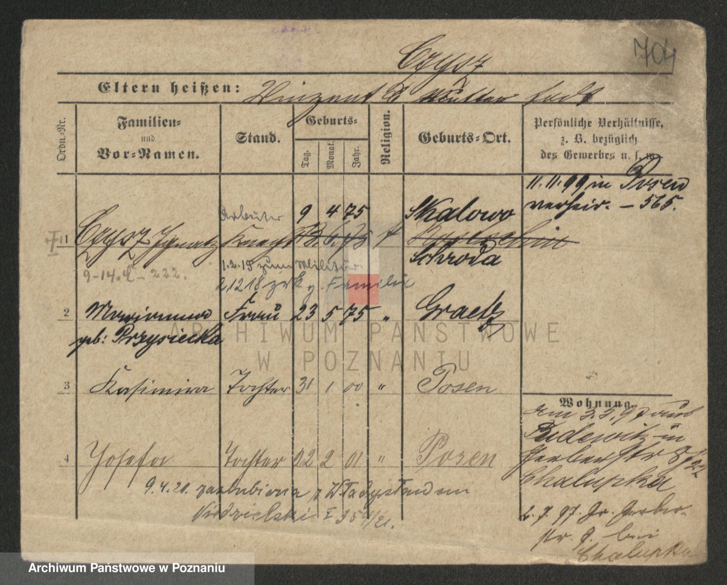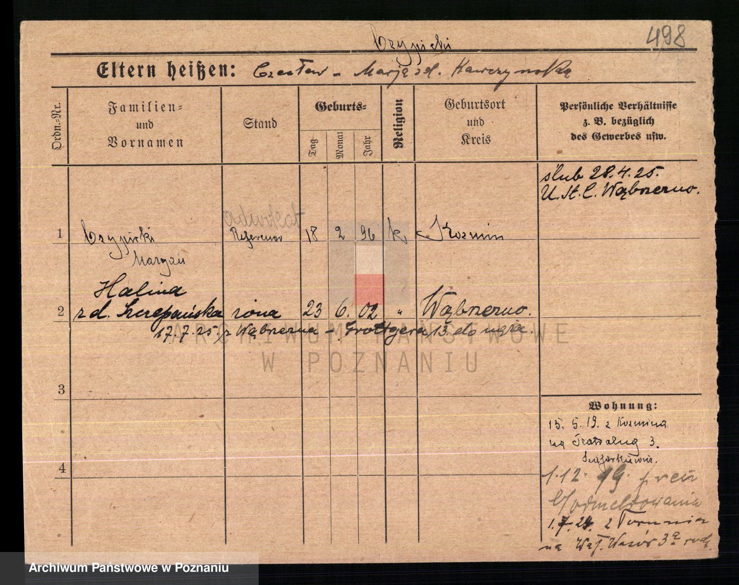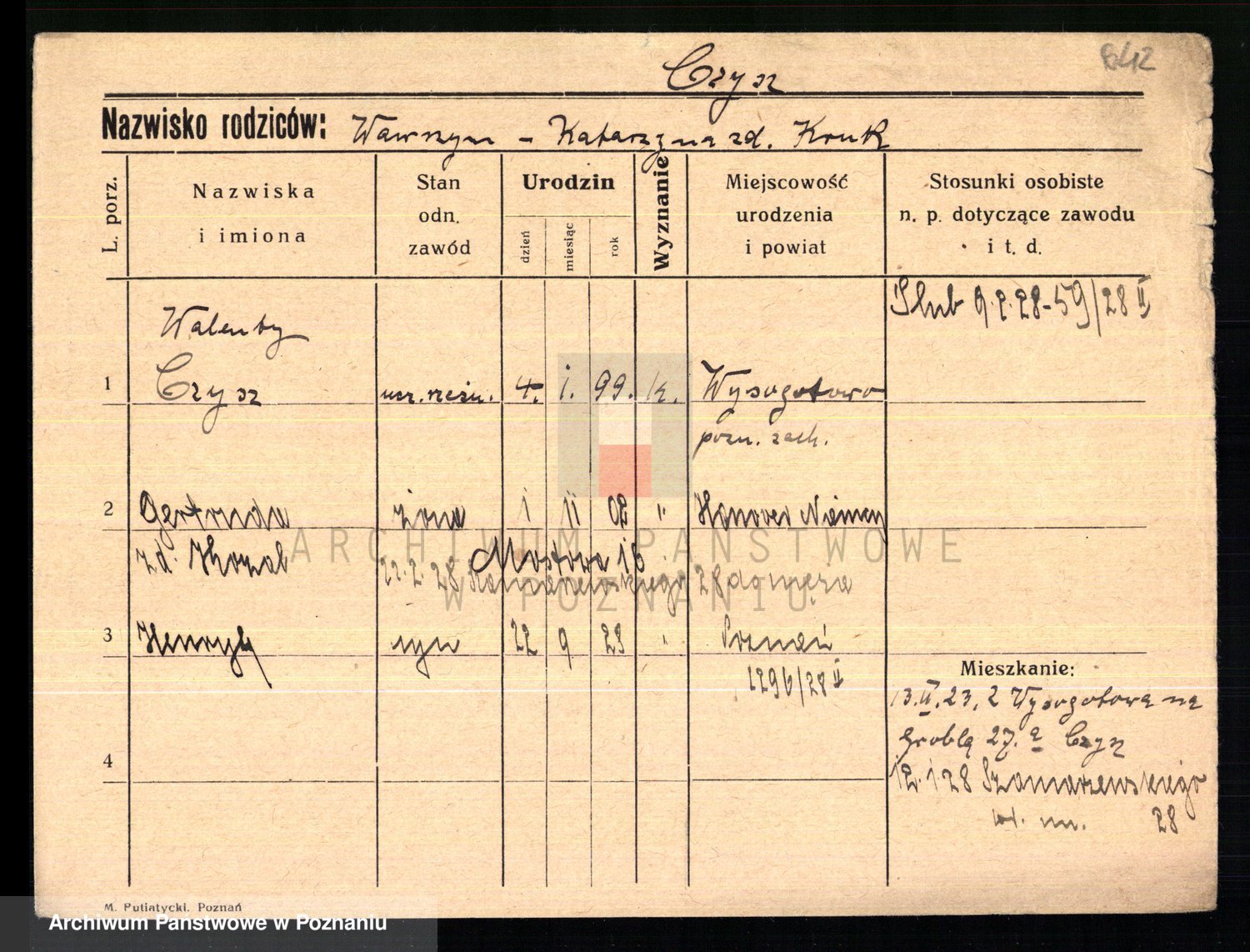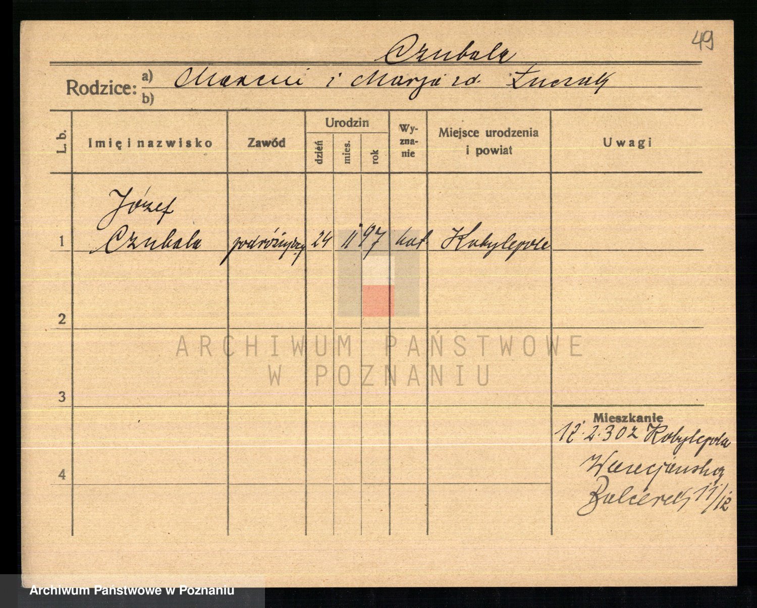 Podgląd karty osobowej dostępny jest po kliknięciu na nazwisko lub ikonkę karty. Można dokonywać powiększenia (ikony na górze) lub przechodzić między kolejnymi skanami (strzałki po bokach).