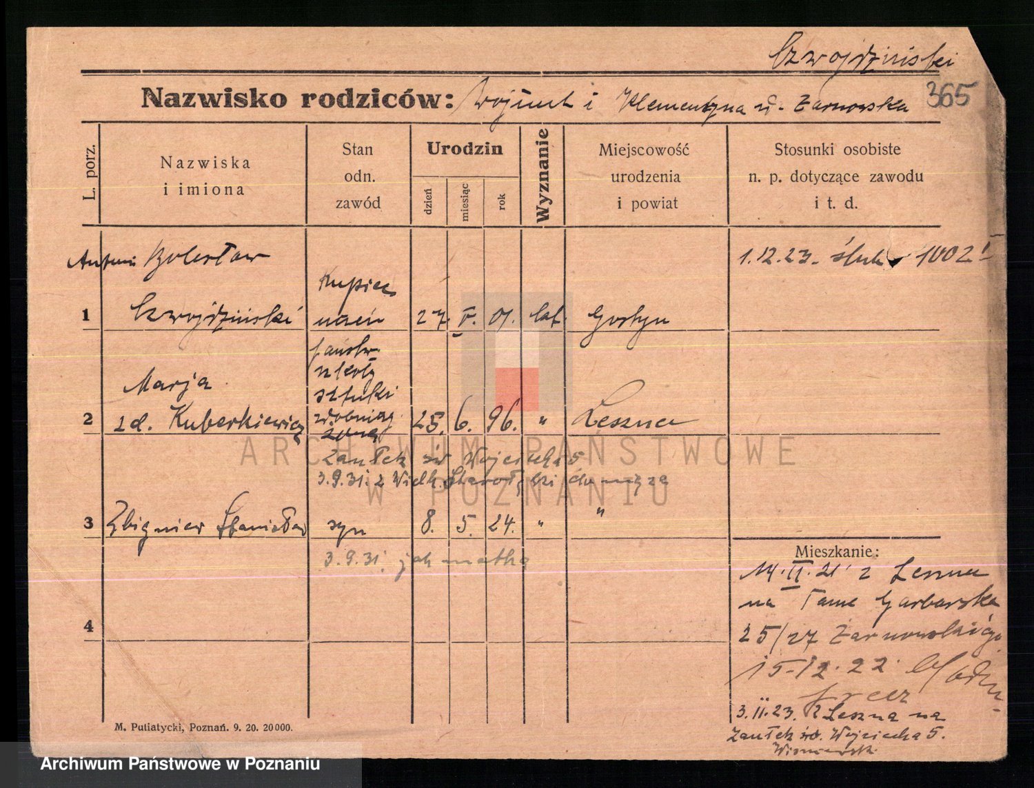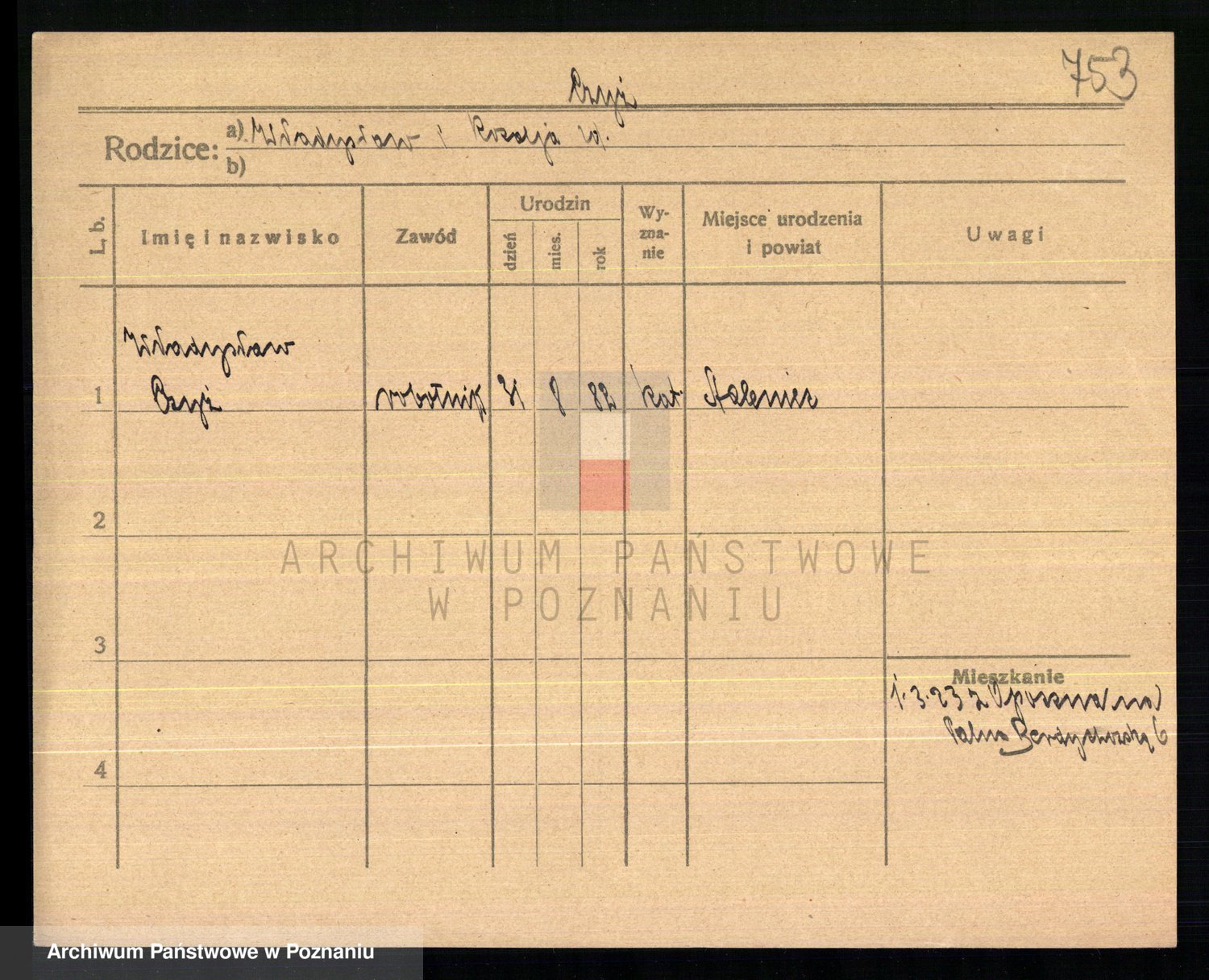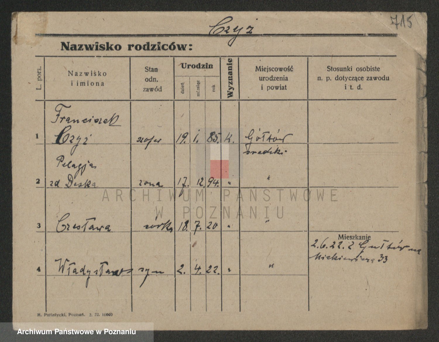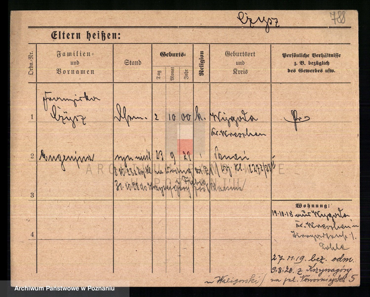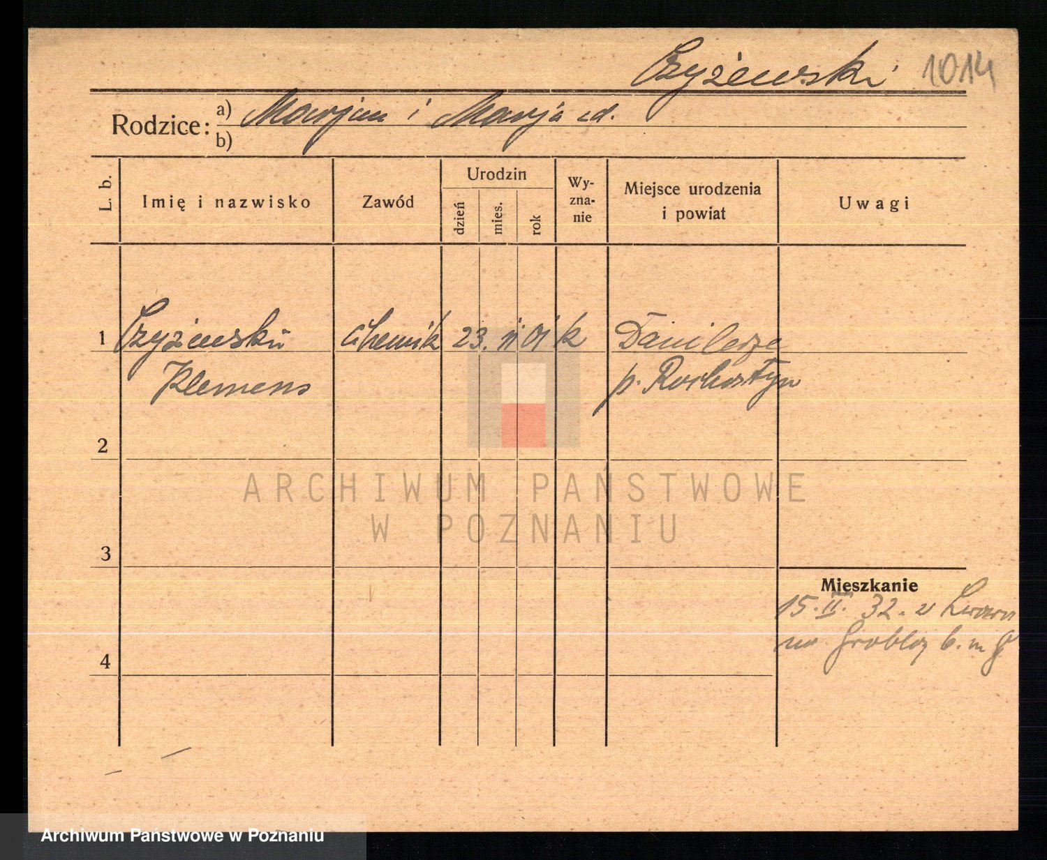 Podgląd karty osobowej dostępny jest po kliknięciu na nazwisko lub ikonkę karty. Można dokonywać powiększenia (ikony na górze) lub przechodzić między kolejnymi skanami (strzałki po bokach).