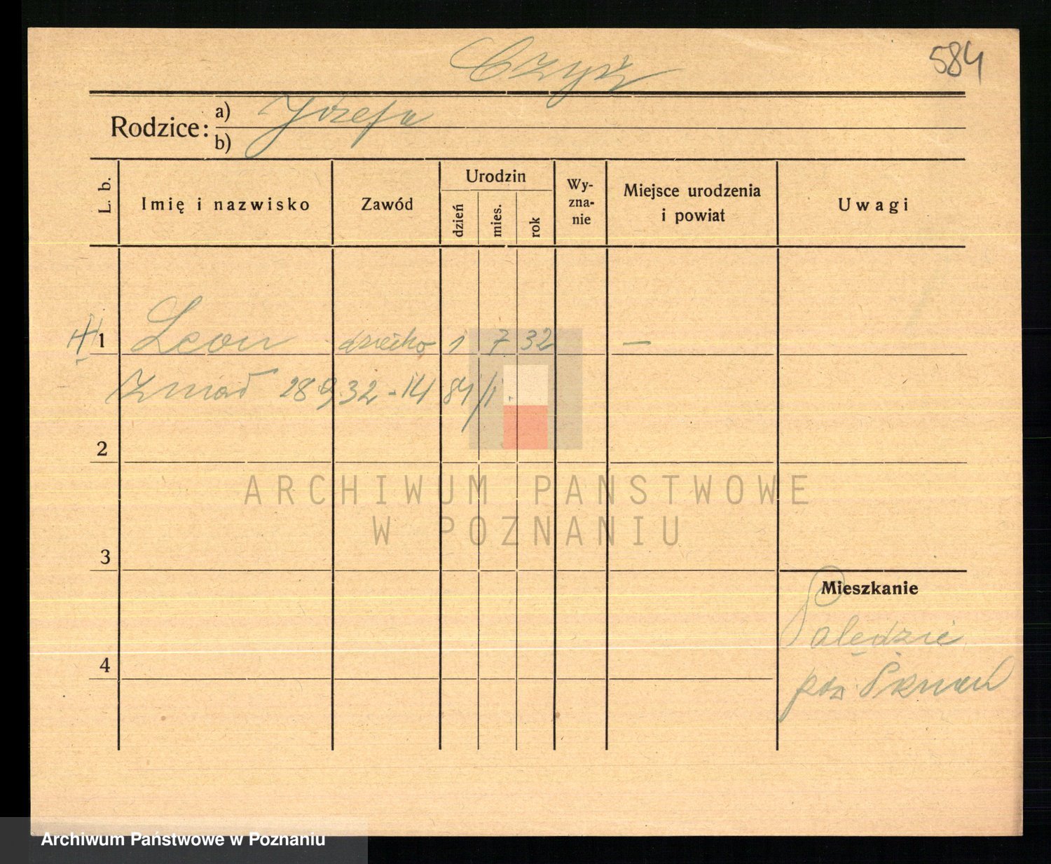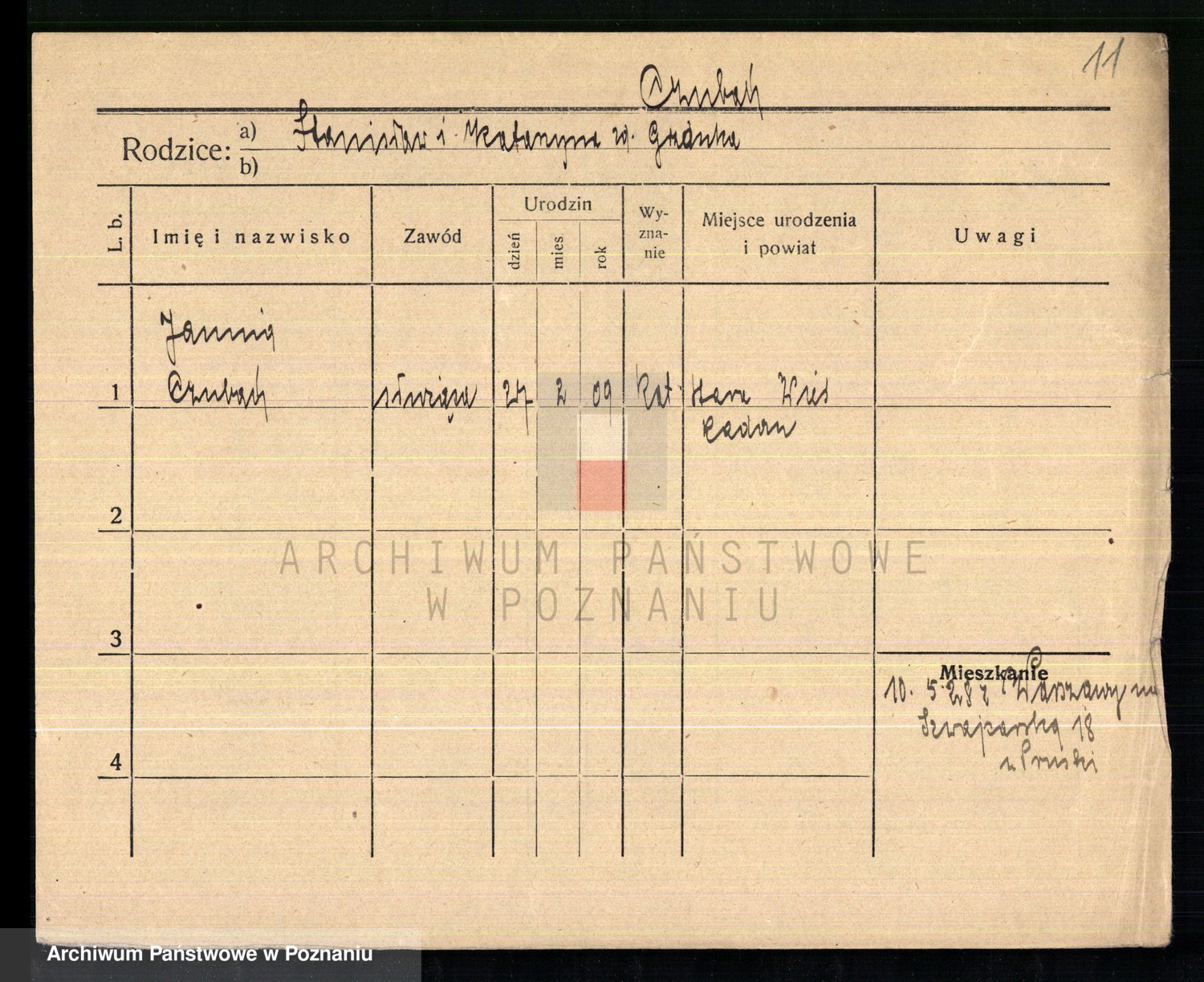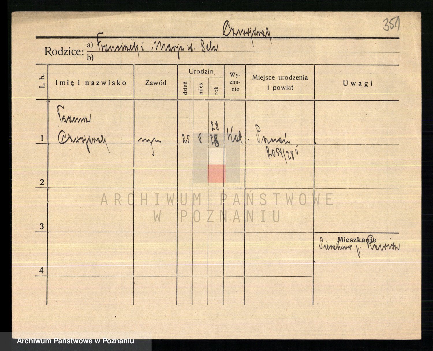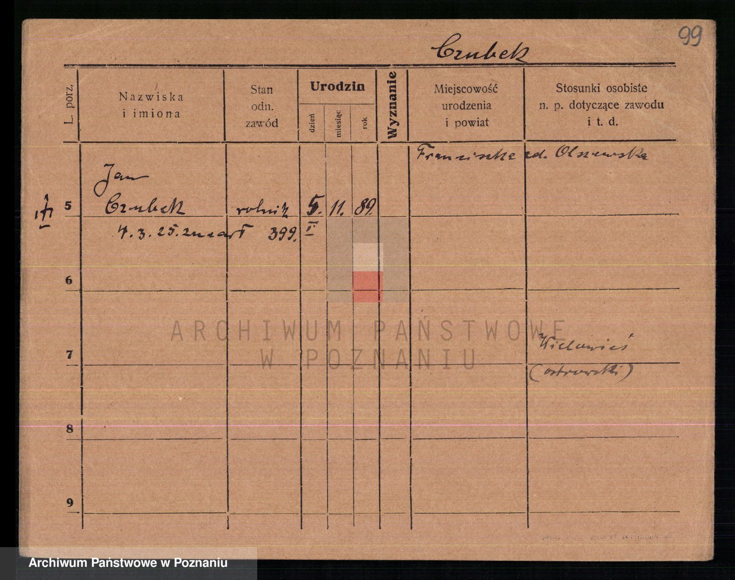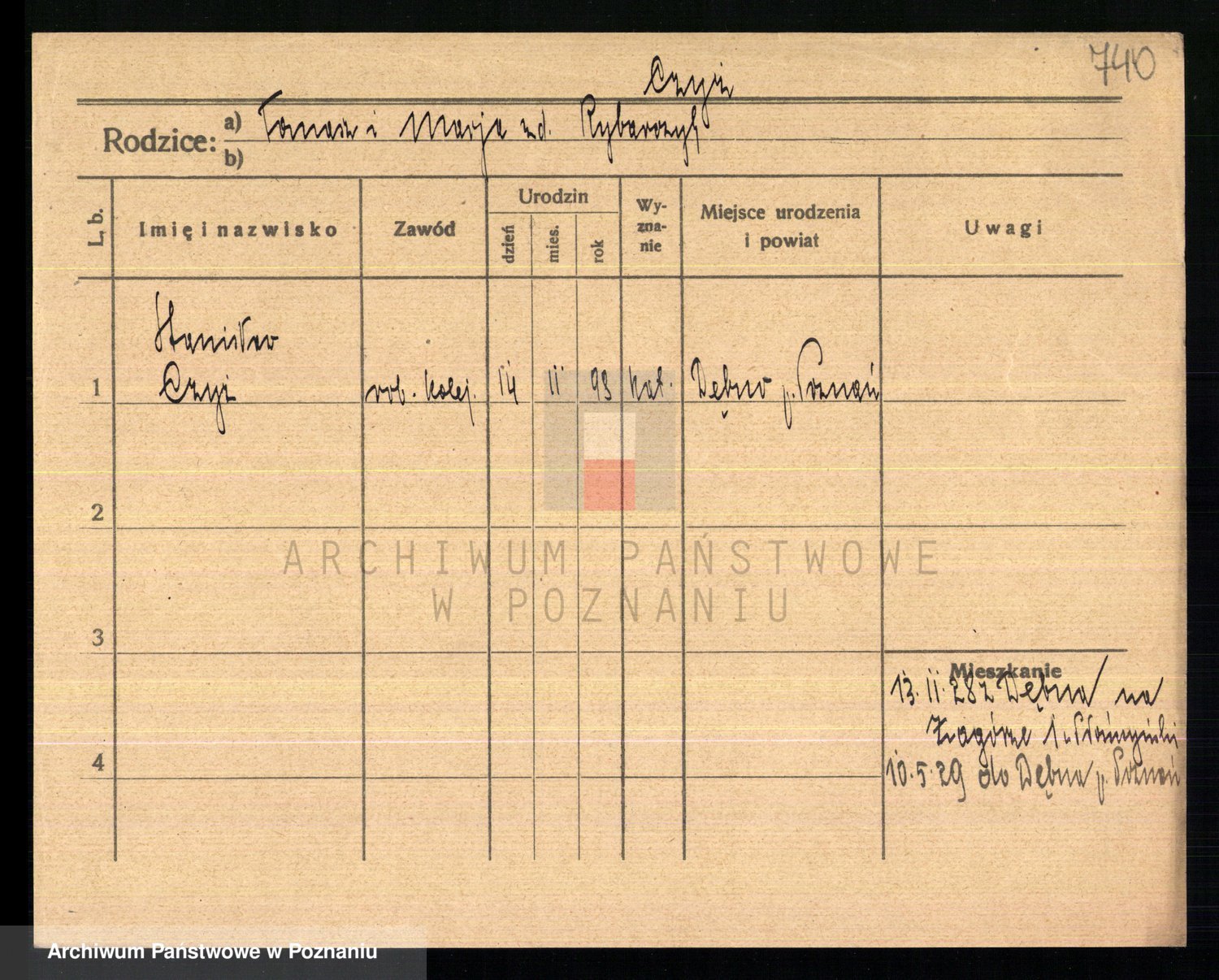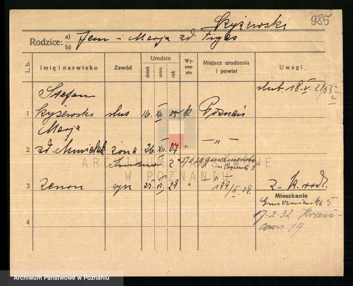Podgląd karty osobowej dostępny jest po kliknięciu na nazwisko lub ikonkę karty. Można dokonywać powiększenia (ikony na górze) lub przechodzić między kolejnymi skanami (strzałki po bokach).