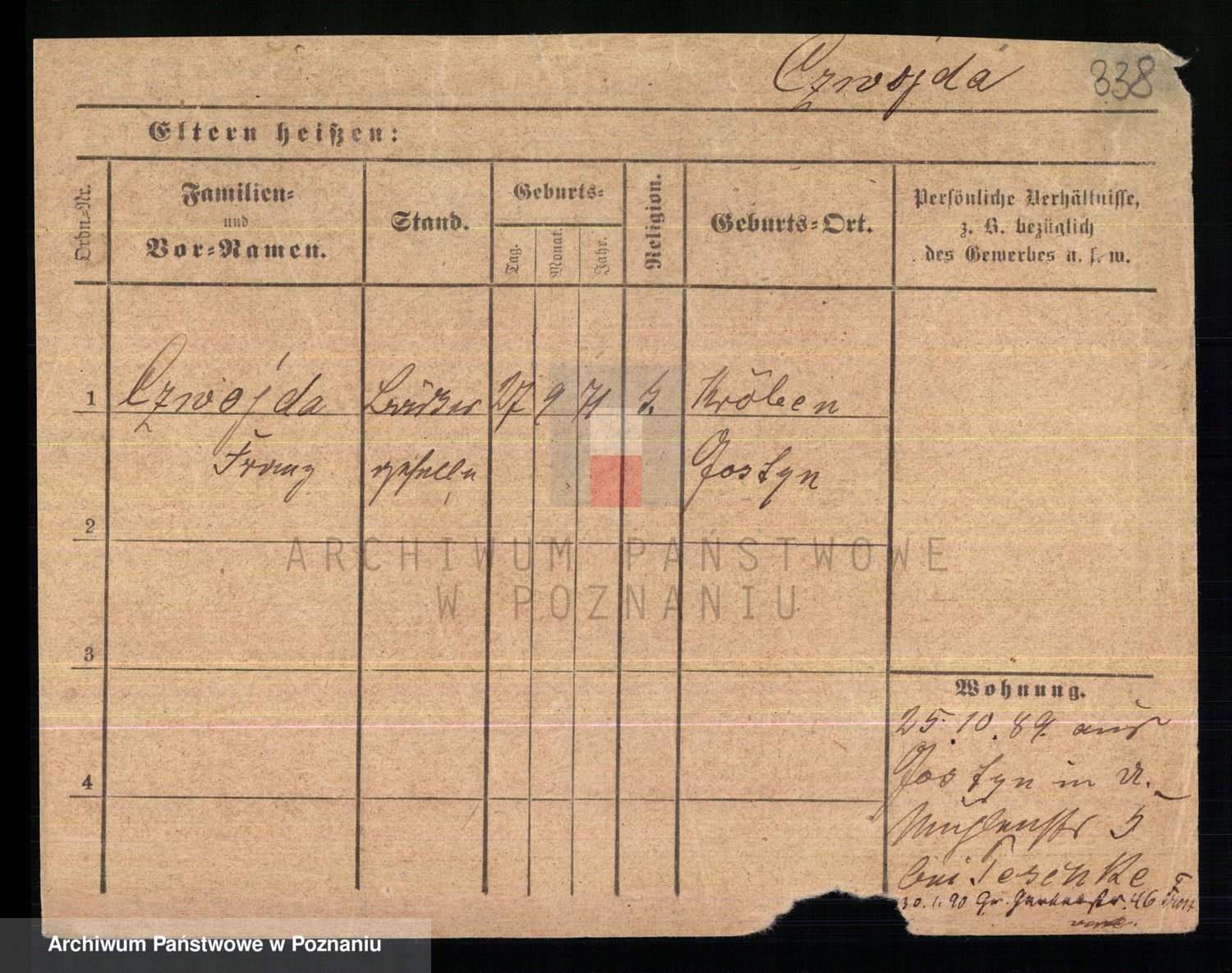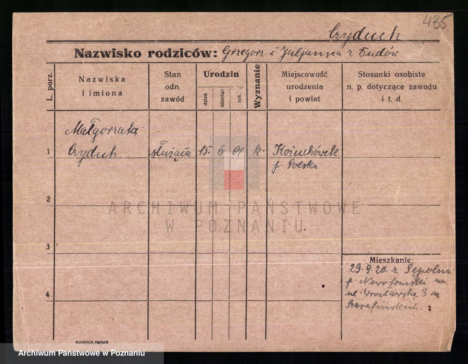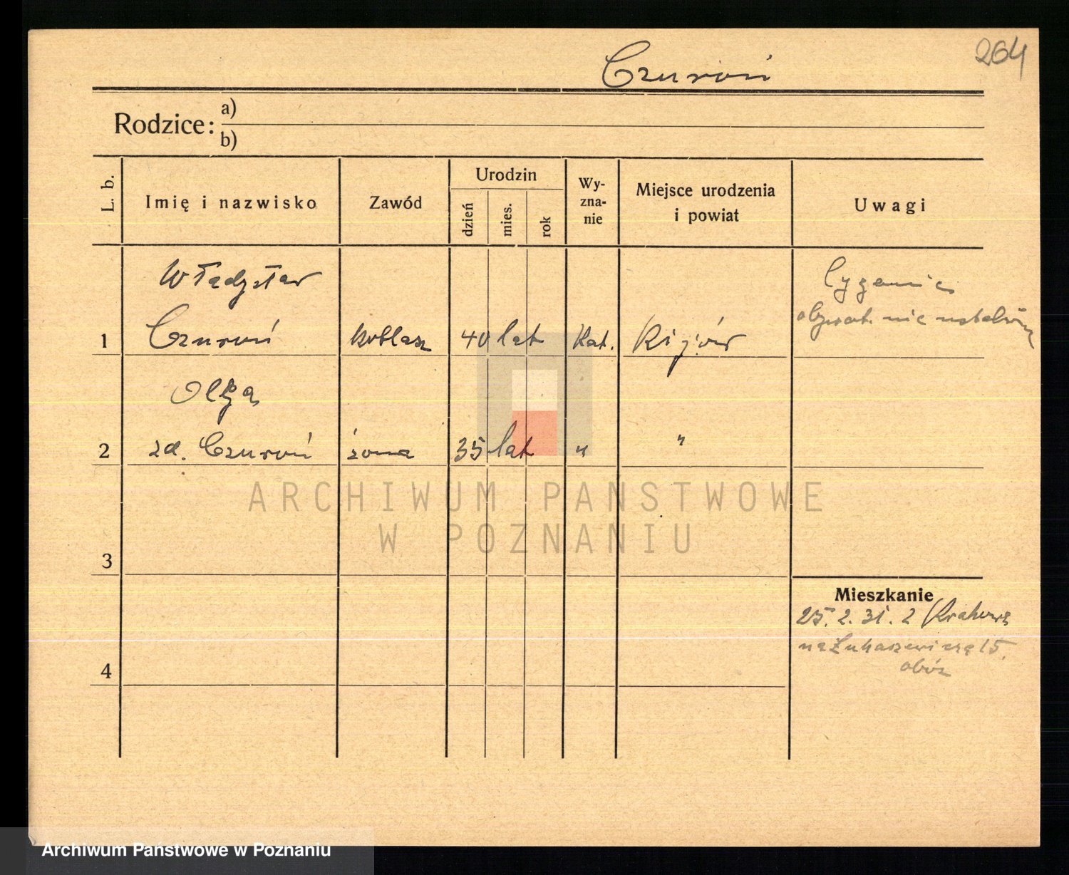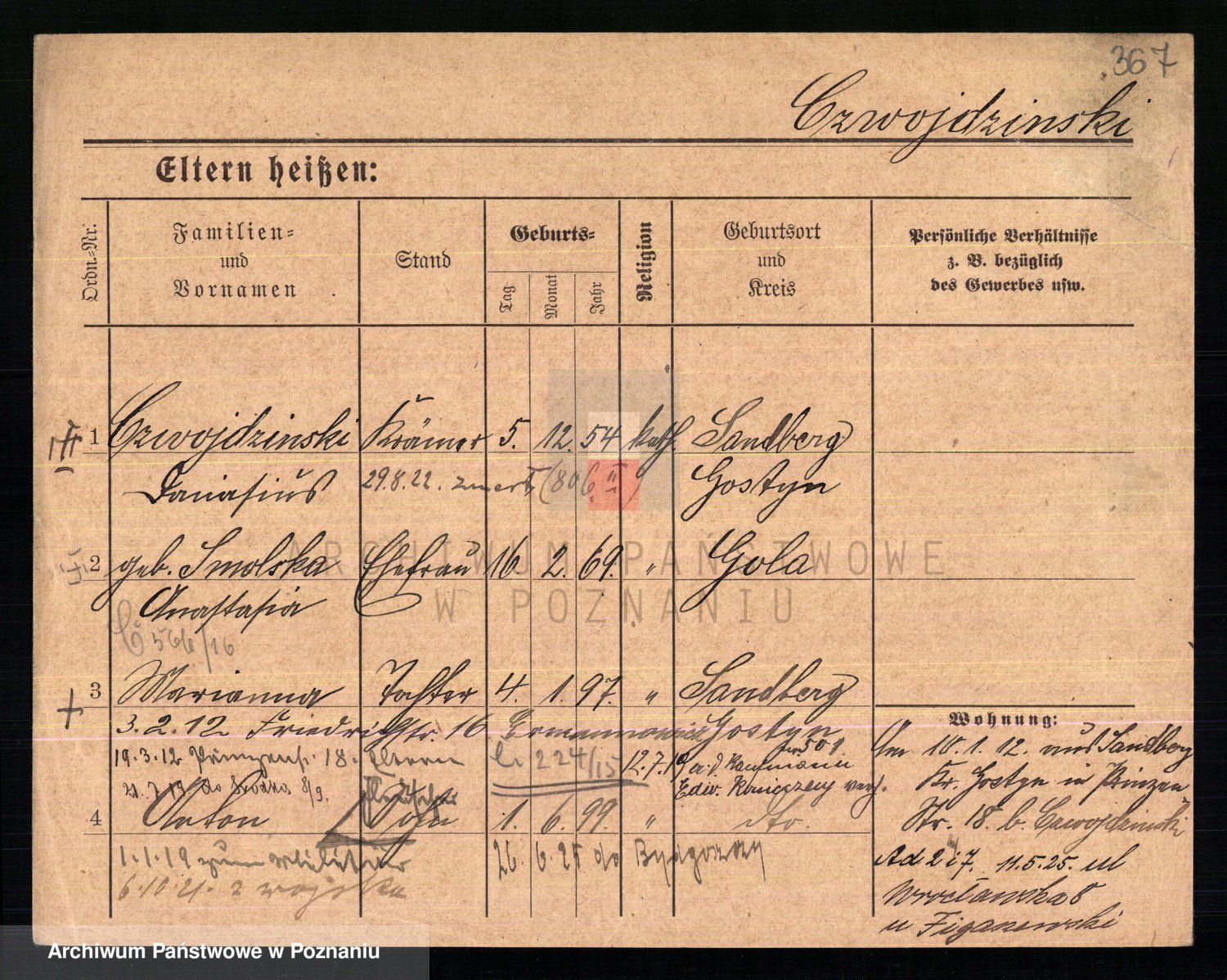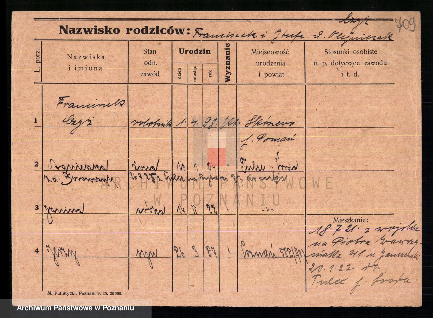 Podgląd karty osobowej dostępny jest po kliknięciu na nazwisko lub ikonkę karty. Można dokonywać powiększenia (ikony na górze) lub przechodzić między kolejnymi skanami (strzałki po bokach).