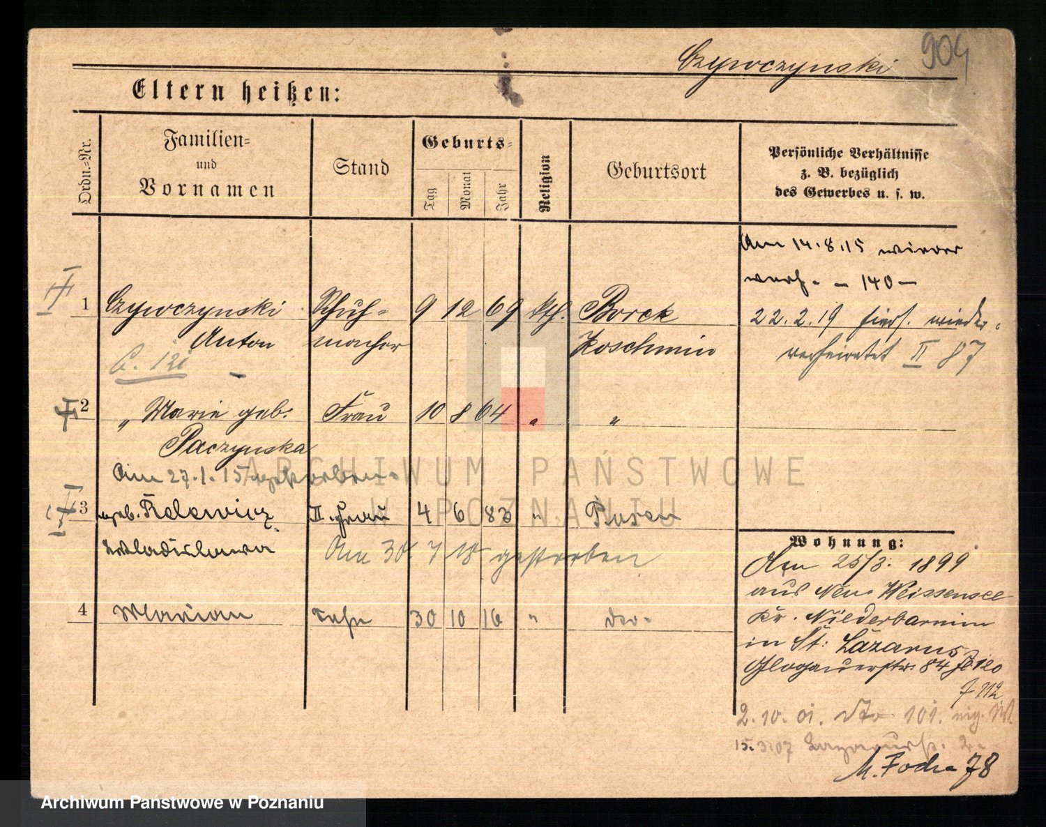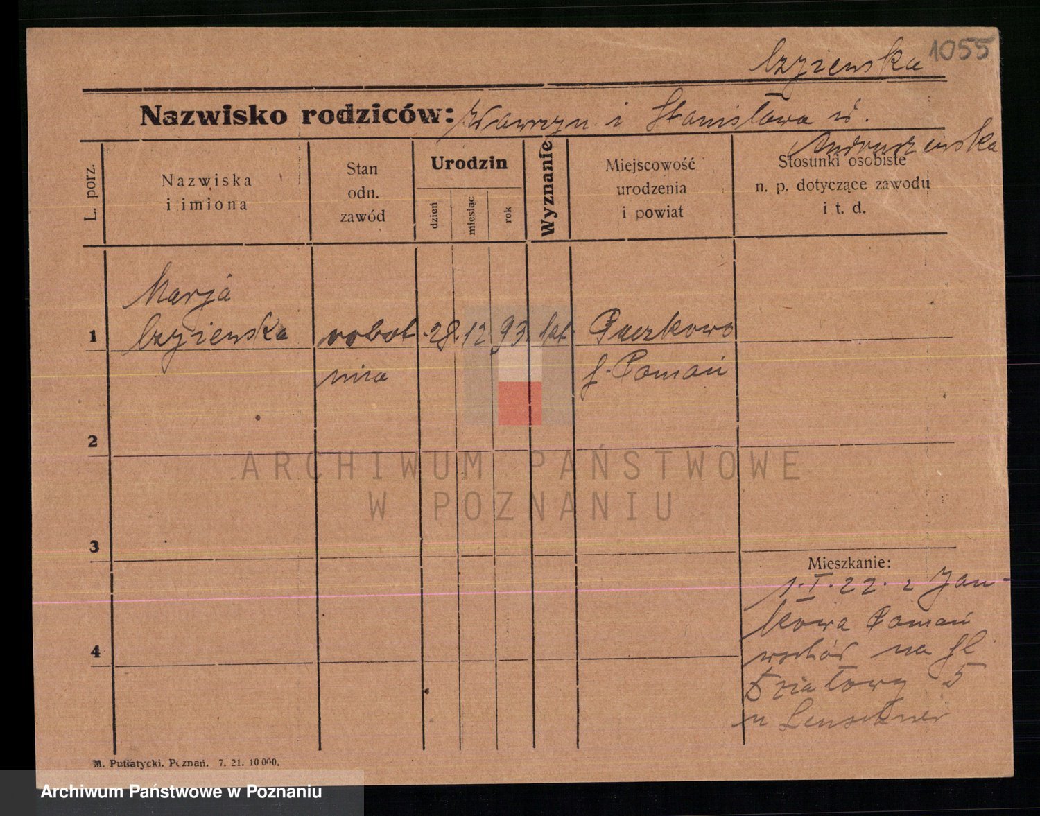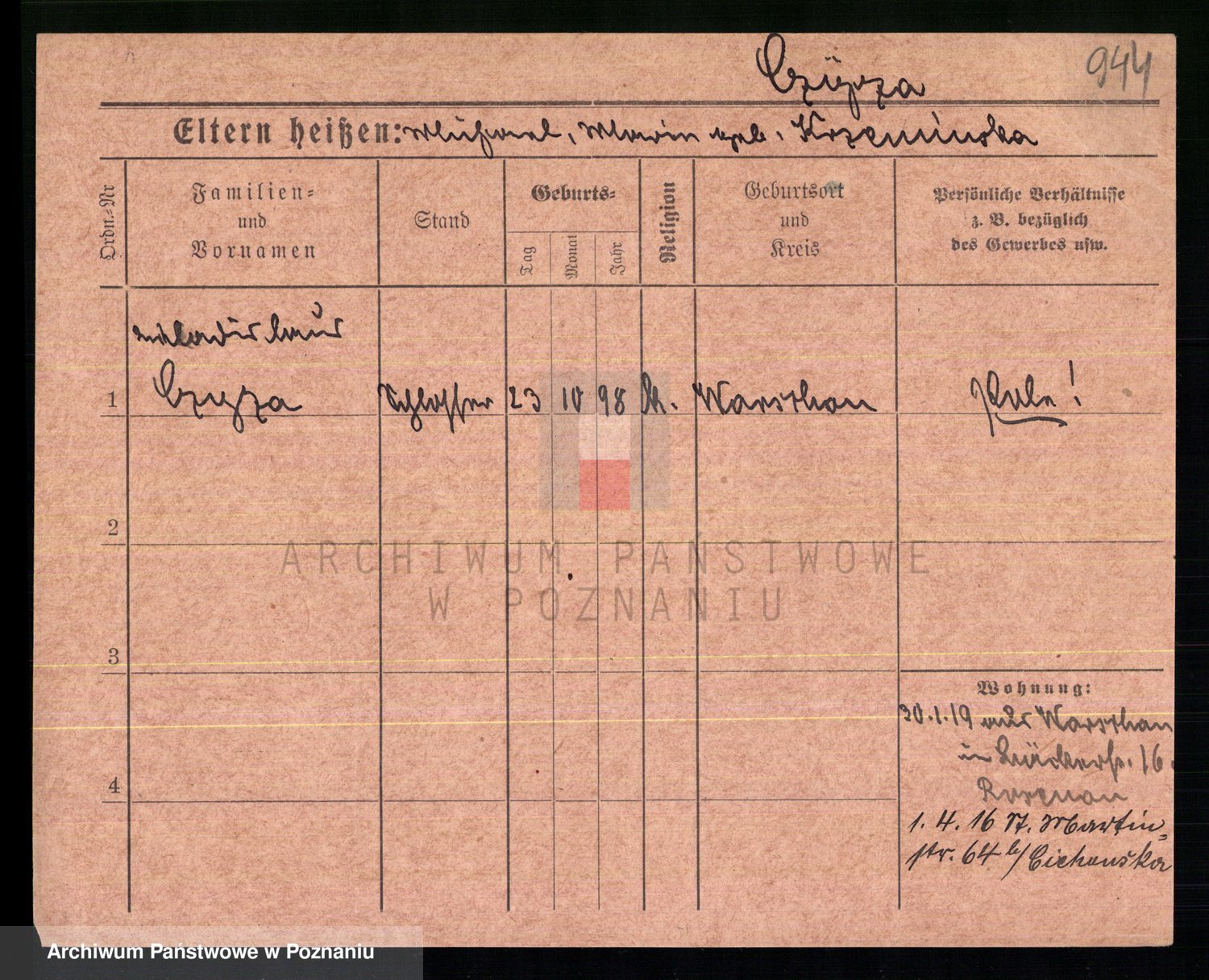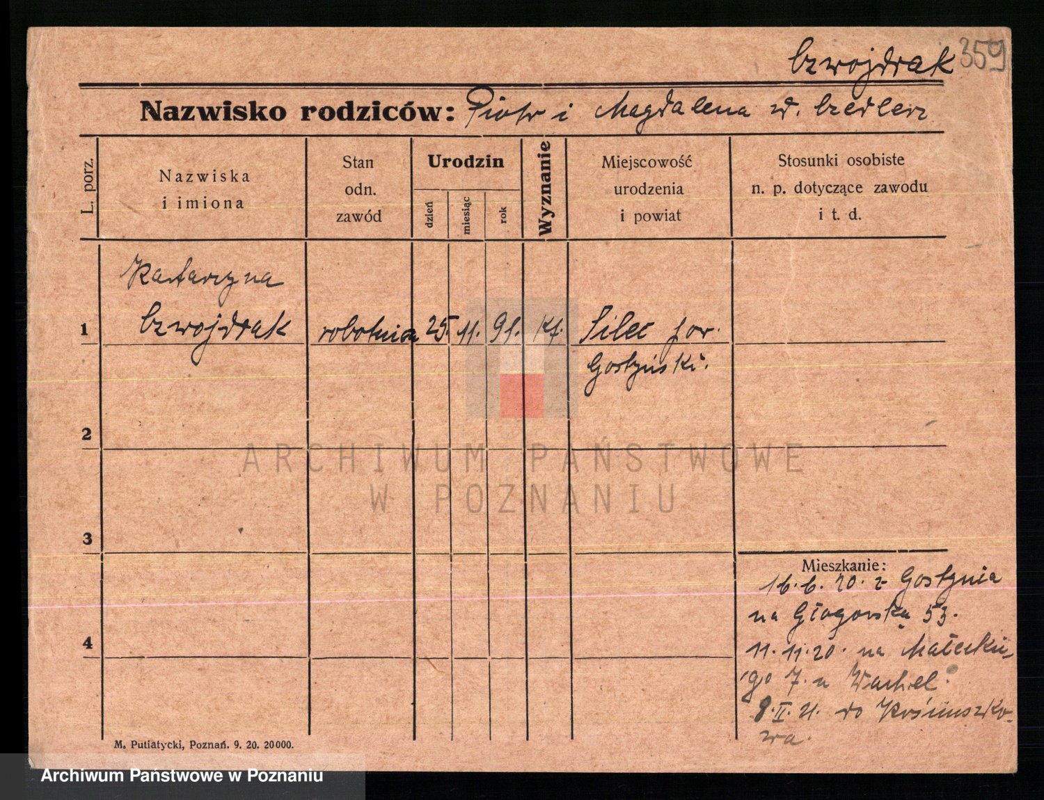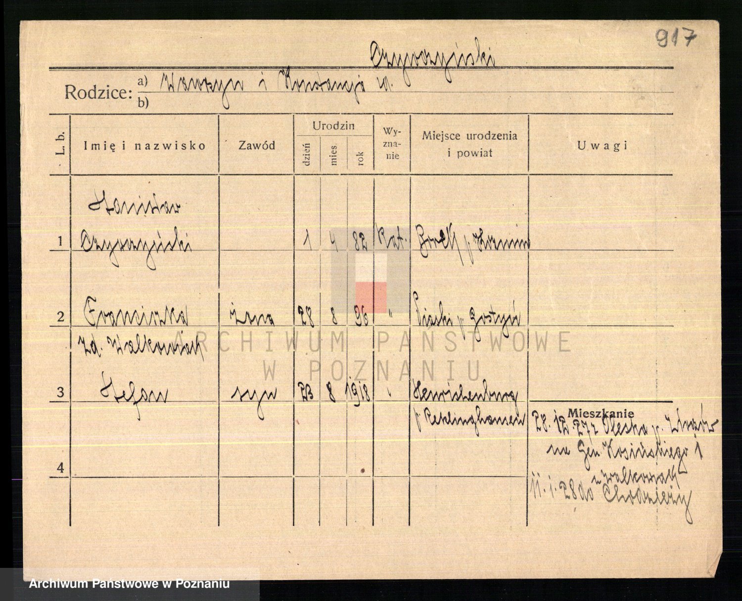 Podgląd karty osobowej dostępny jest po kliknięciu na nazwisko lub ikonkę karty. Można dokonywać powiększenia (ikony na górze) lub przechodzić między kolejnymi skanami (strzałki po bokach).