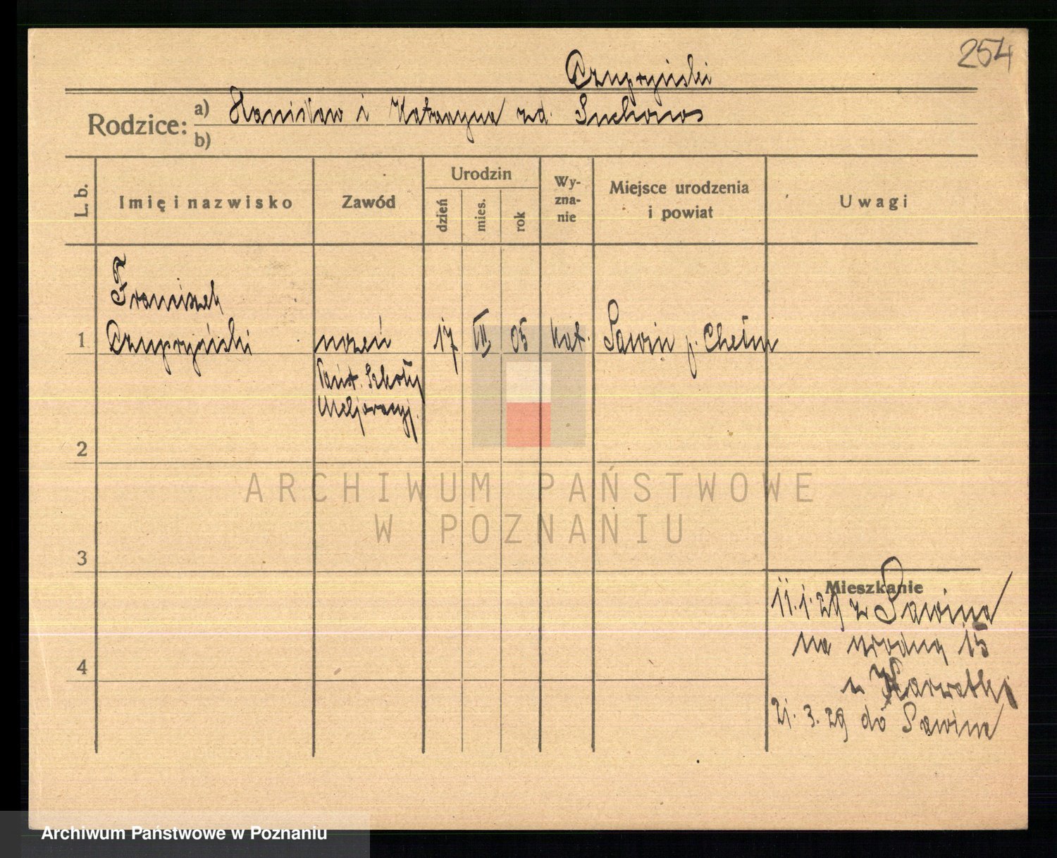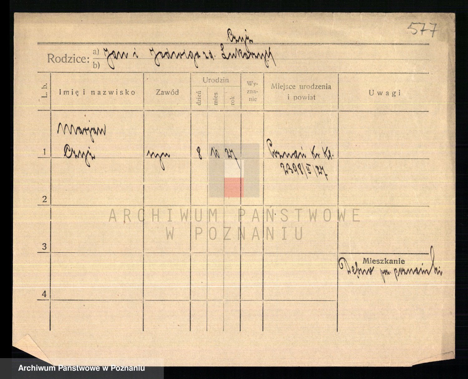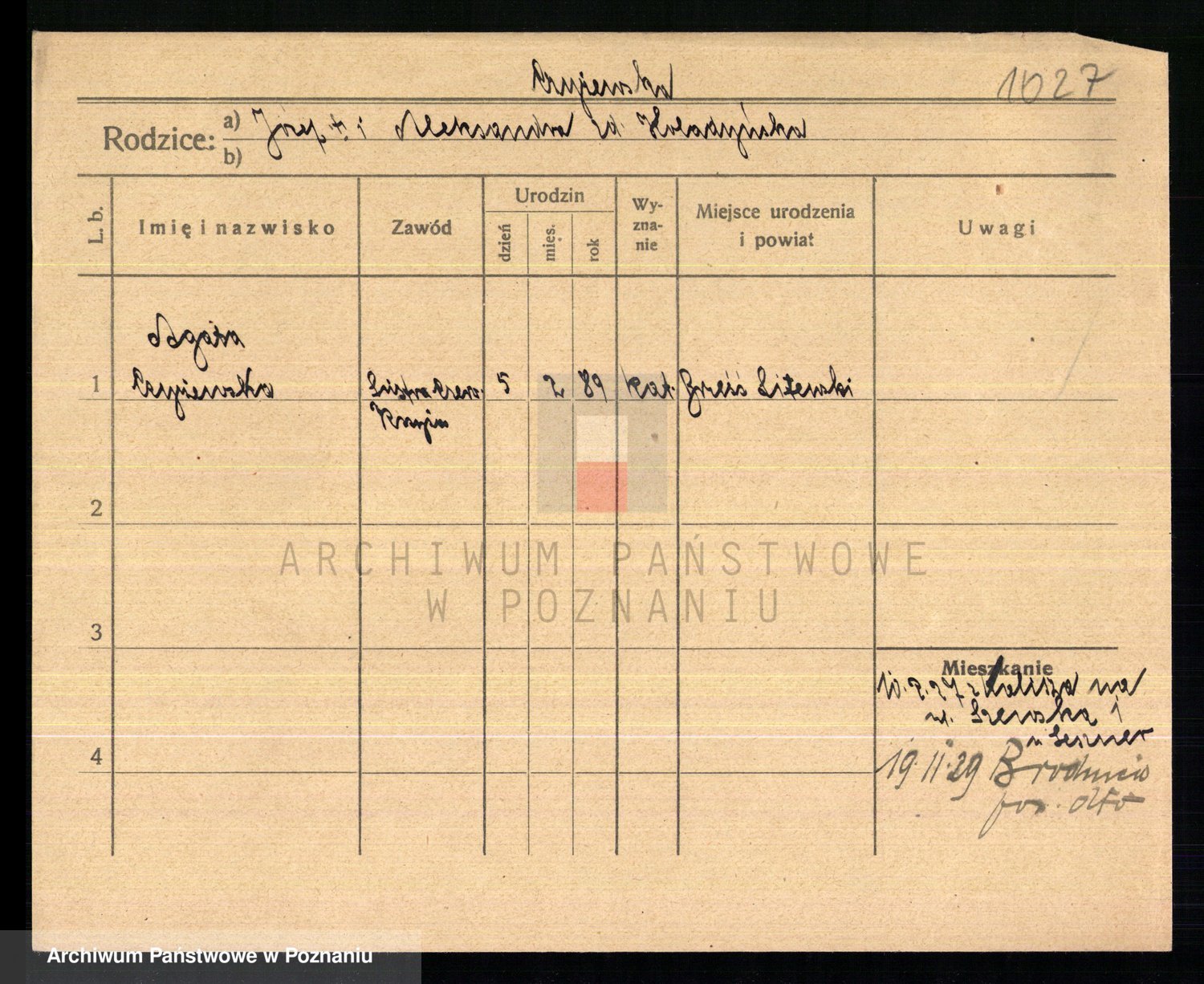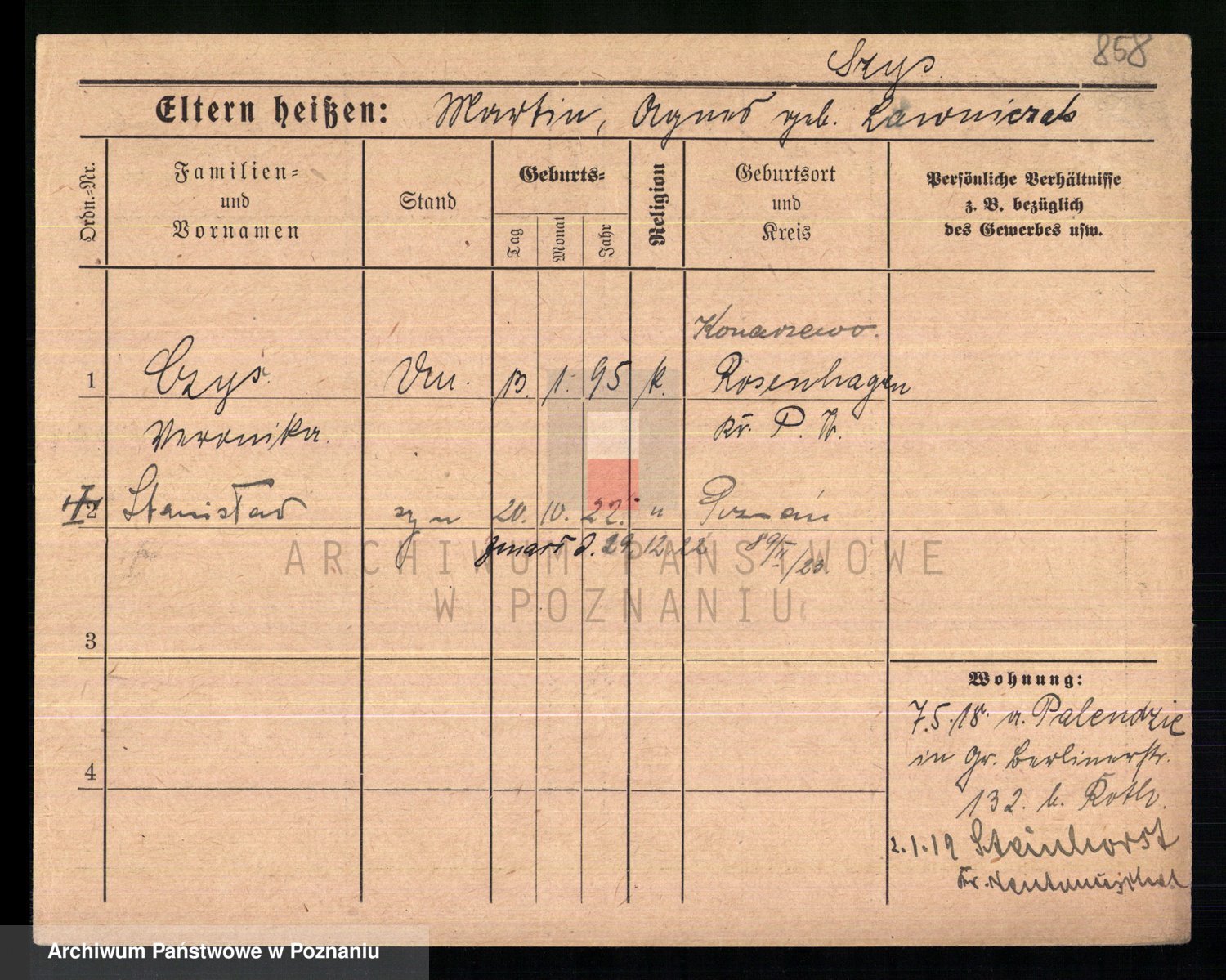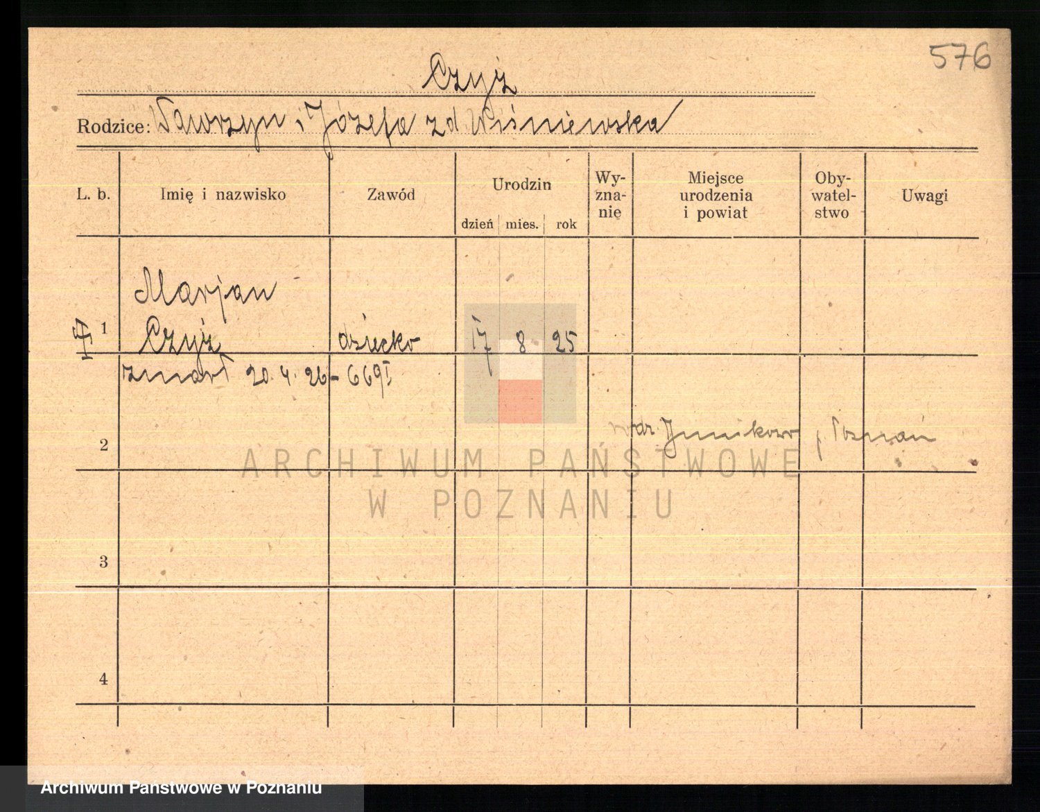 Podgląd karty osobowej dostępny jest po kliknięciu na nazwisko lub ikonkę karty. Można dokonywać powiększenia (ikony na górze) lub przechodzić między kolejnymi skanami (strzałki po bokach).