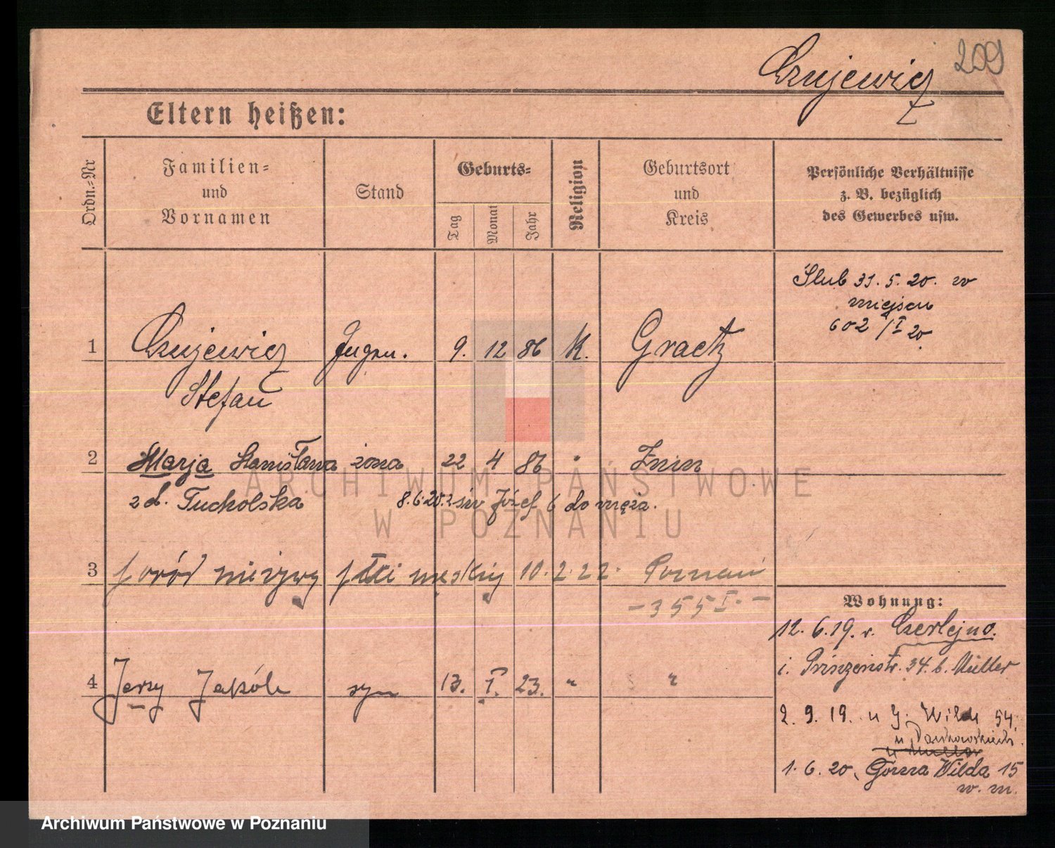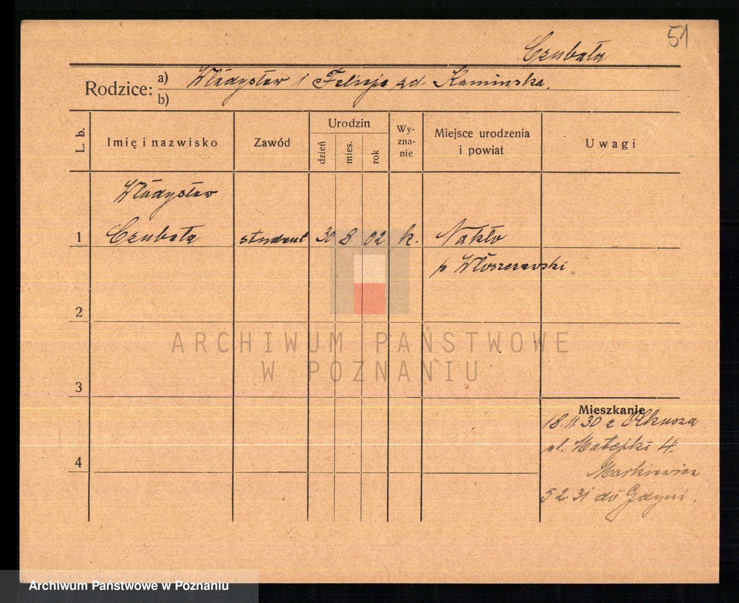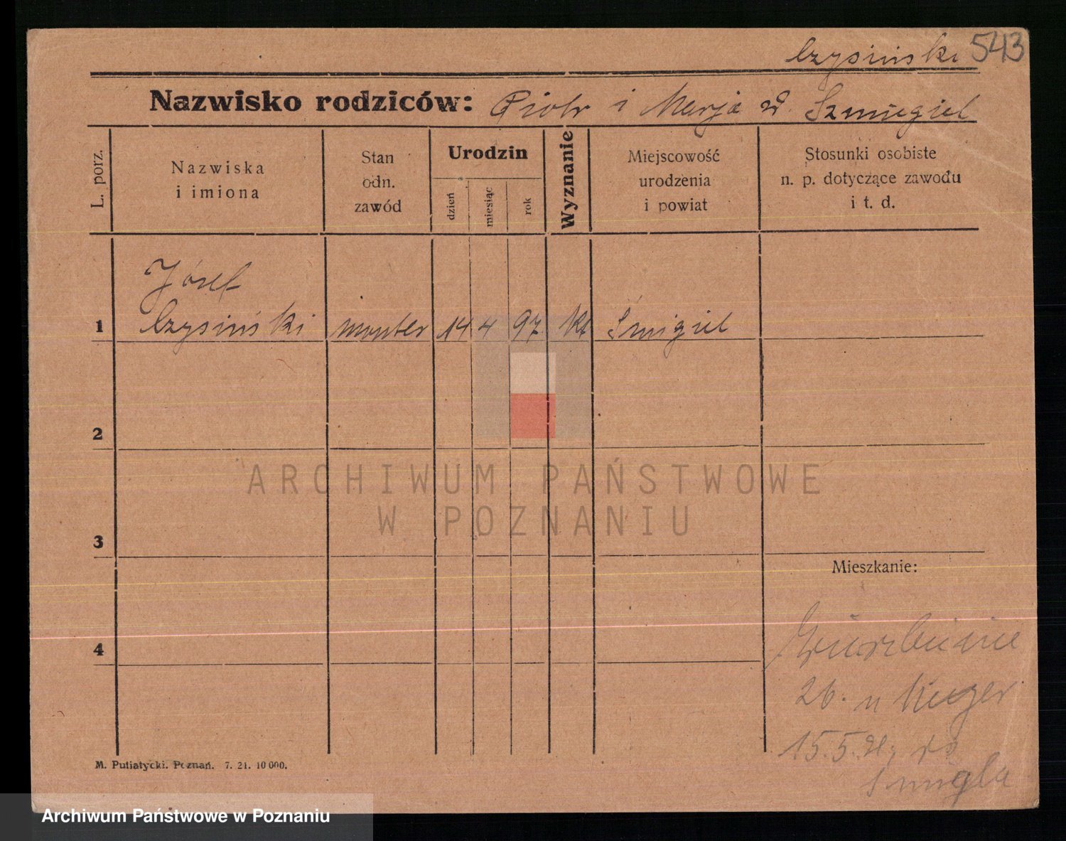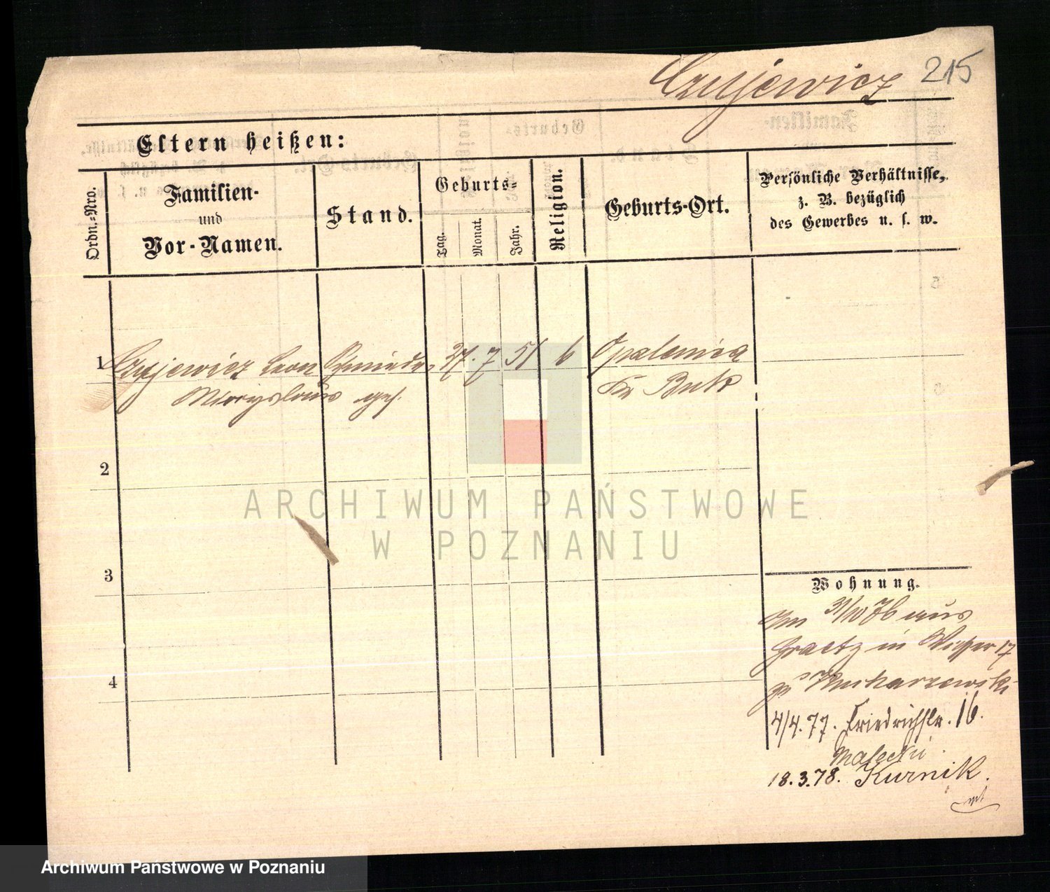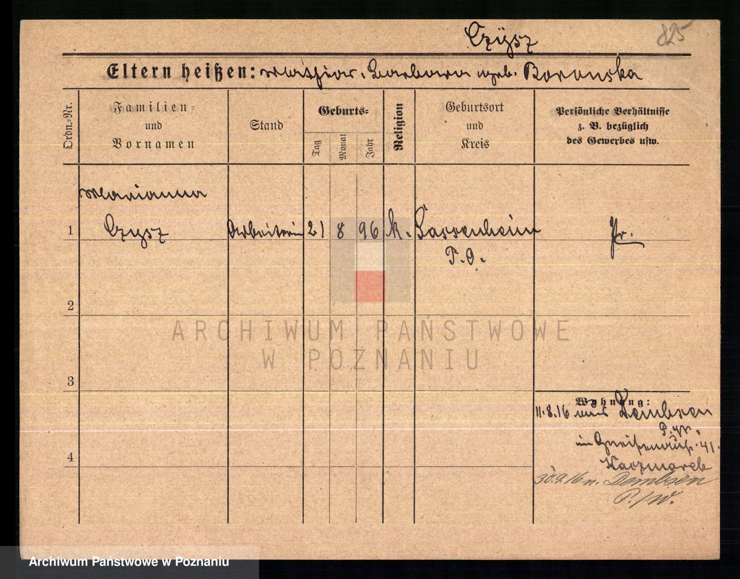 Podgląd karty osobowej dostępny jest po kliknięciu na nazwisko lub ikonkę karty. Można dokonywać powiększenia (ikony na górze) lub przechodzić między kolejnymi skanami (strzałki po bokach).