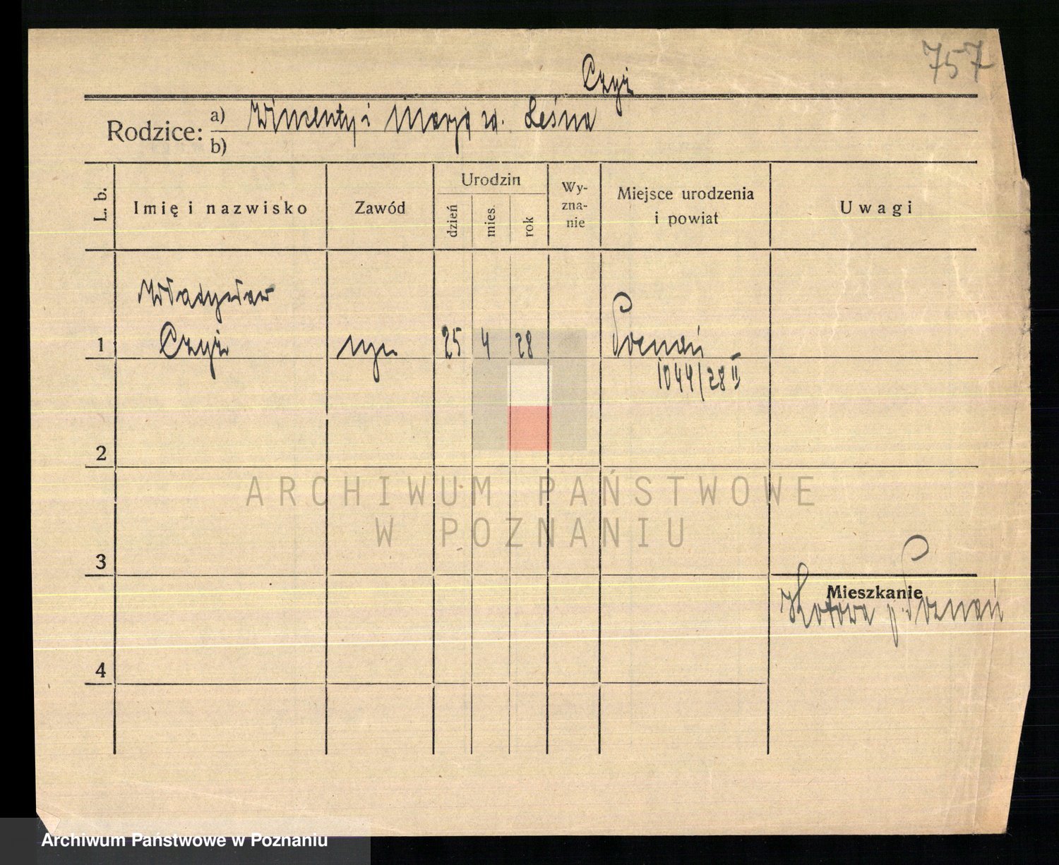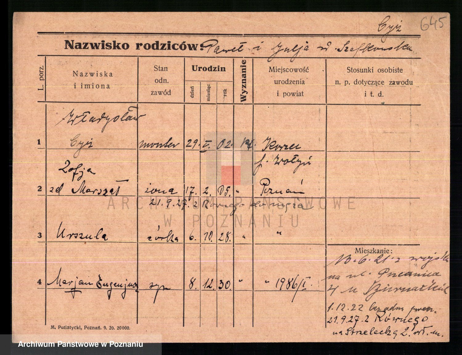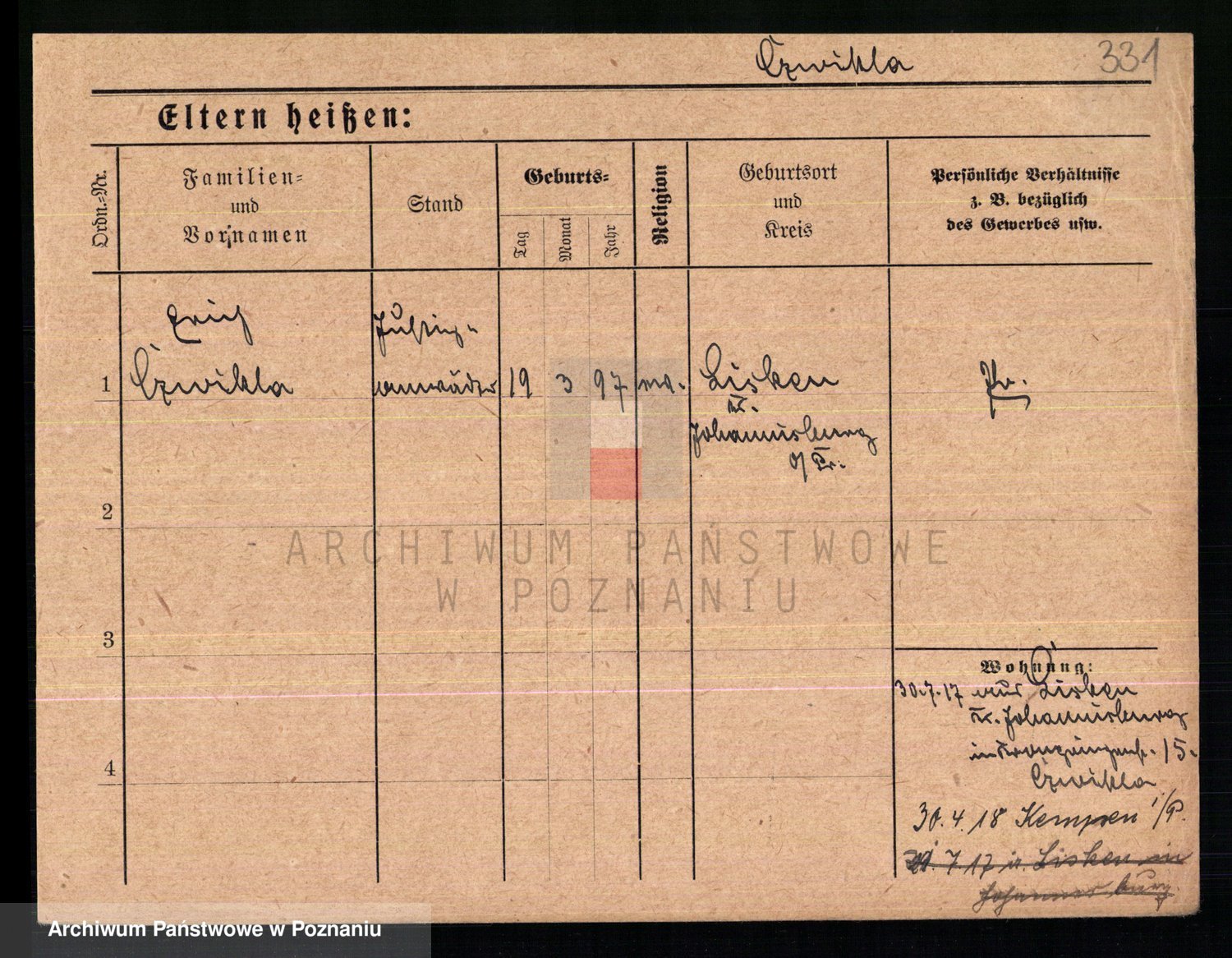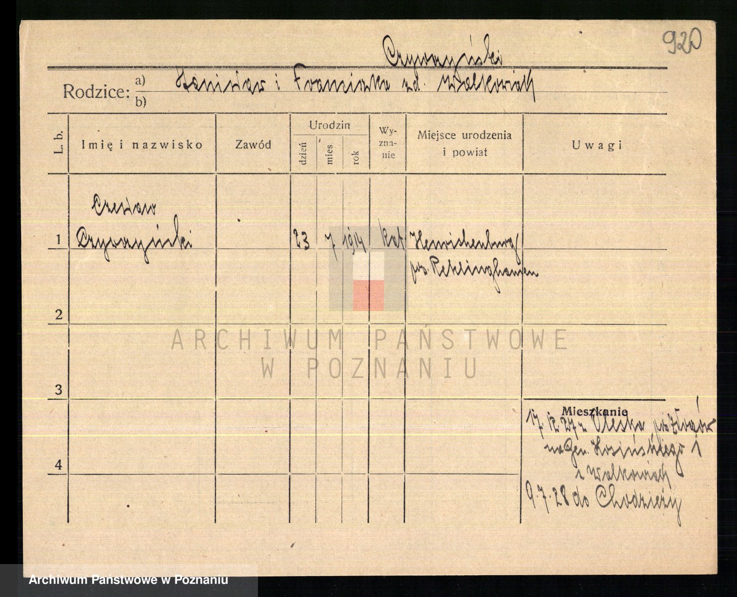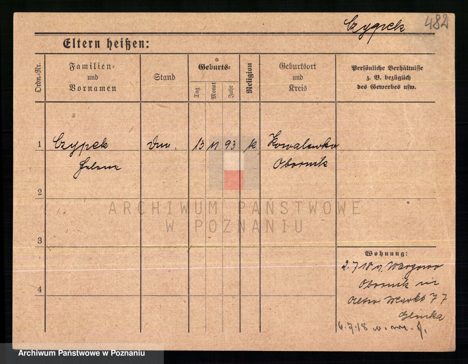 Podgląd karty osobowej dostępny jest po kliknięciu na nazwisko lub ikonkę karty. Można dokonywać powiększenia (ikony na górze) lub przechodzić między kolejnymi skanami (strzałki po bokach).