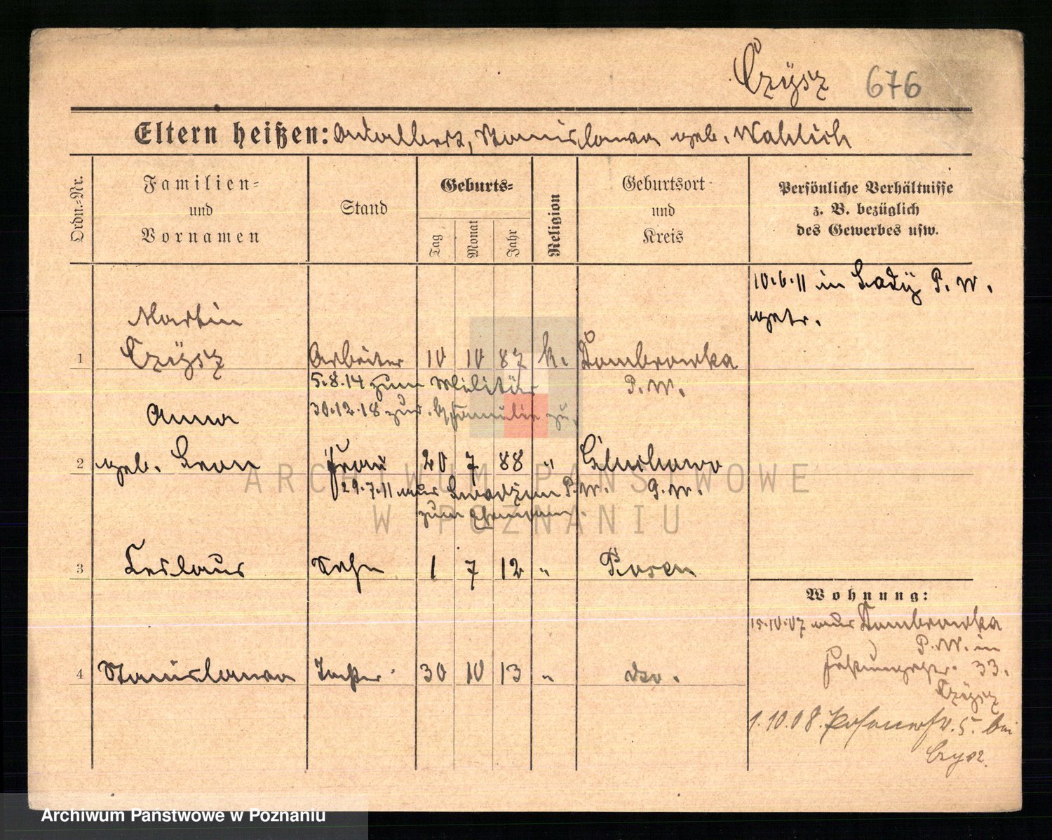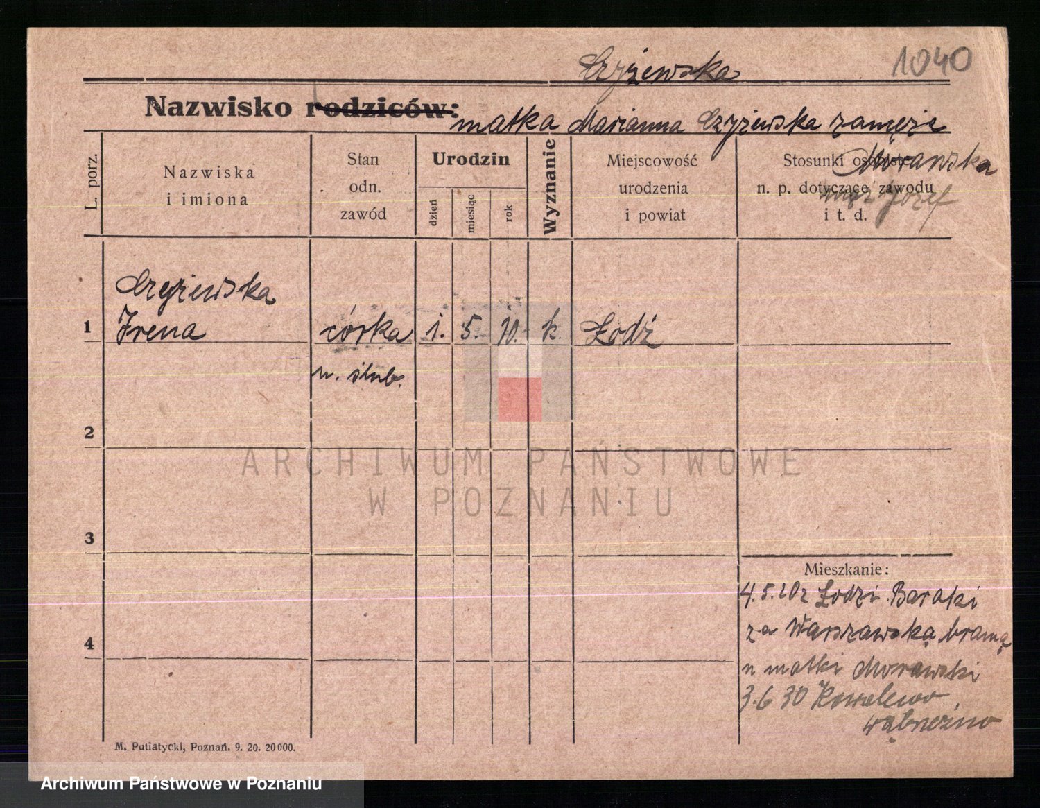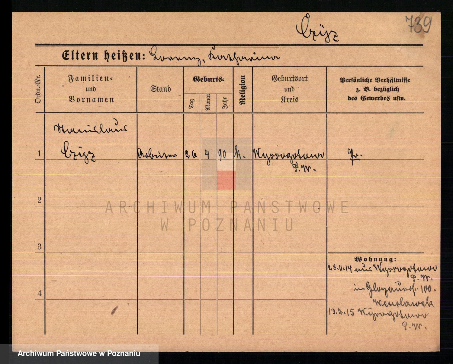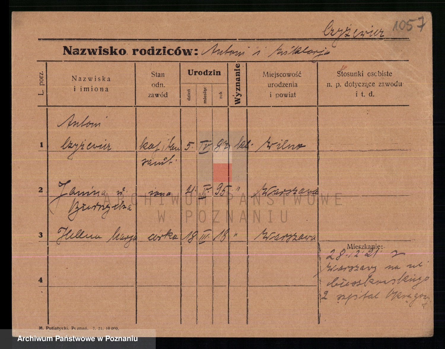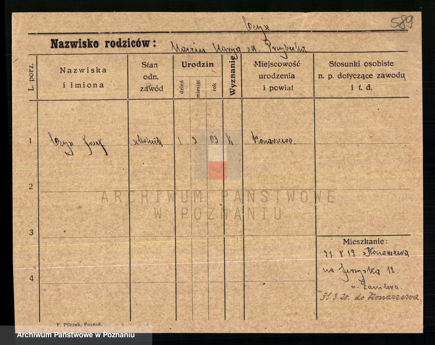 Podgląd karty osobowej dostępny jest po kliknięciu na nazwisko lub ikonkę karty. Można dokonywać powiększenia (ikony na górze) lub przechodzić między kolejnymi skanami (strzałki po bokach).