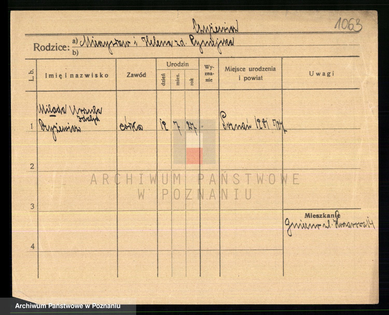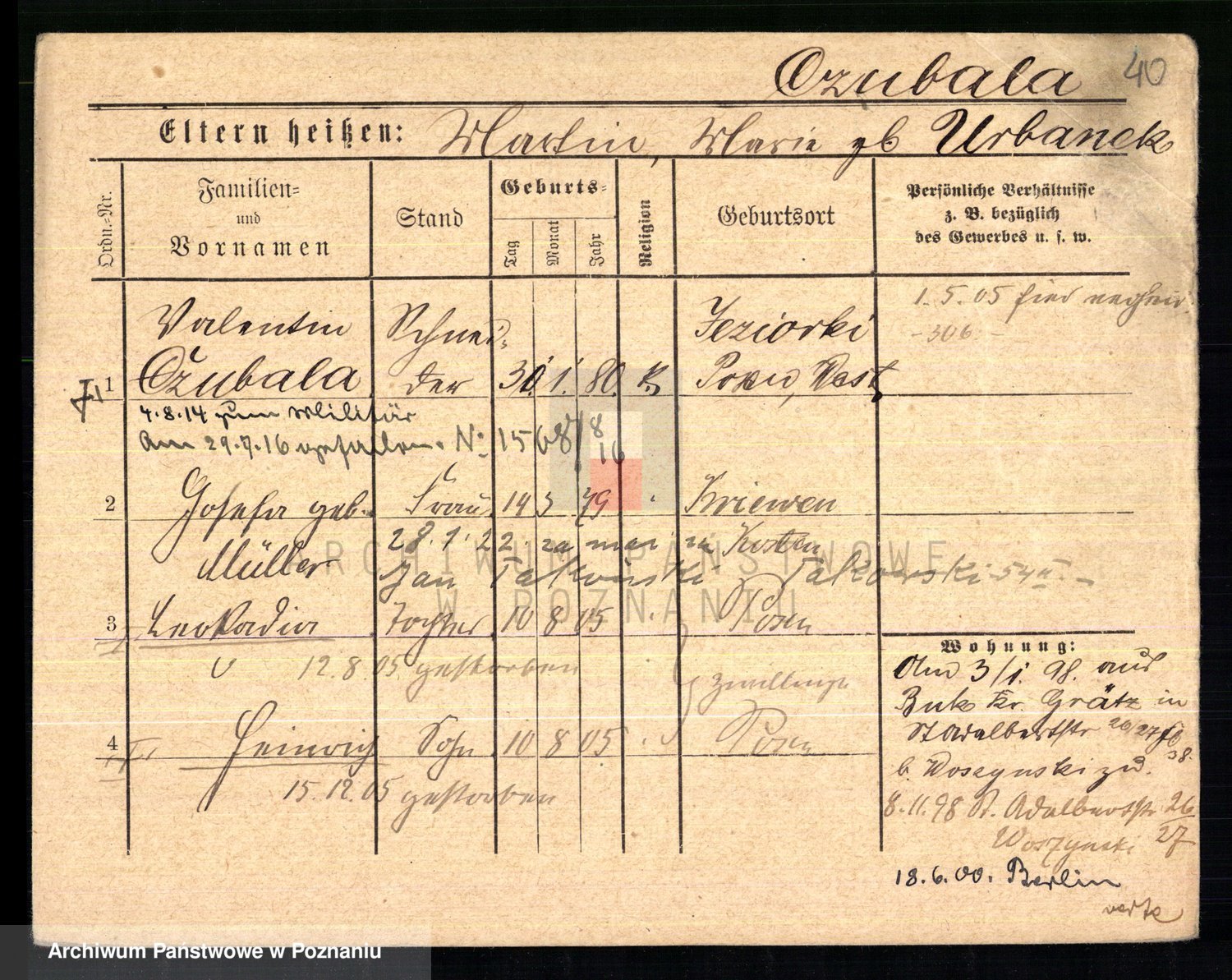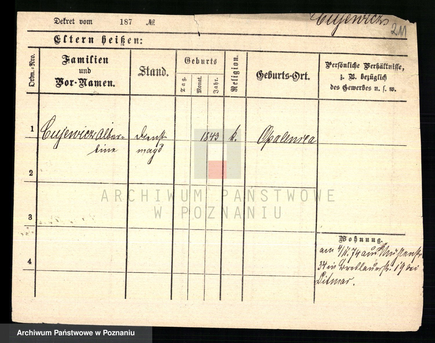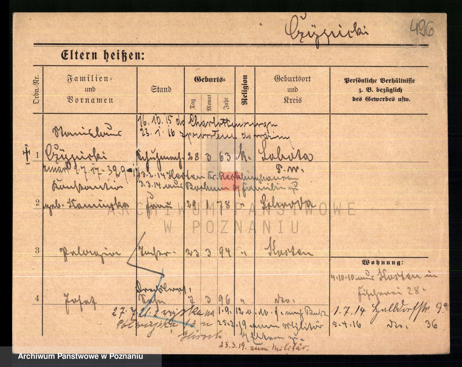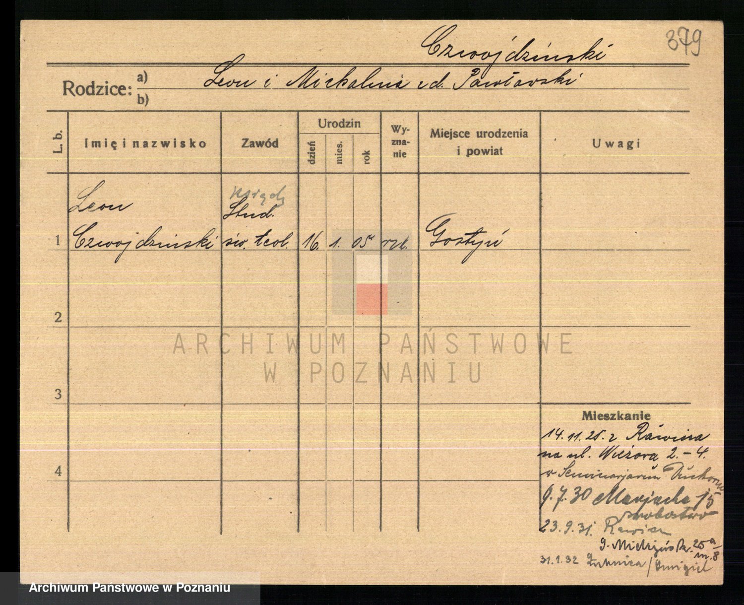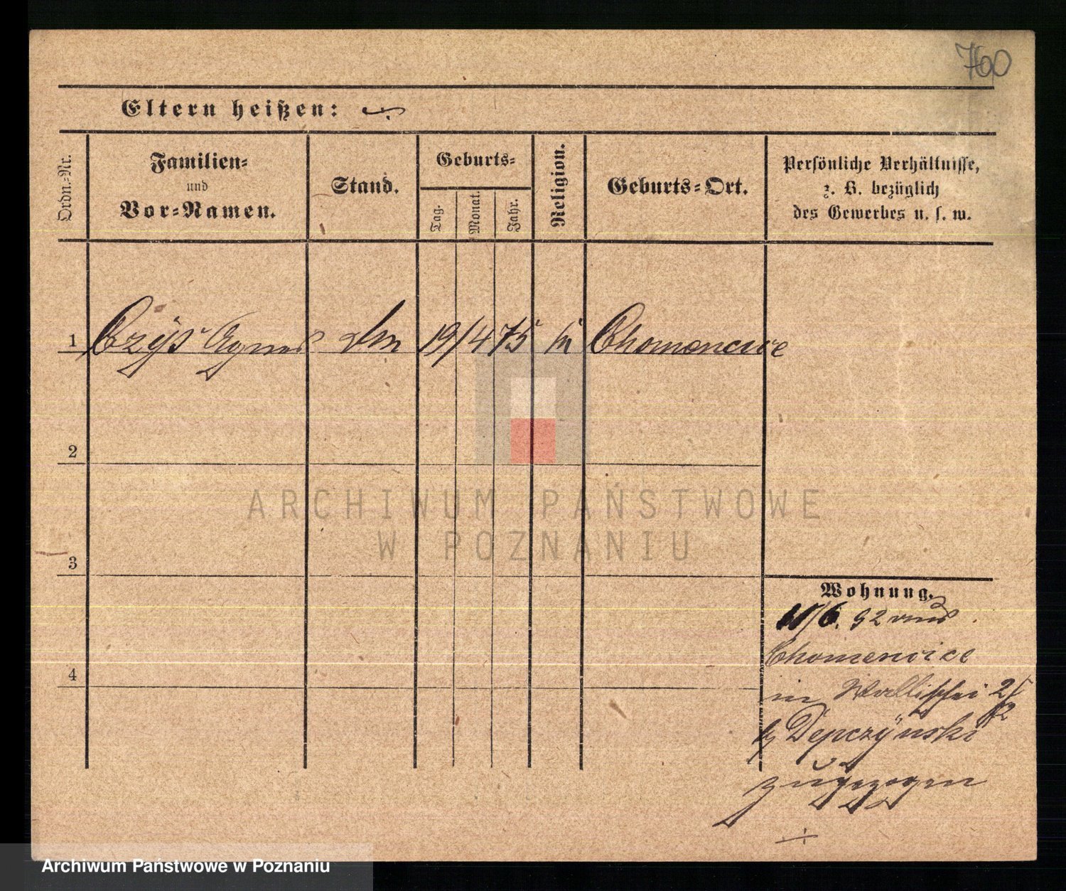 Podgląd karty osobowej dostępny jest po kliknięciu na nazwisko lub ikonkę karty. Można dokonywać powiększenia (ikony na górze) lub przechodzić między kolejnymi skanami (strzałki po bokach).