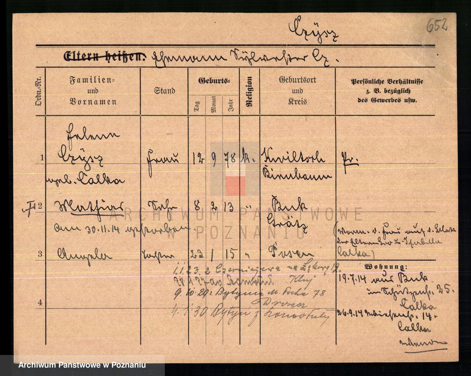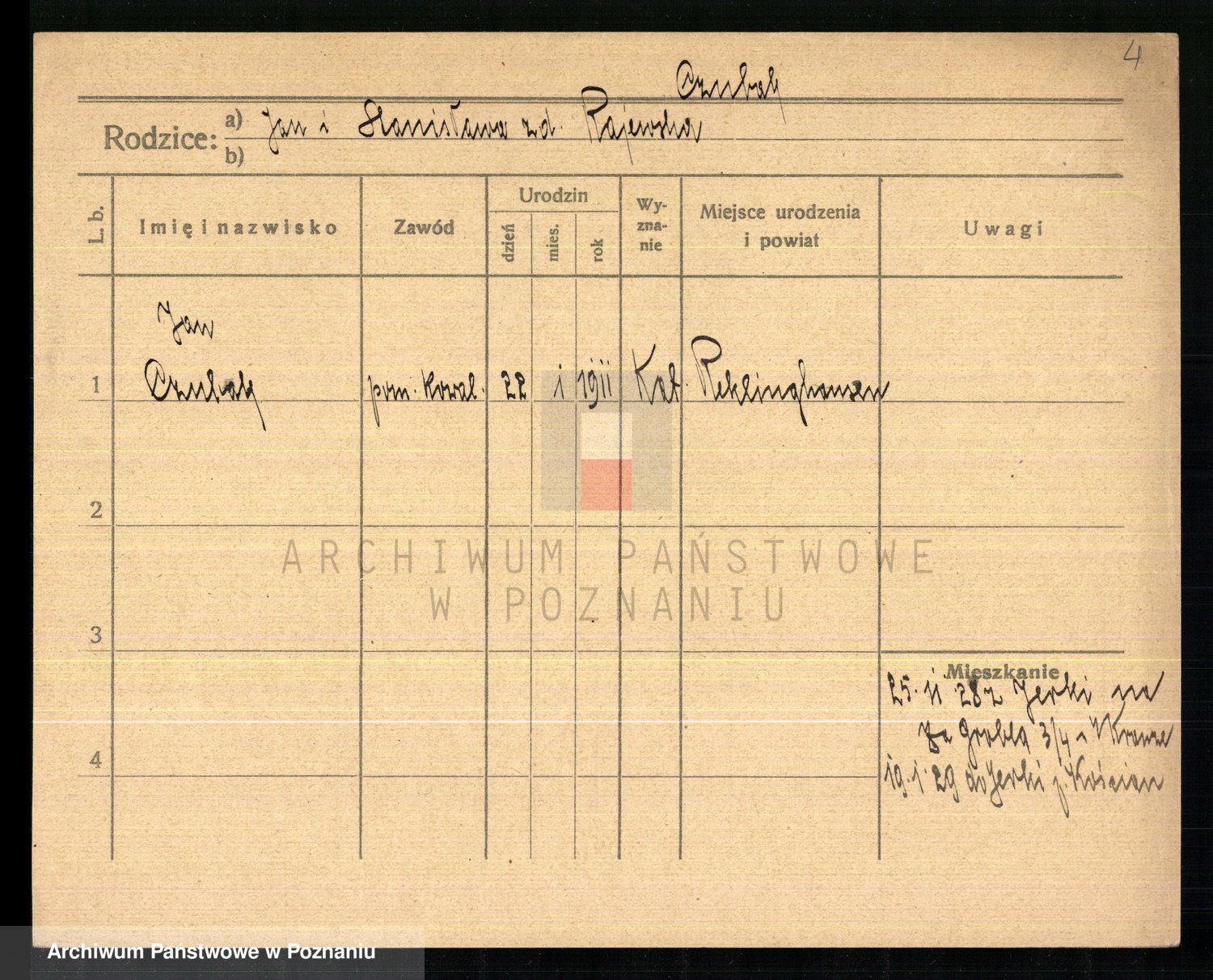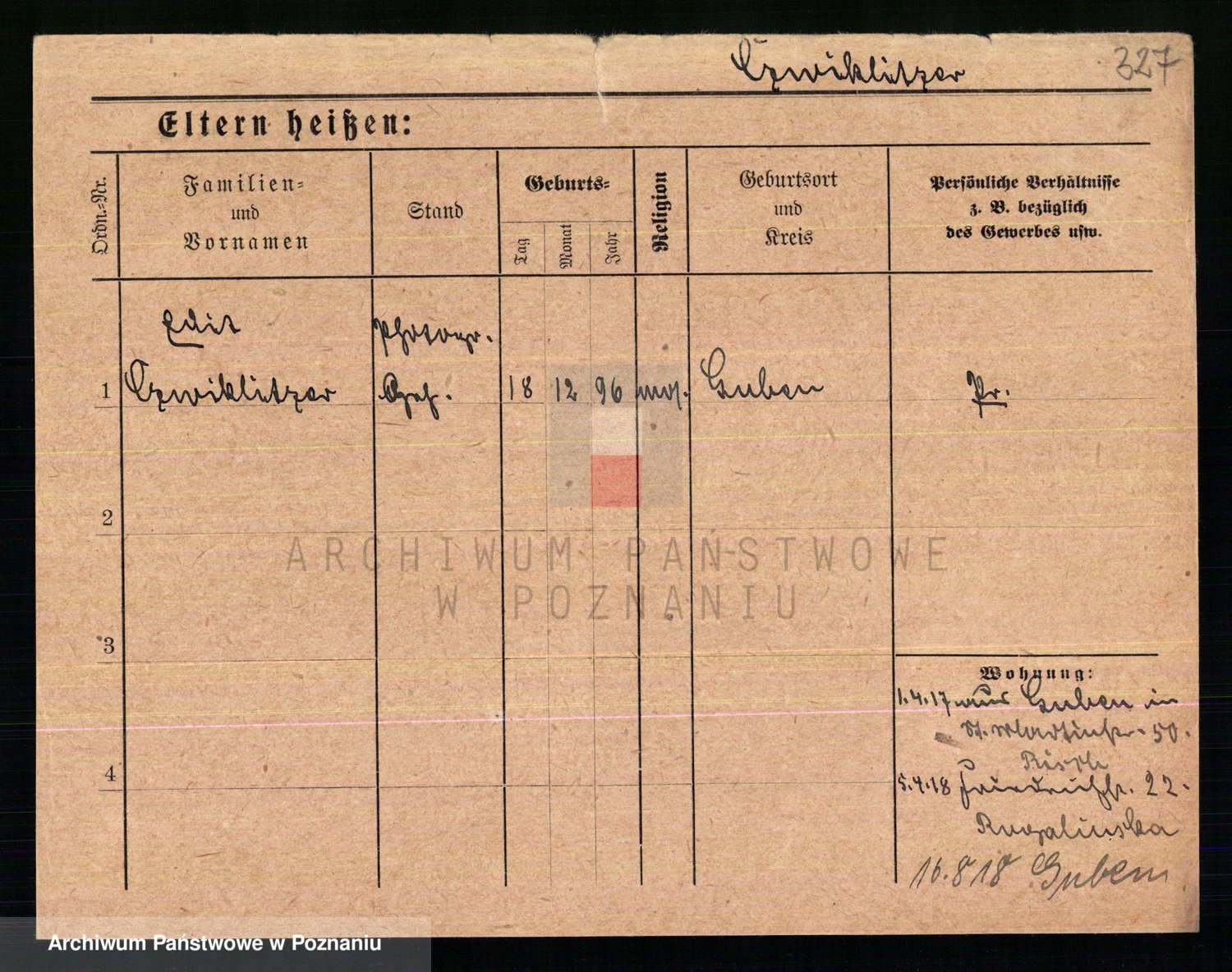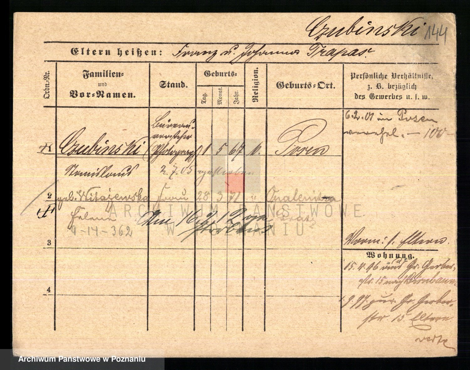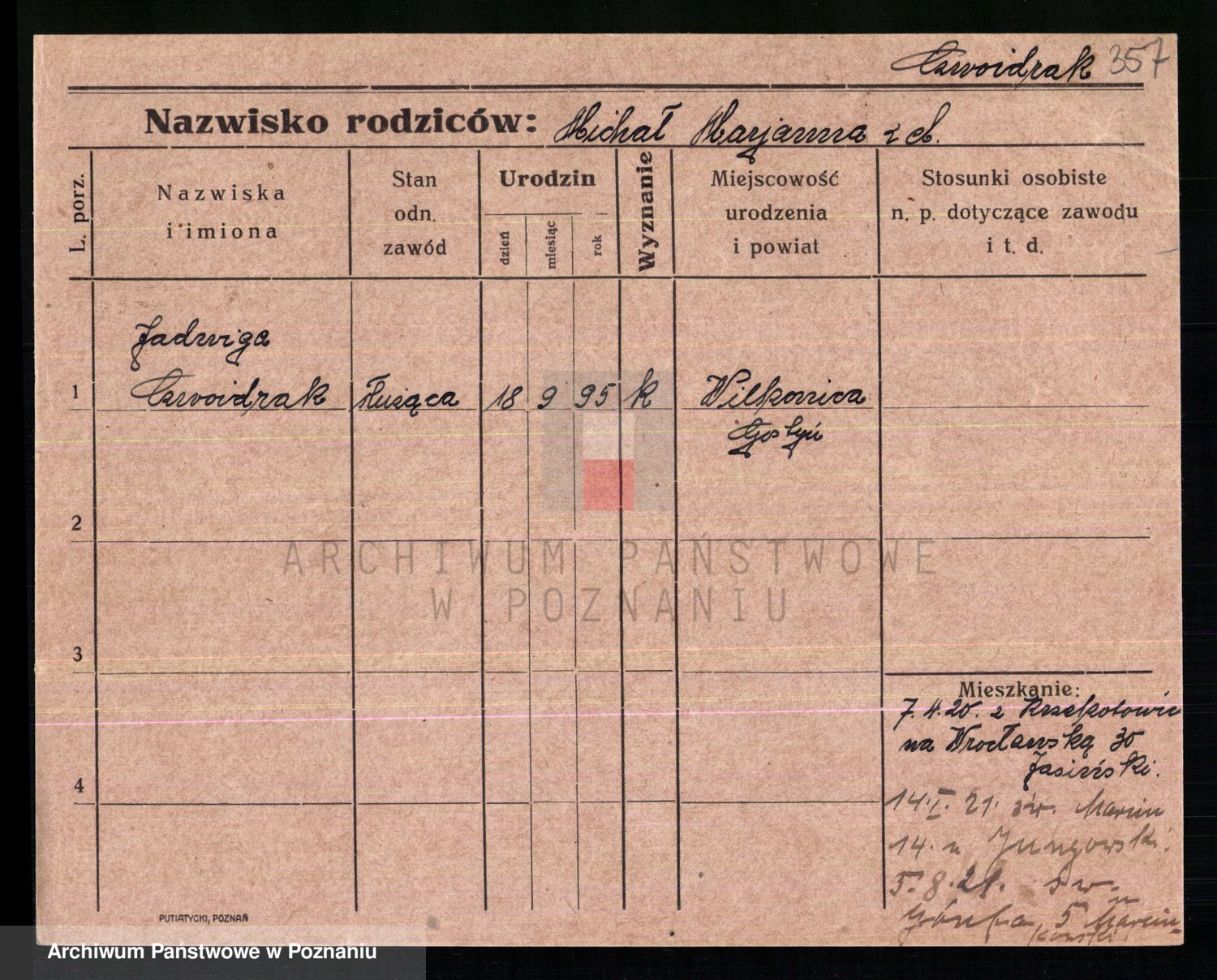 Podgląd karty osobowej dostępny jest po kliknięciu na nazwisko lub ikonkę karty. Można dokonywać powiększenia (ikony na górze) lub przechodzić między kolejnymi skanami (strzałki po bokach).