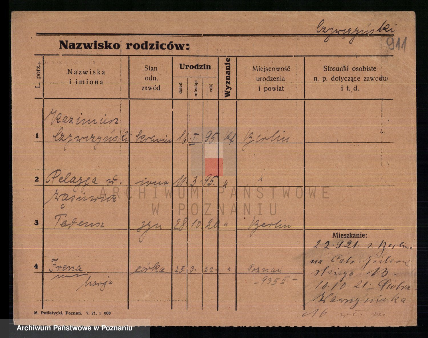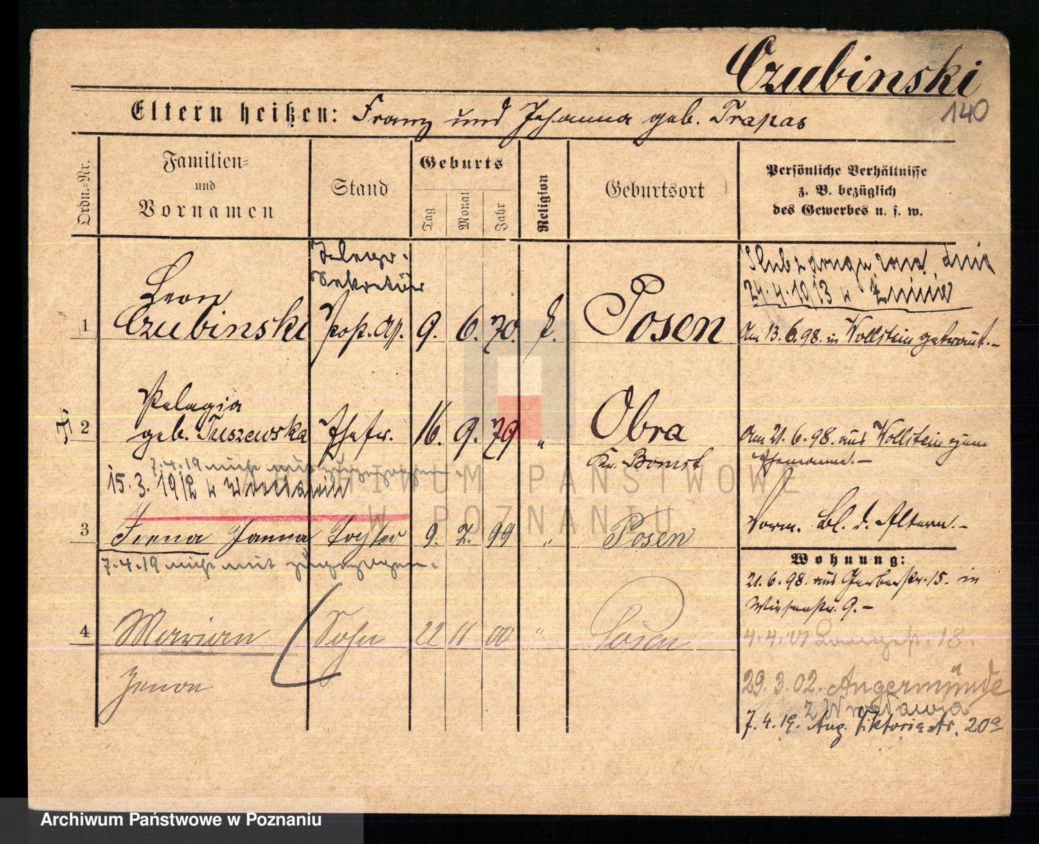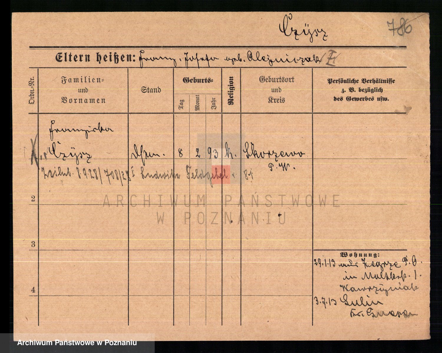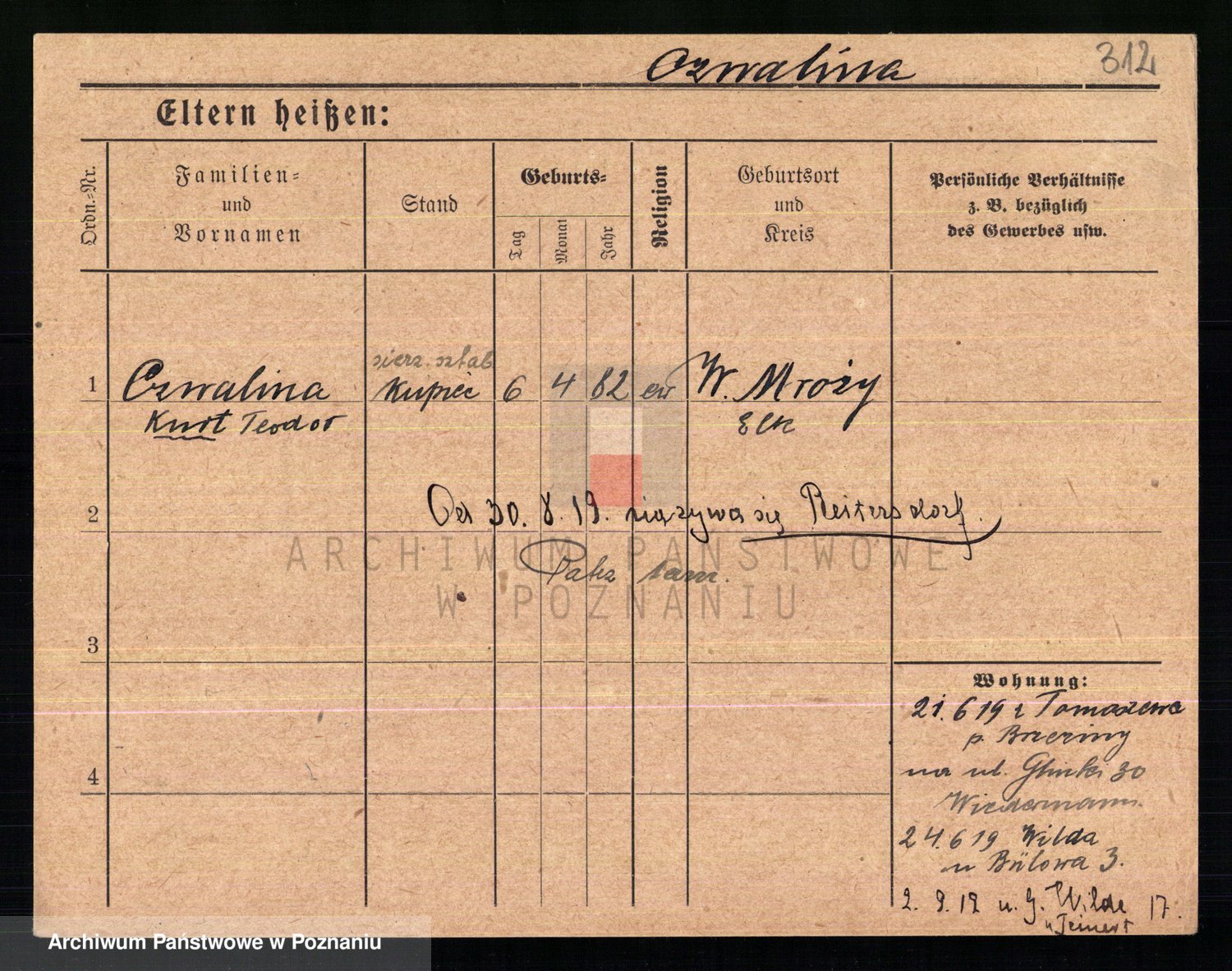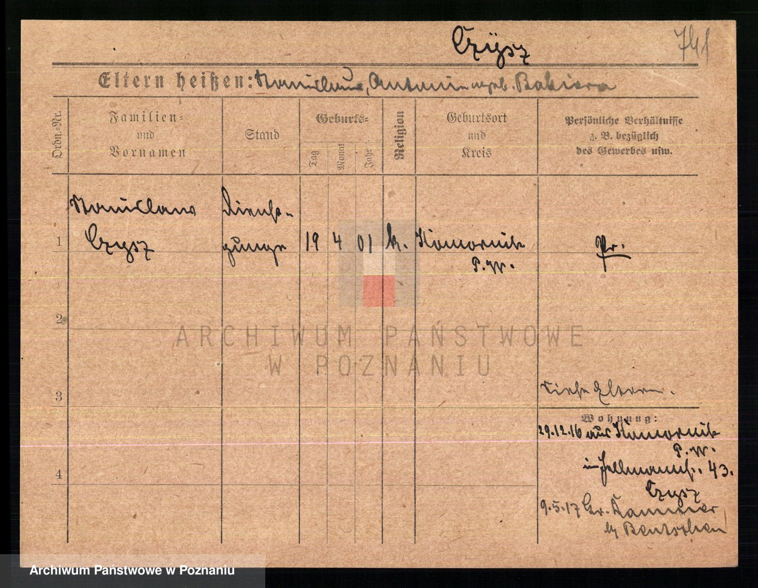 Podgląd karty osobowej dostępny jest po kliknięciu na nazwisko lub ikonkę karty. Można dokonywać powiększenia (ikony na górze) lub przechodzić między kolejnymi skanami (strzałki po bokach).